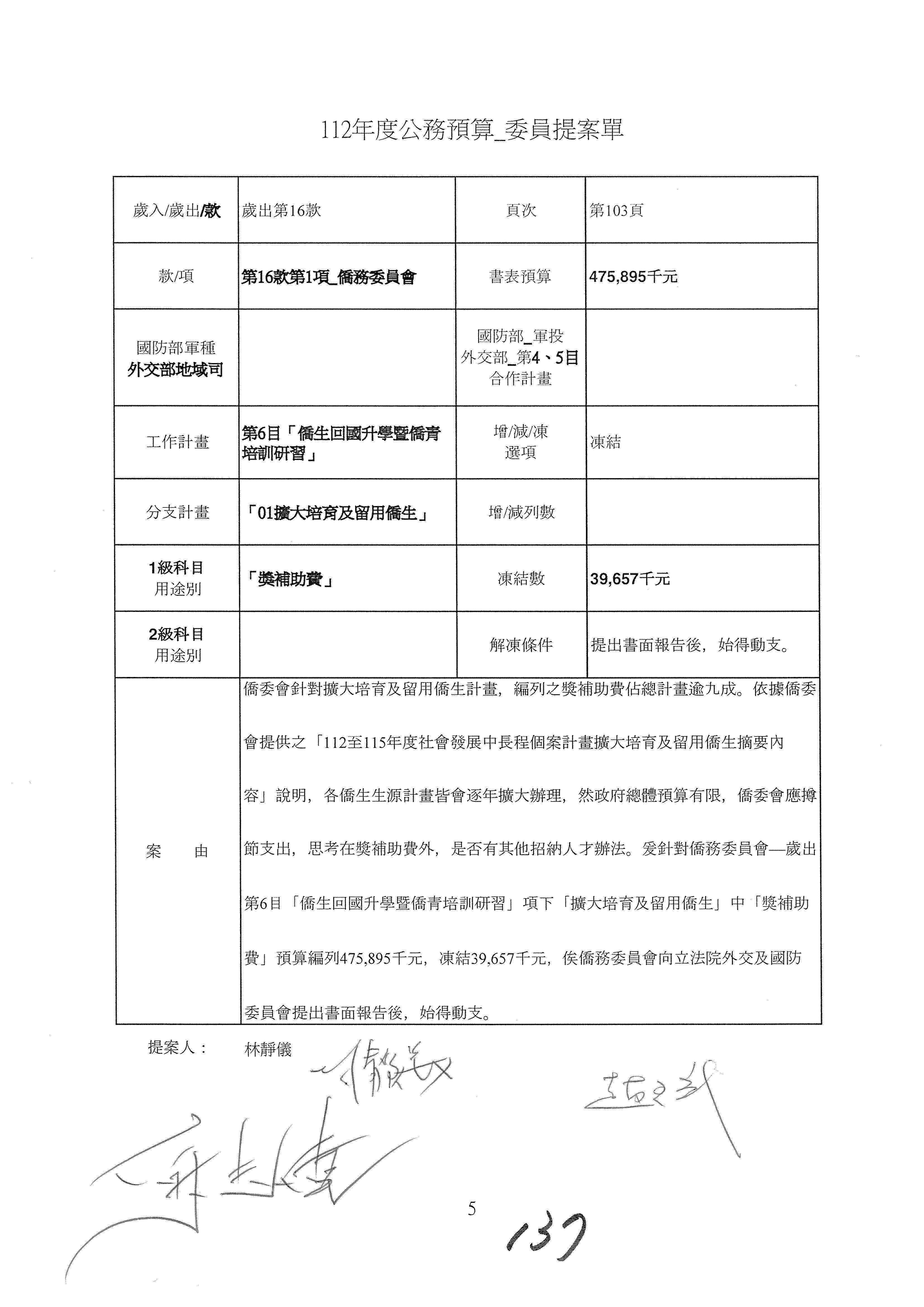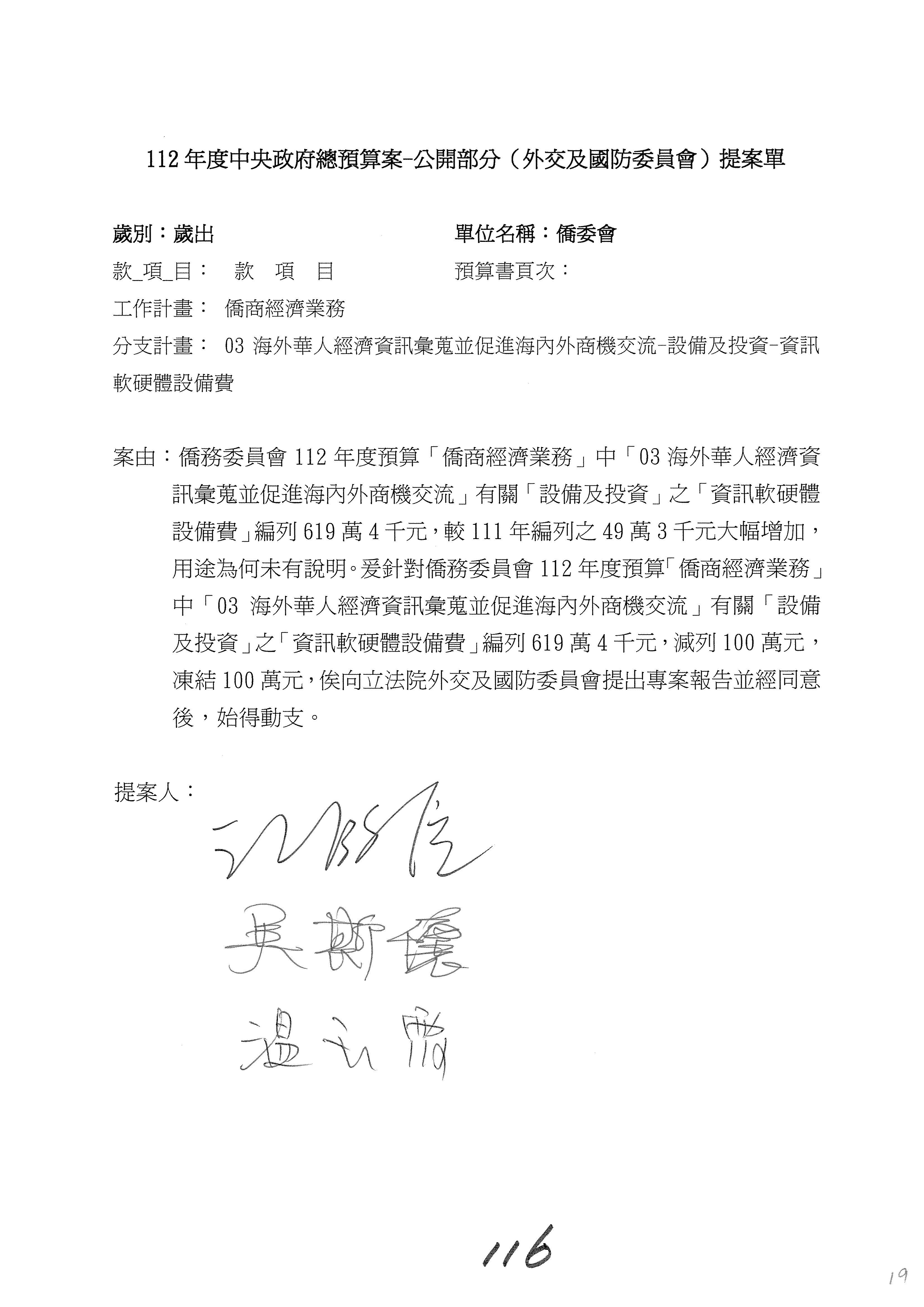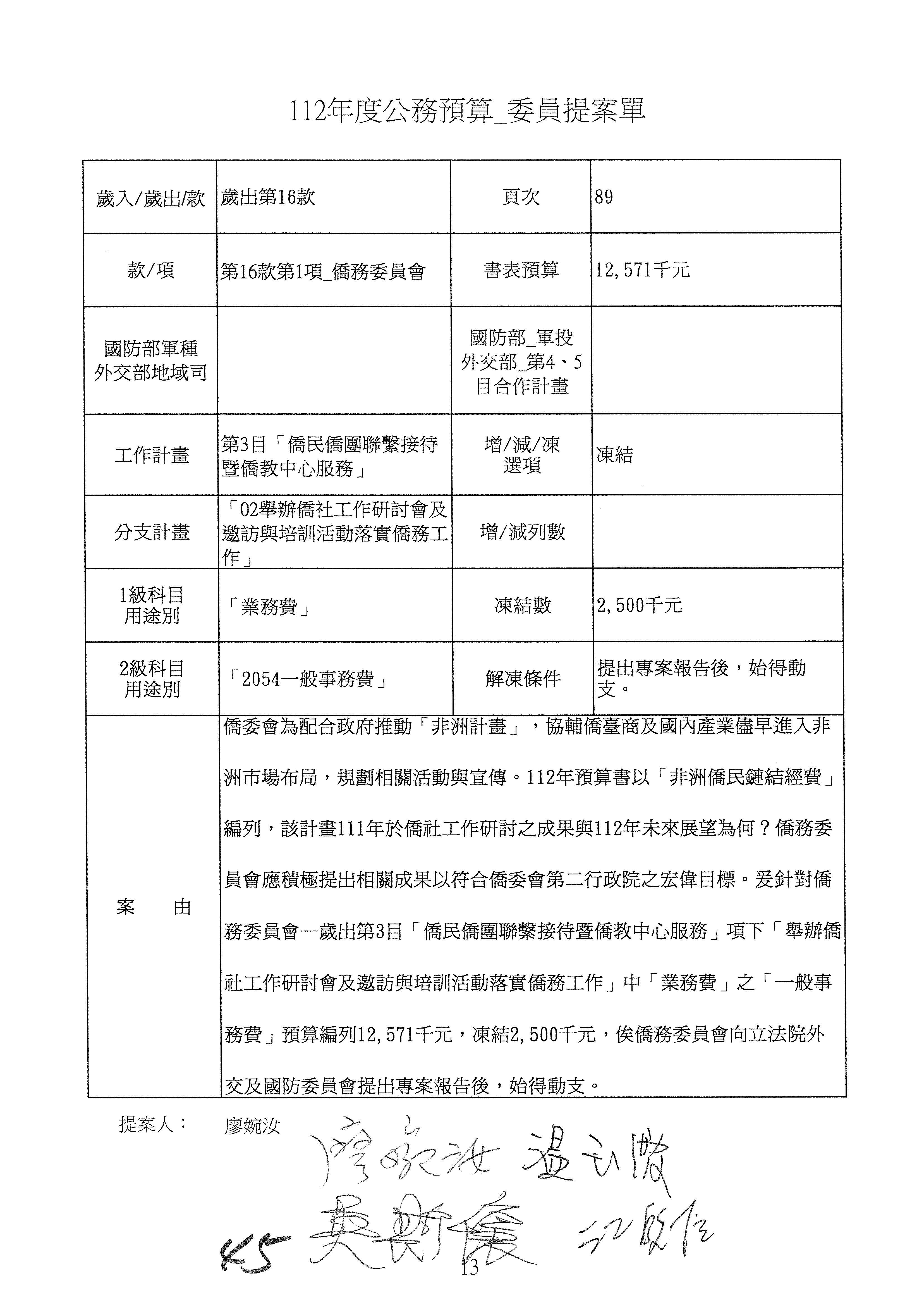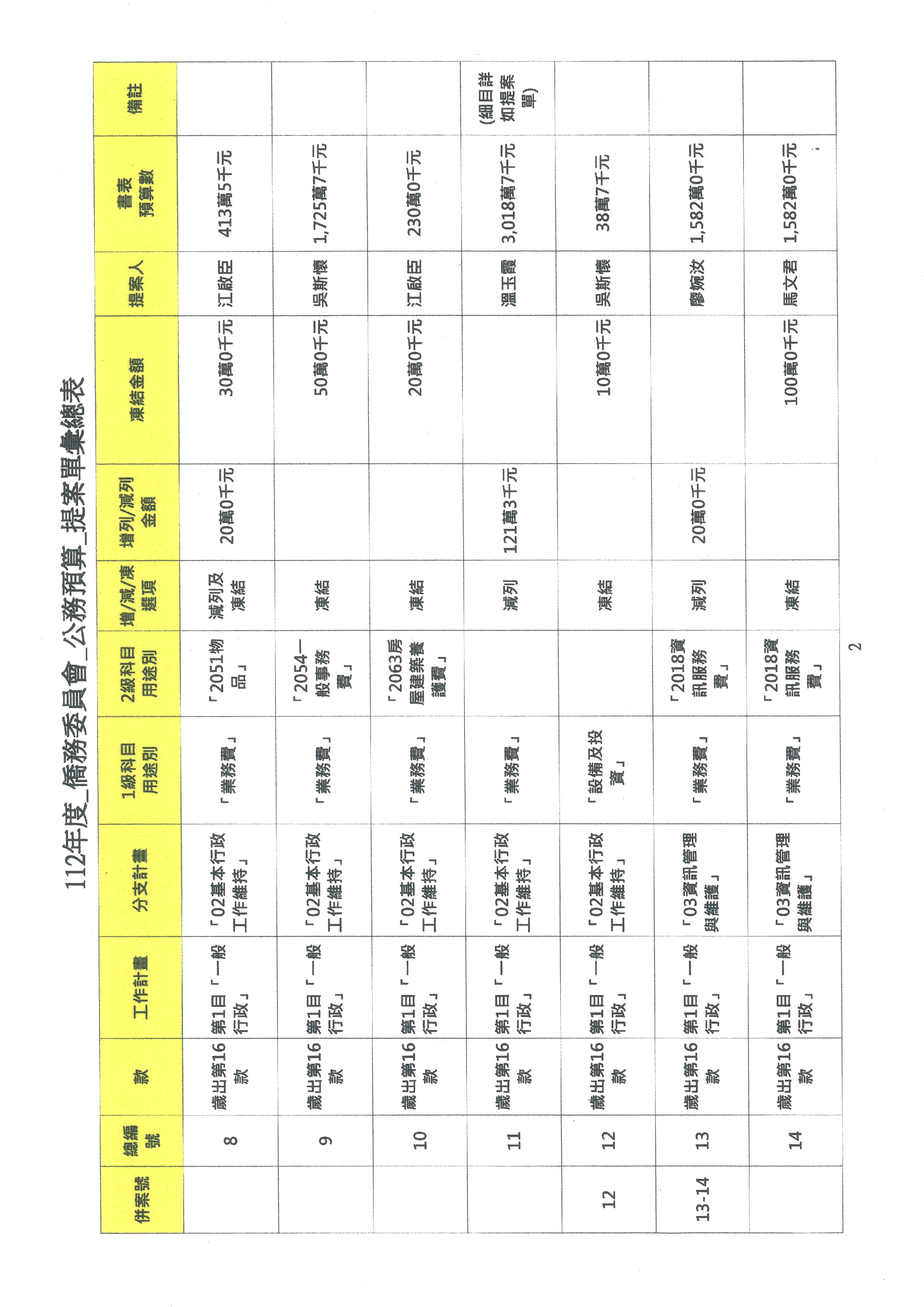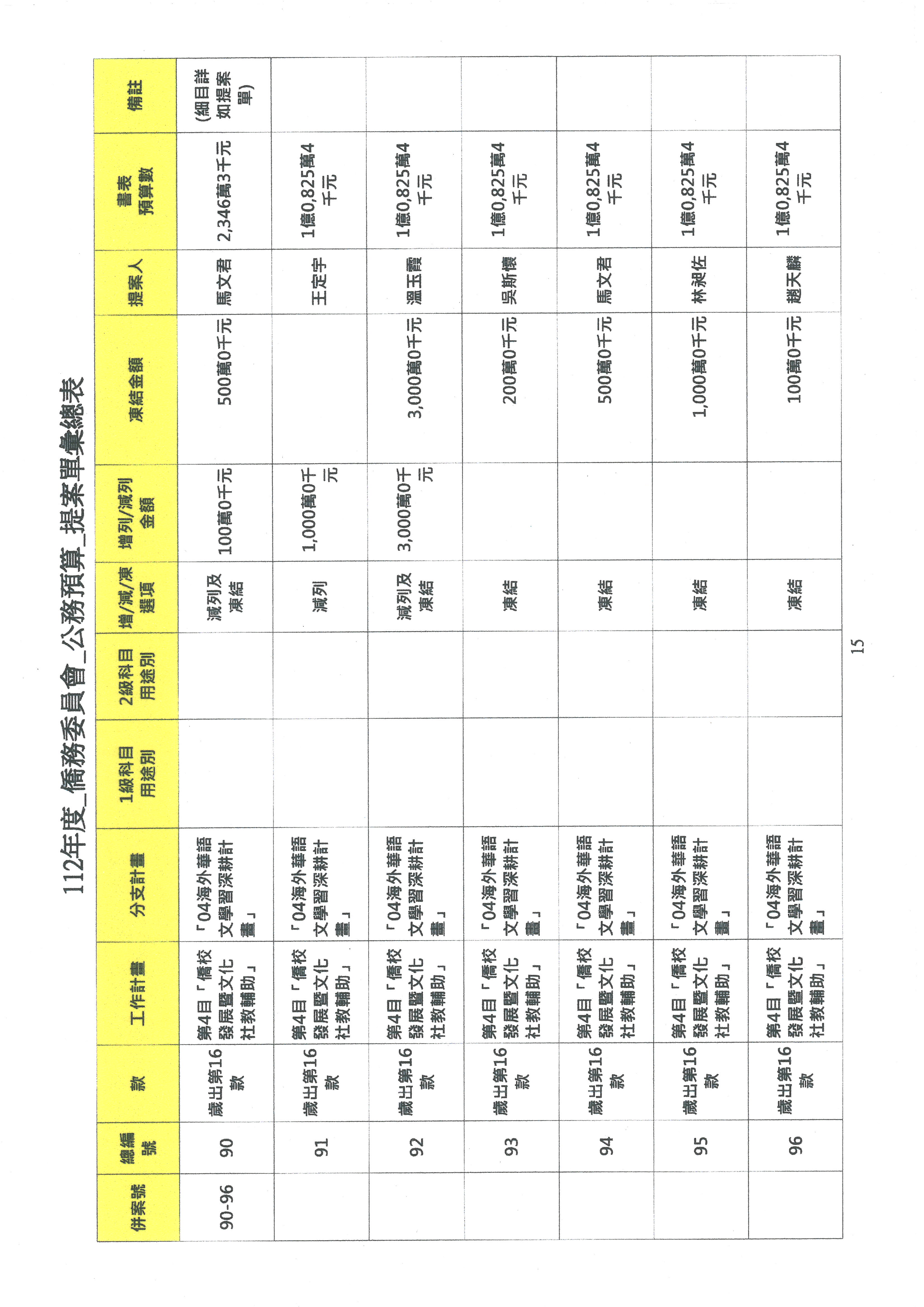 (二)112年度僑務委員會主管預算提案單(公開部分):