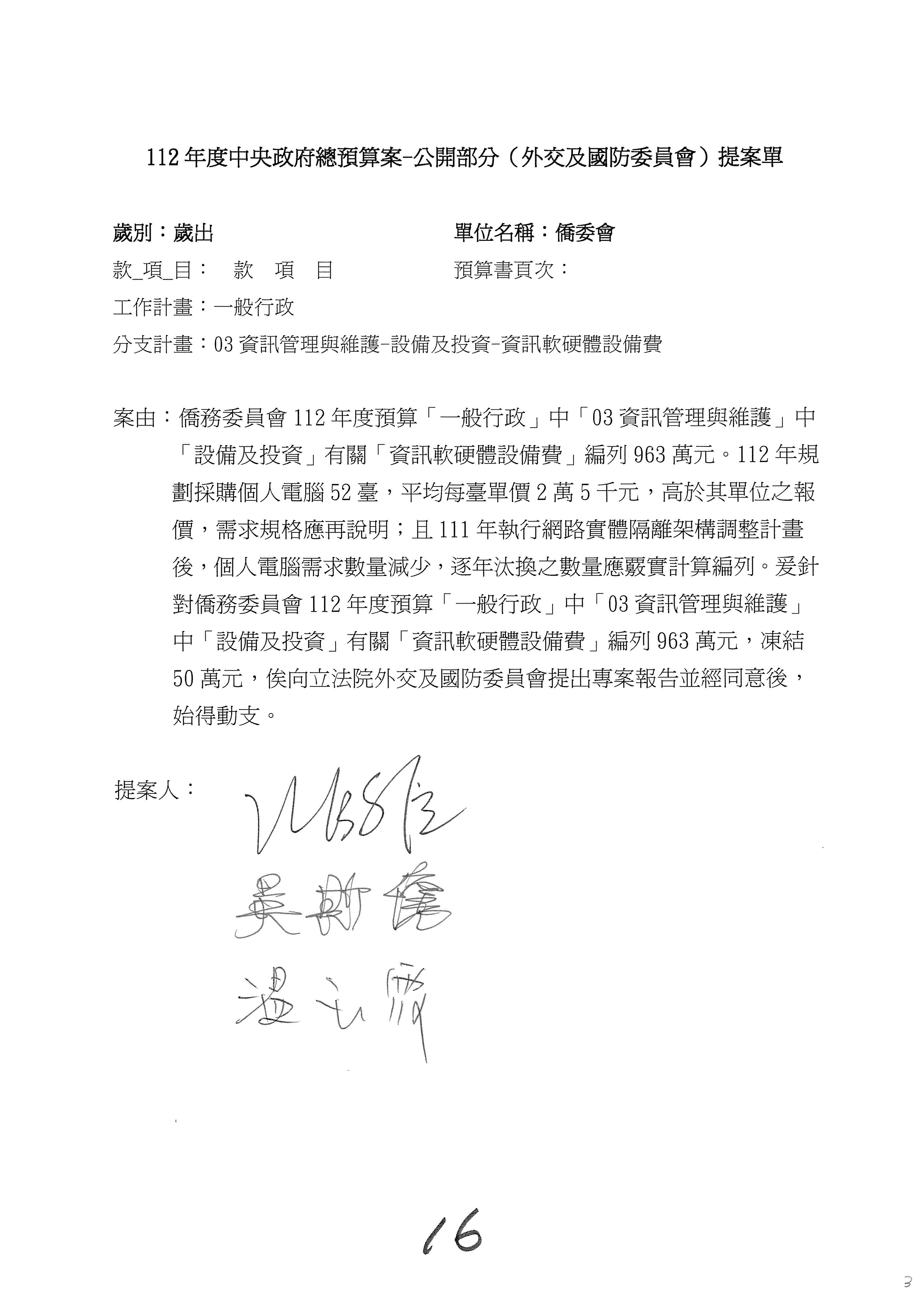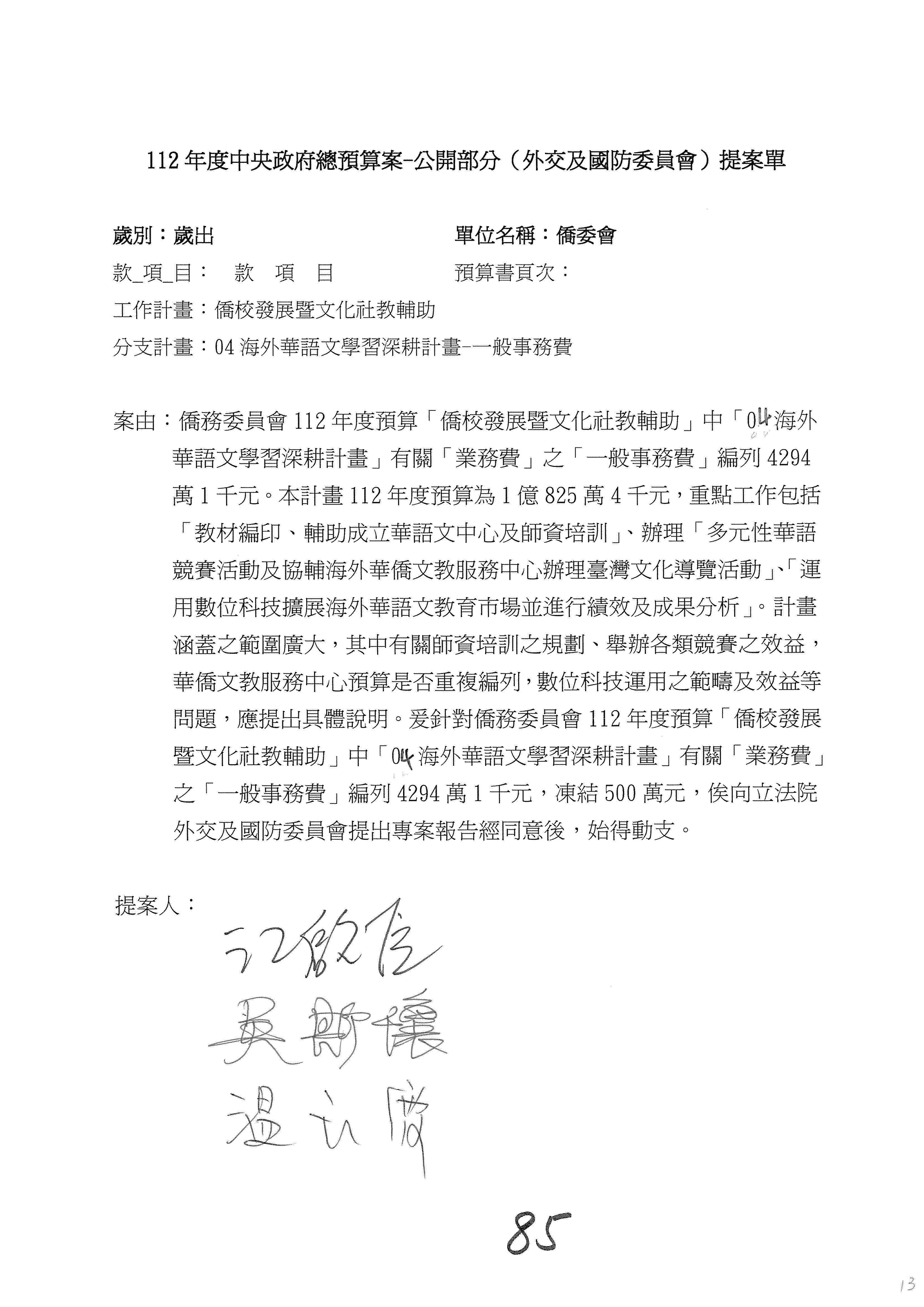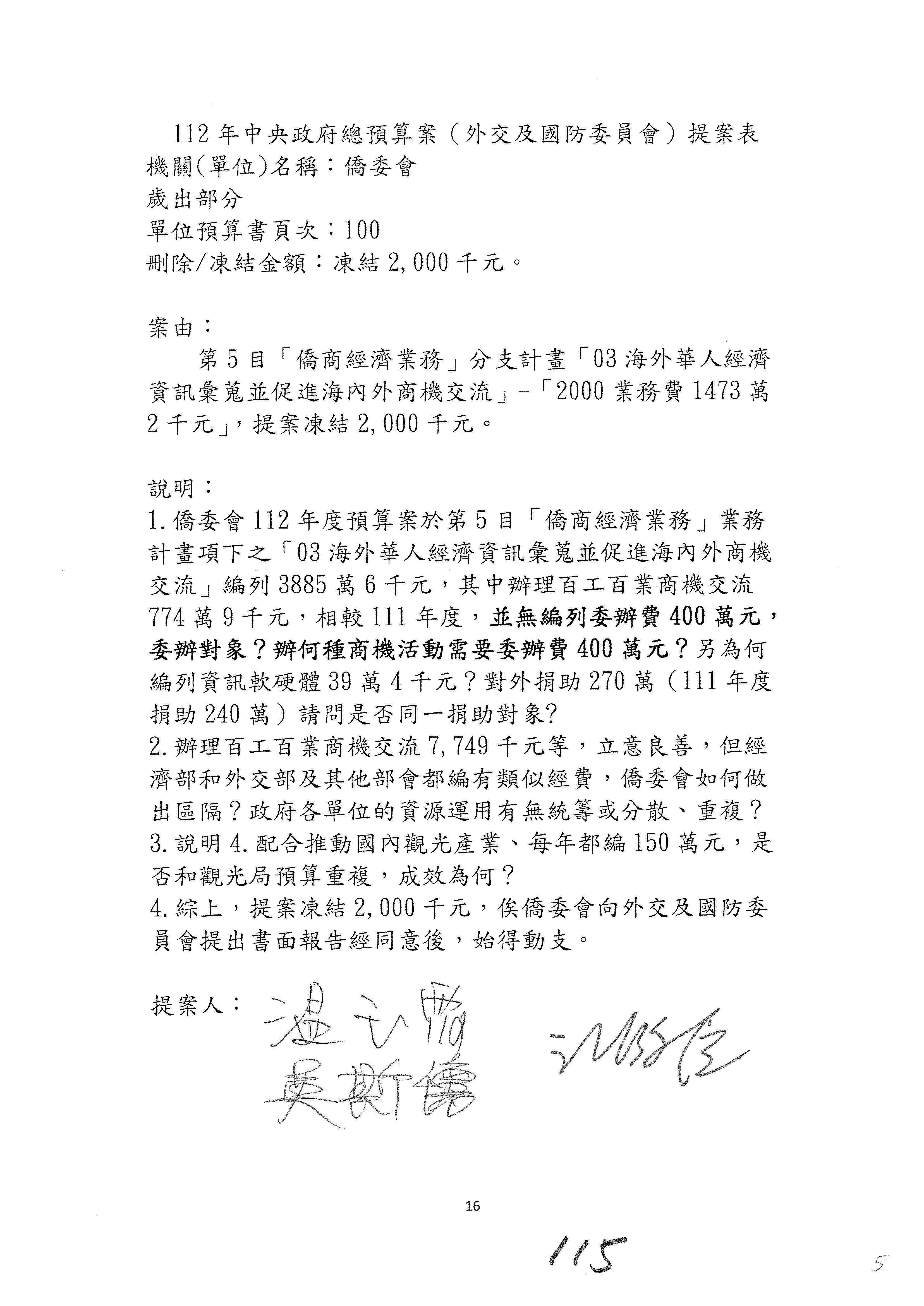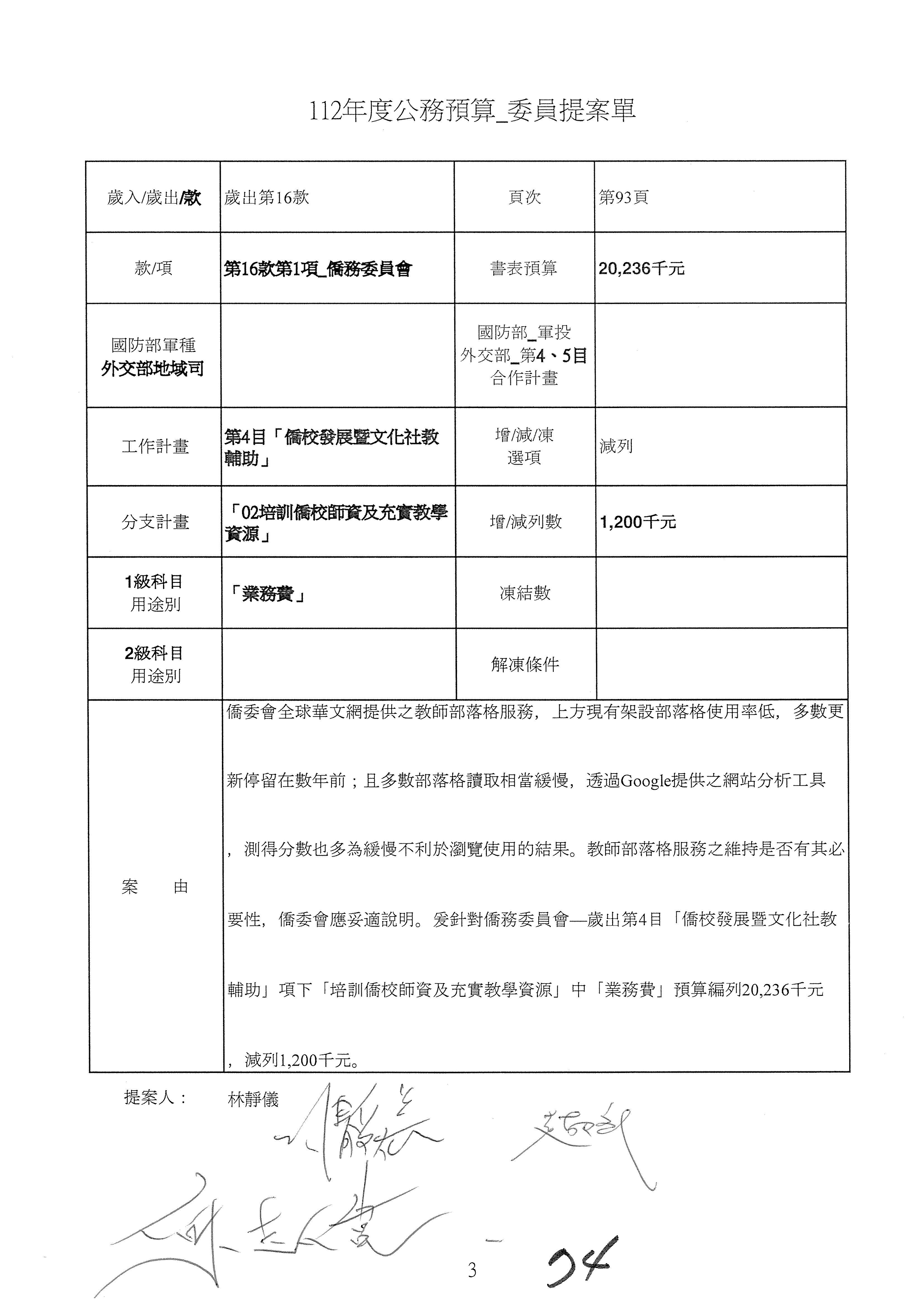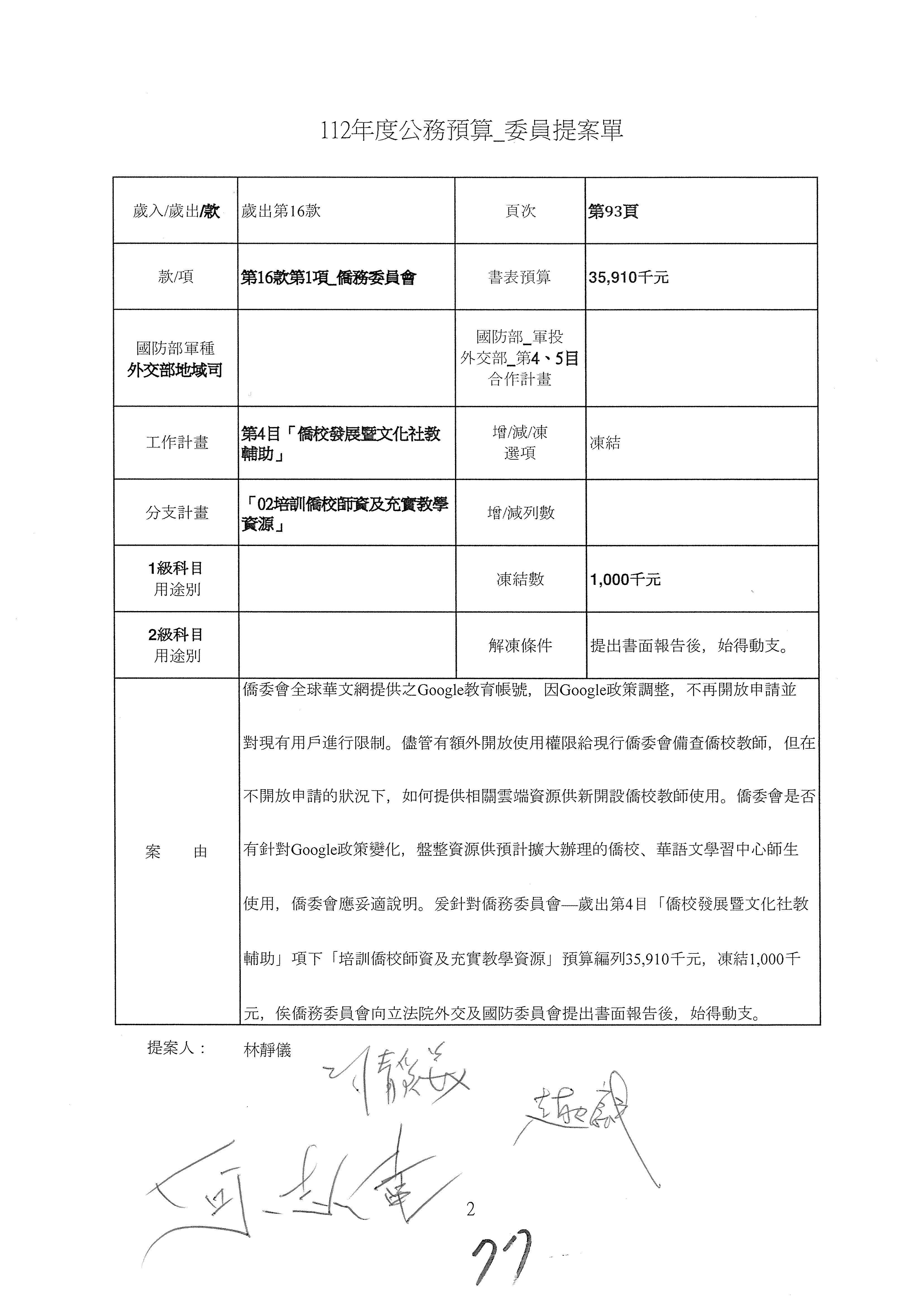 (二)112年度僑務委員會主管預算提案單(公開部分):