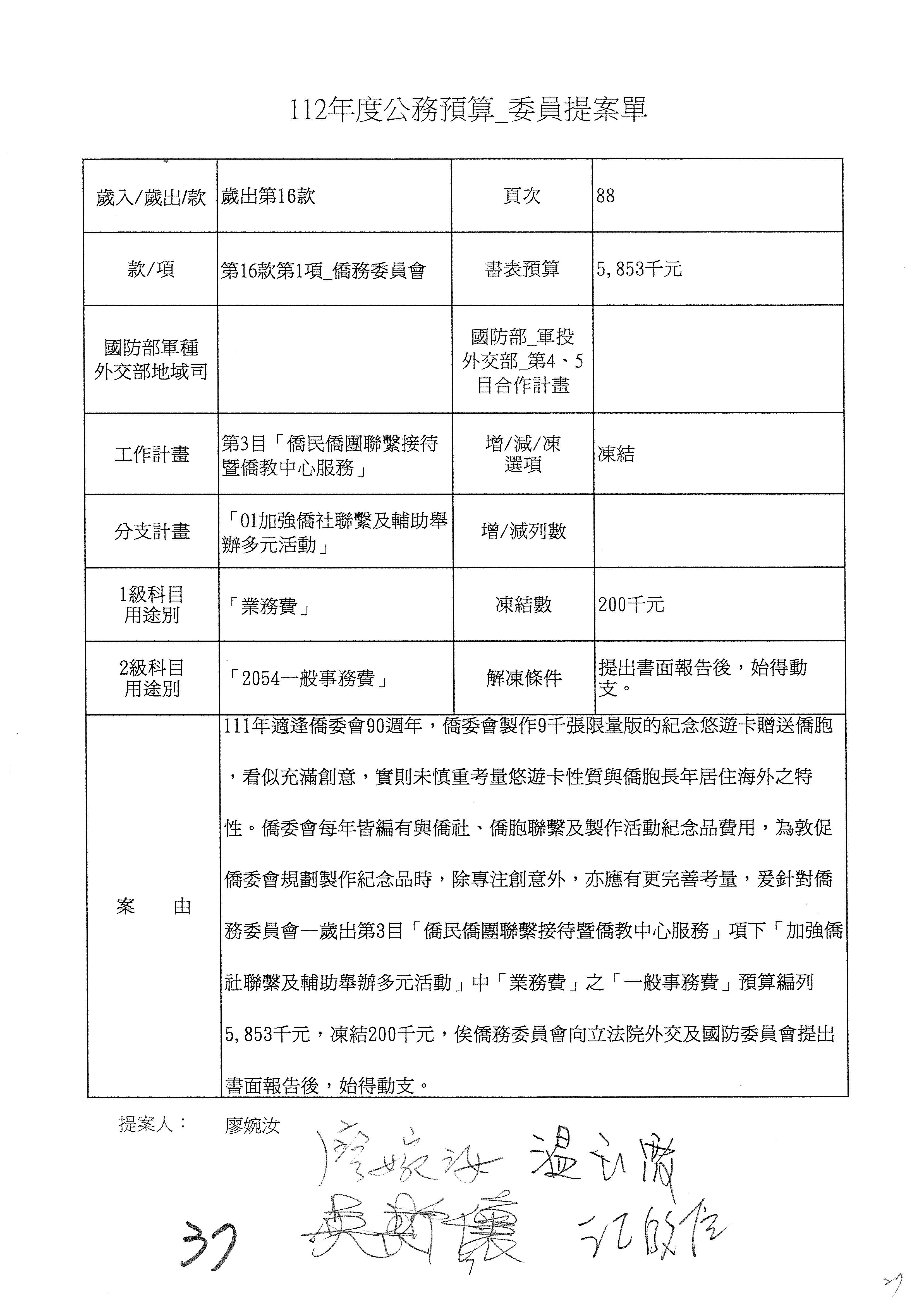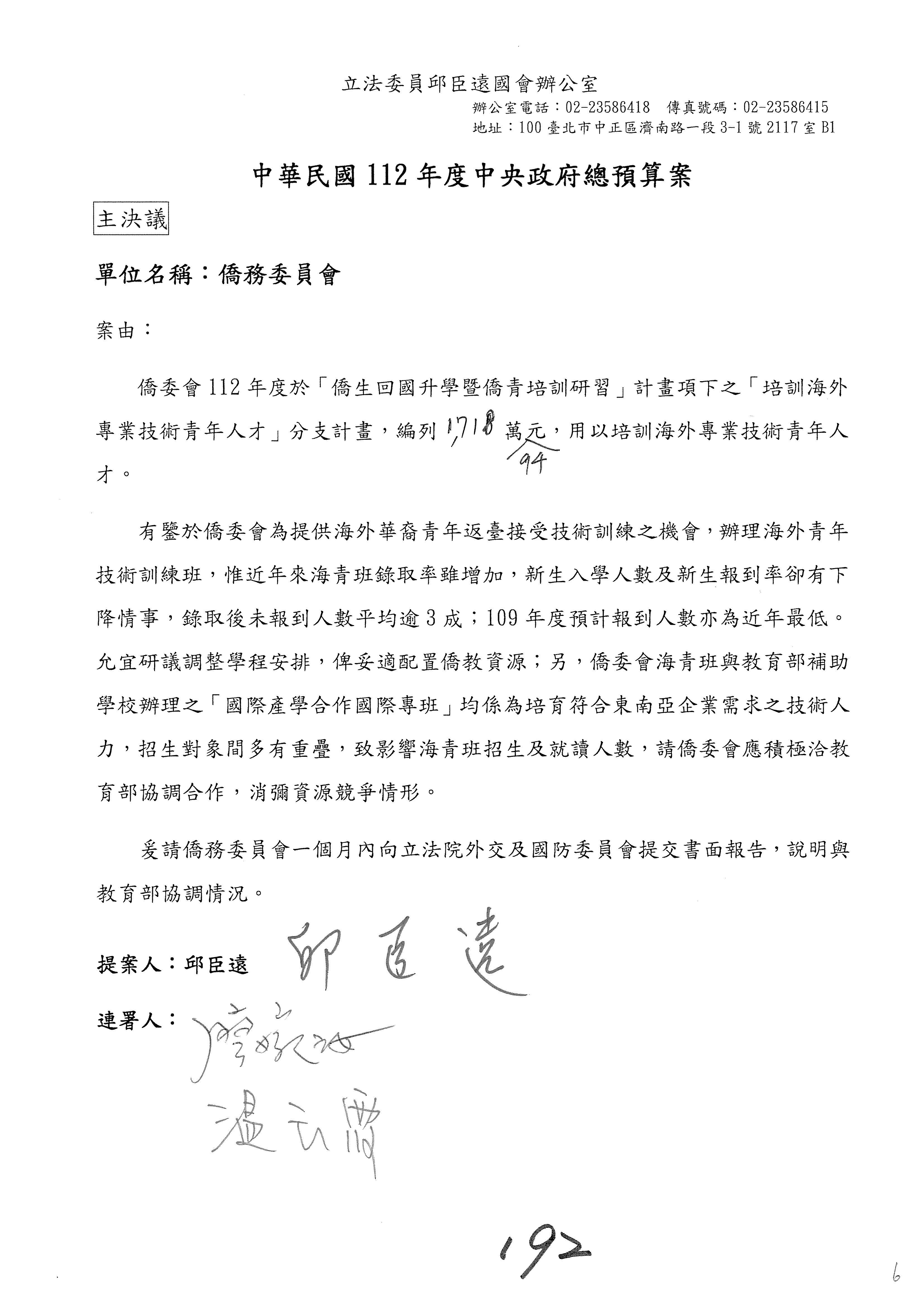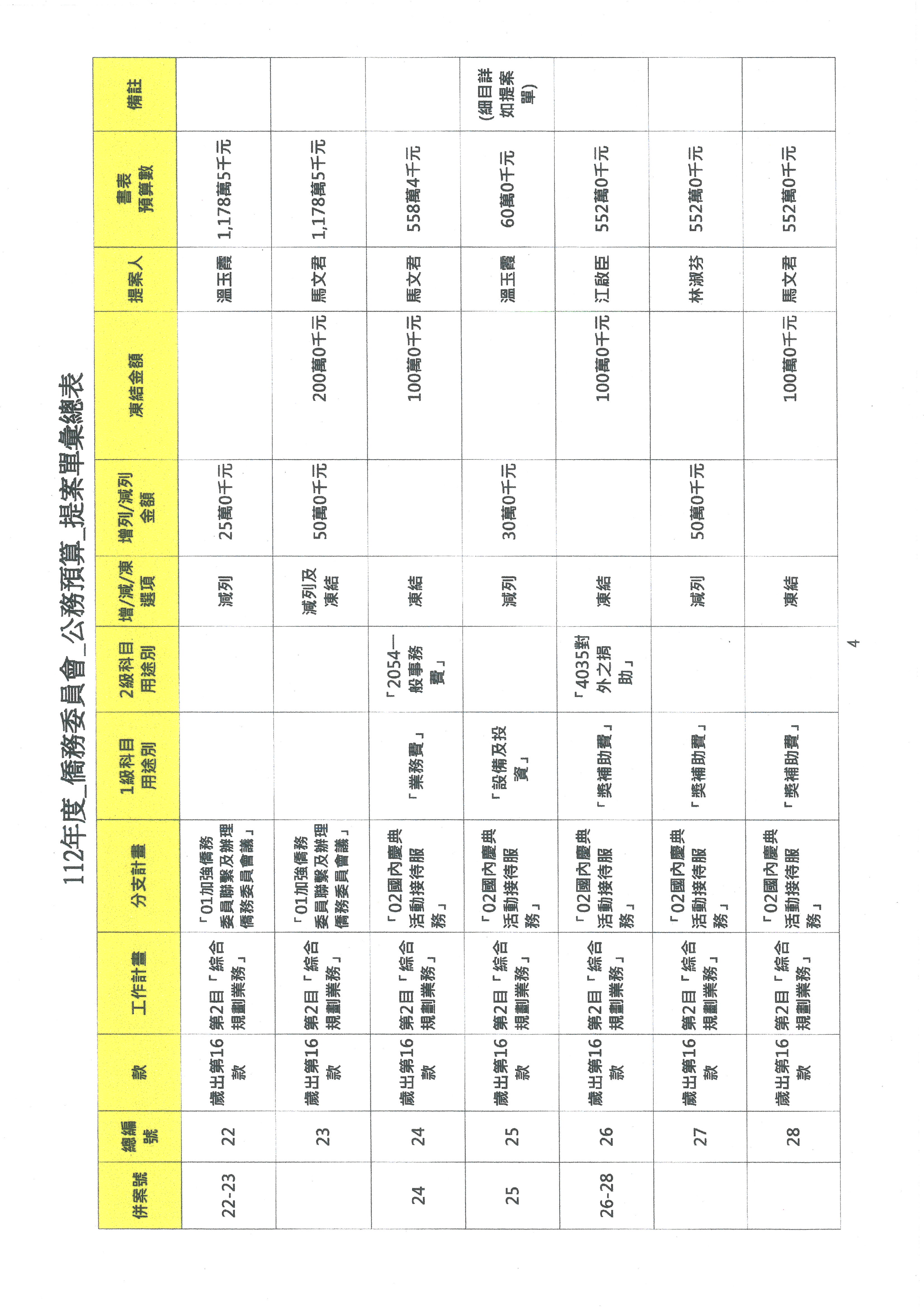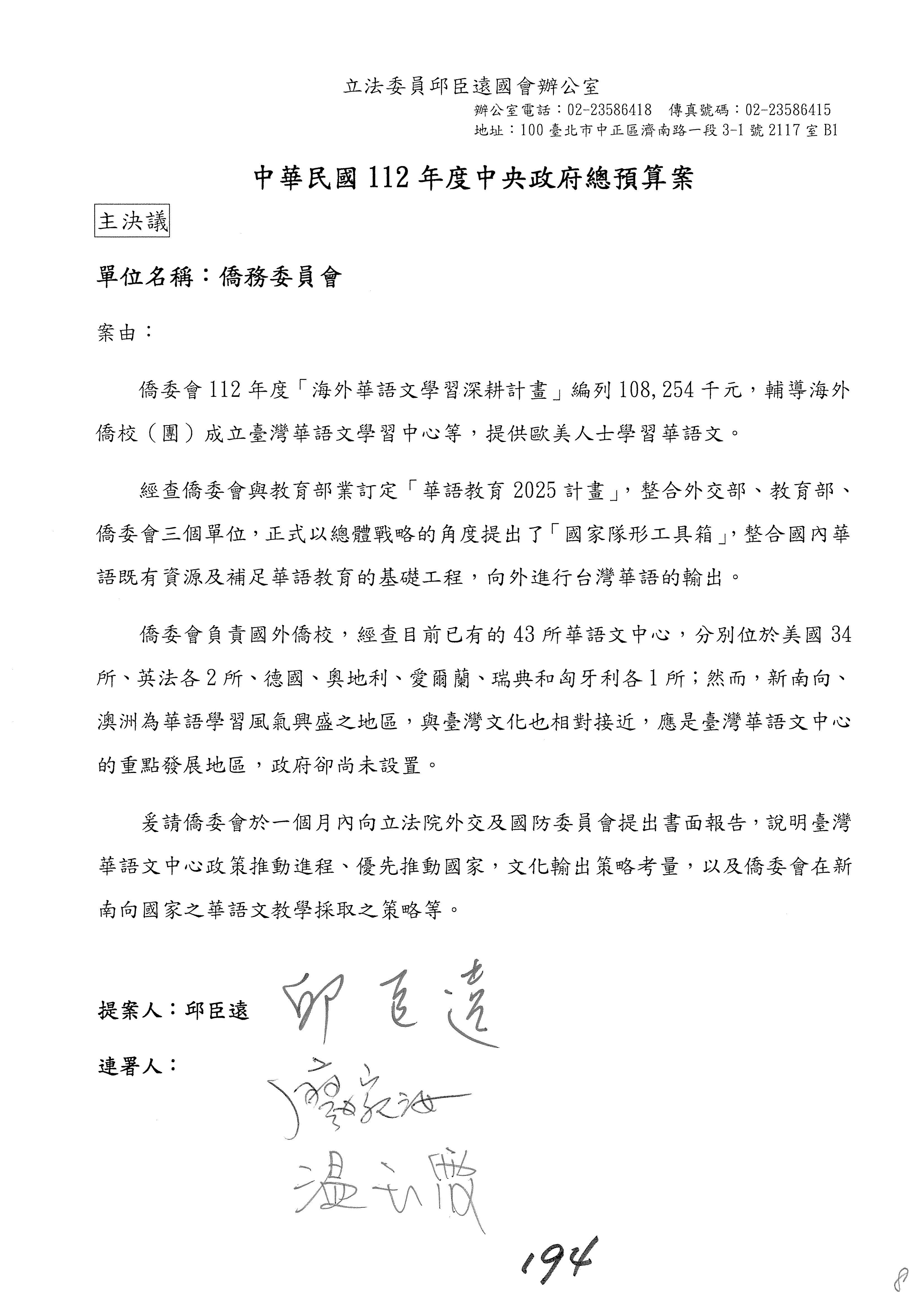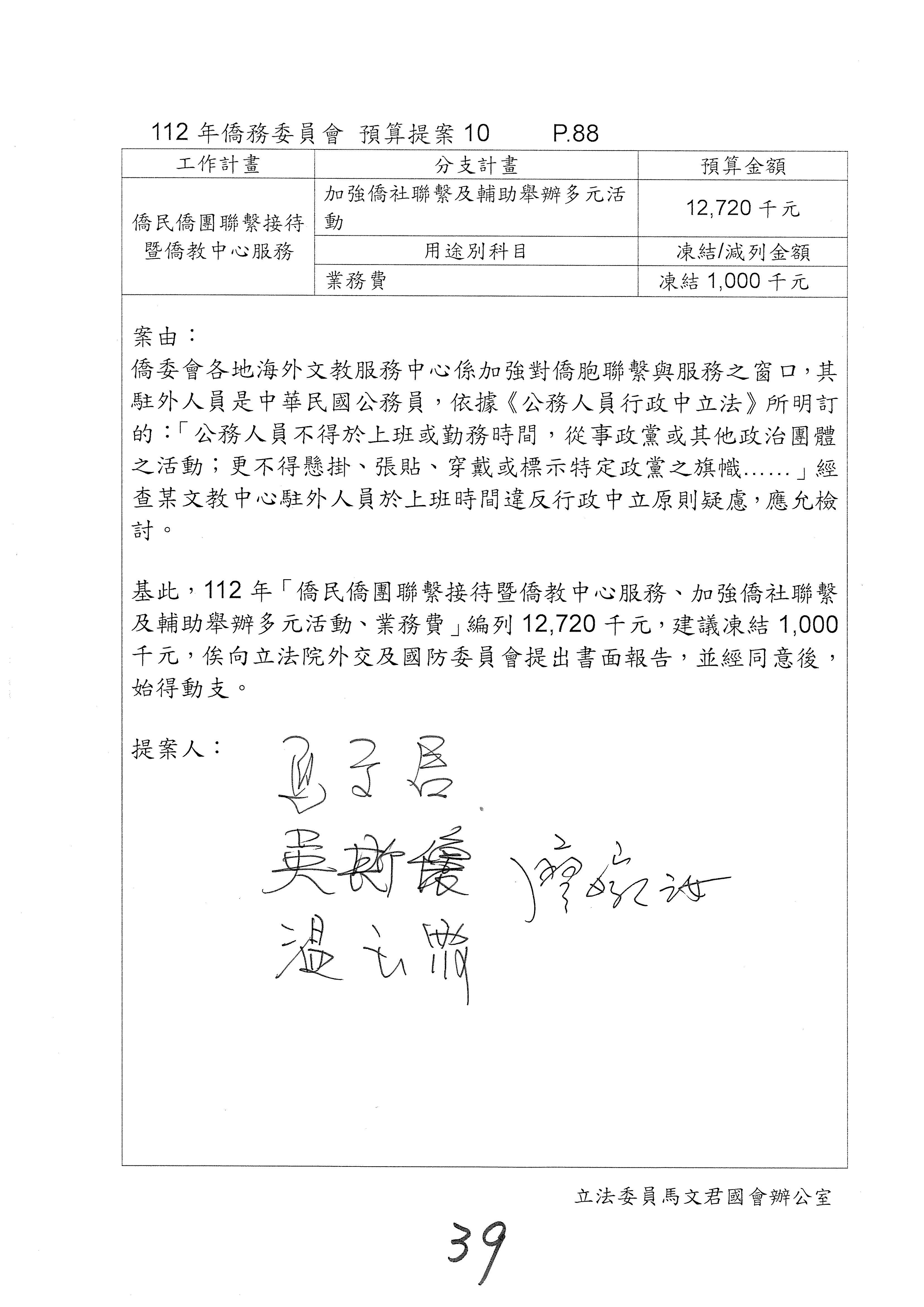 (二)112年度僑務委員會主管預算提案單(公開部分):