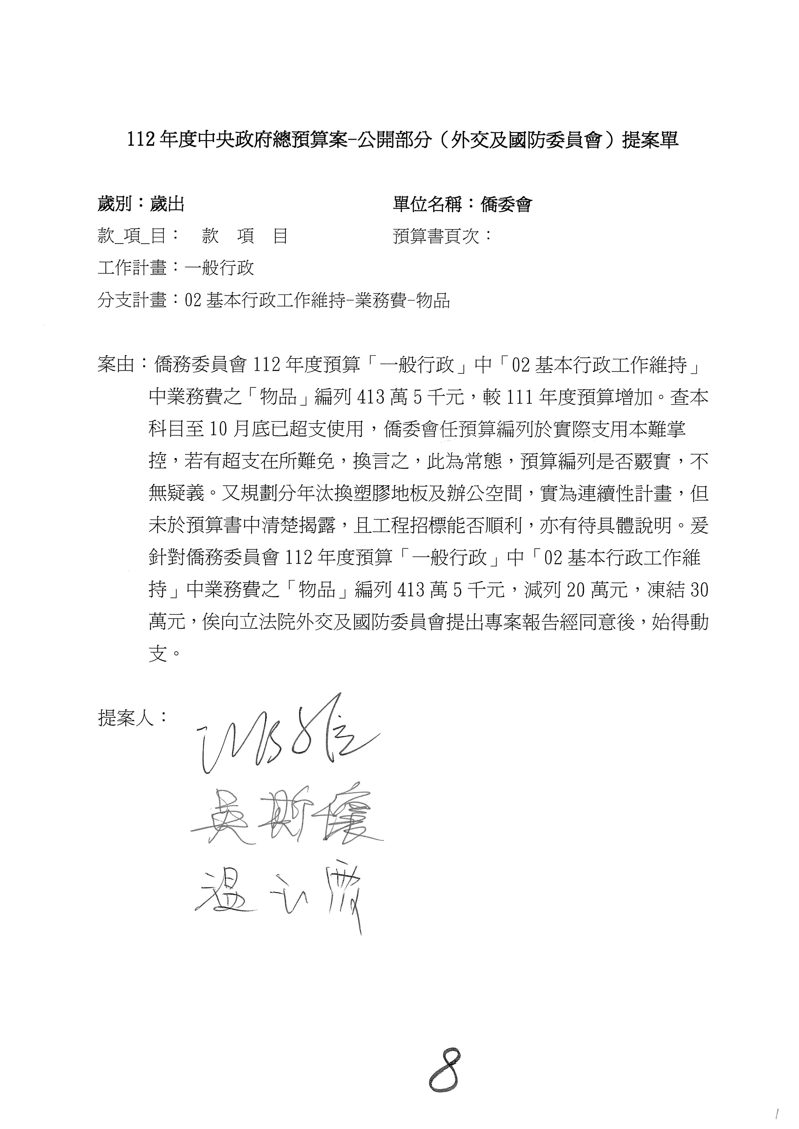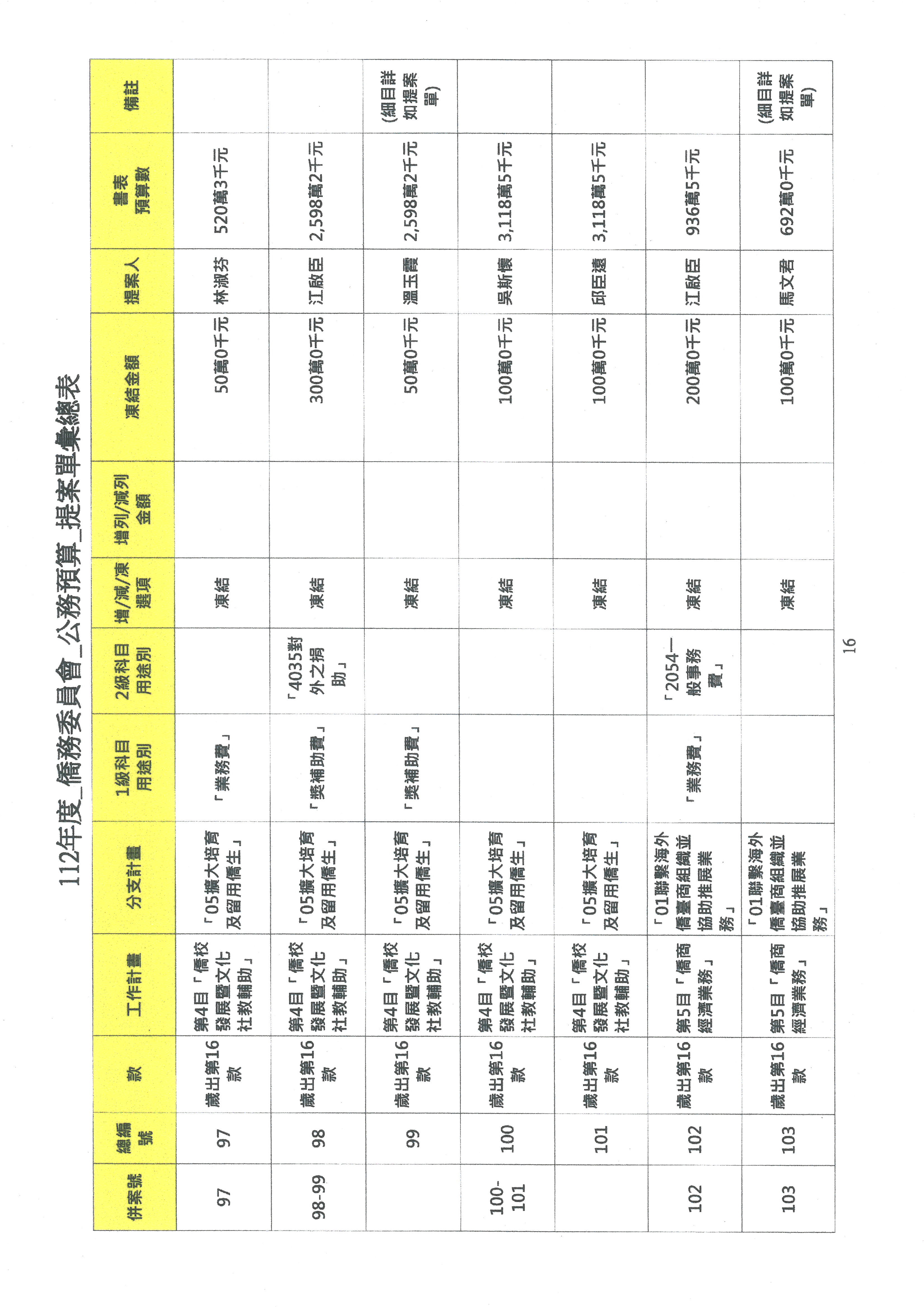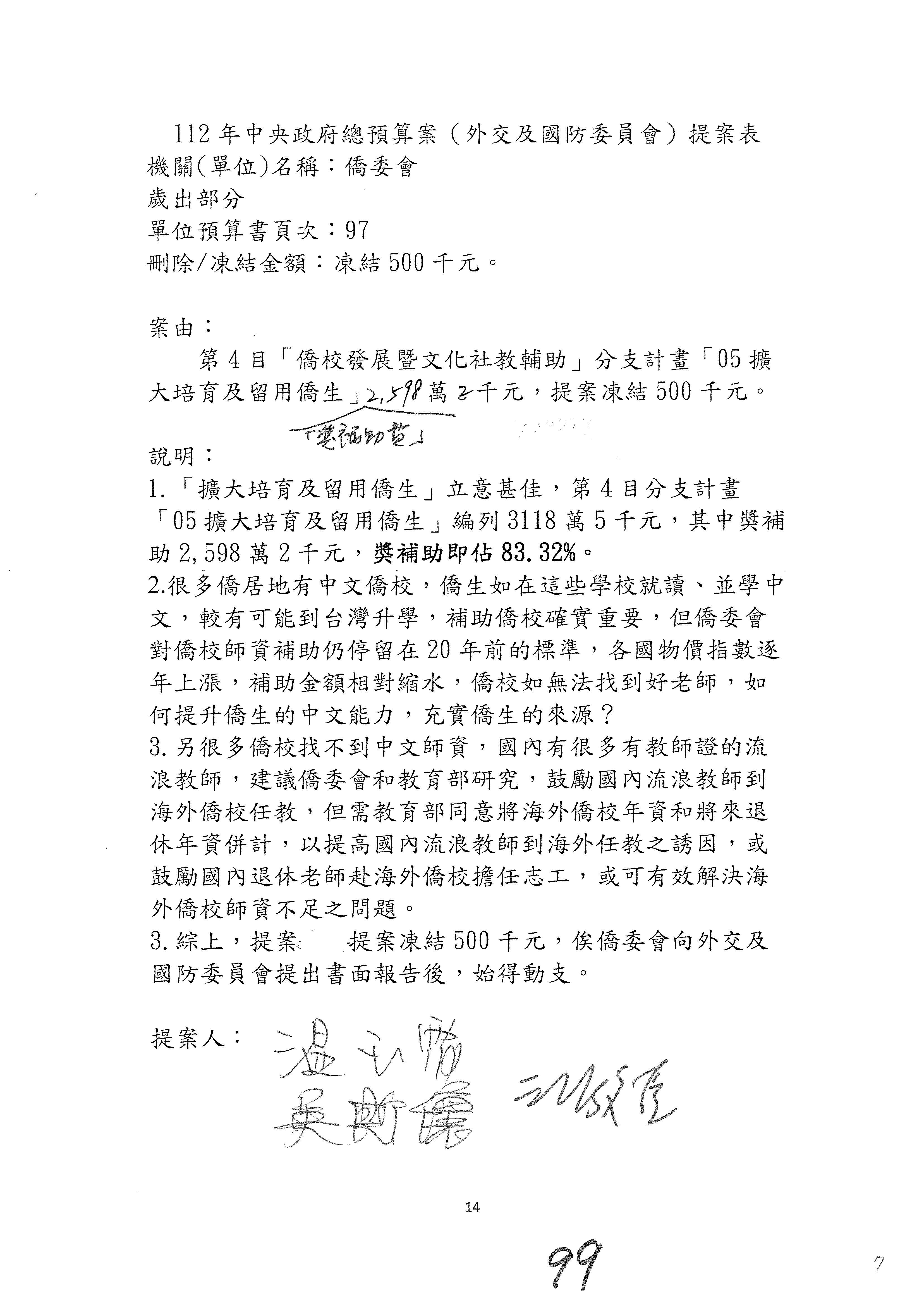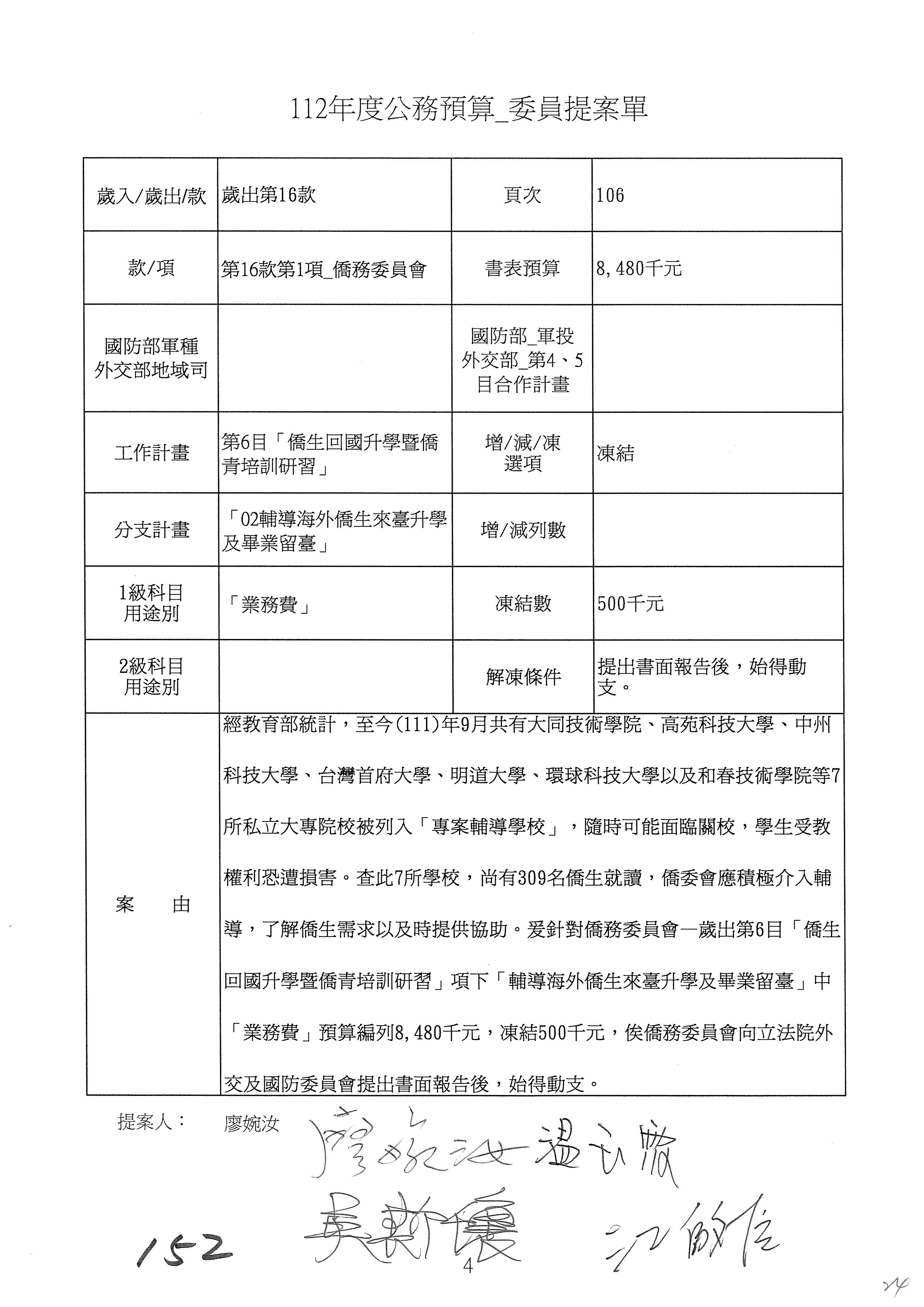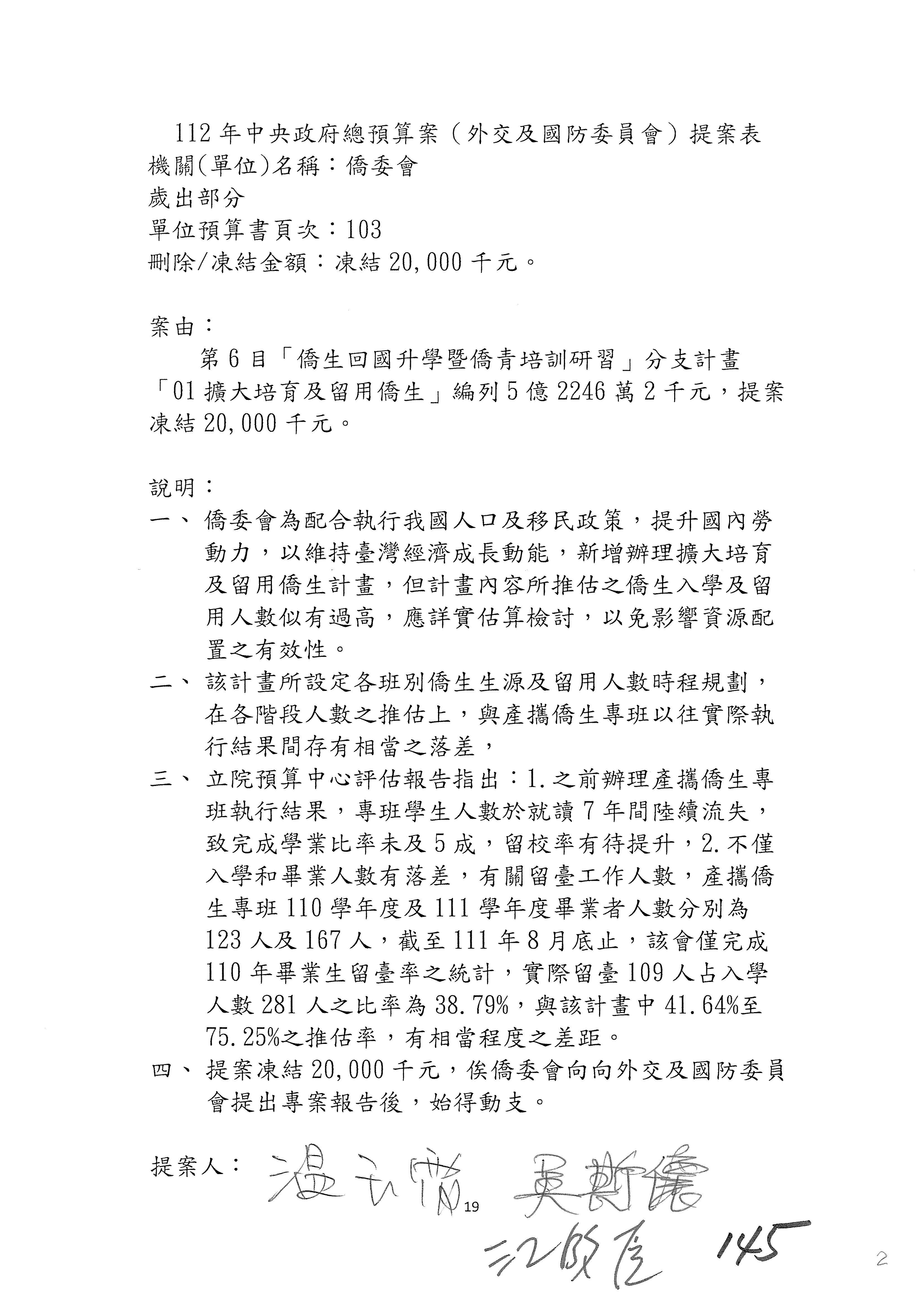 (二)112年度僑務委員會主管預算提案單(公開部分):
