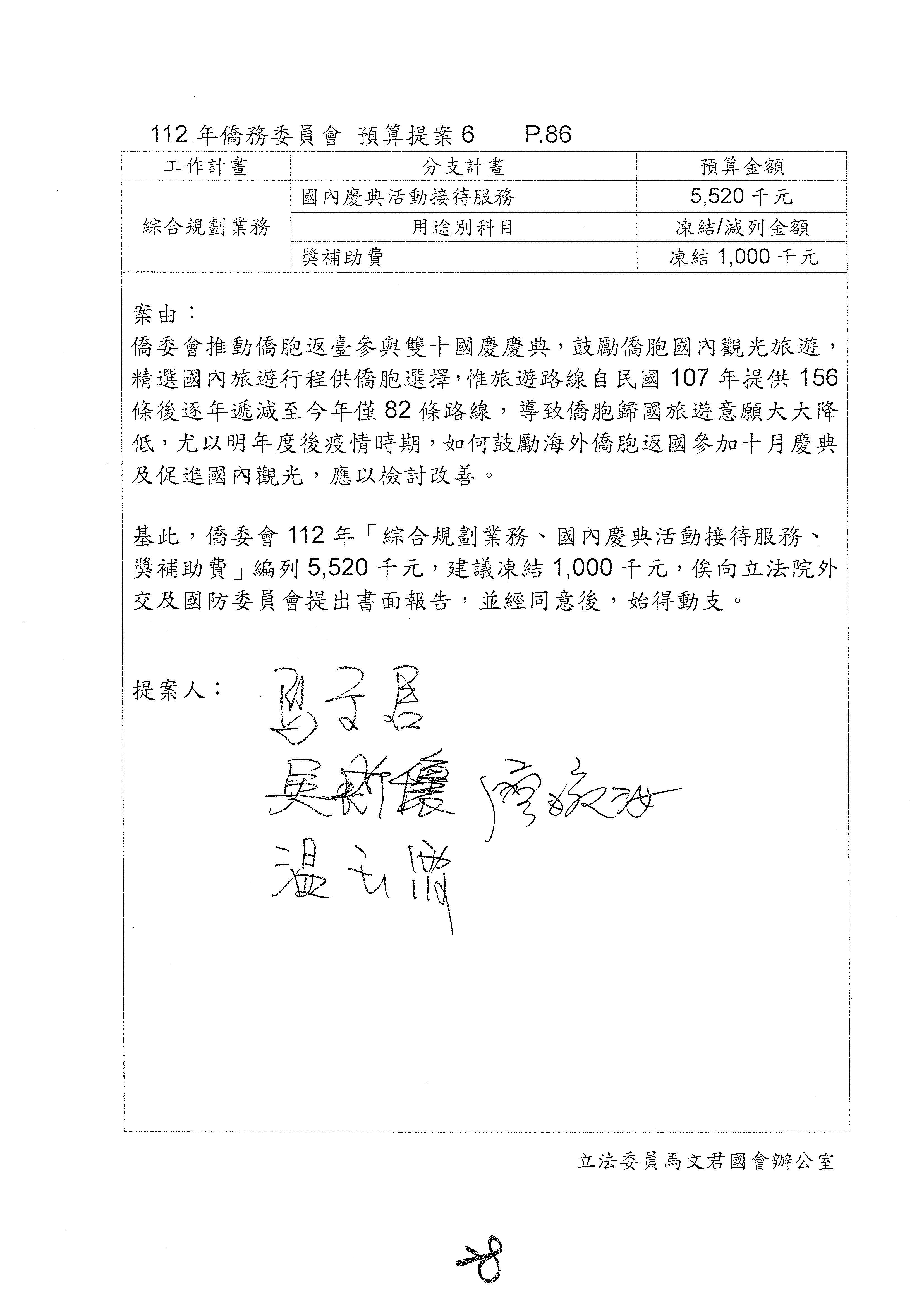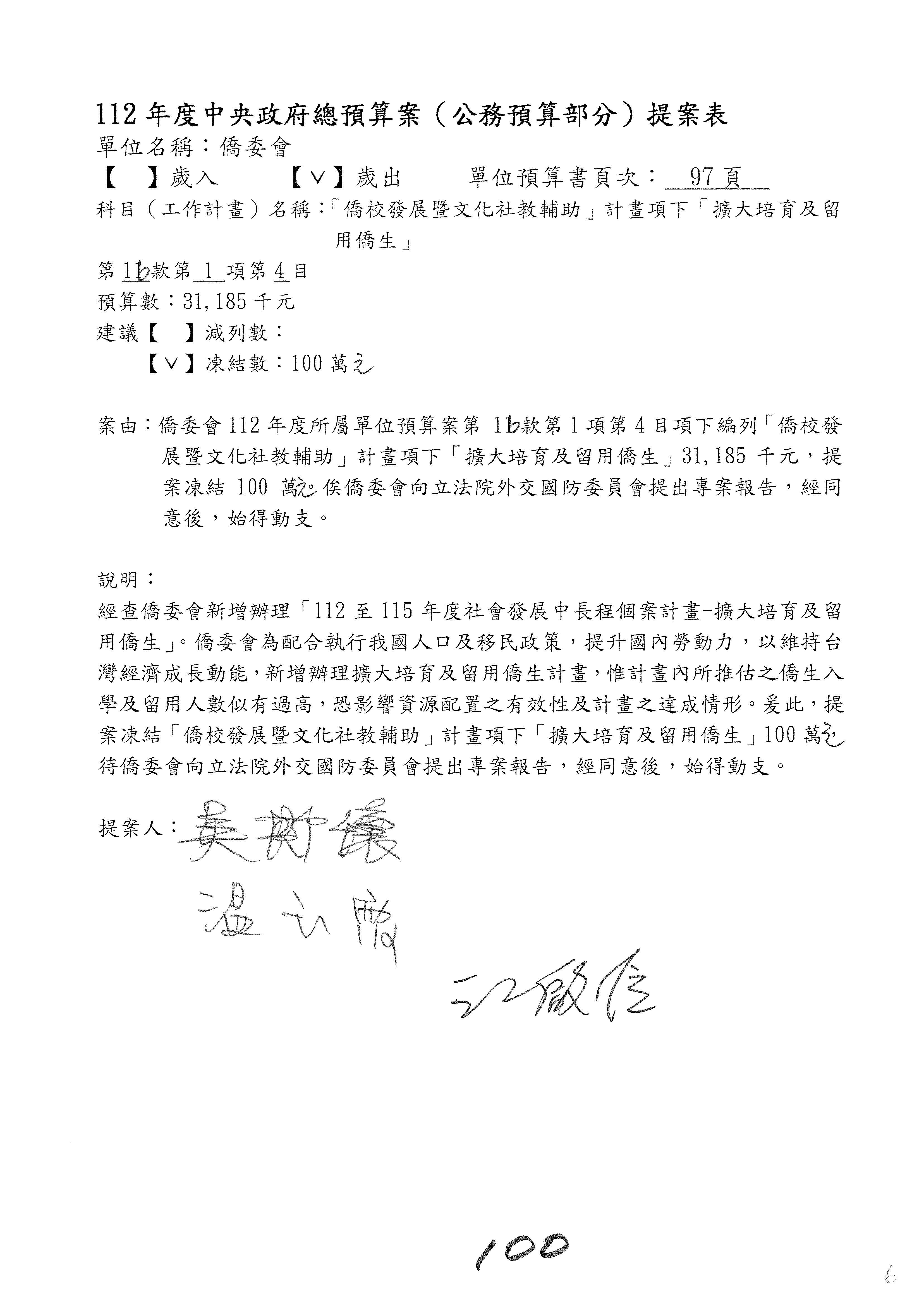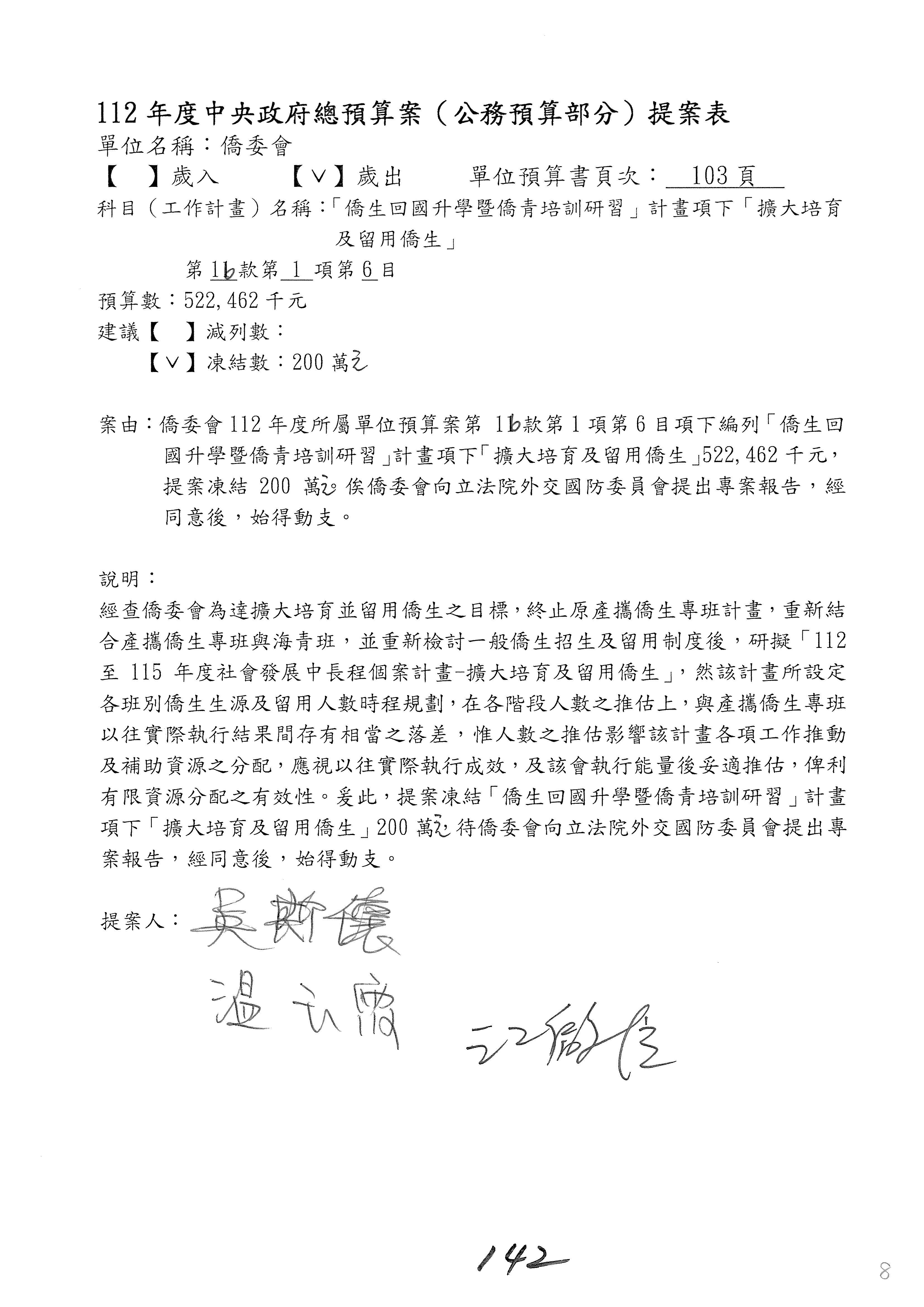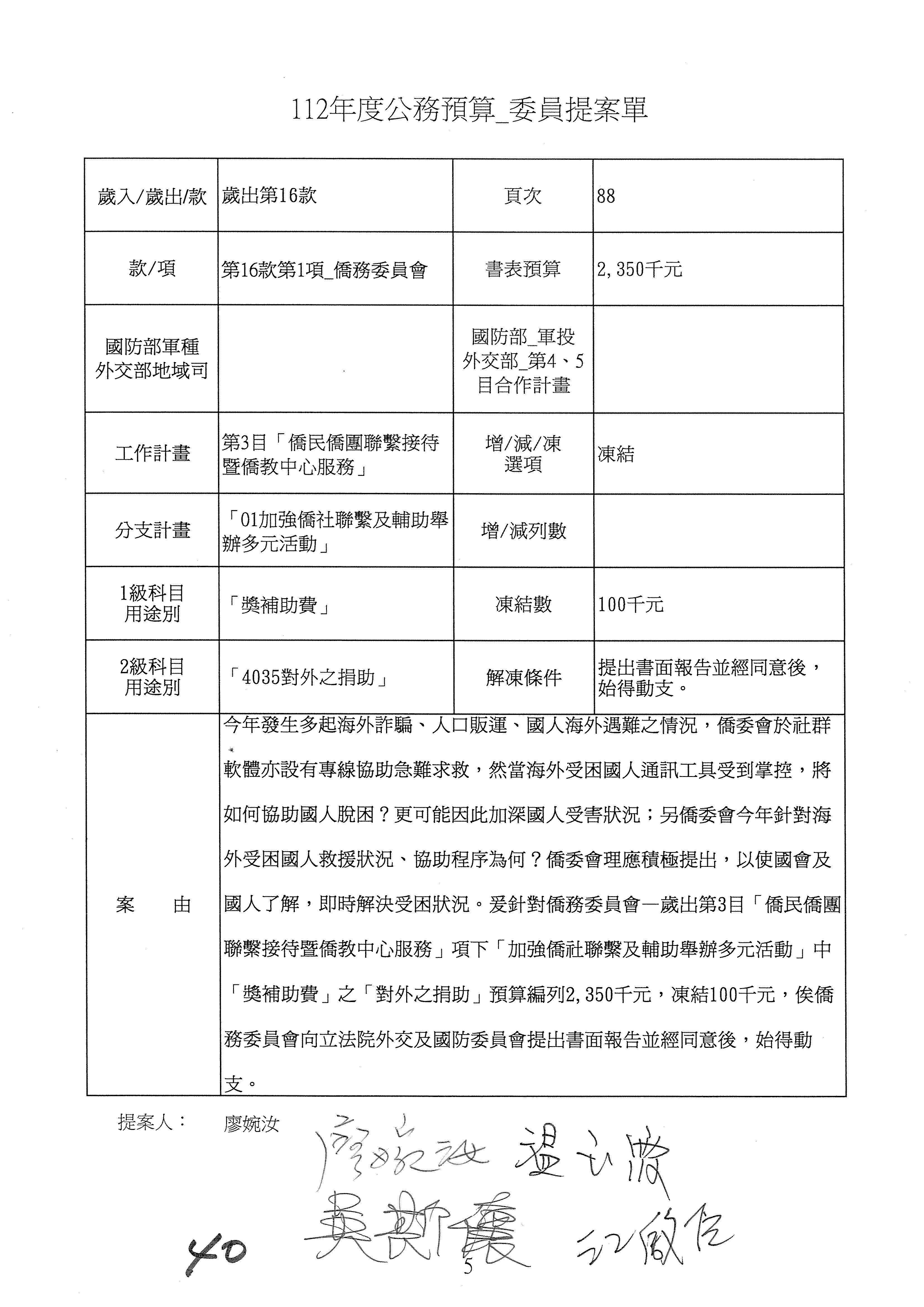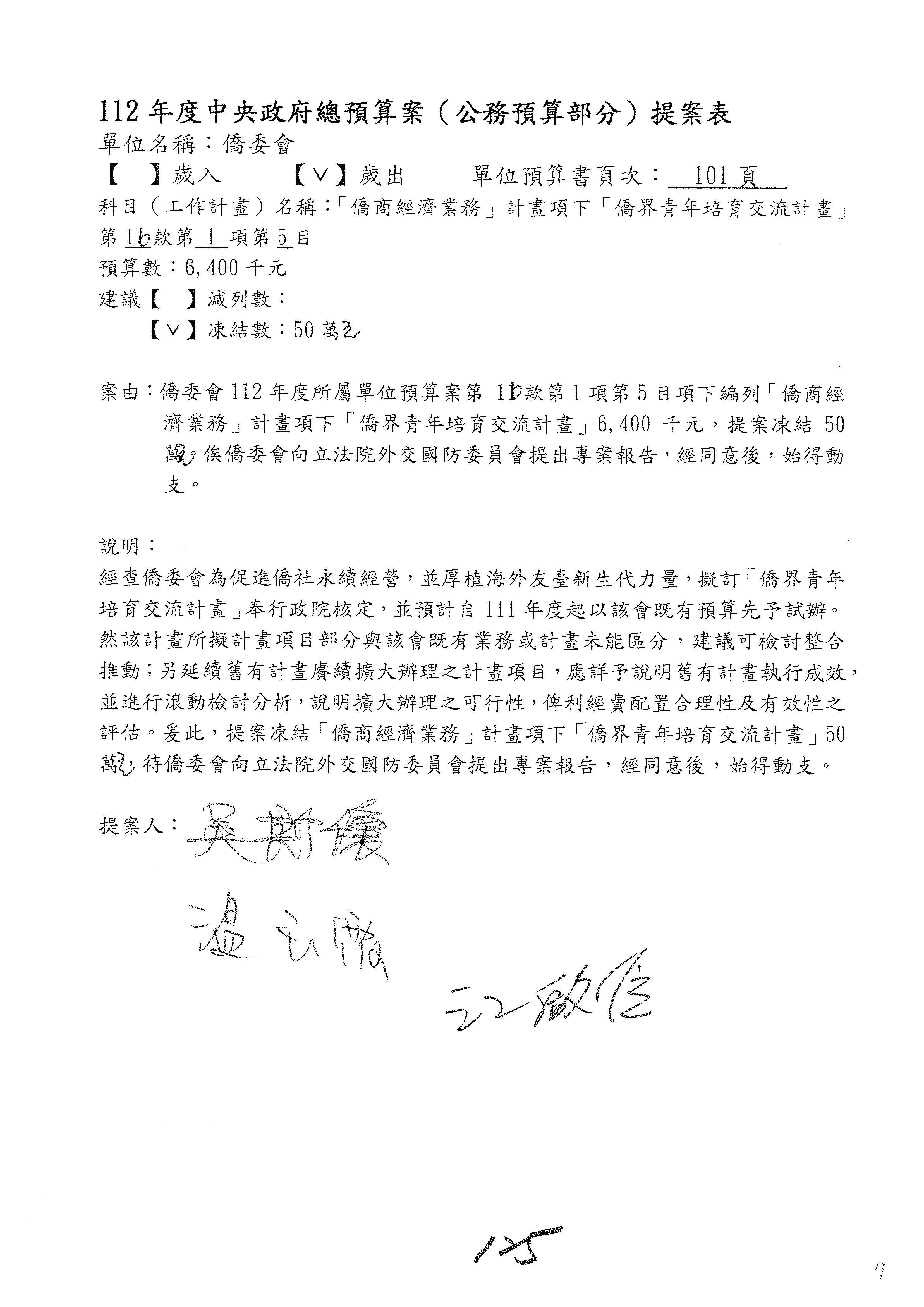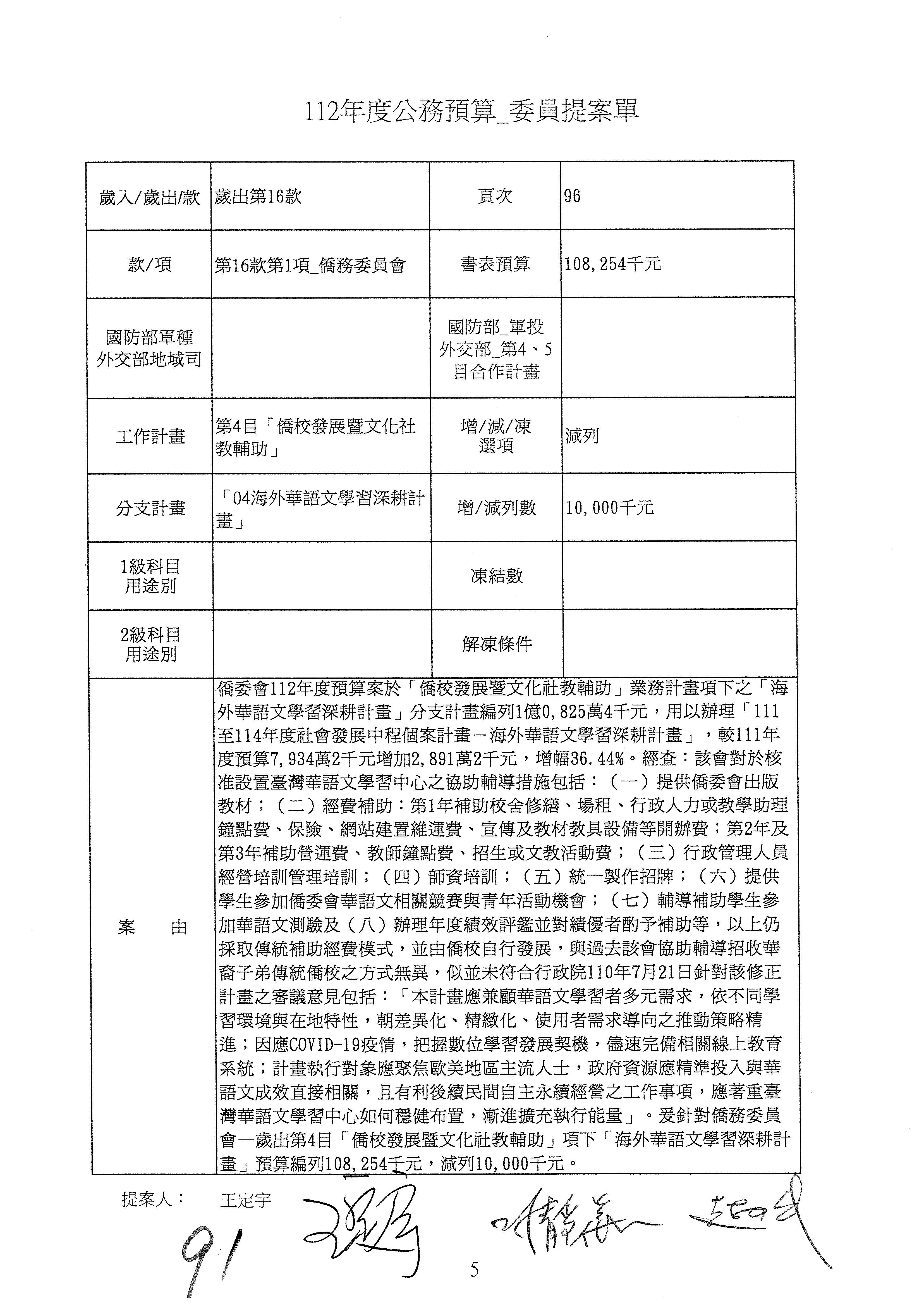 (二)112年度僑務委員會主管預算提案單(公開部分):