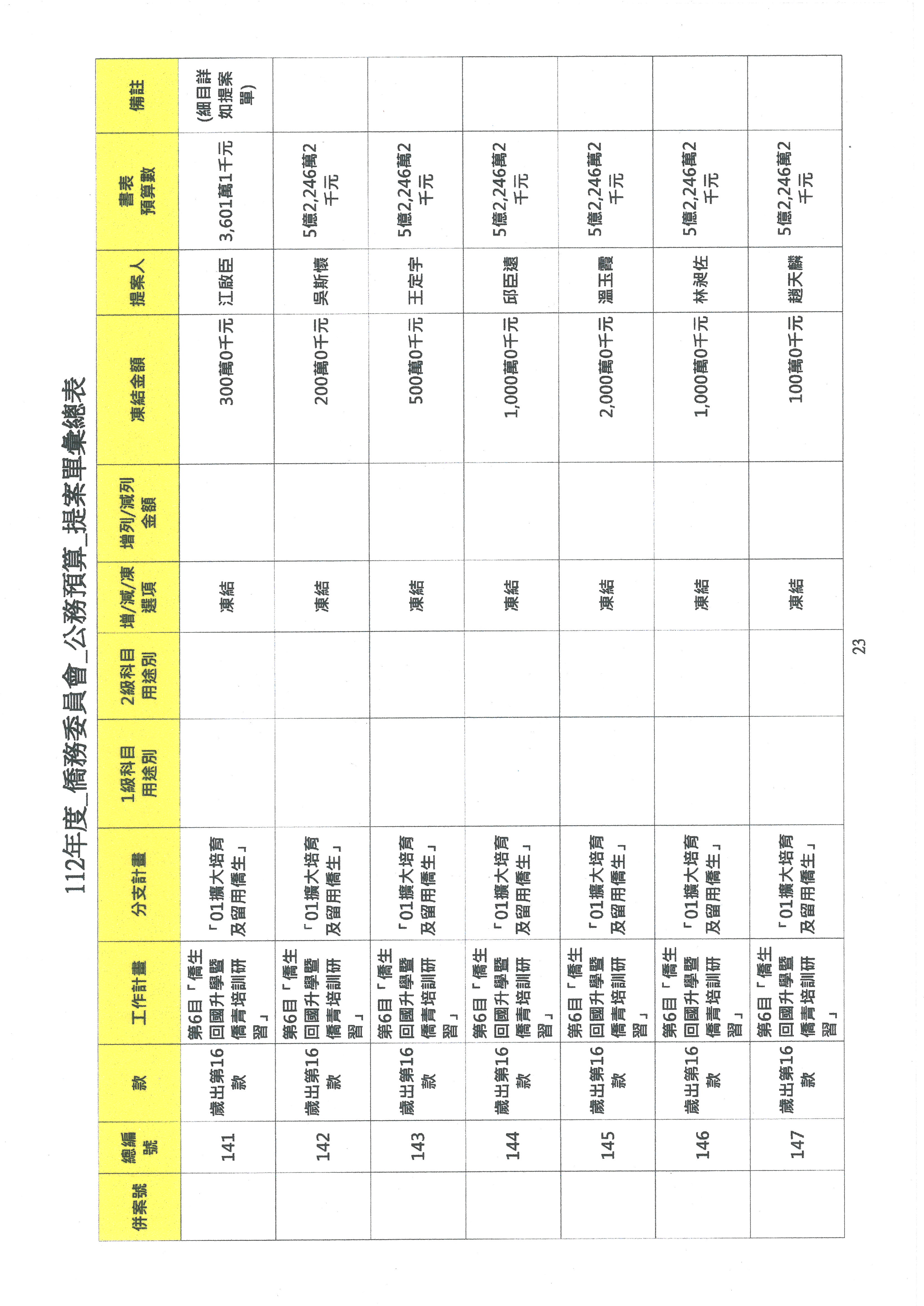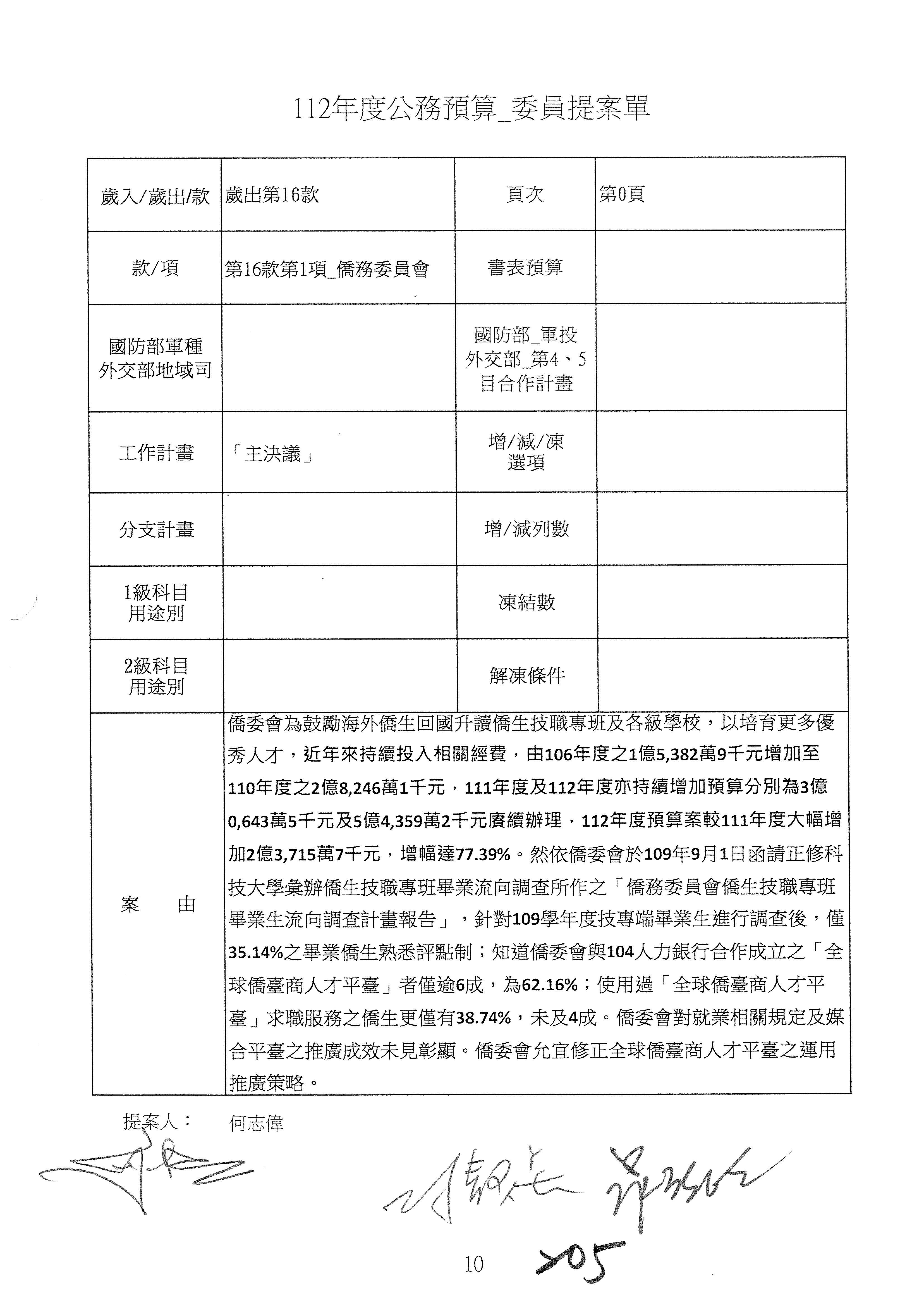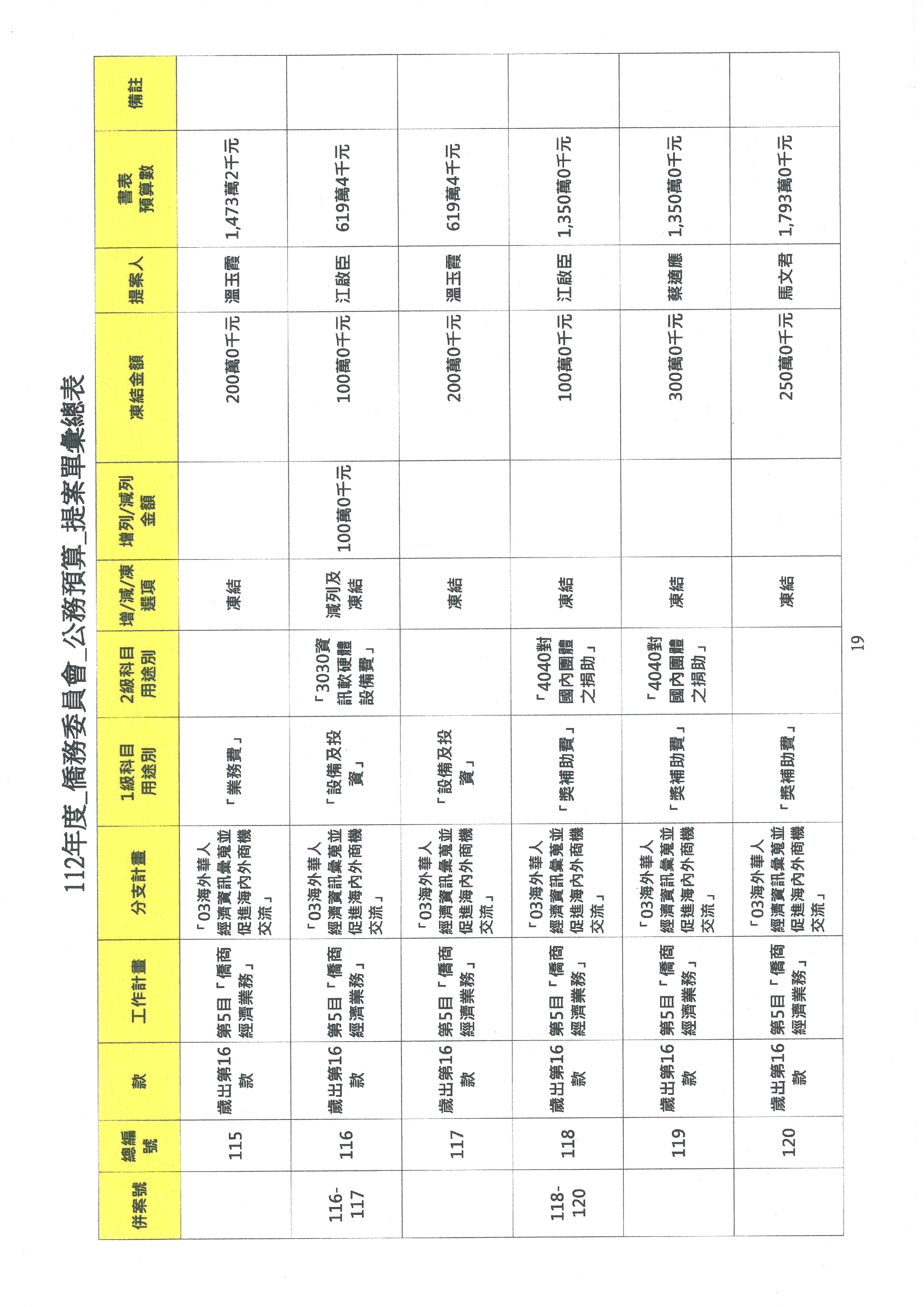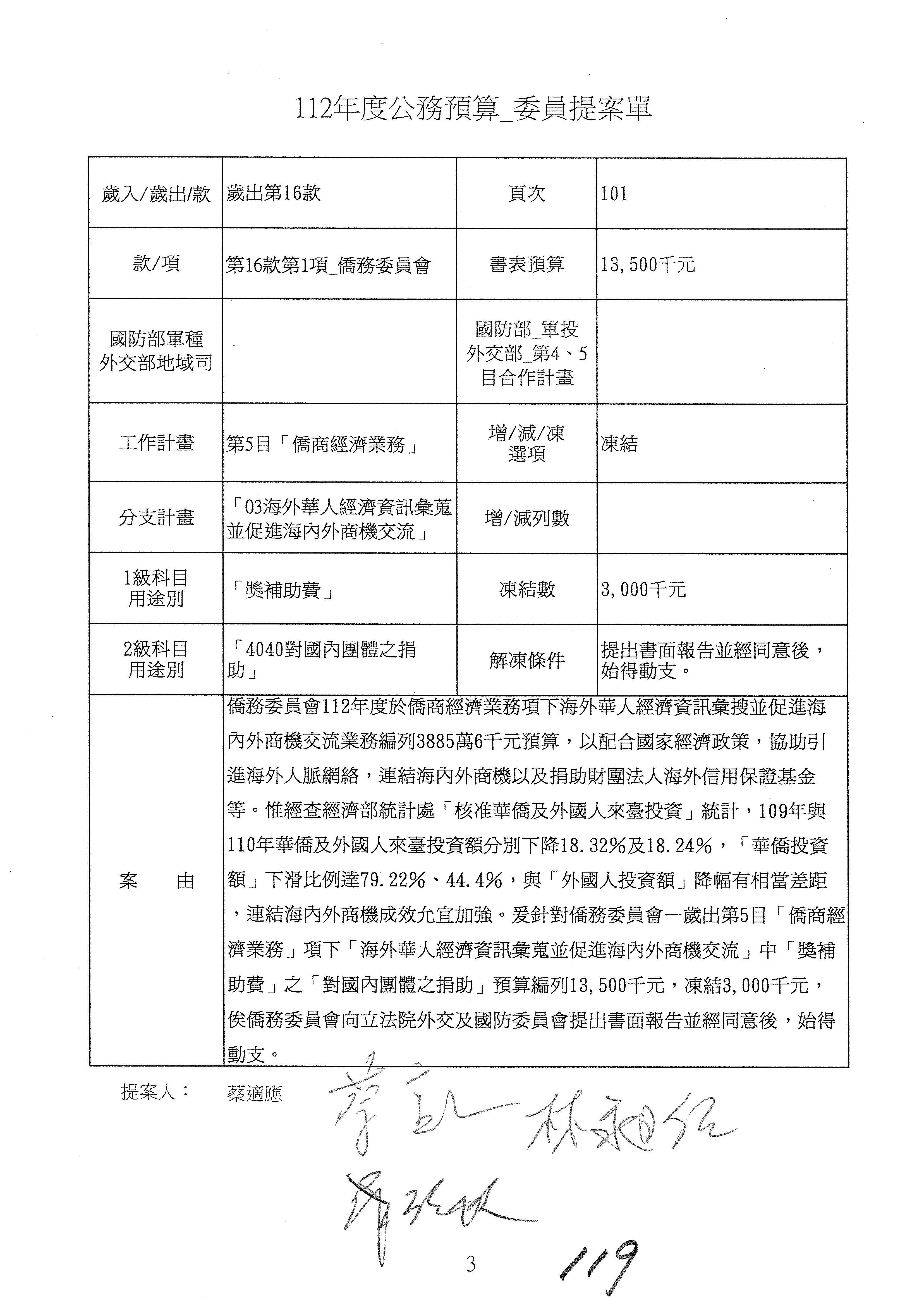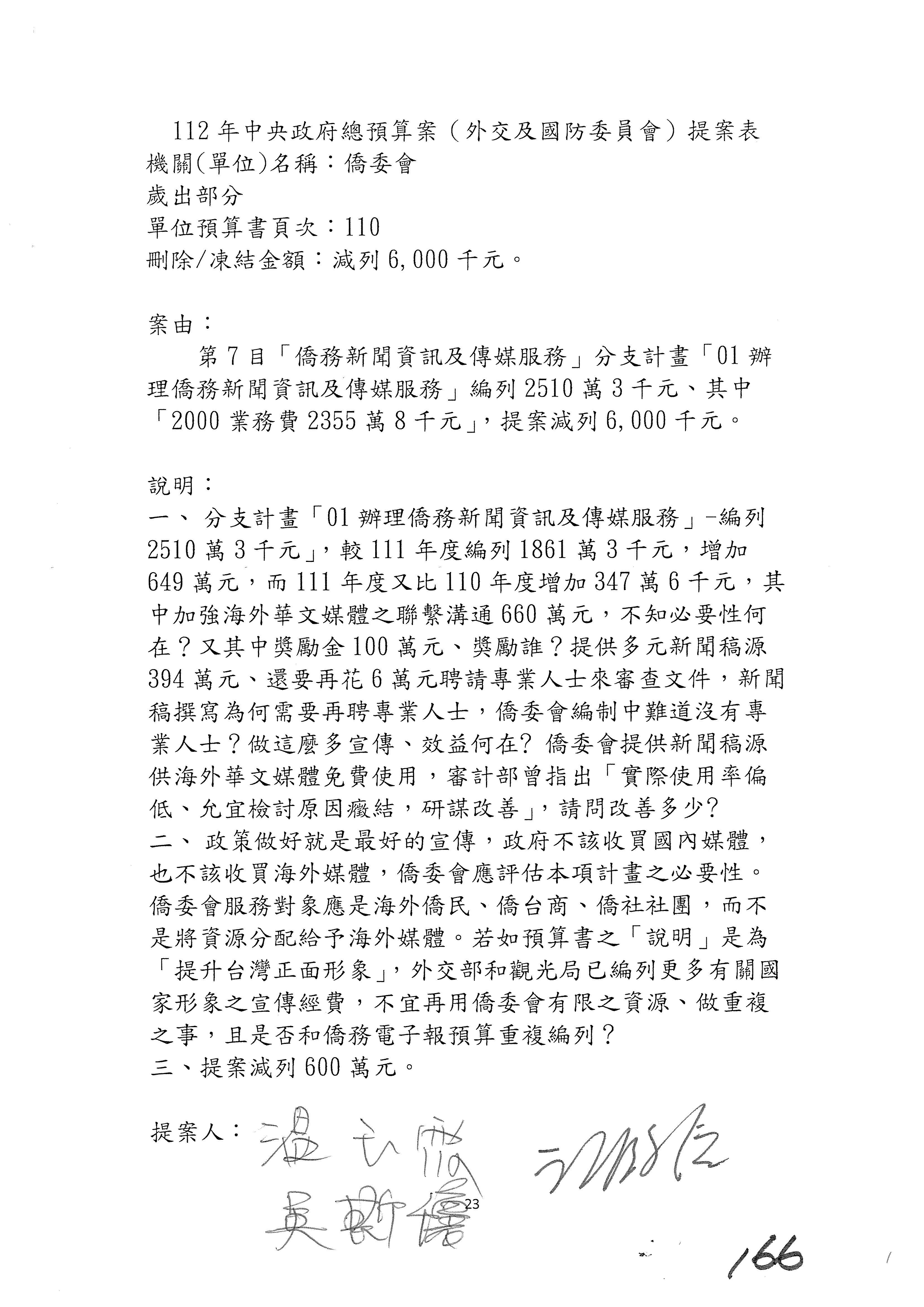 (二)112年度僑務委員會主管預算提案單(公開部分):