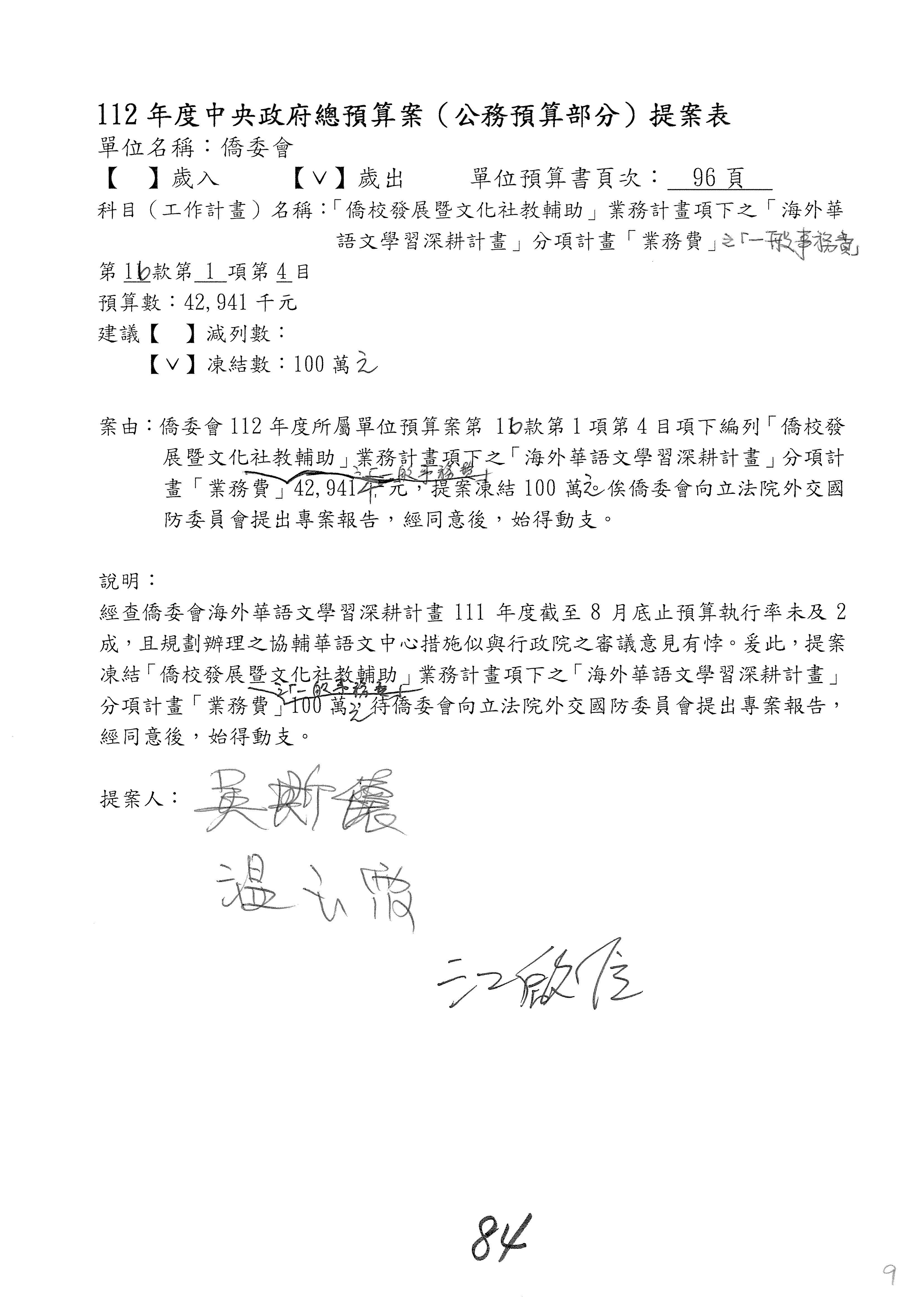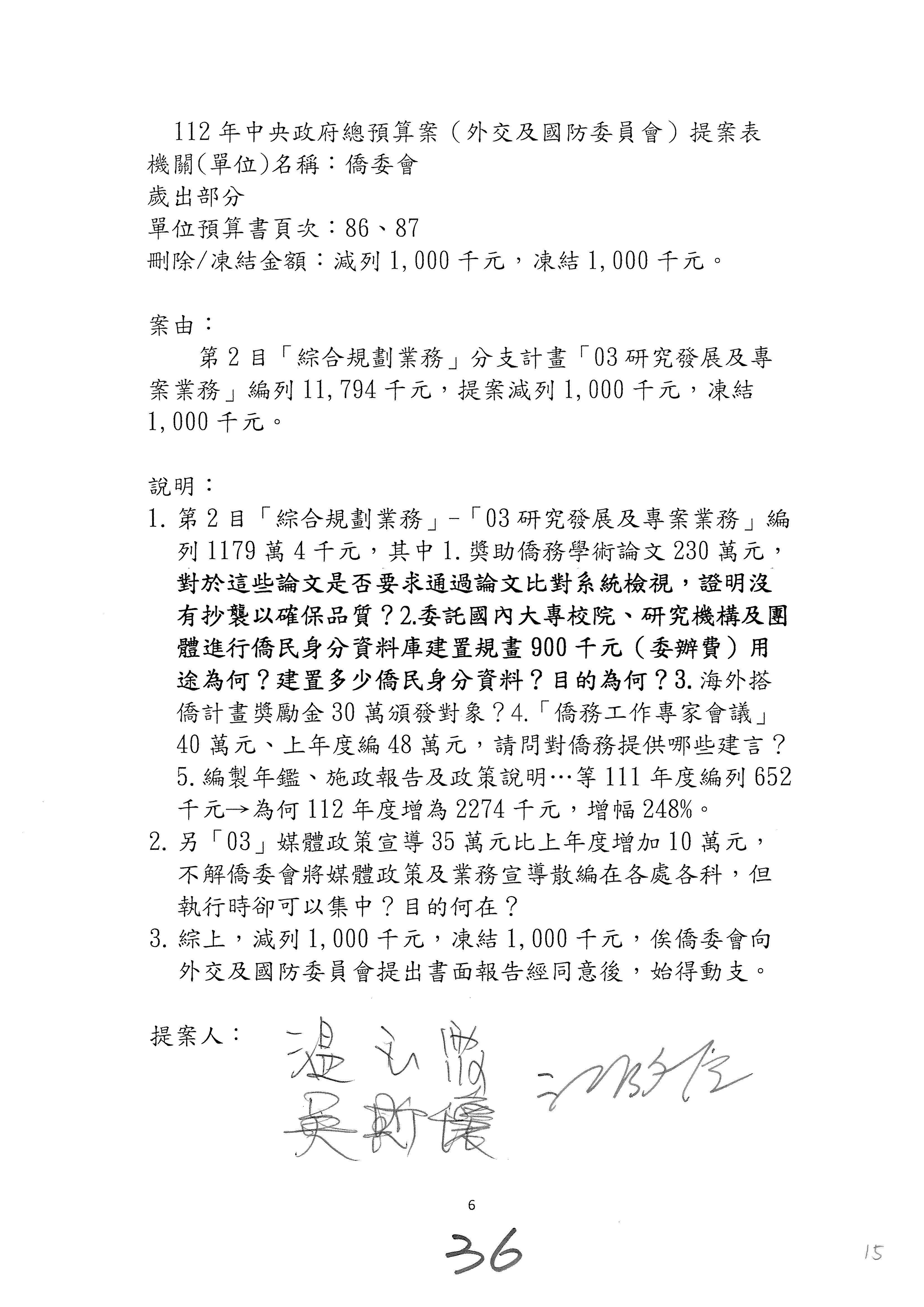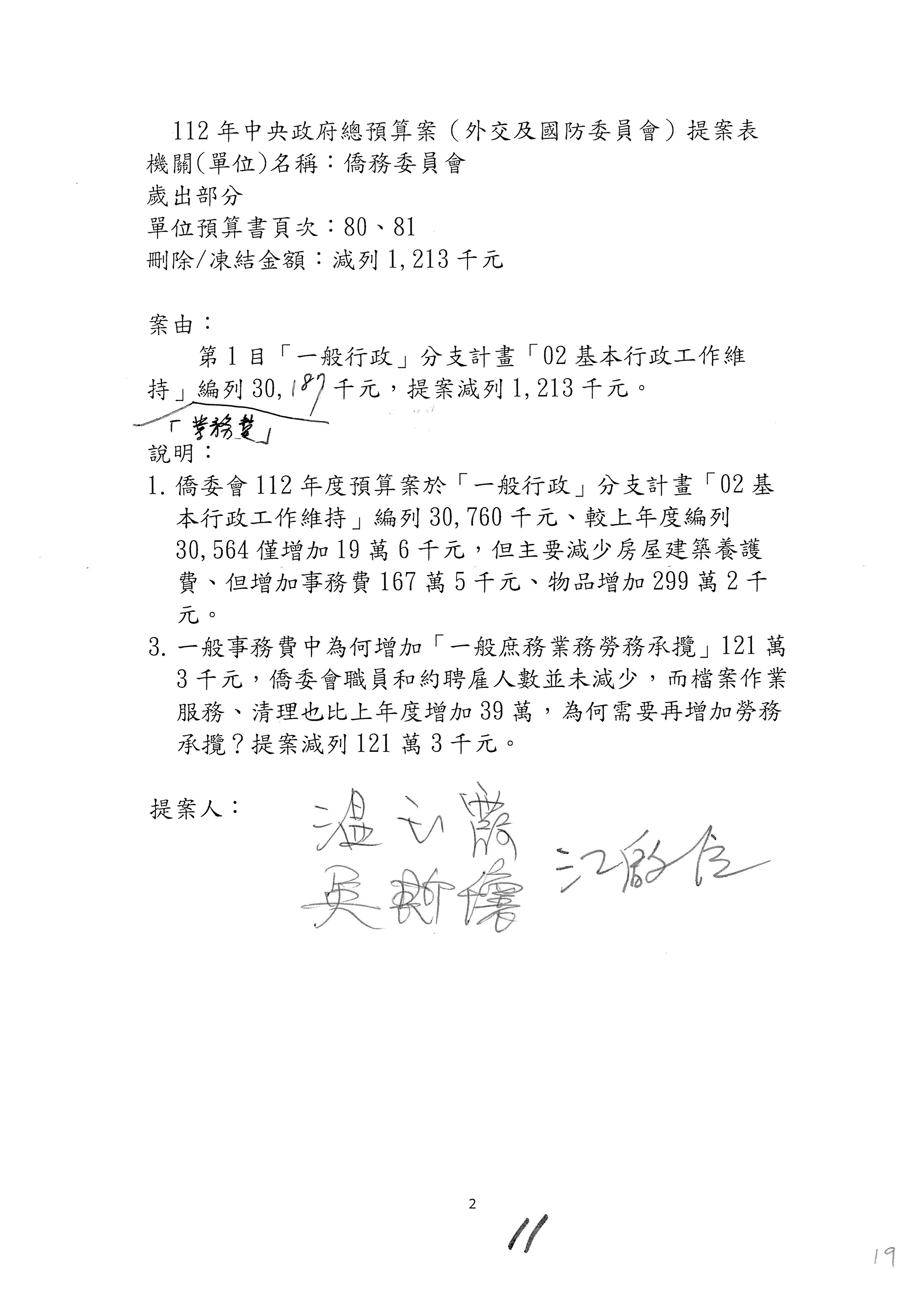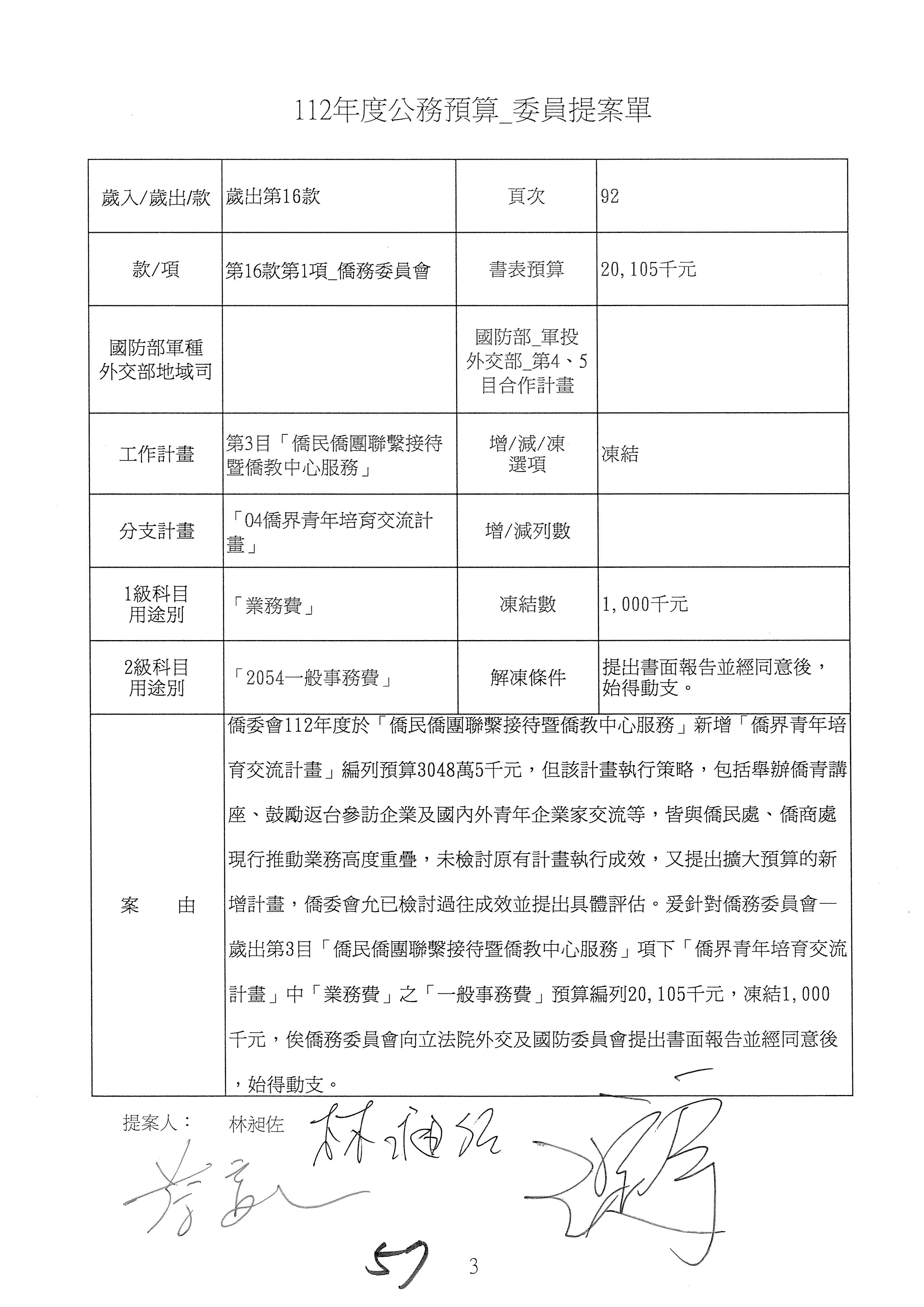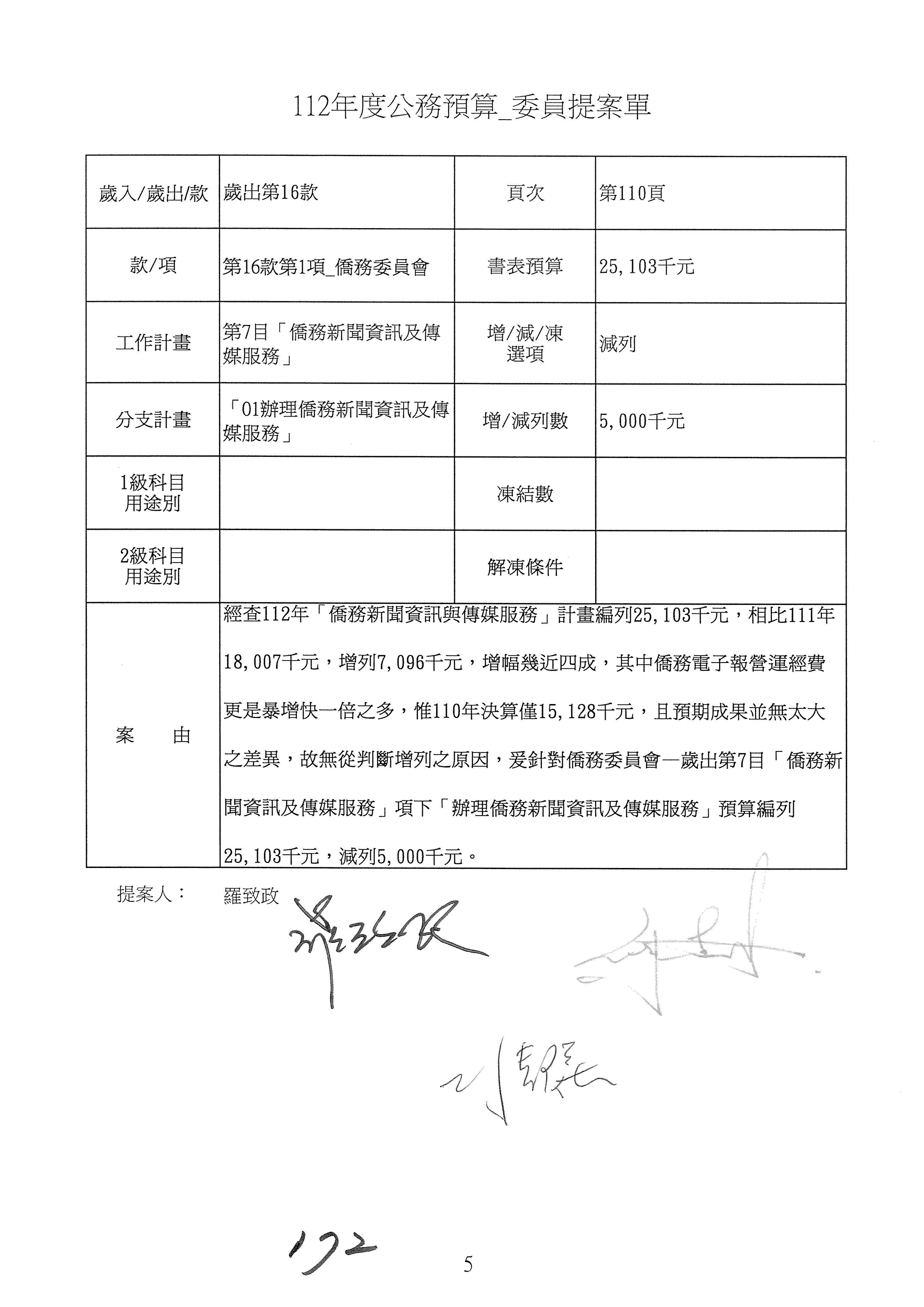 (二)112年度僑務委員會主管預算提案單(公開部分):