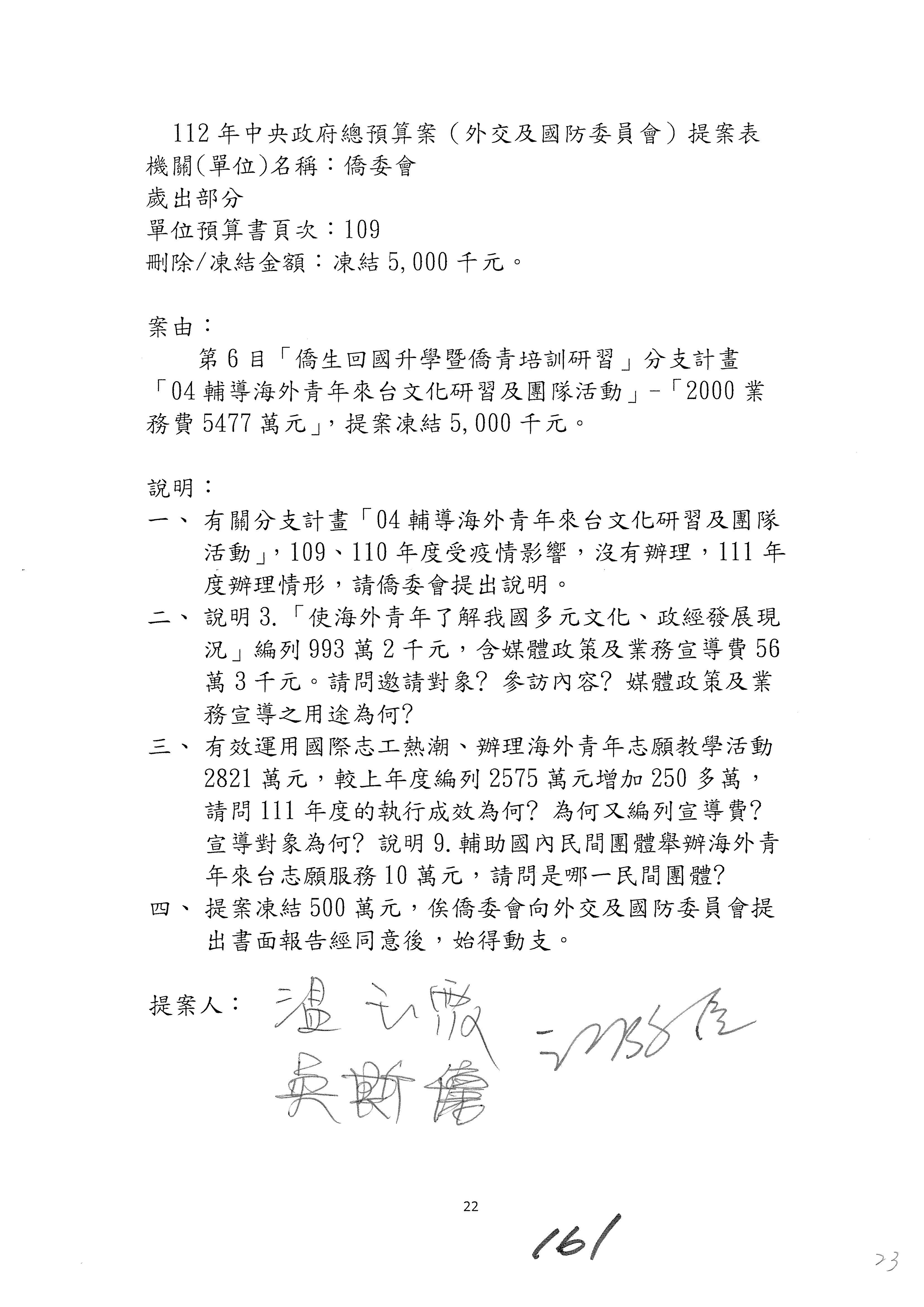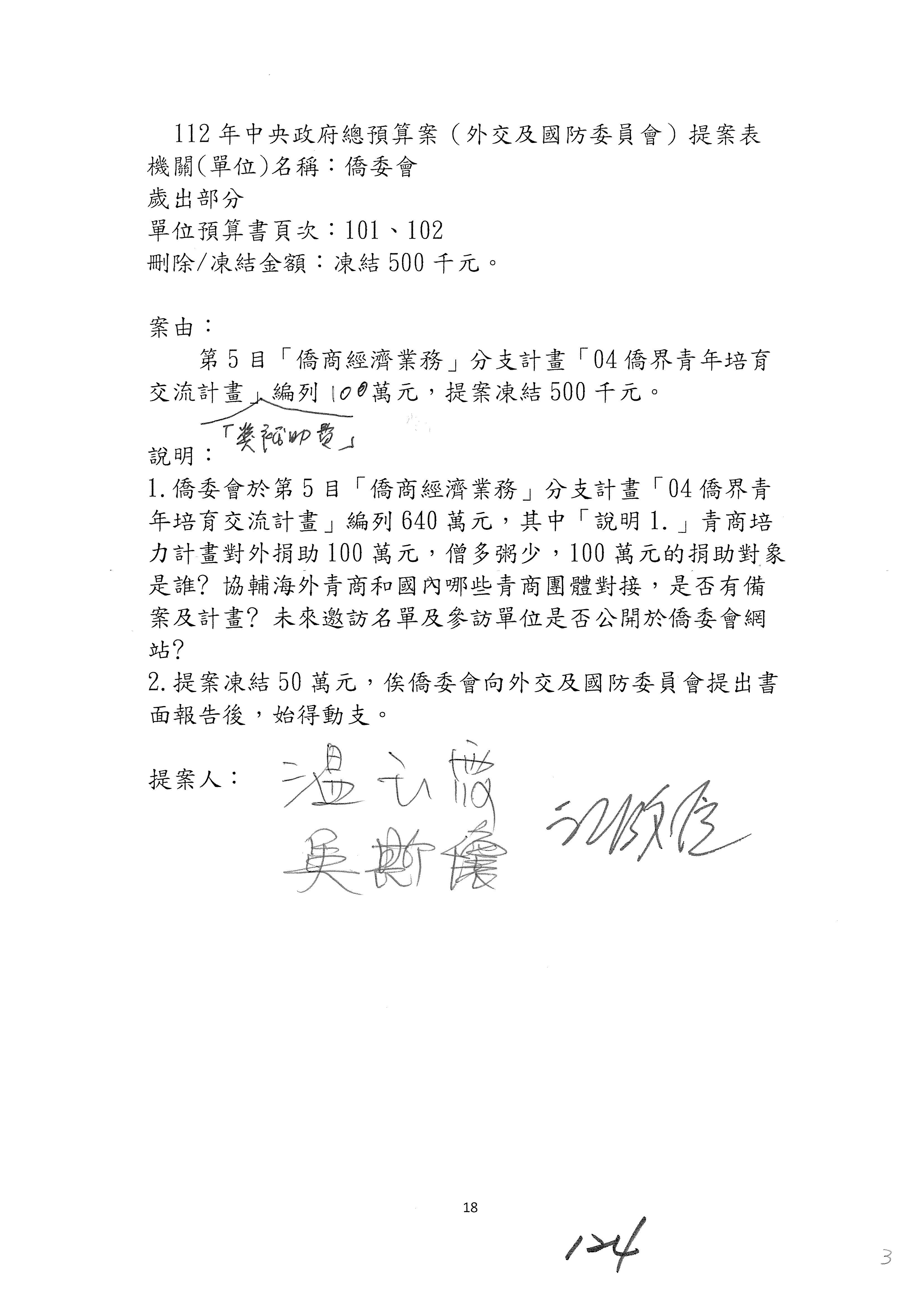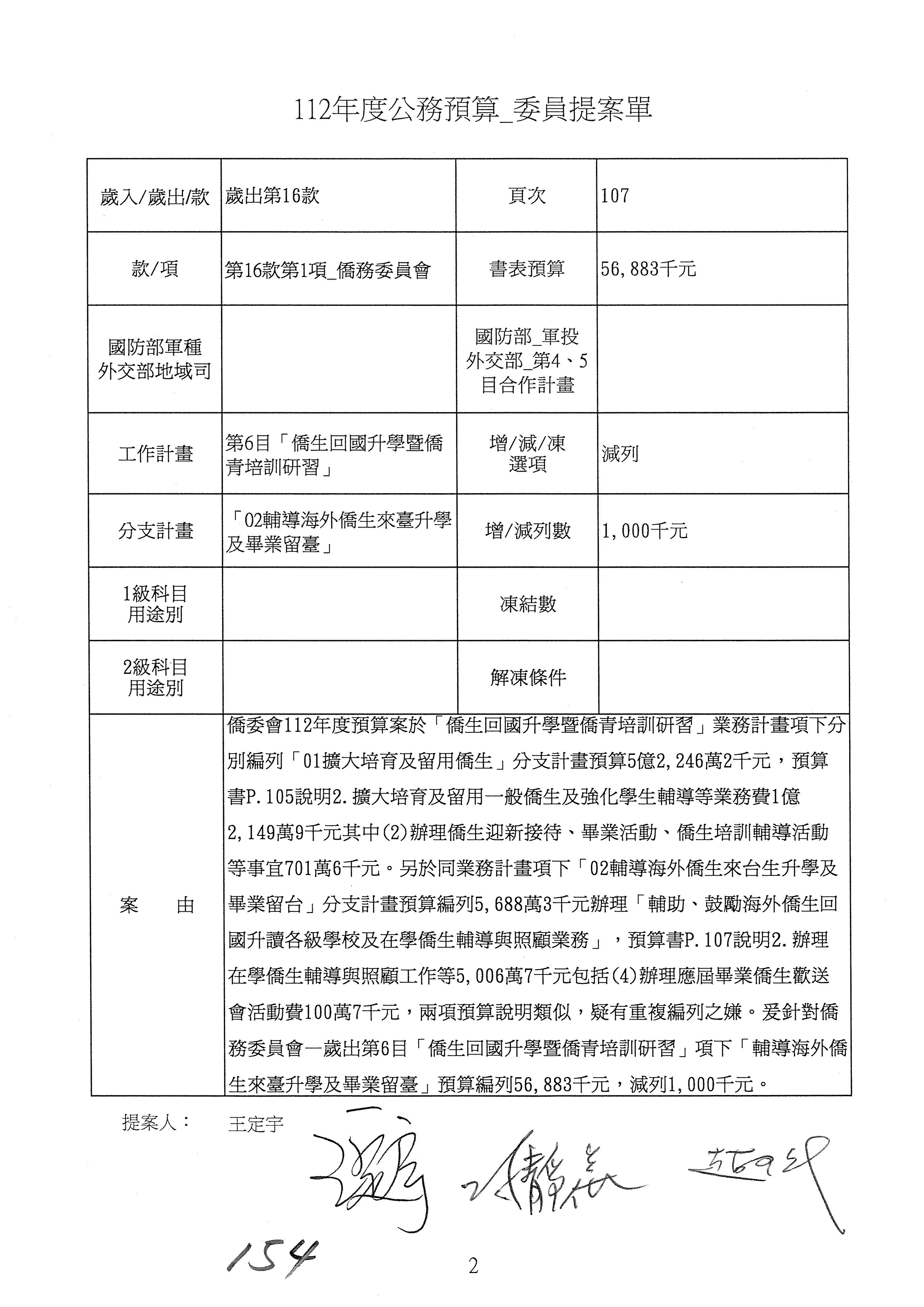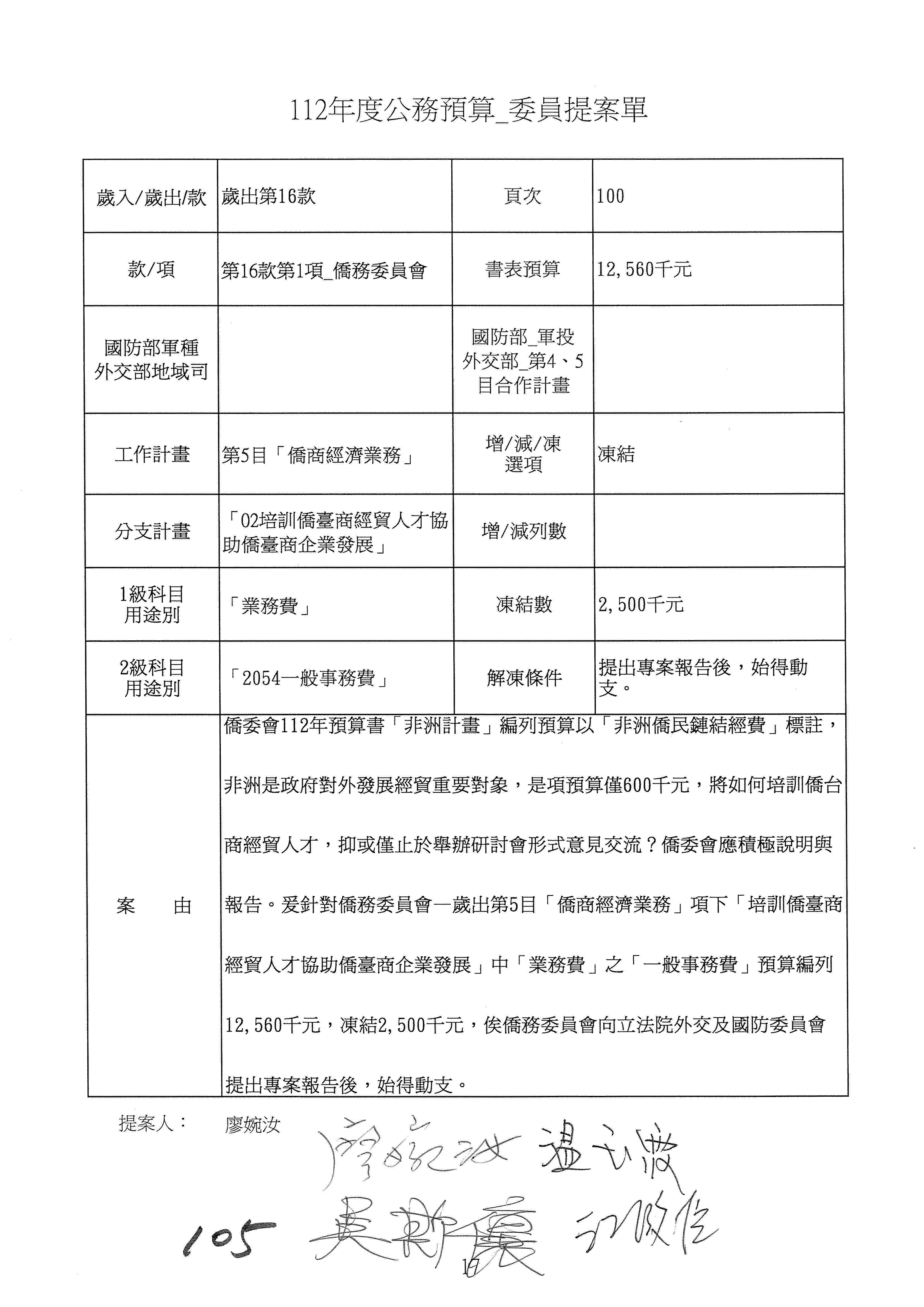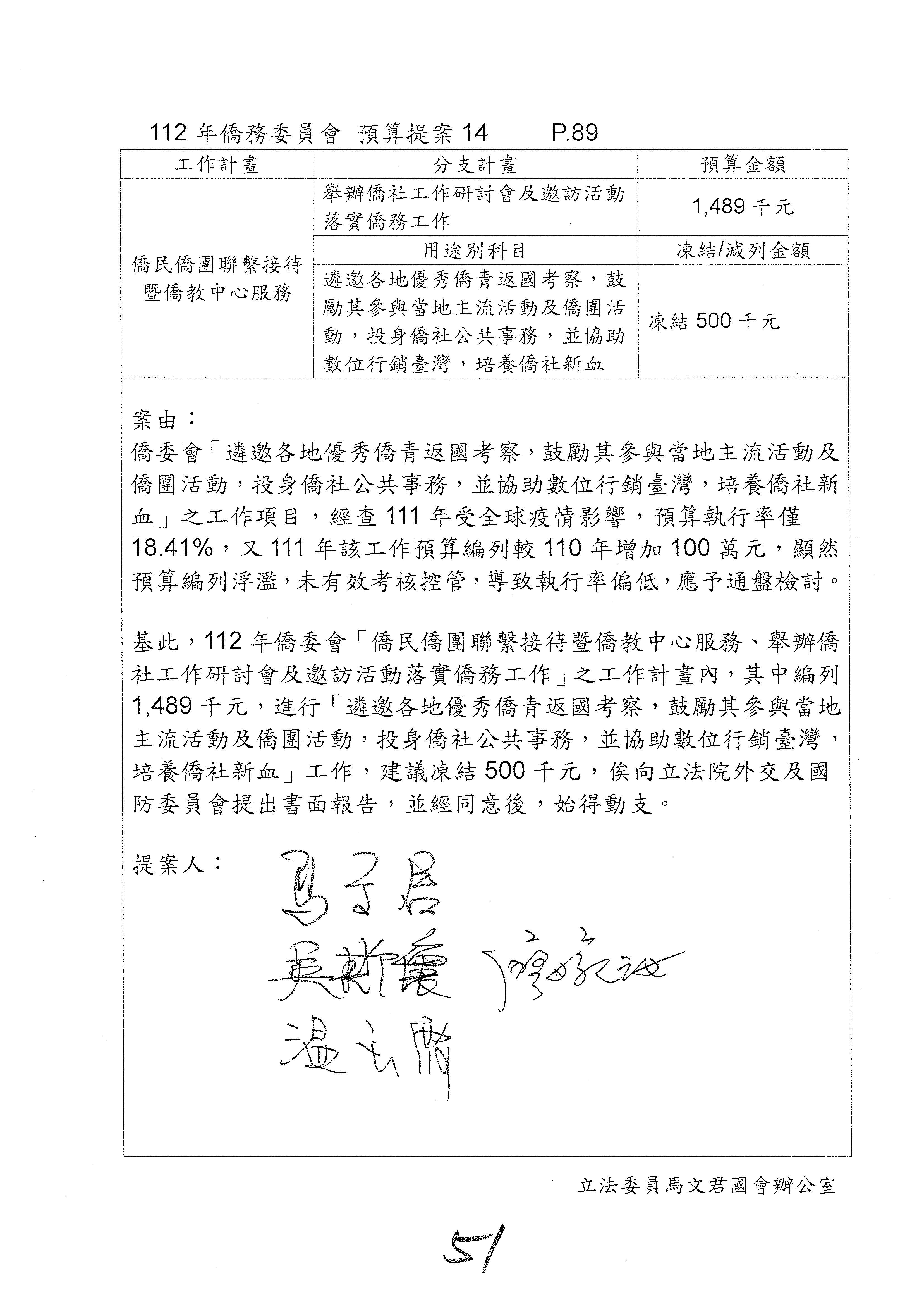 (二)112年度僑務委員會主管預算提案單(公開部分):