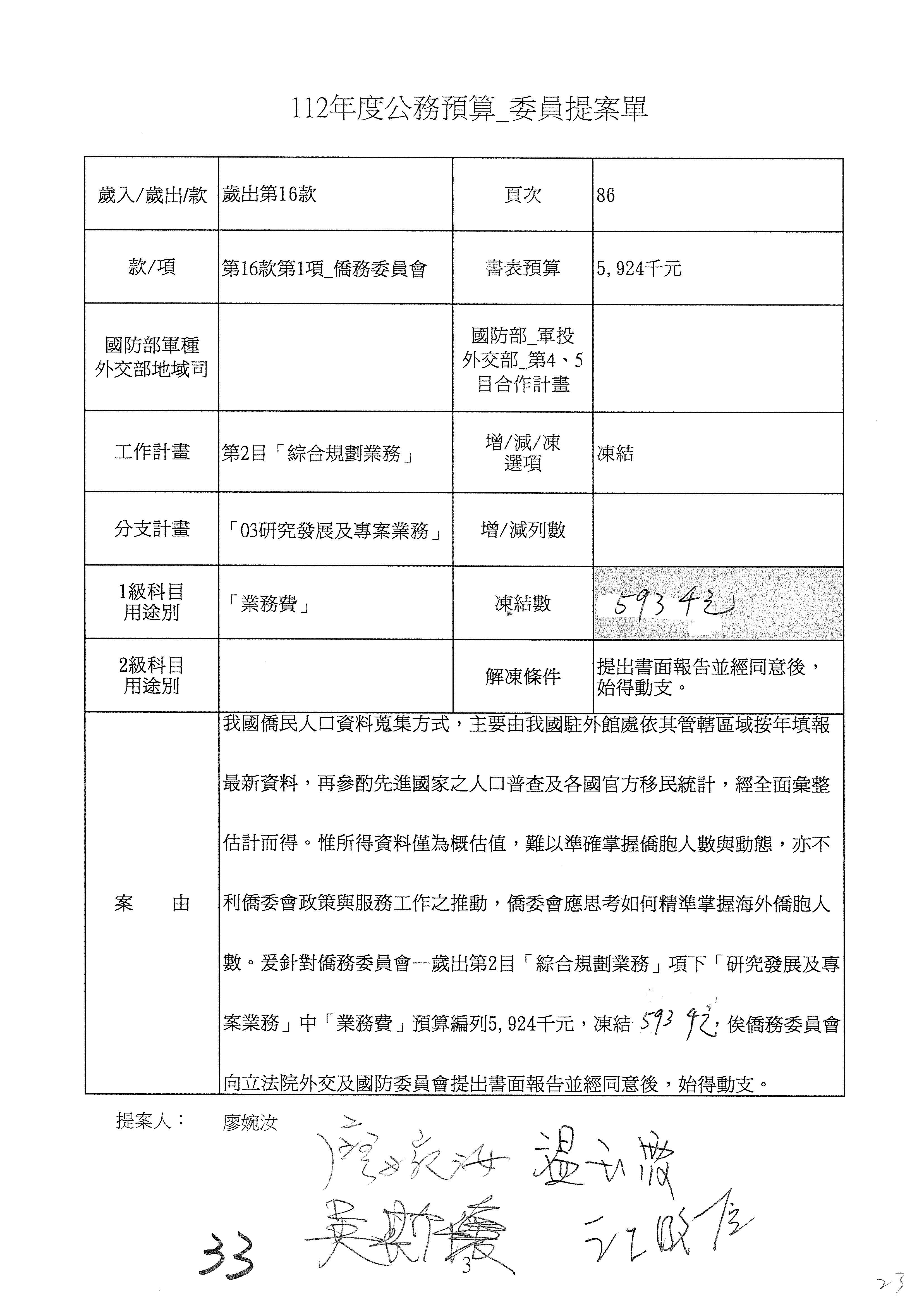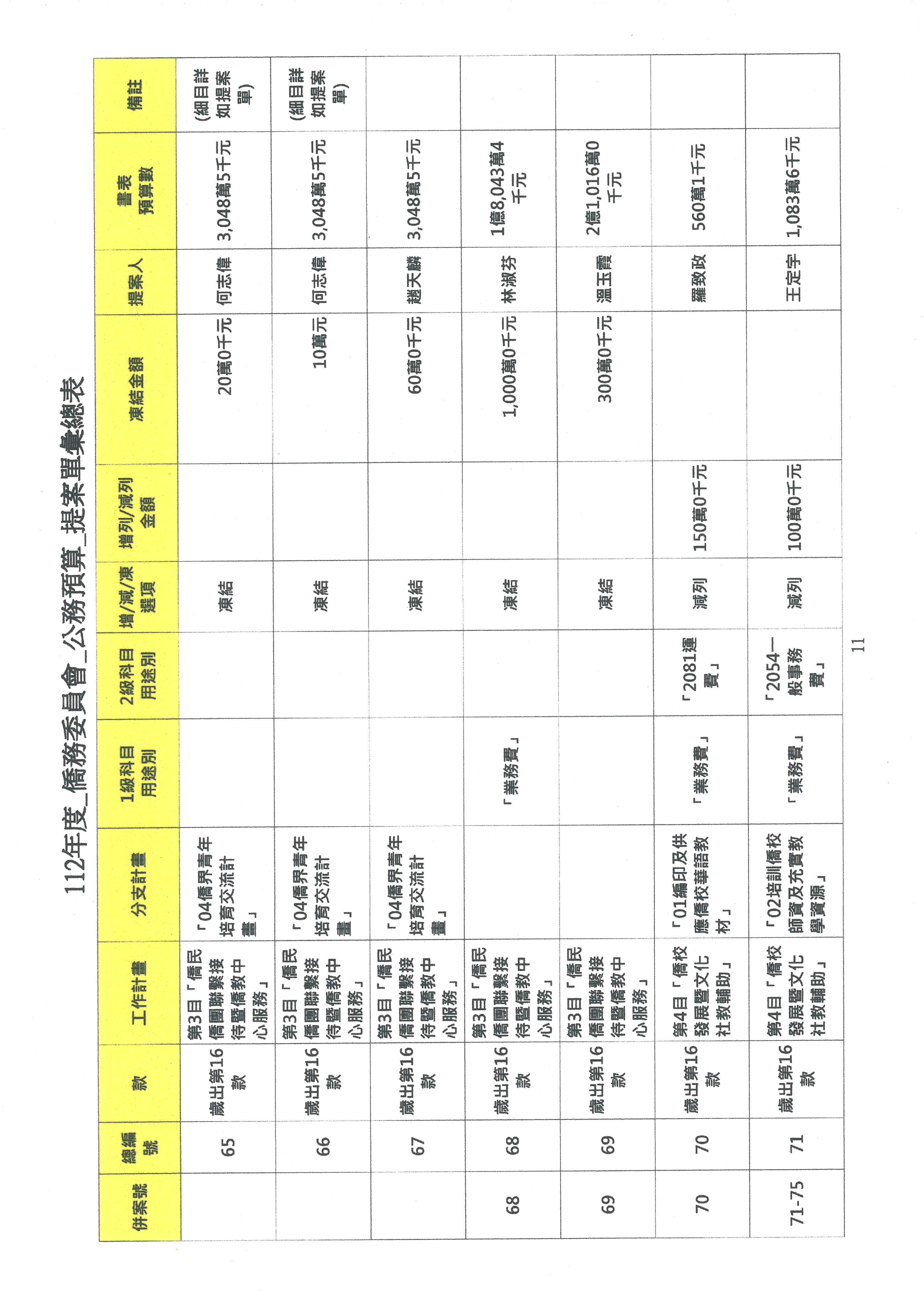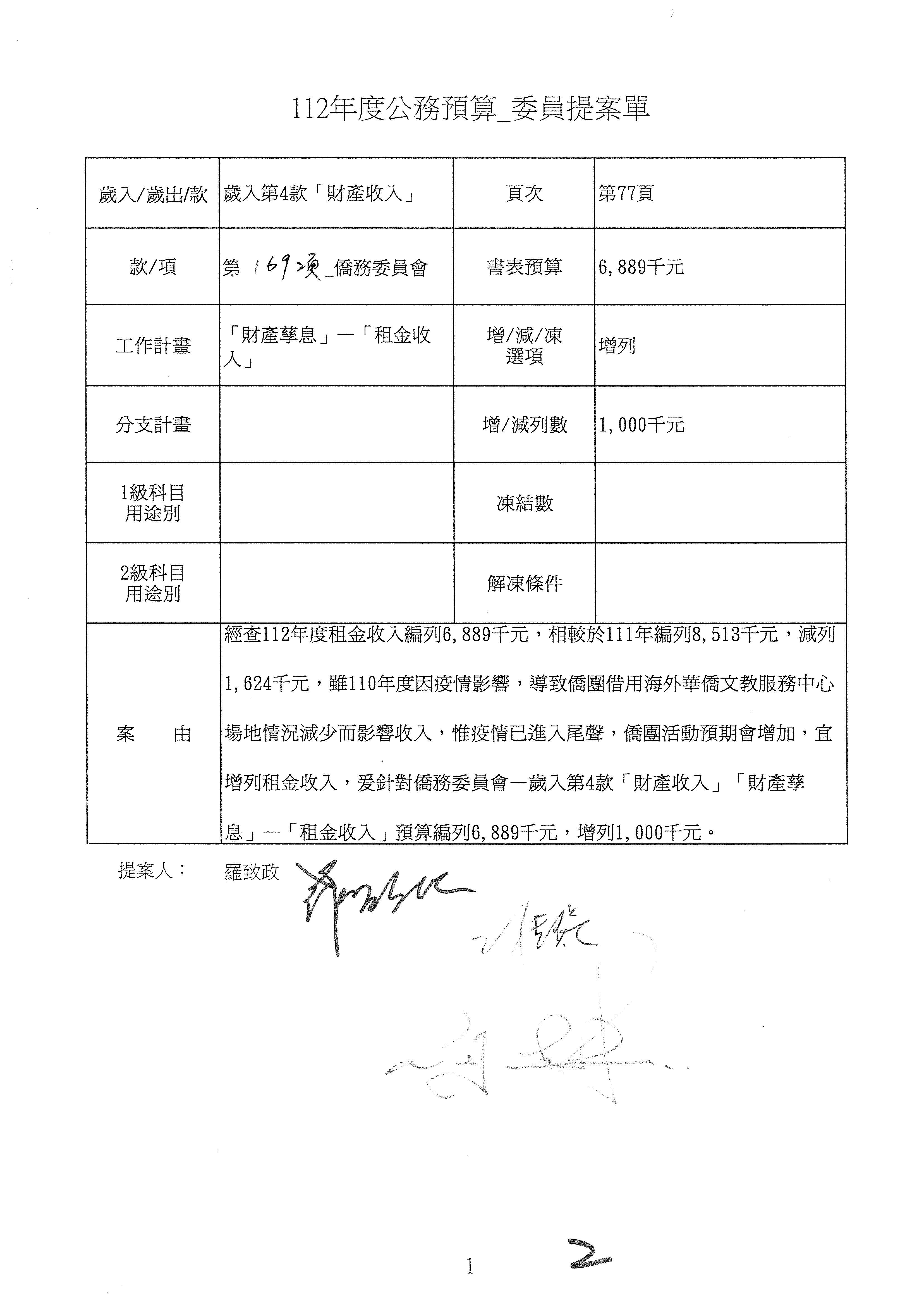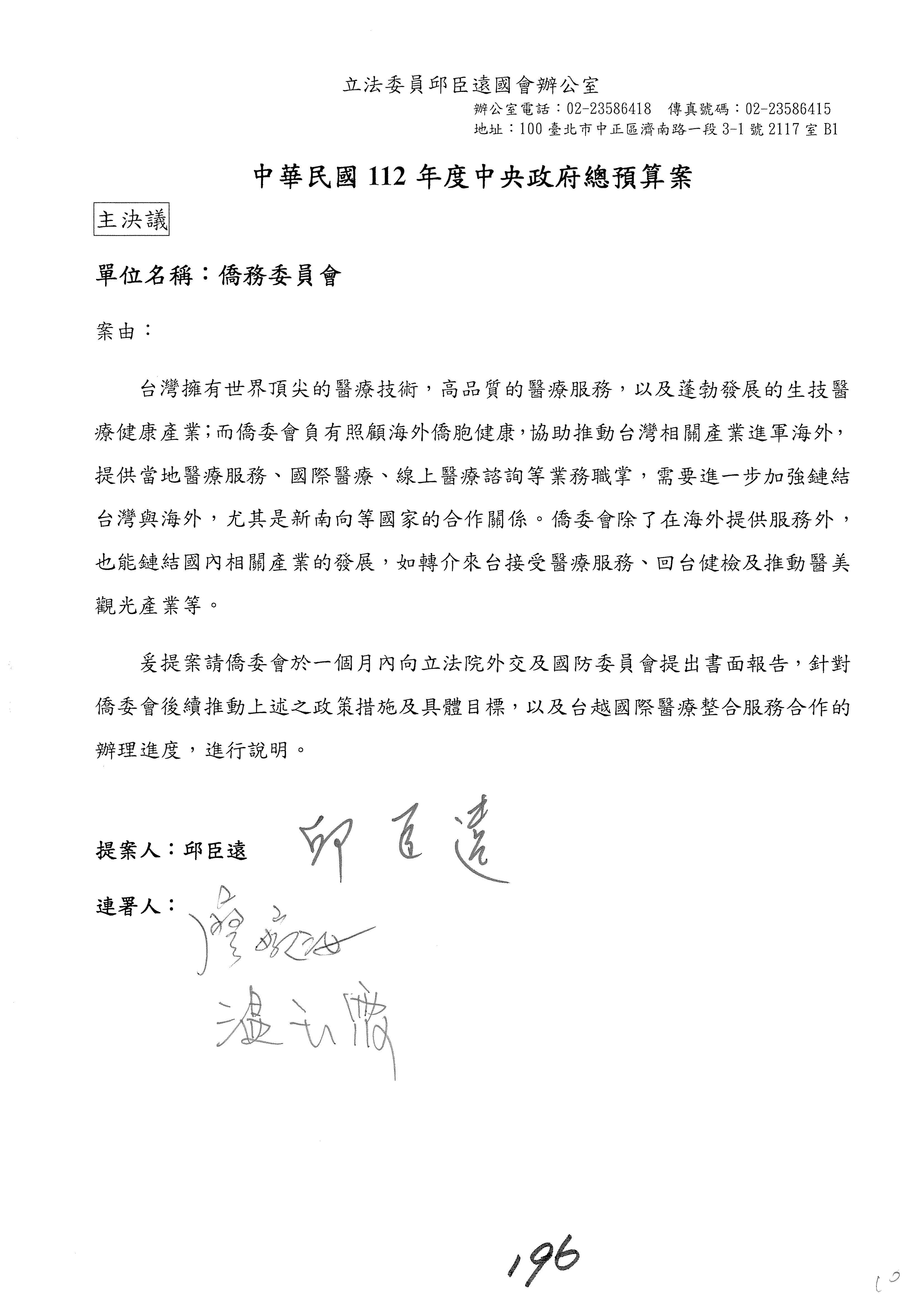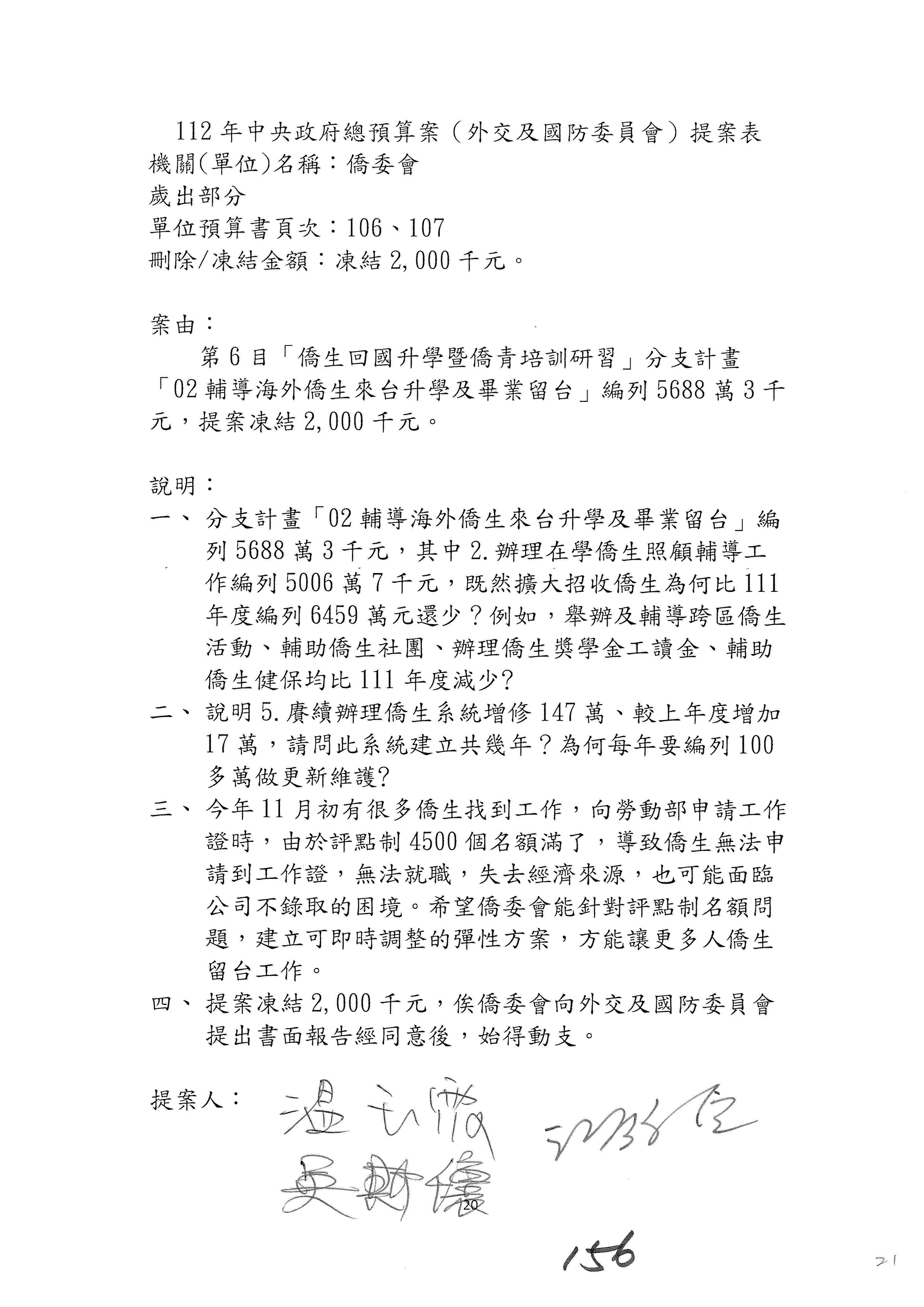 (二)112年度僑務委員會主管預算提案單(公開部分):