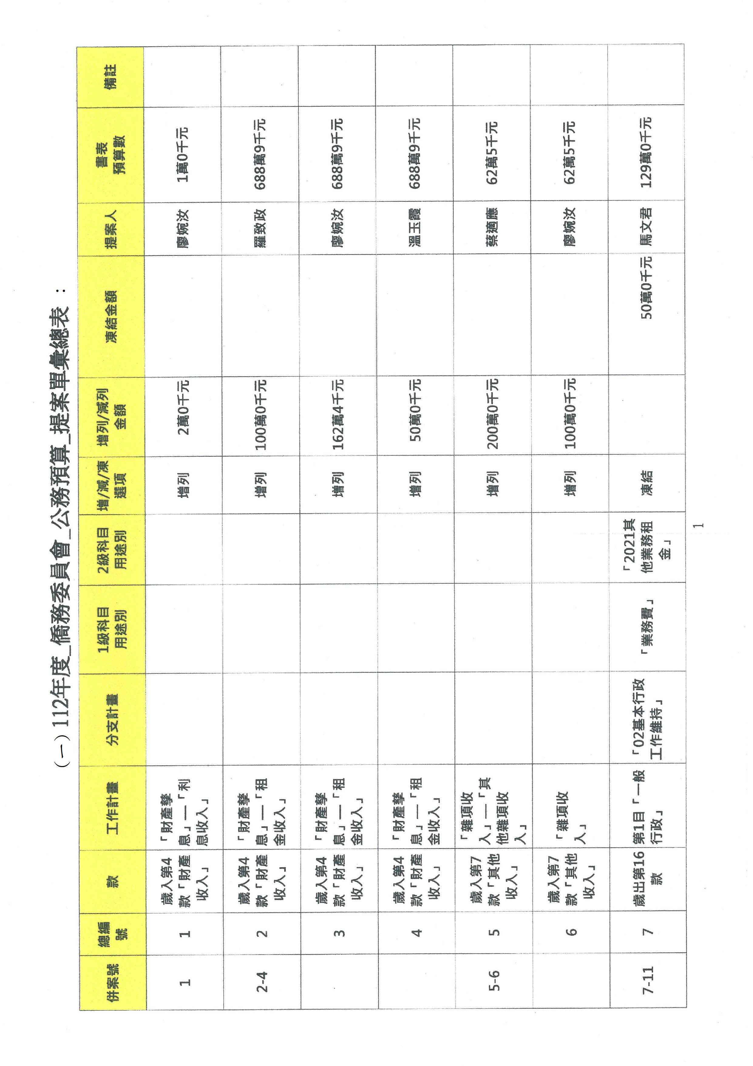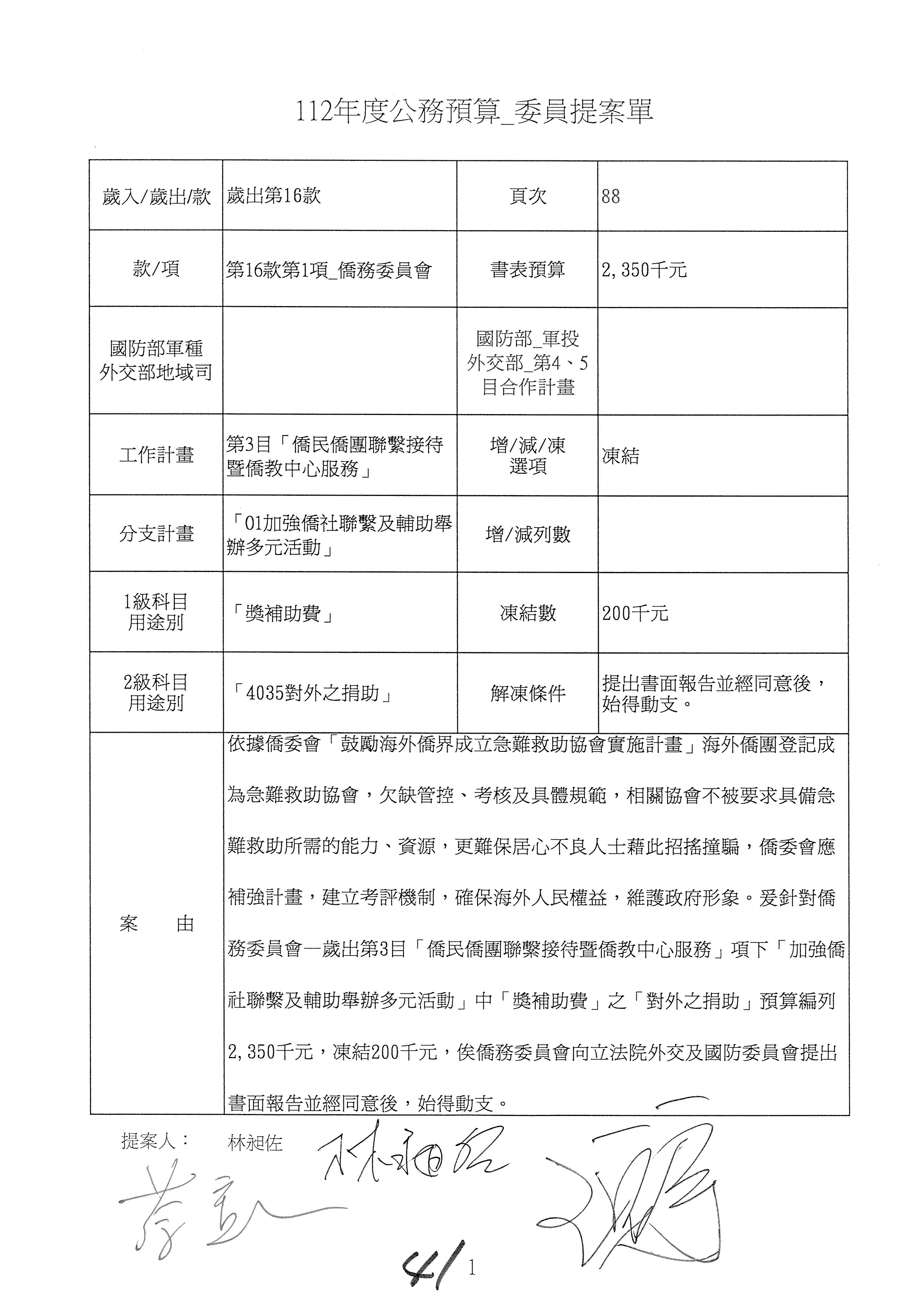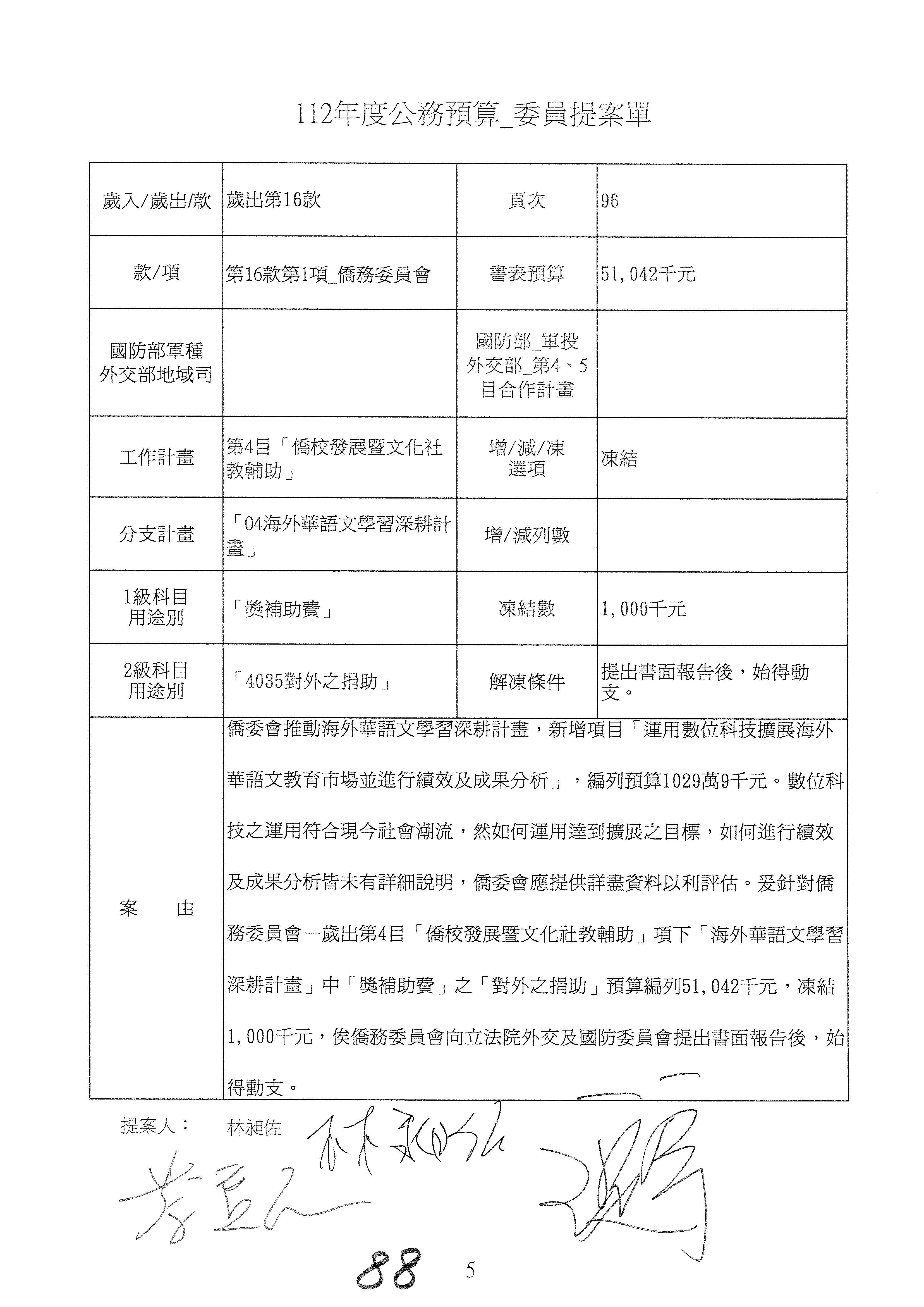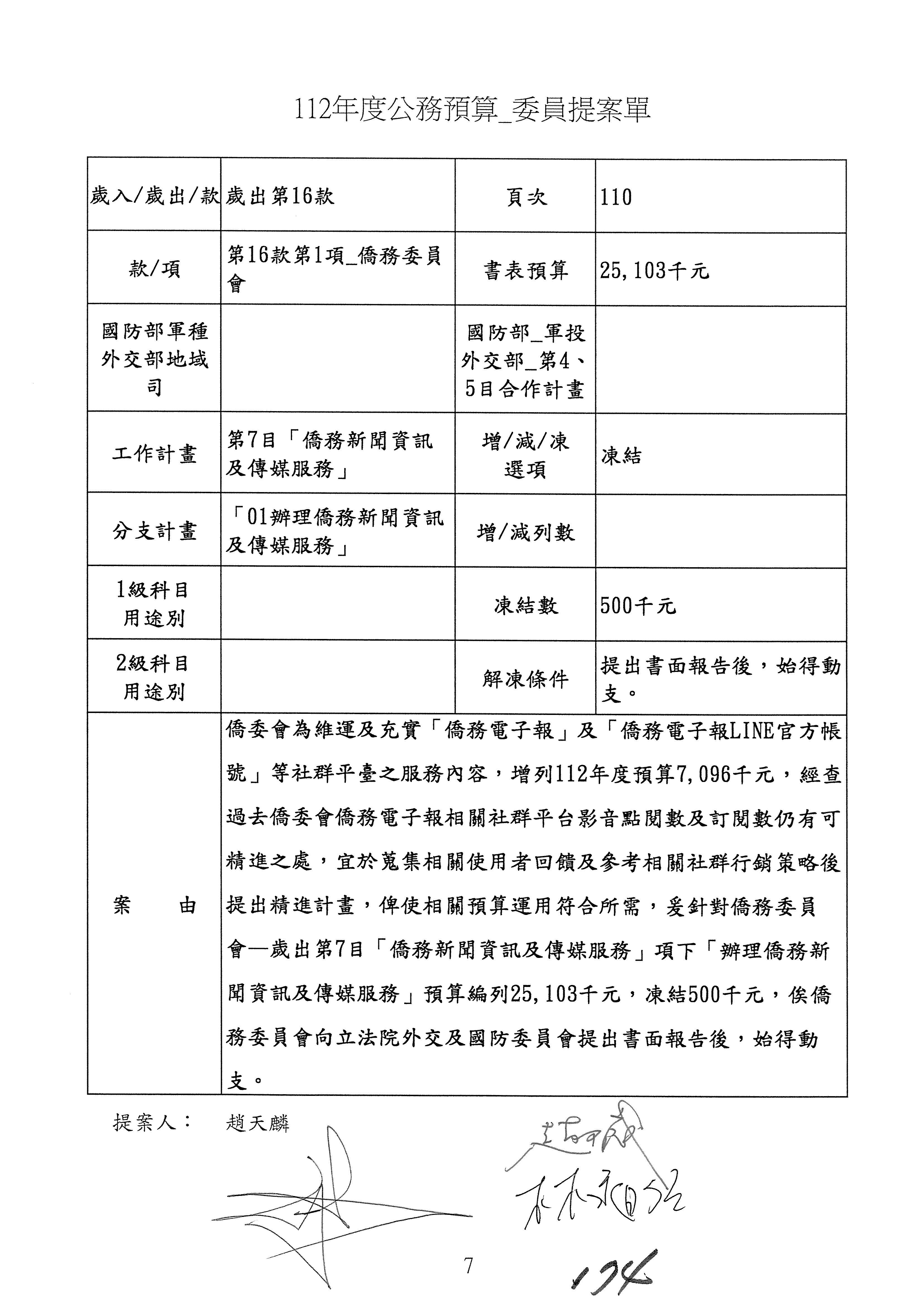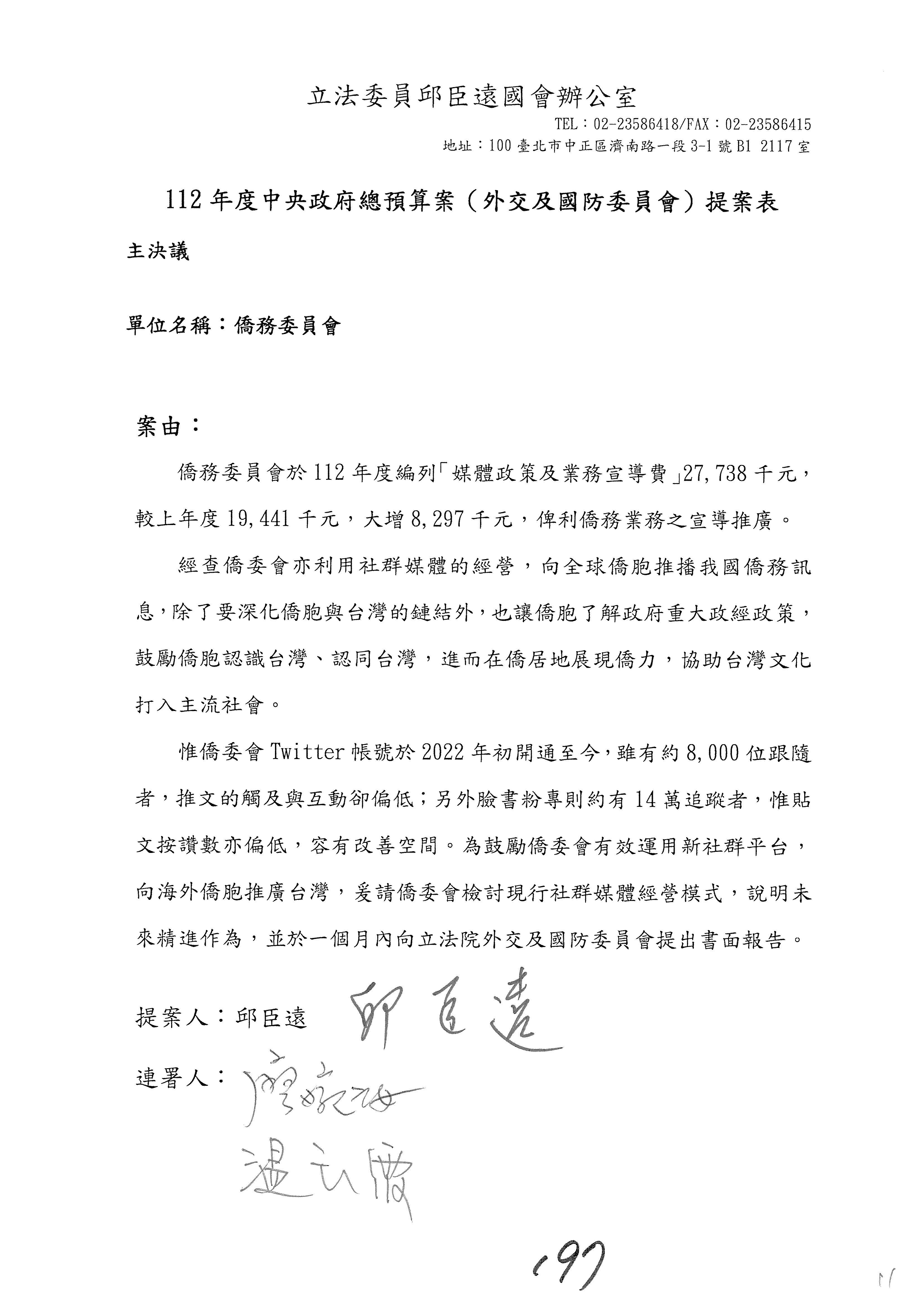 (二)112年度僑務委員會主管預算提案單(公開部分):