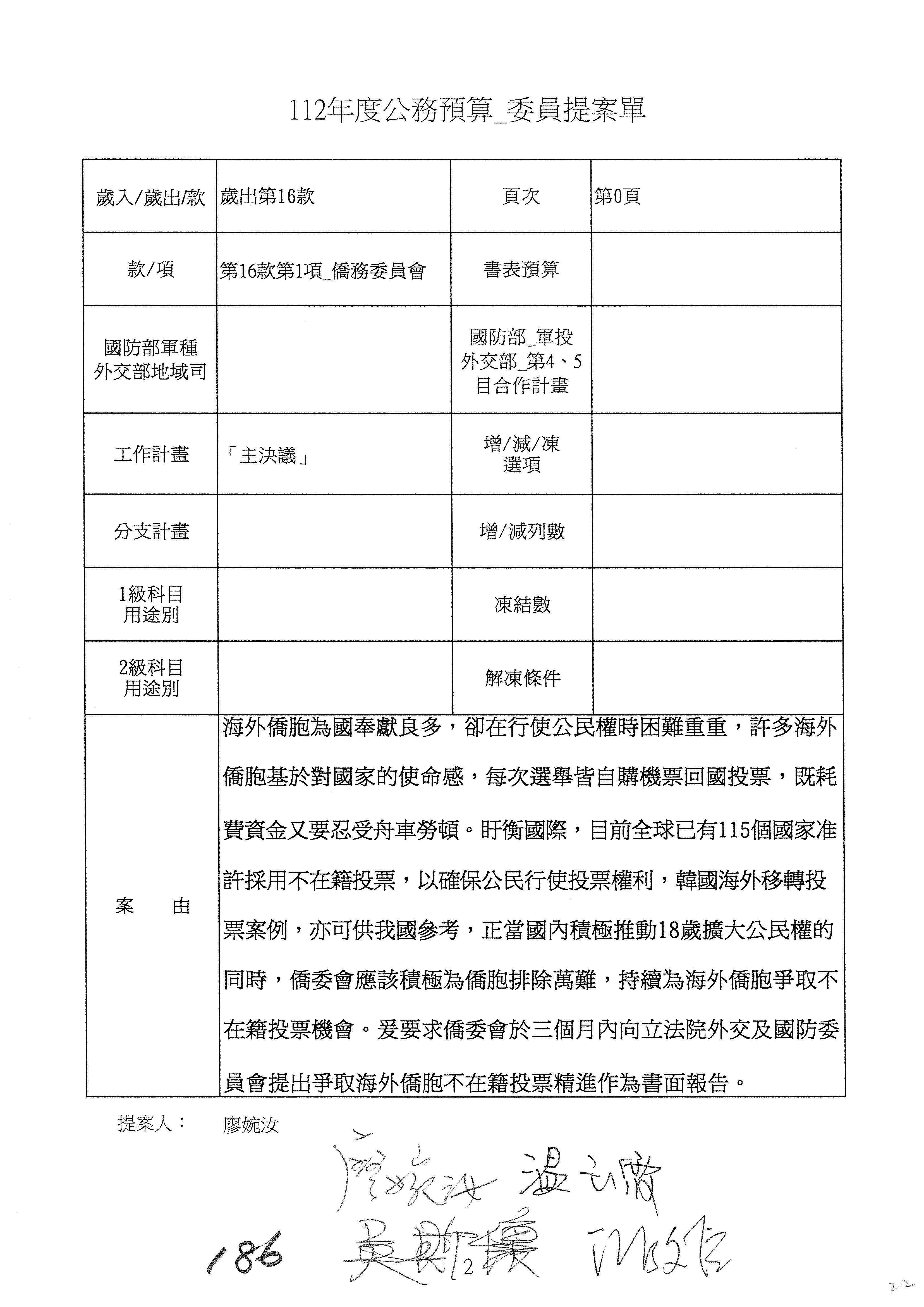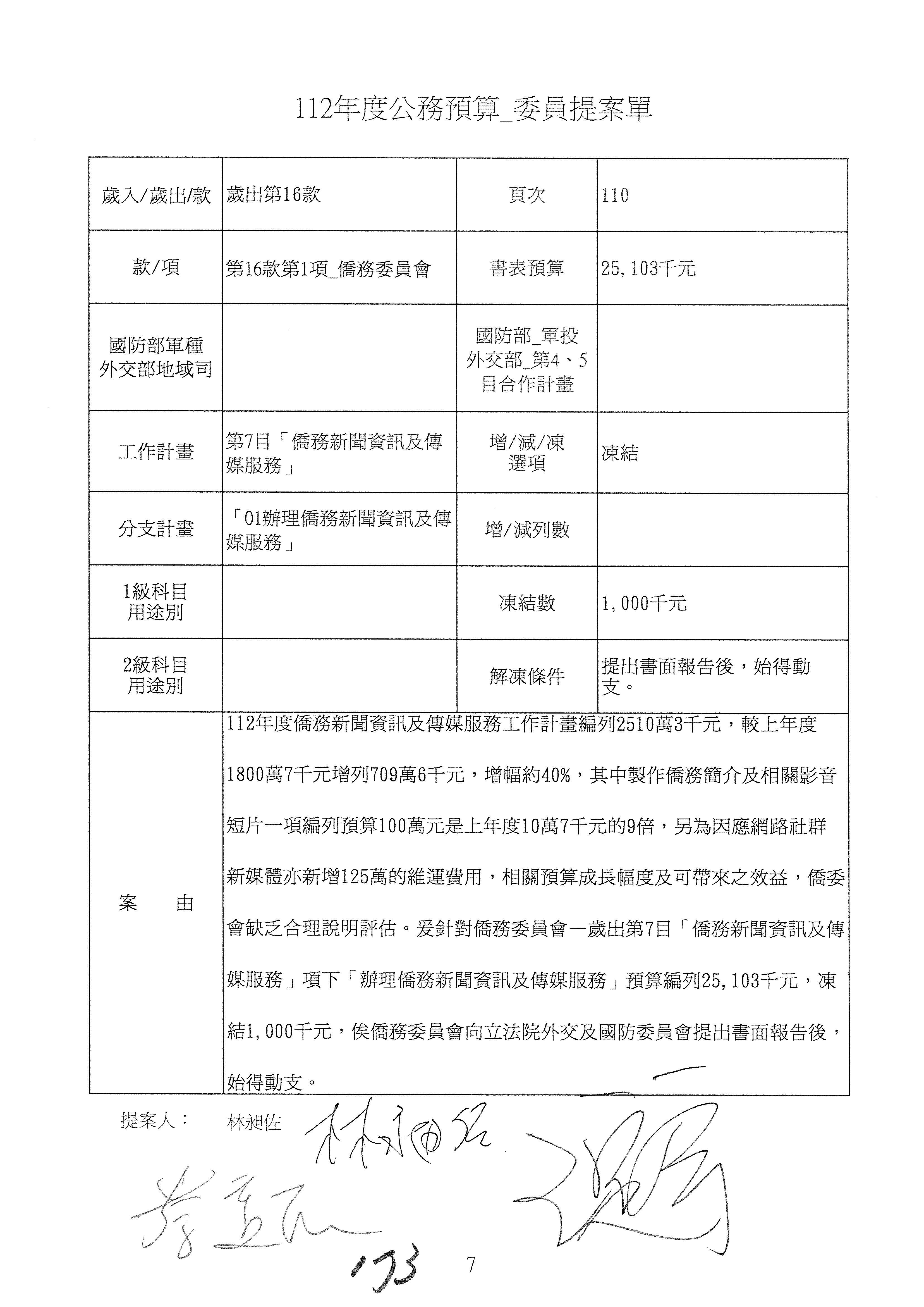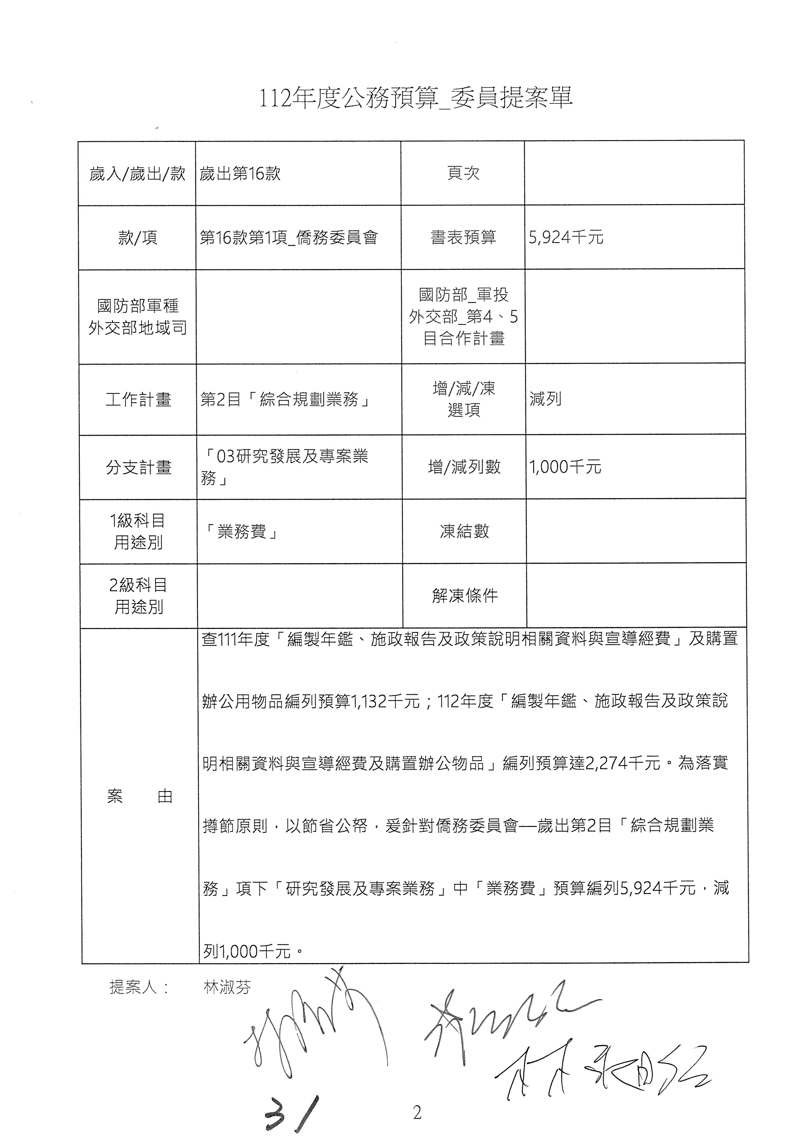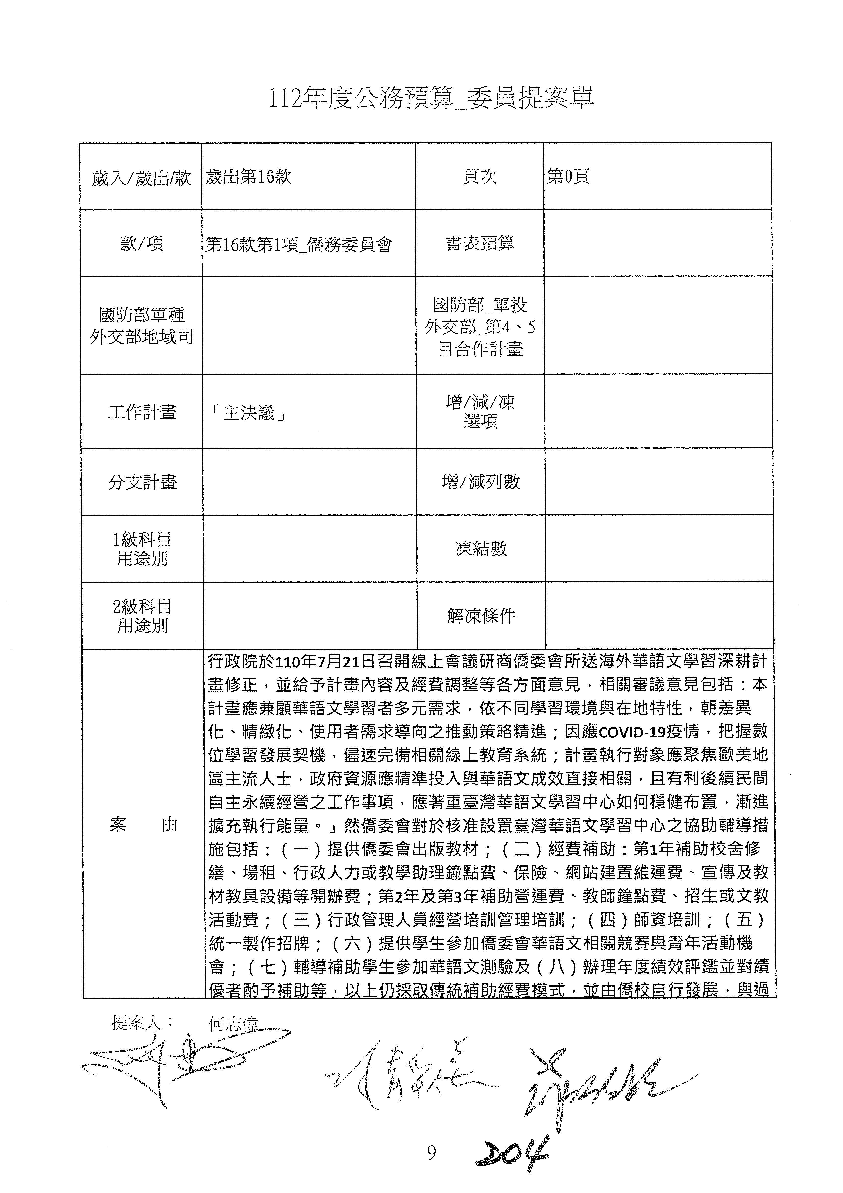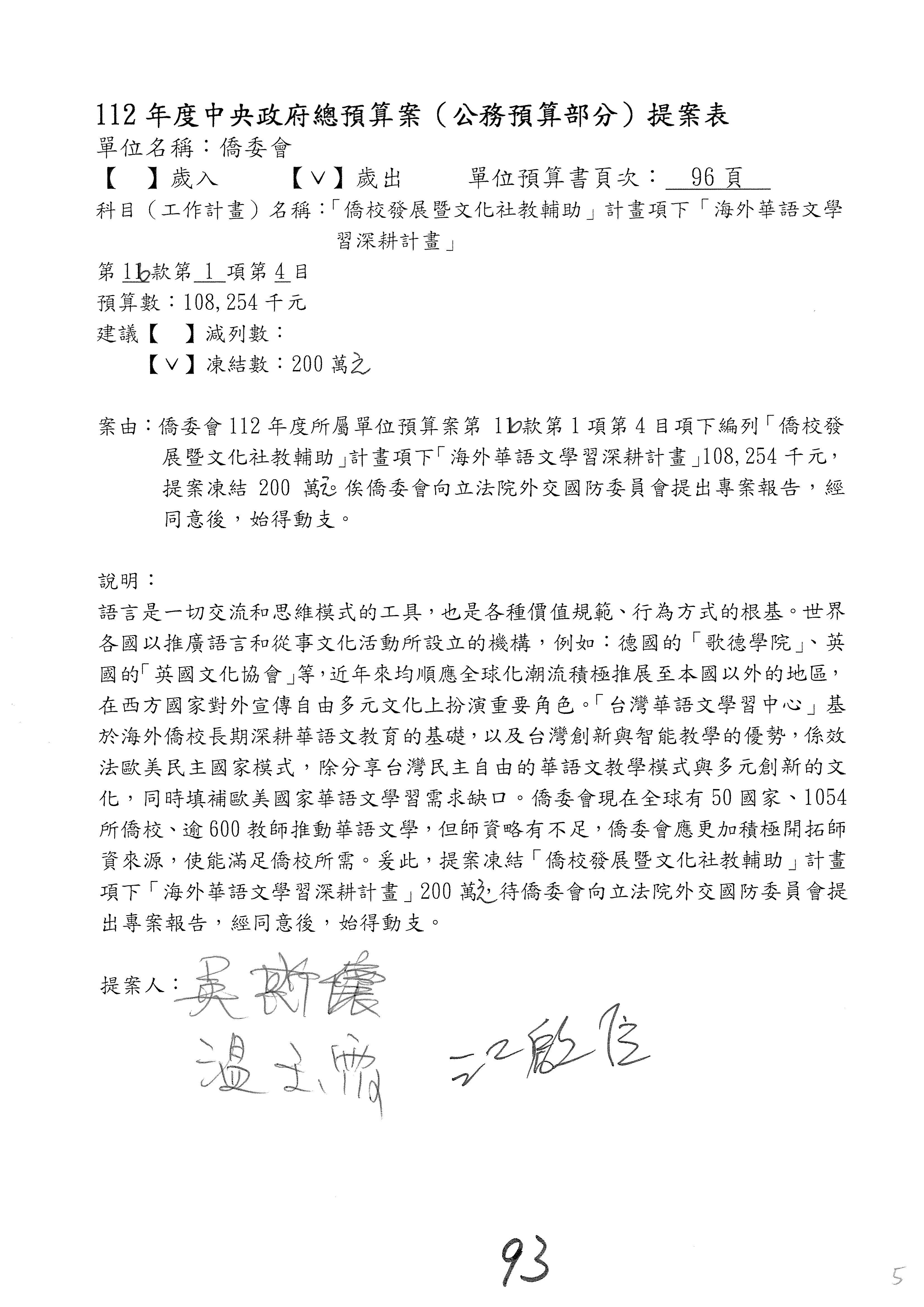 (二)112年度僑務委員會主管預算提案單(公開部分):