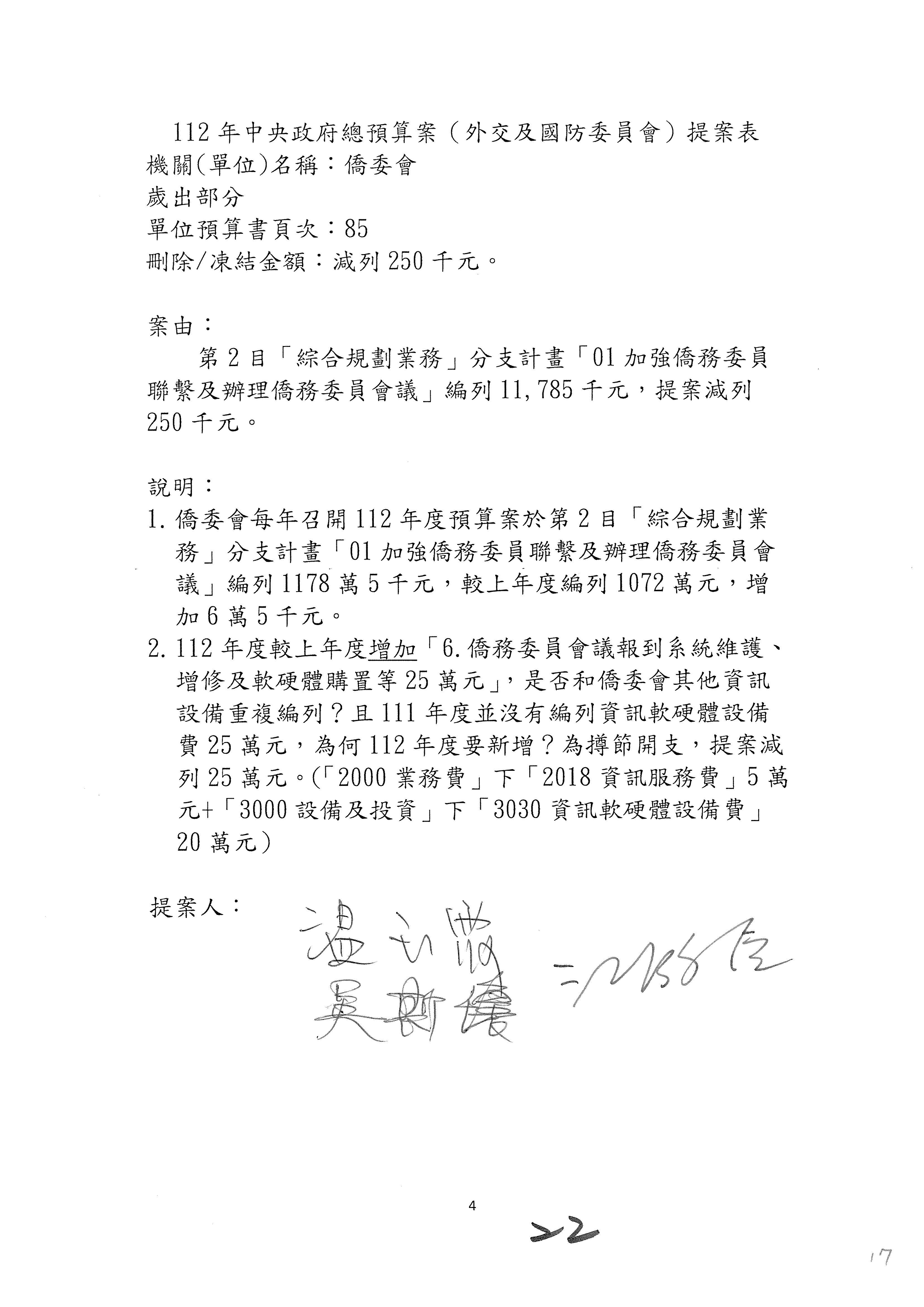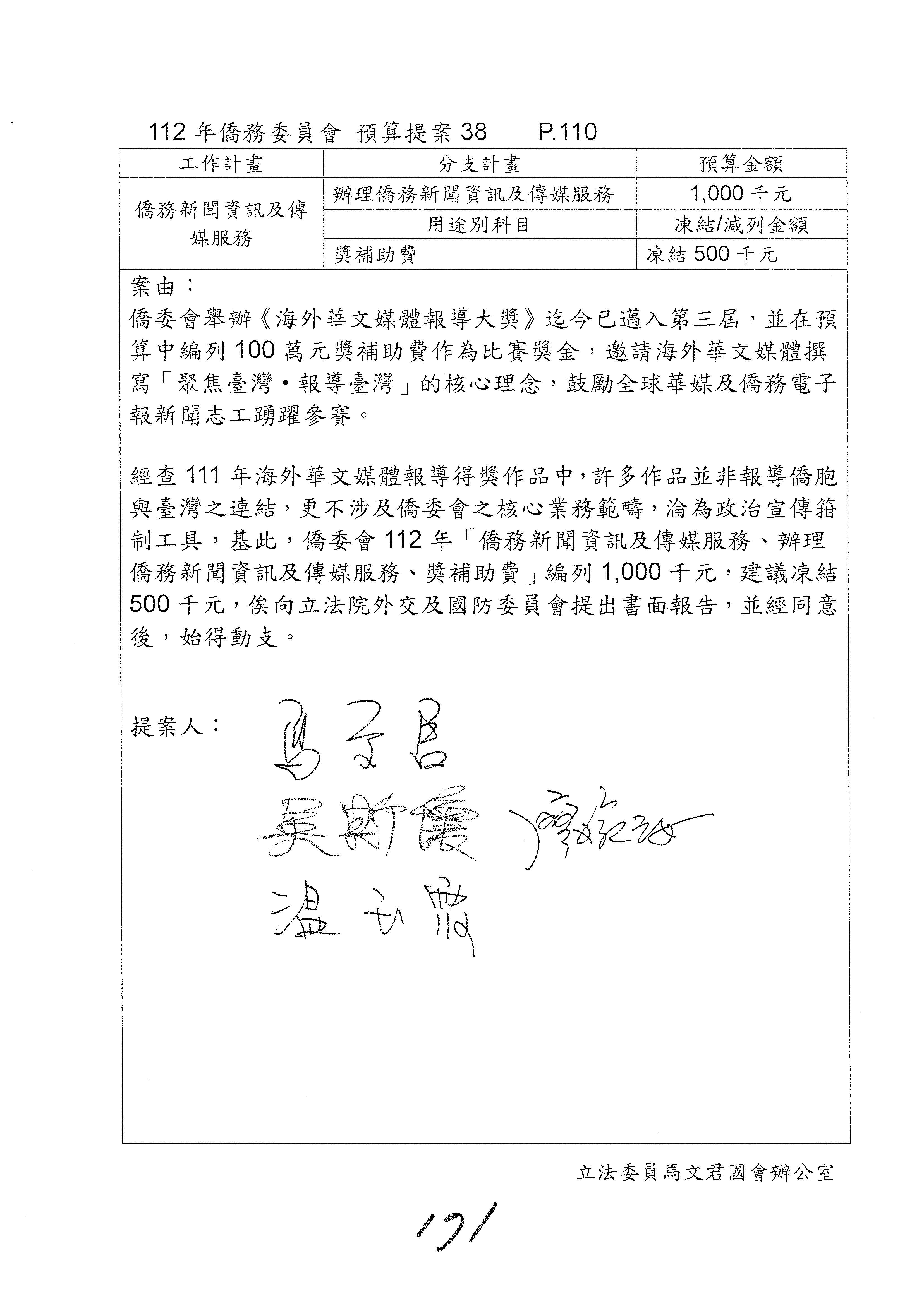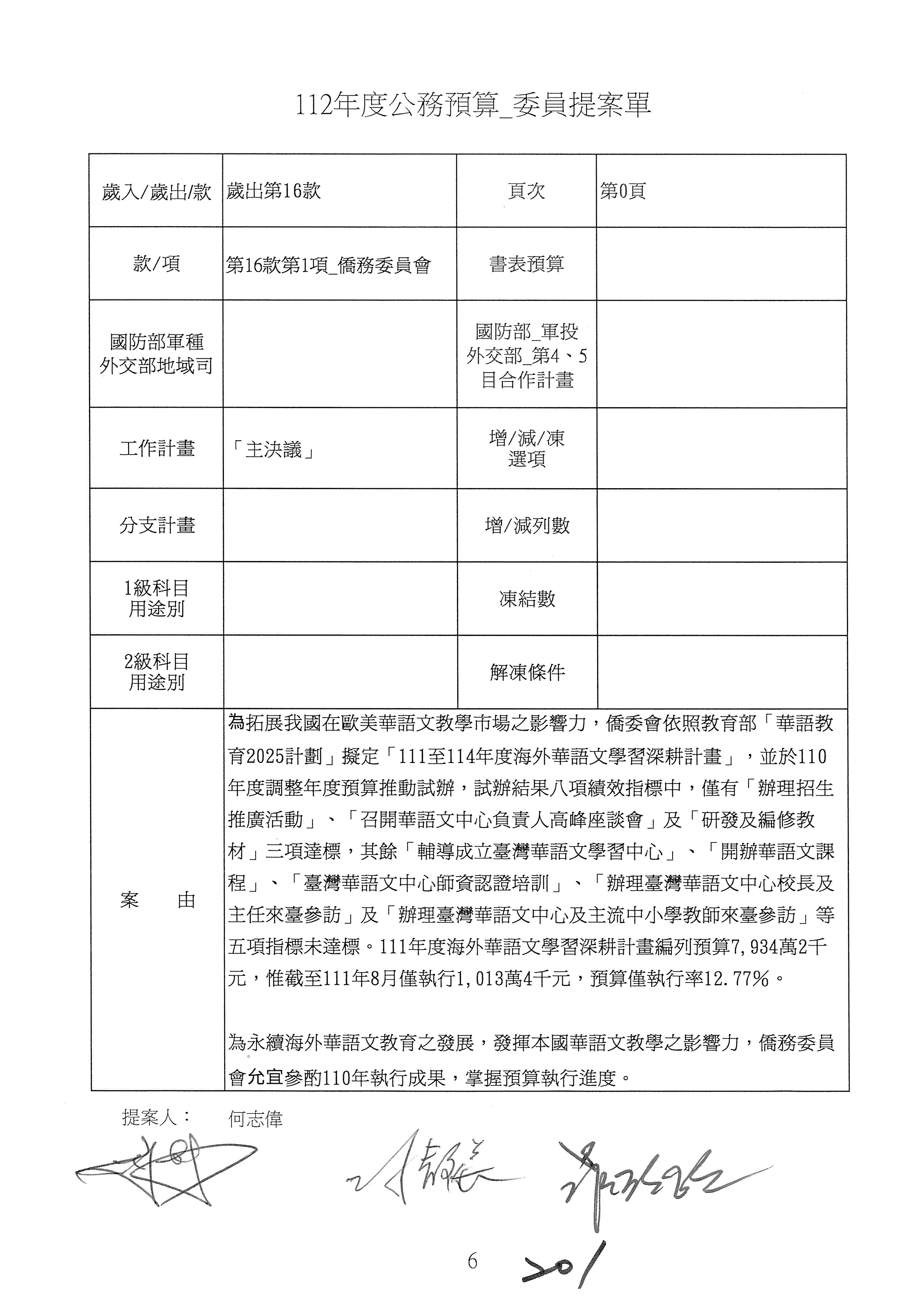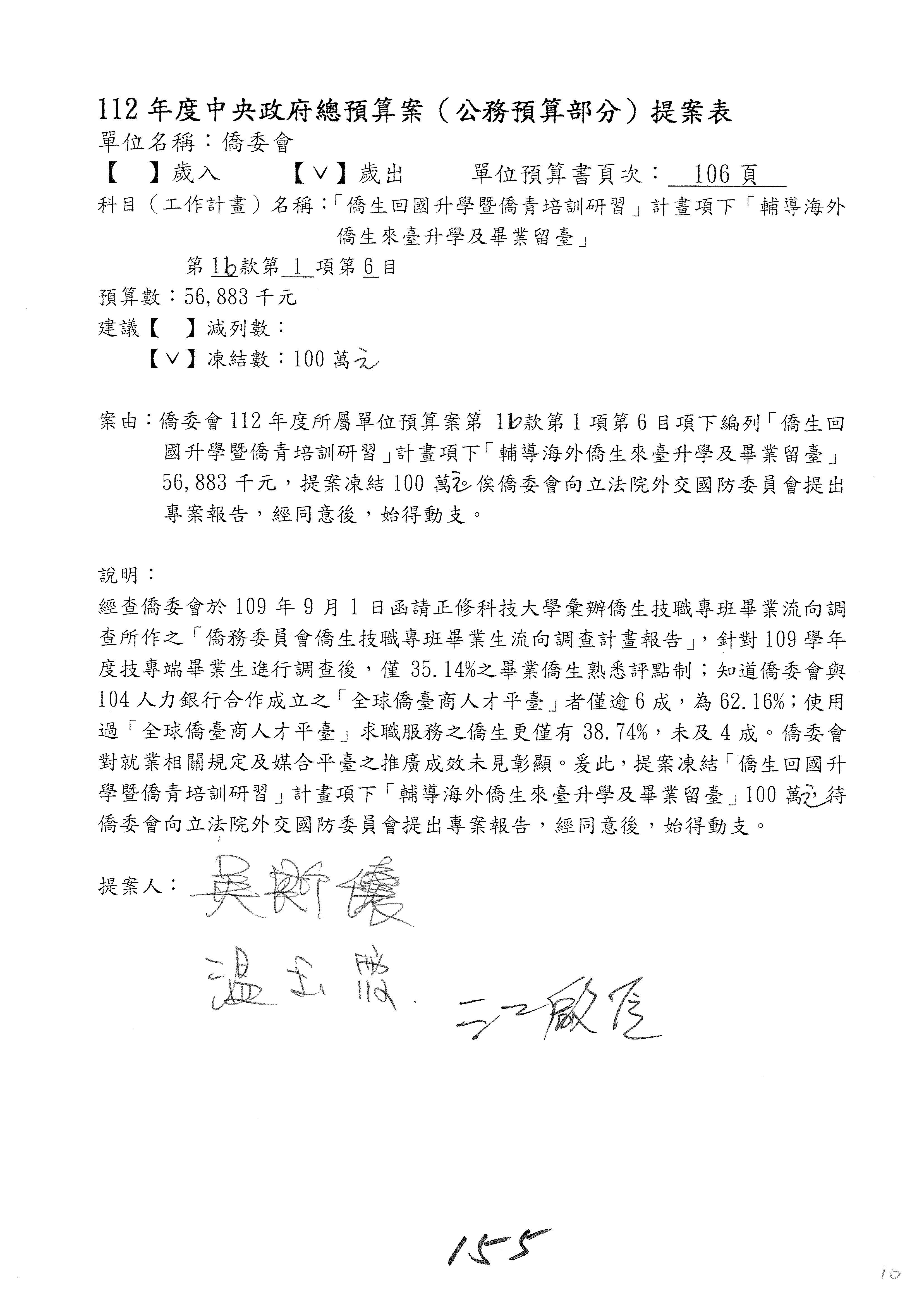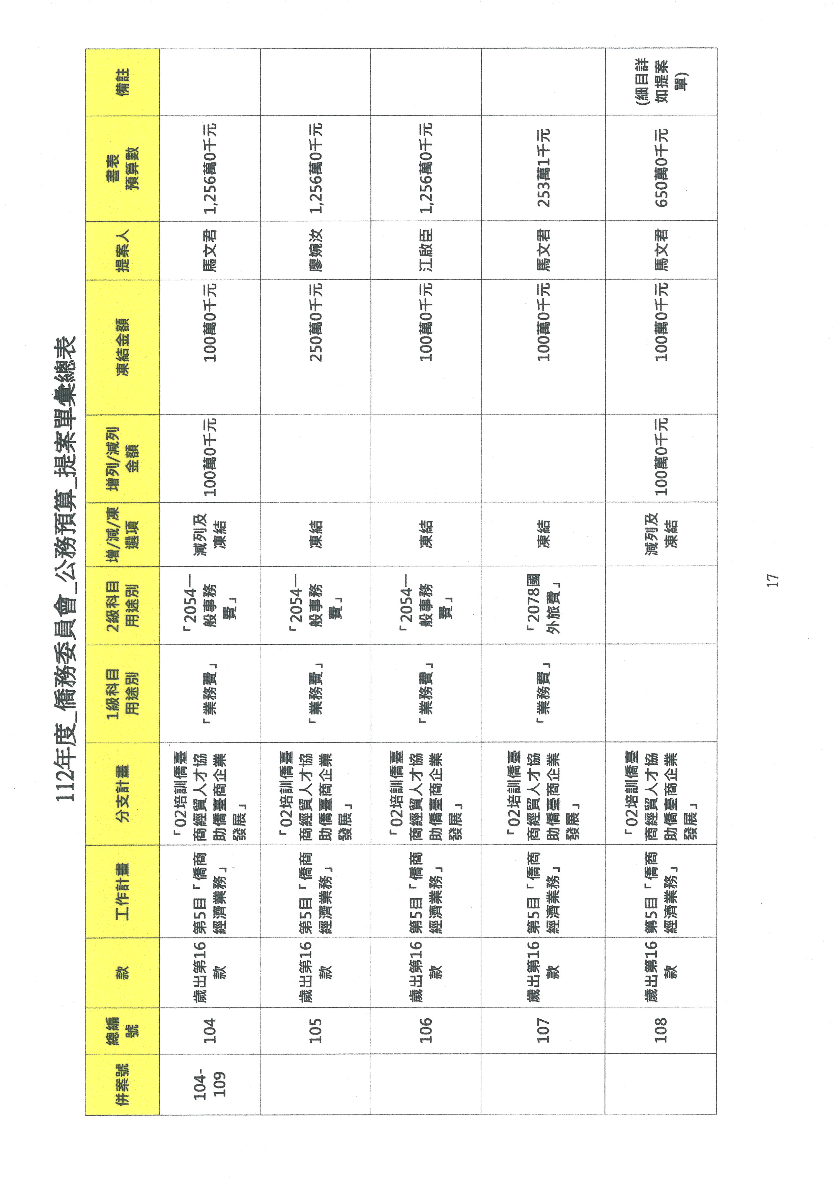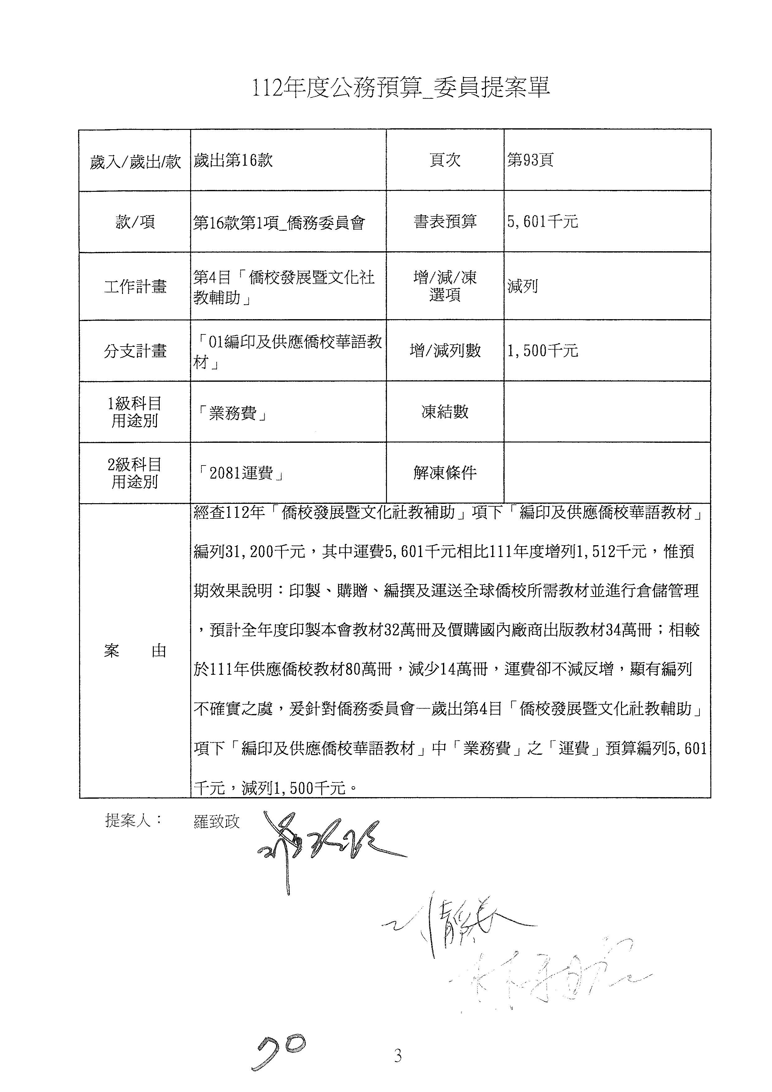 (二)112年度僑務委員會主管預算提案單(公開部分):