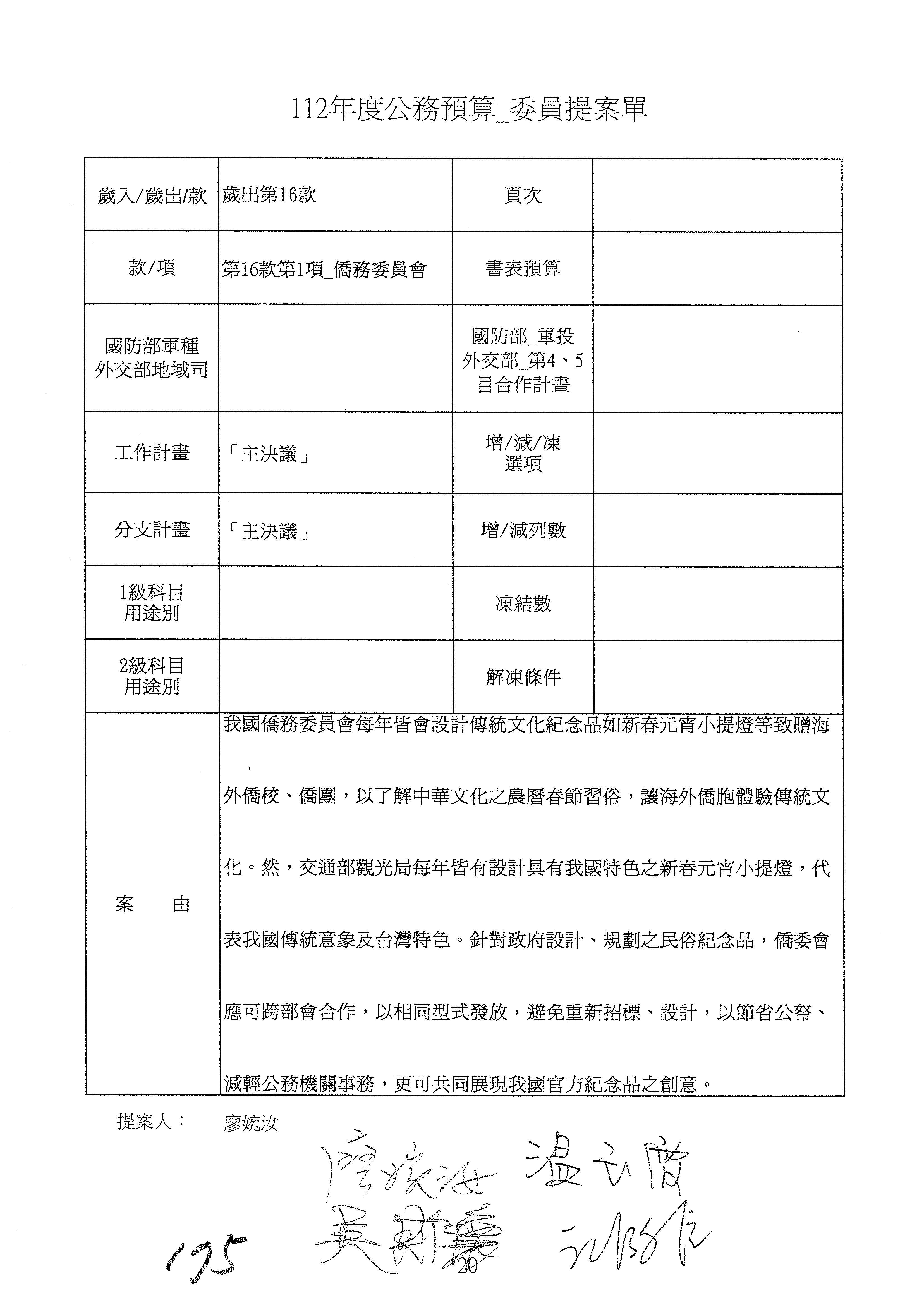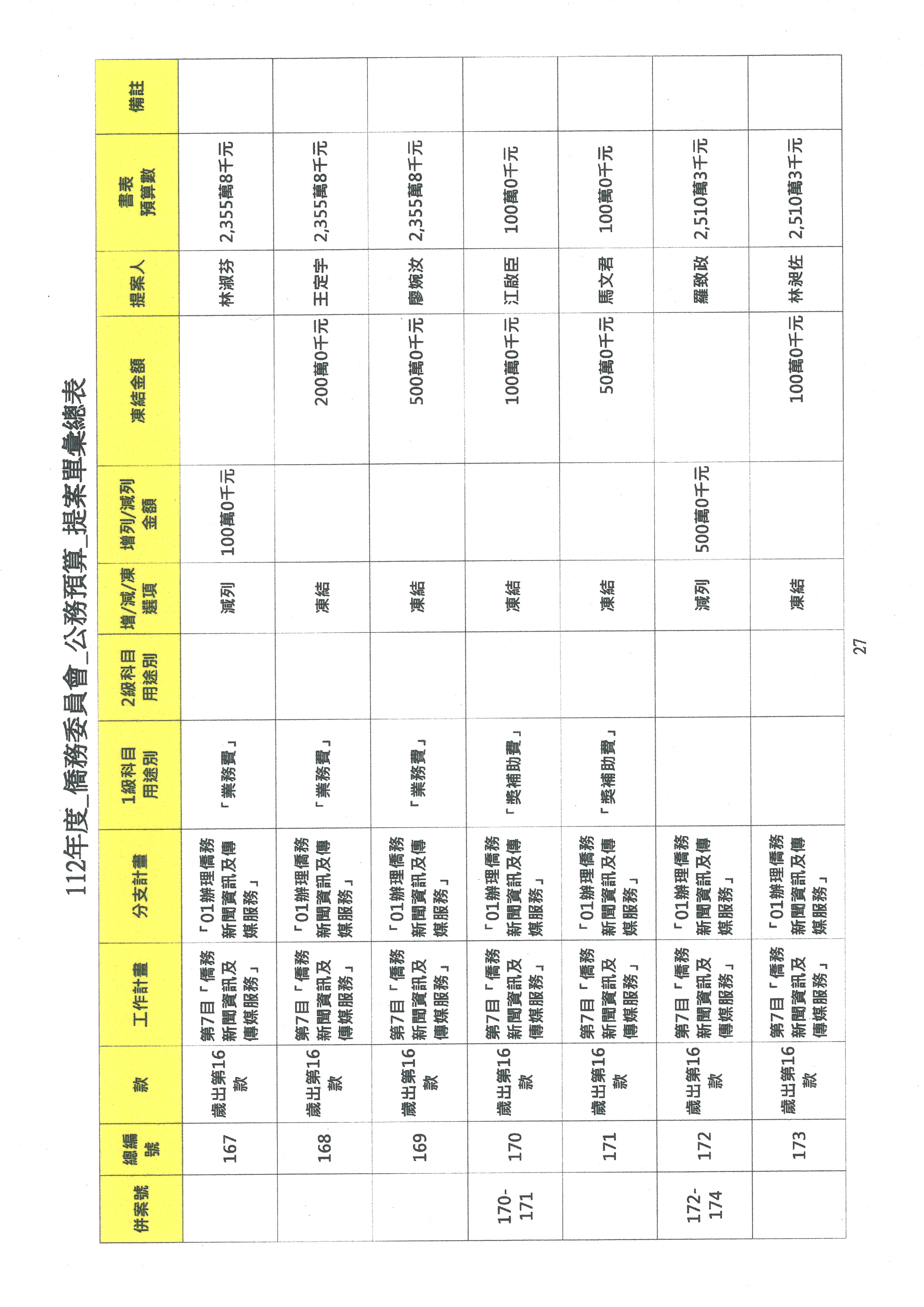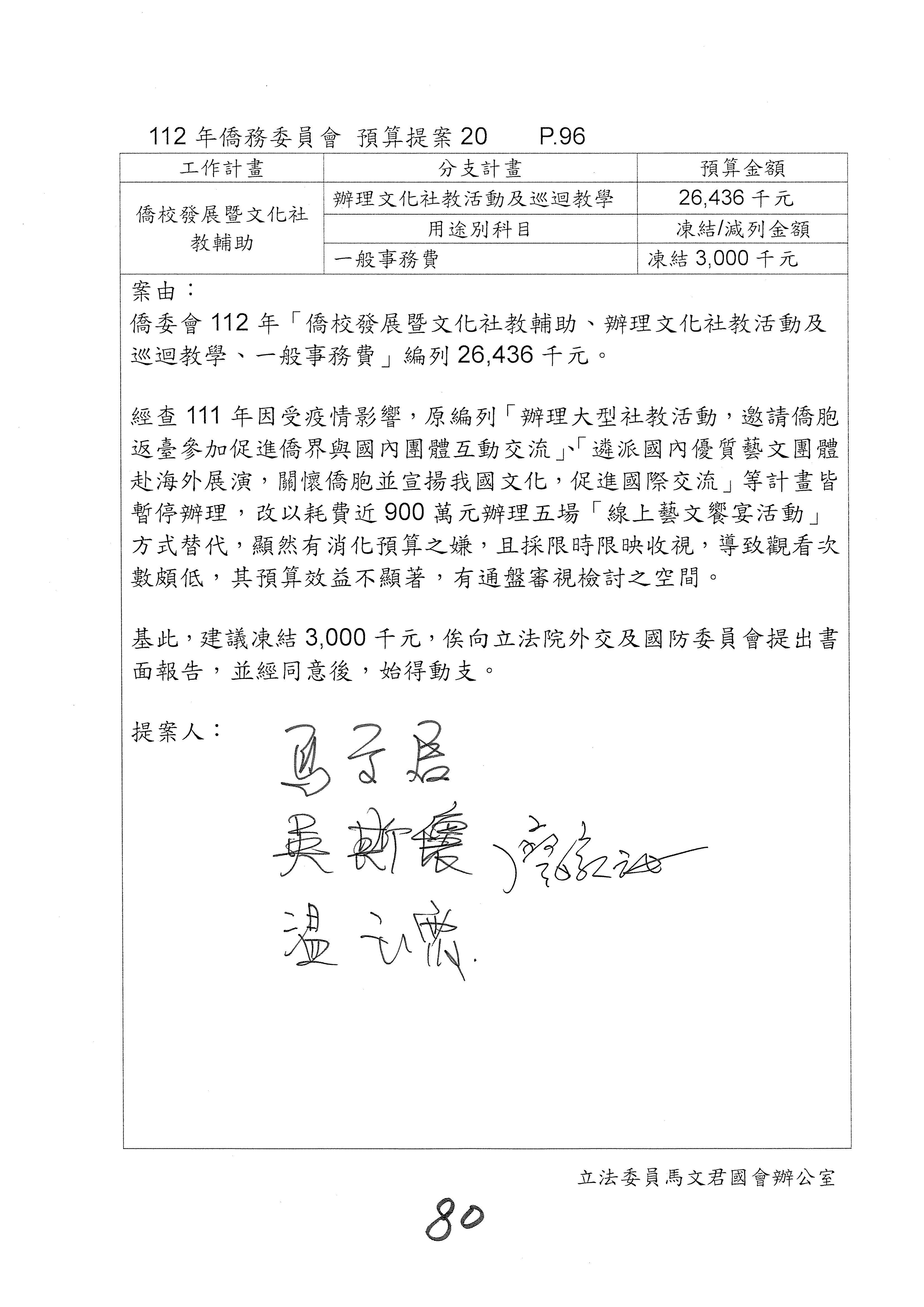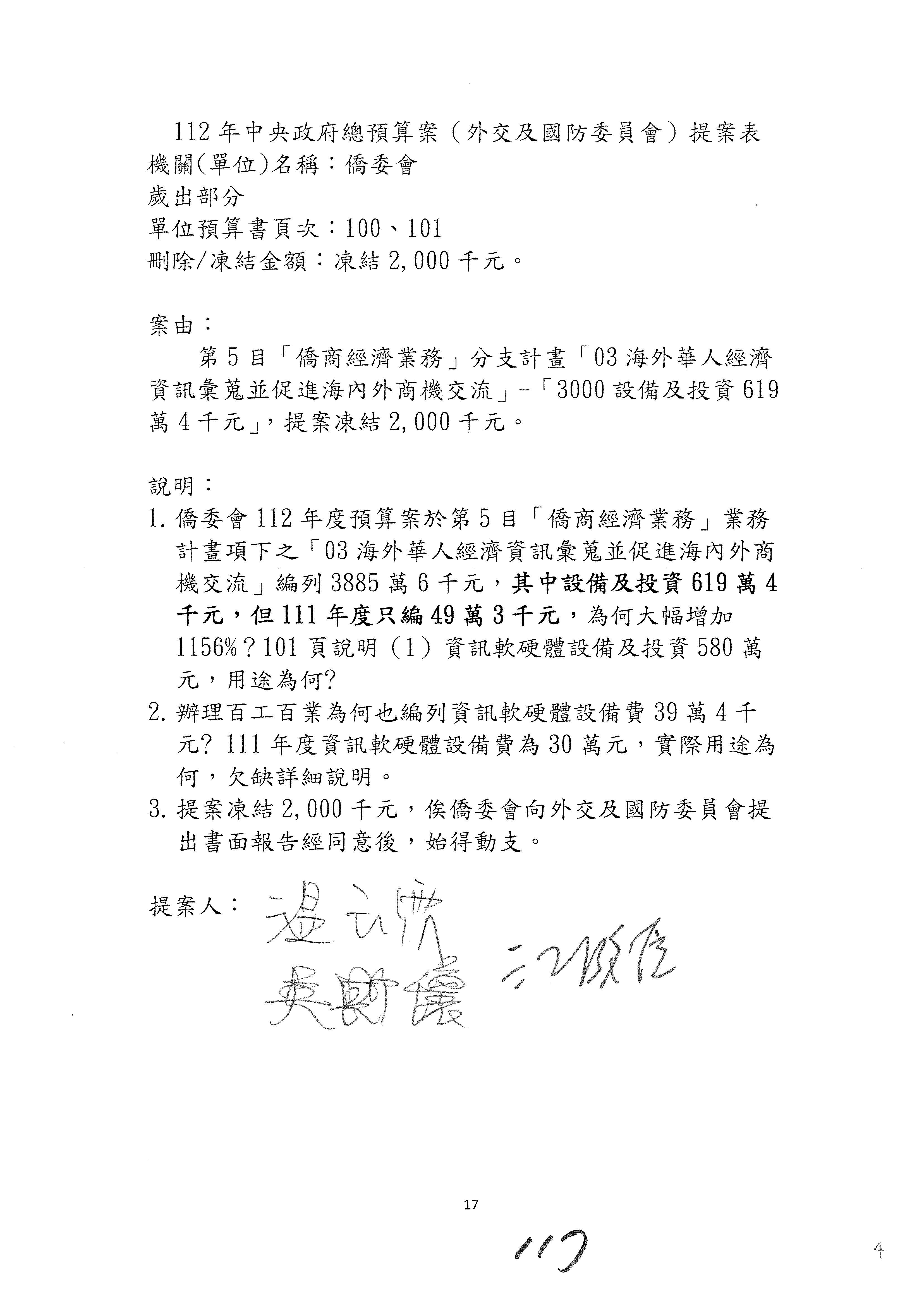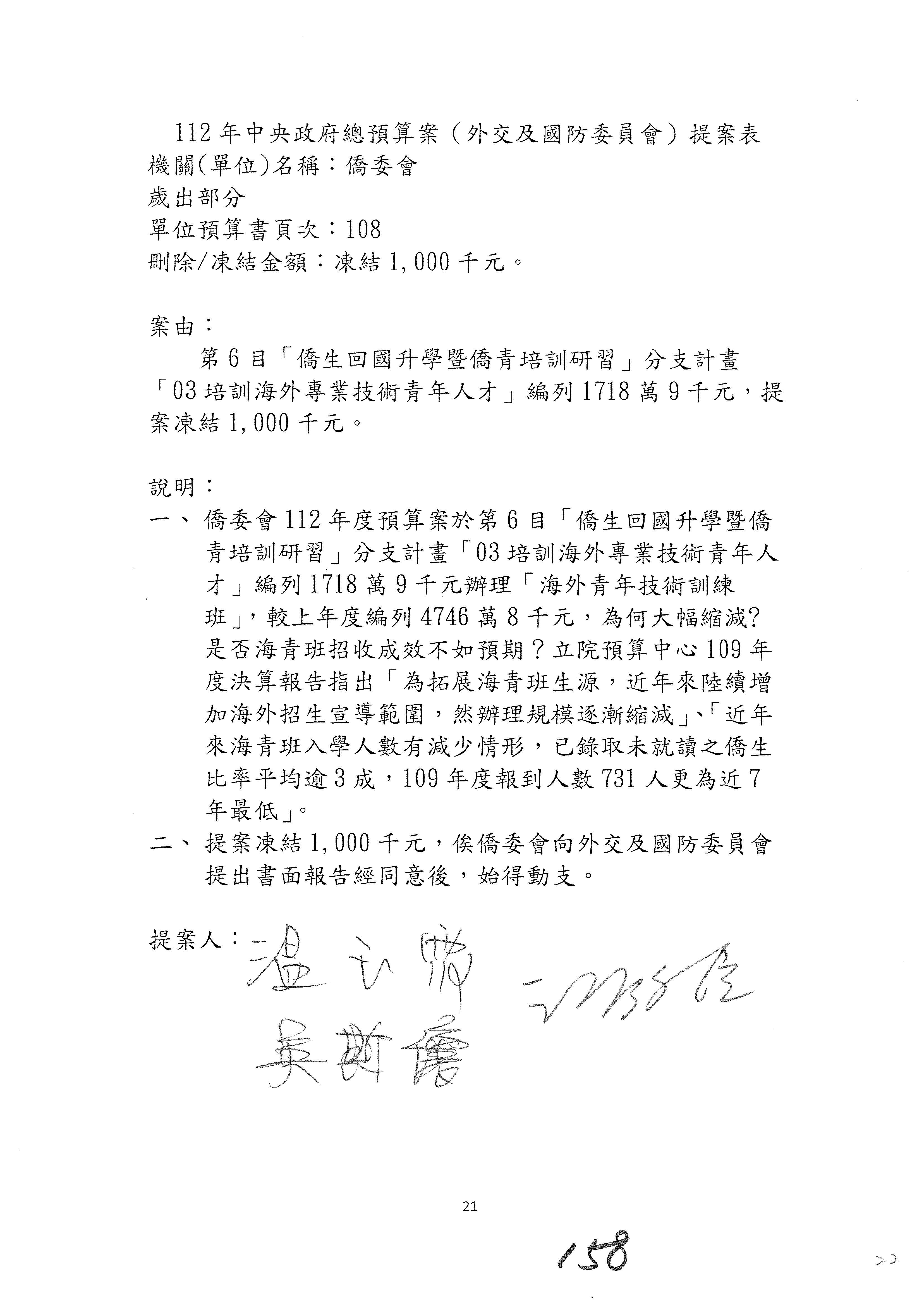 (二)112年度僑務委員會主管預算提案單(公開部分):