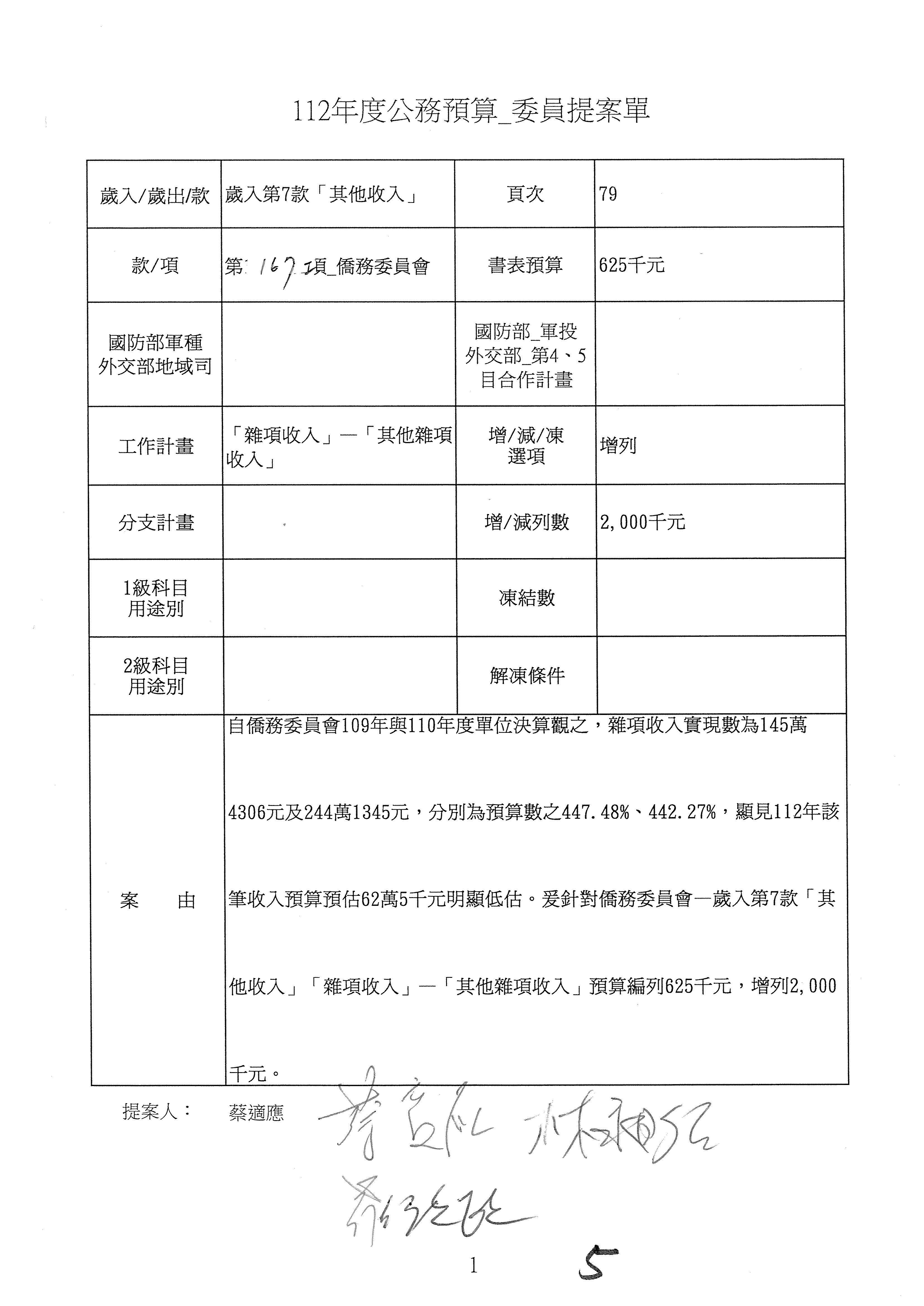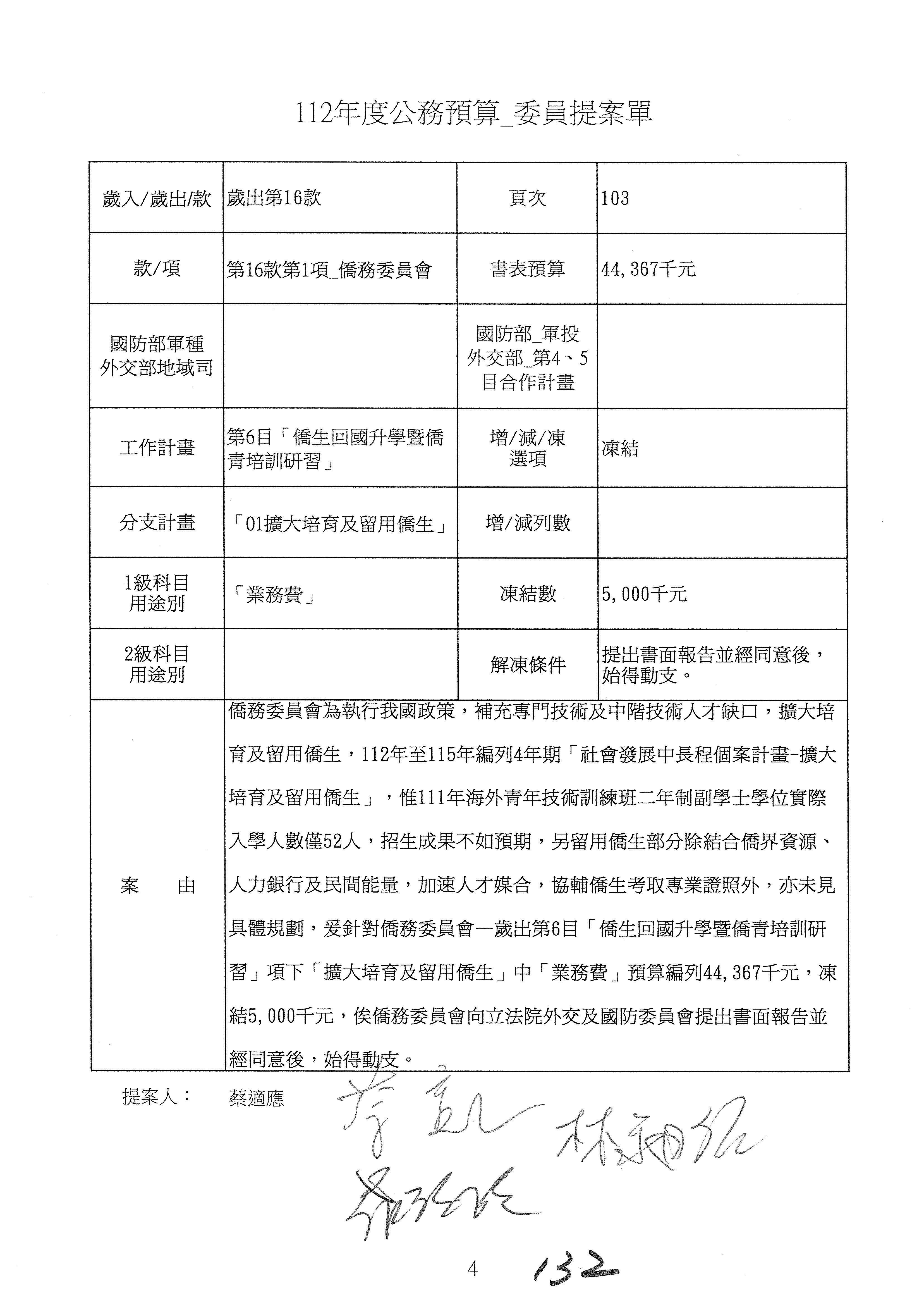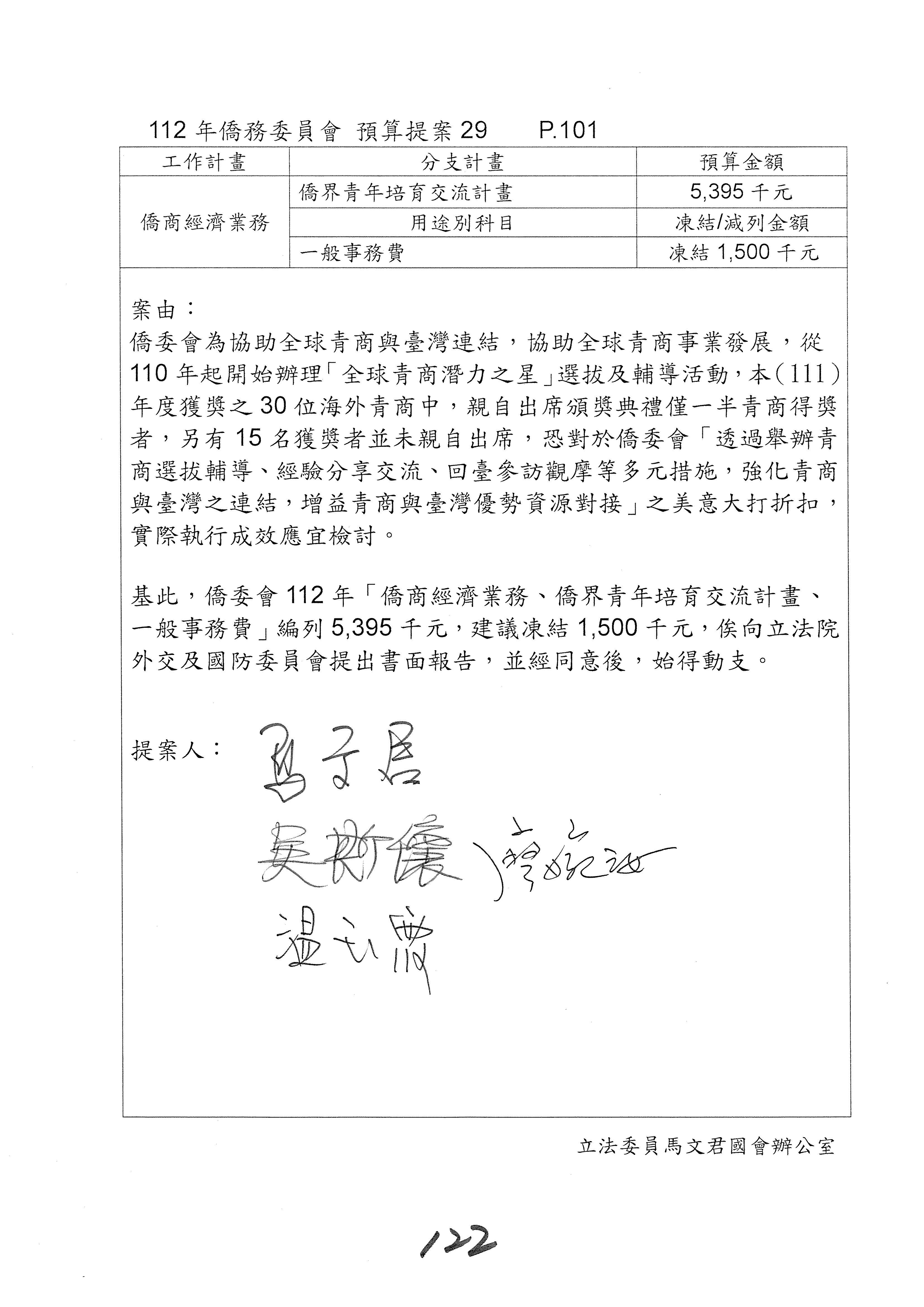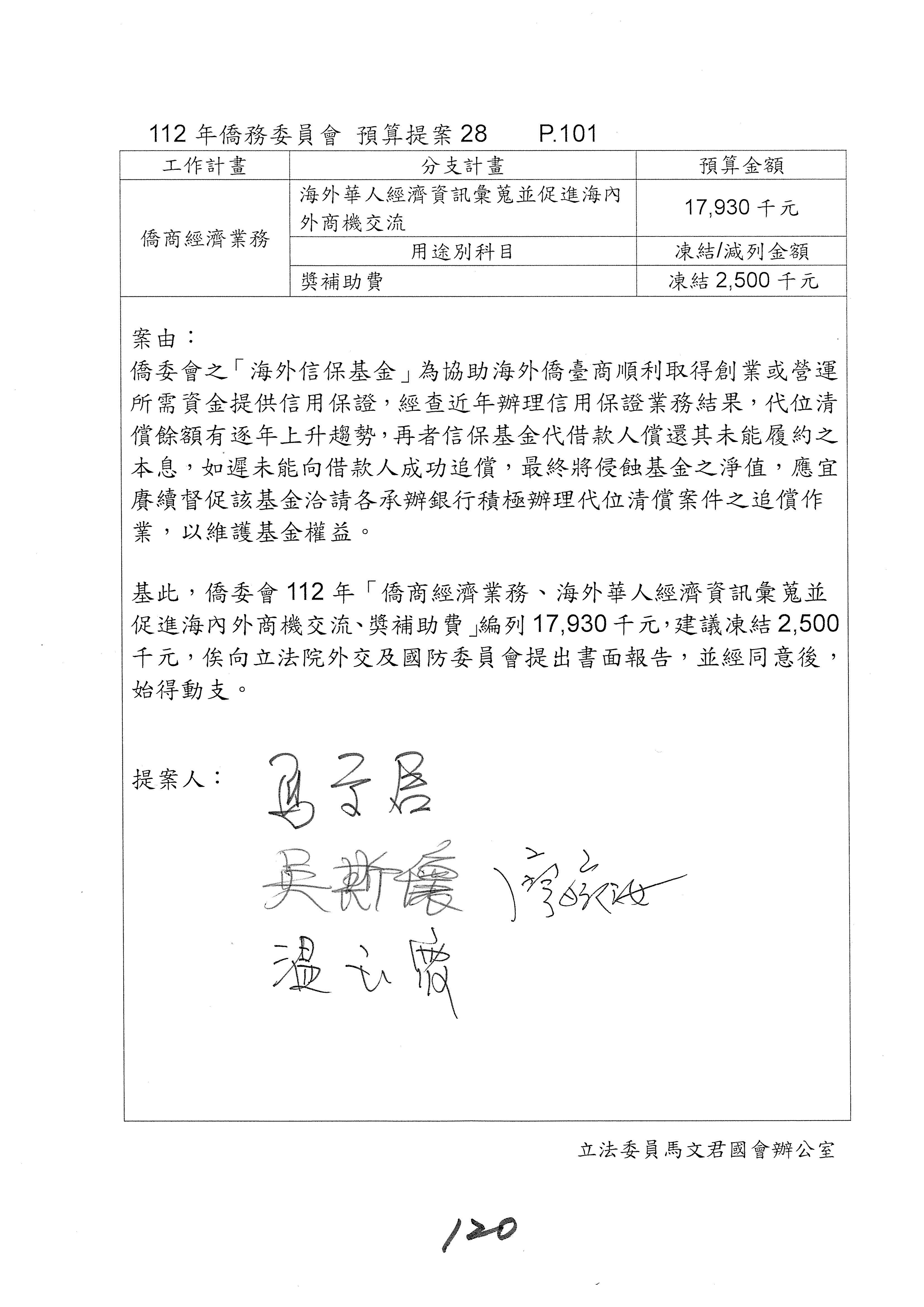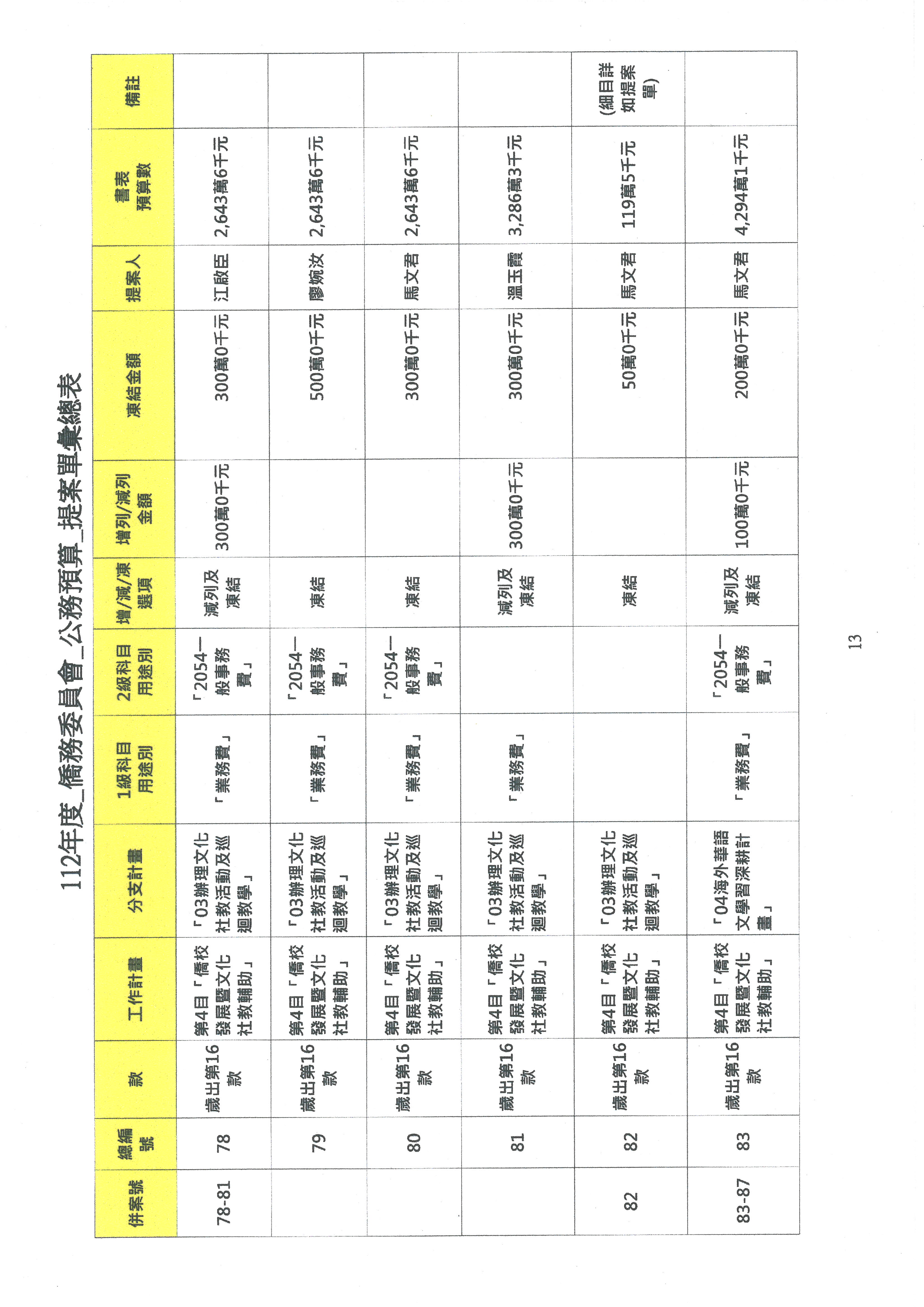 (二)112年度僑務委員會主管預算提案單(公開部分):