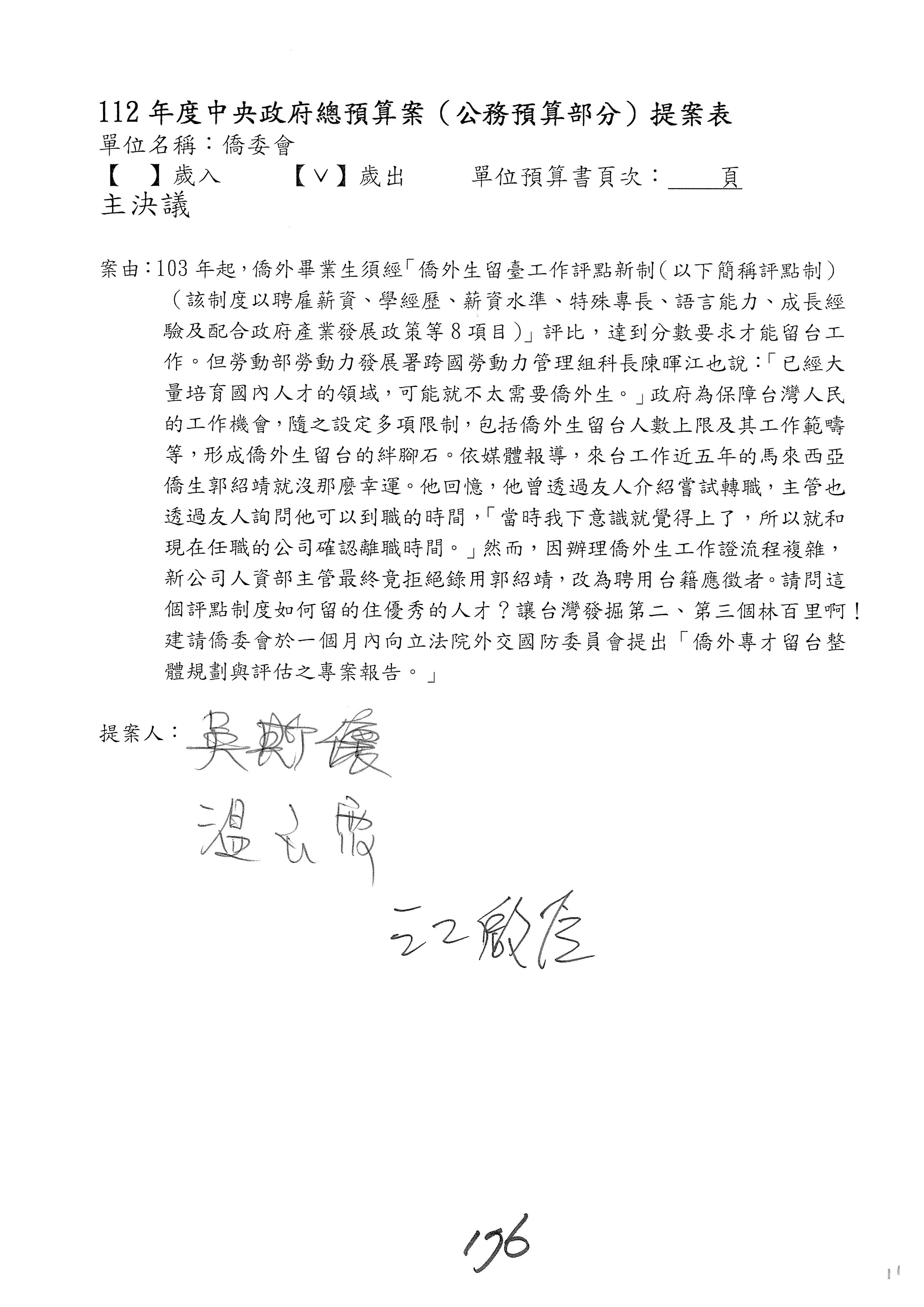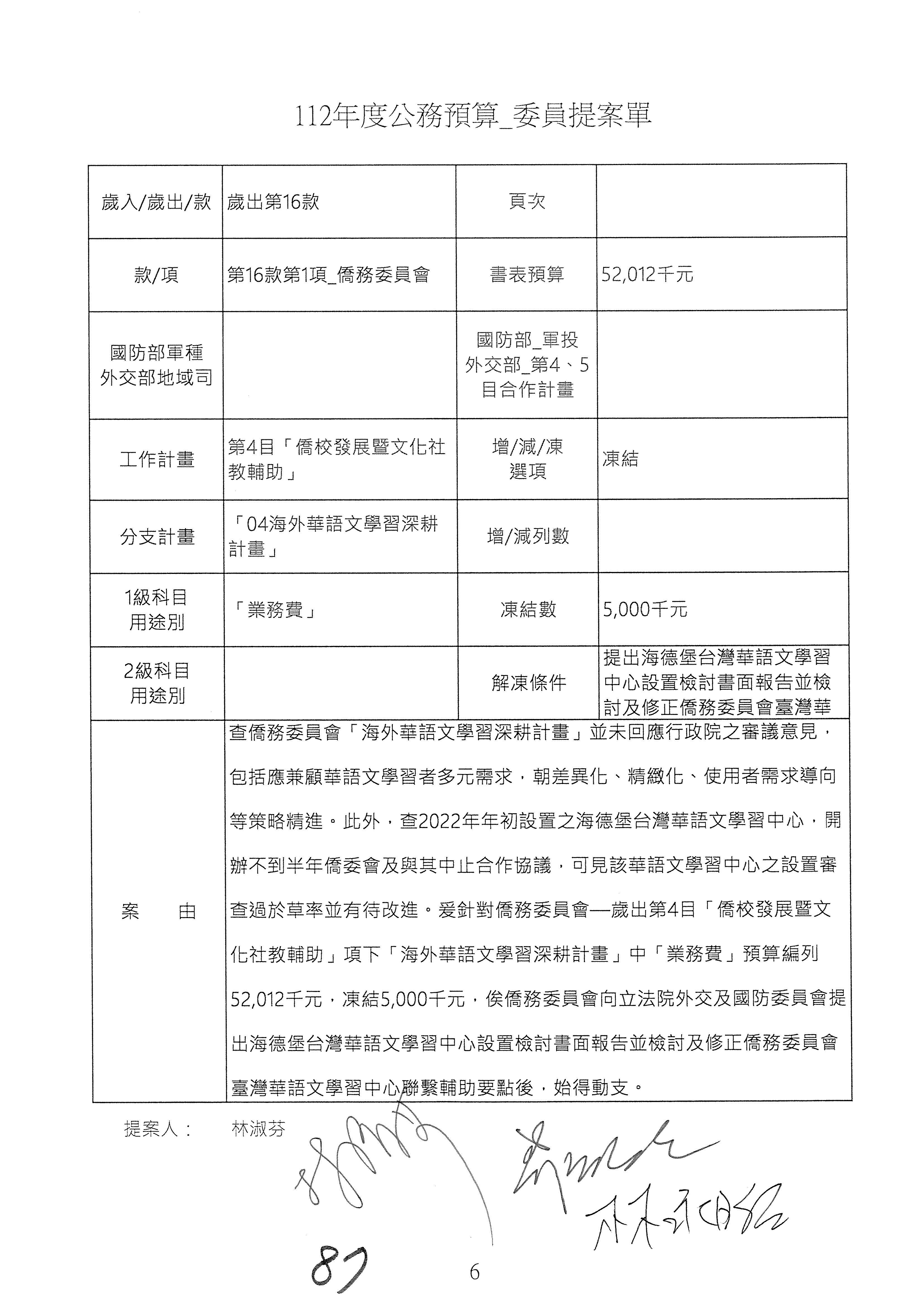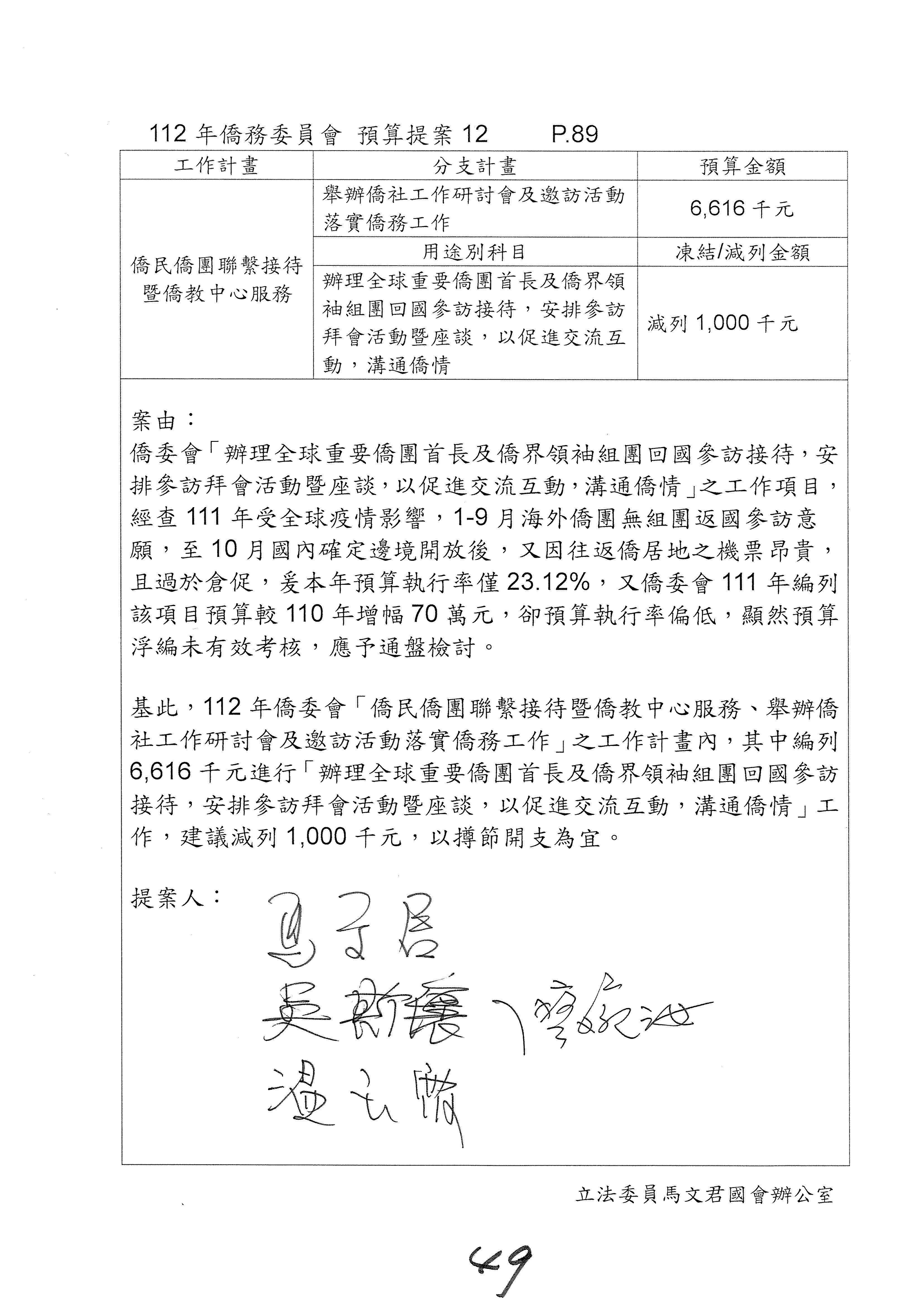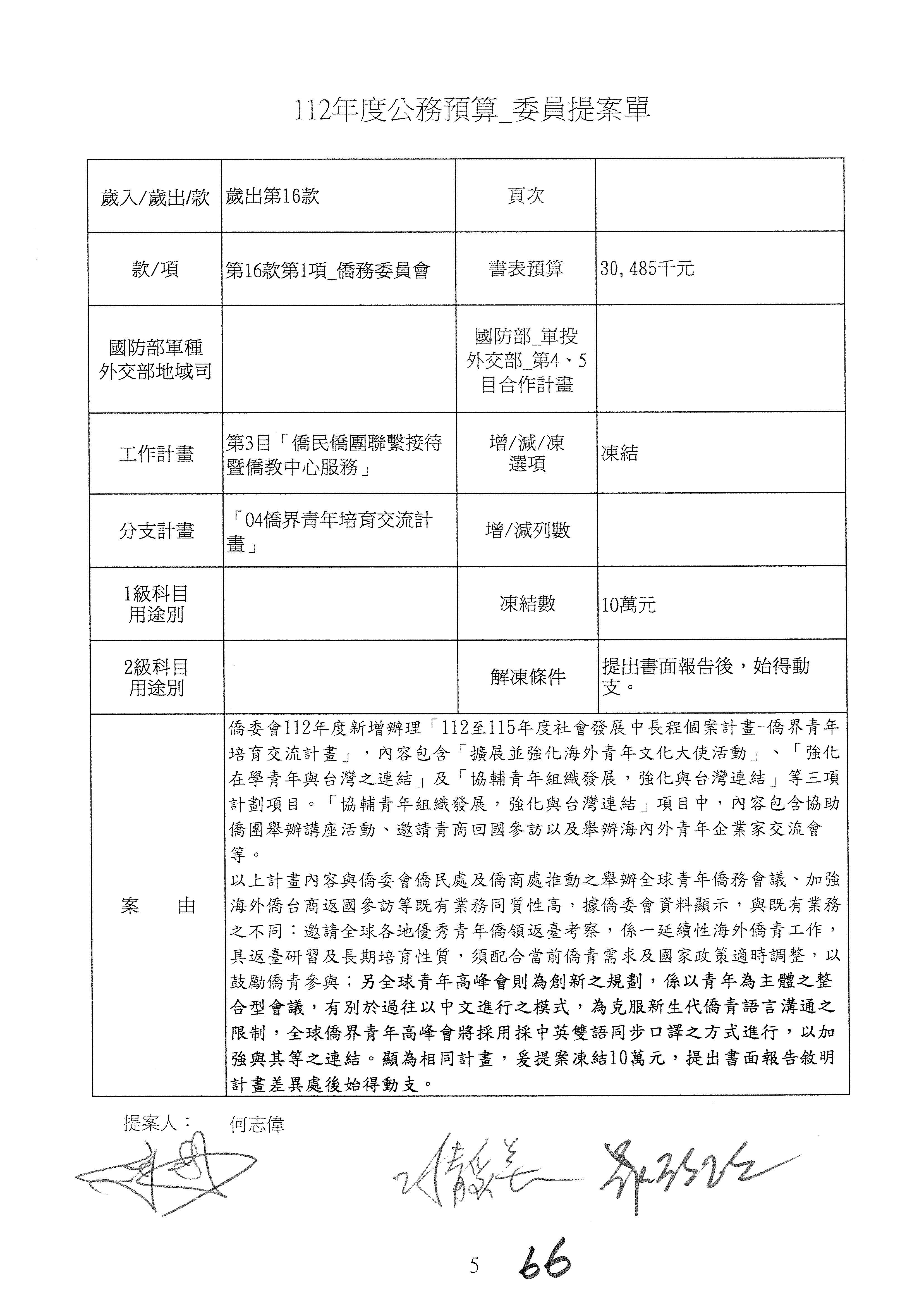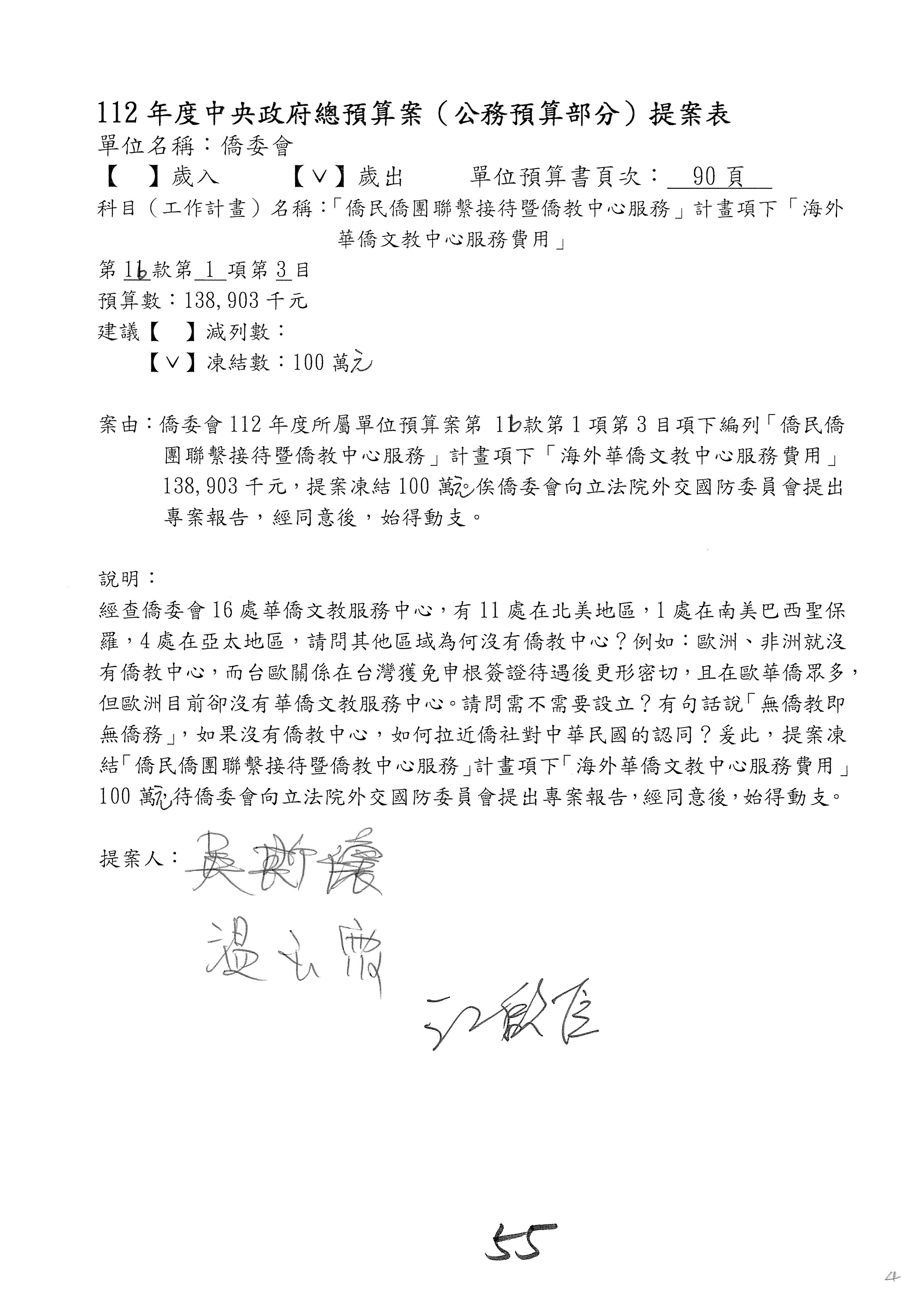 (二)112年度僑務委員會主管預算提案單(公開部分):