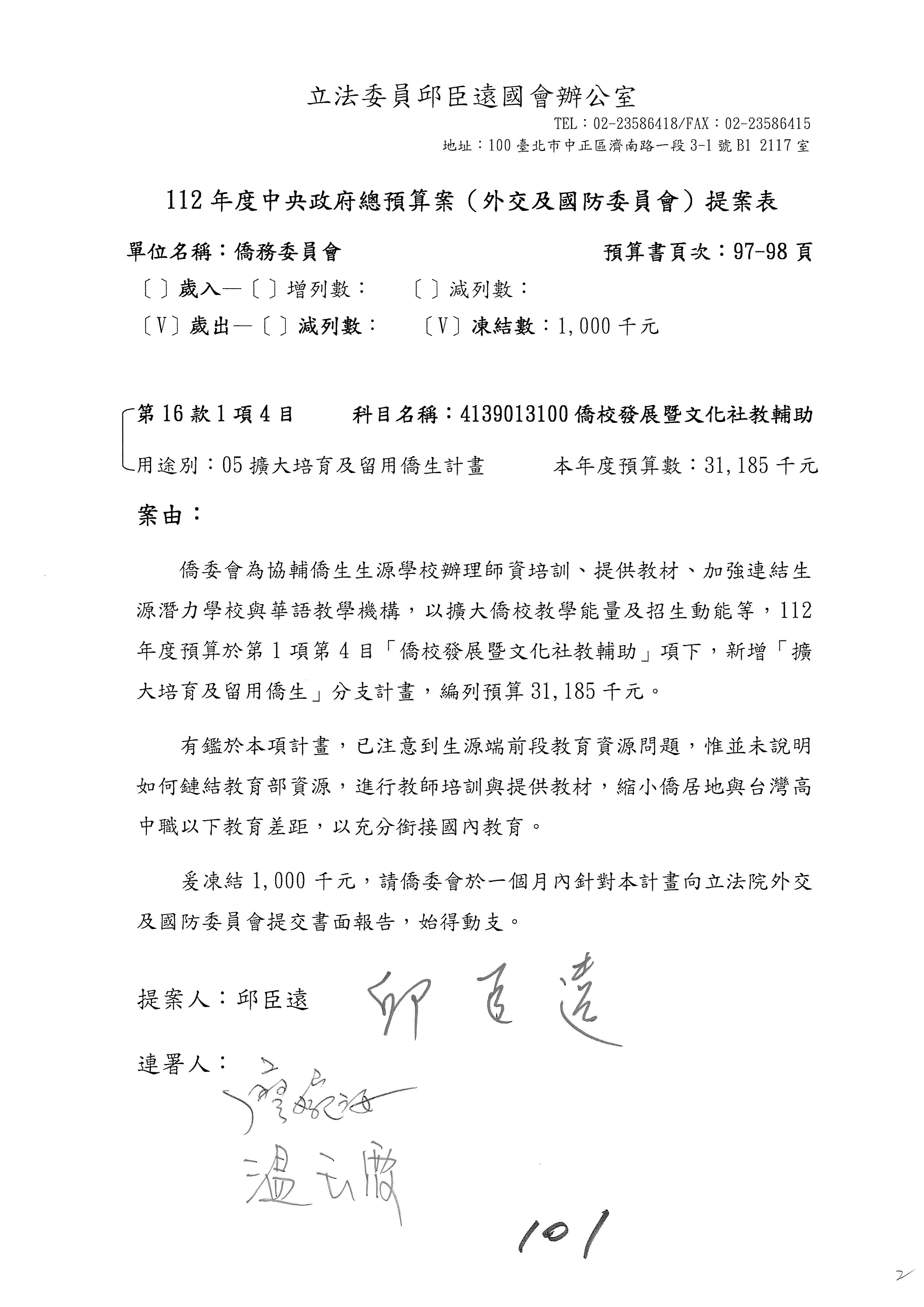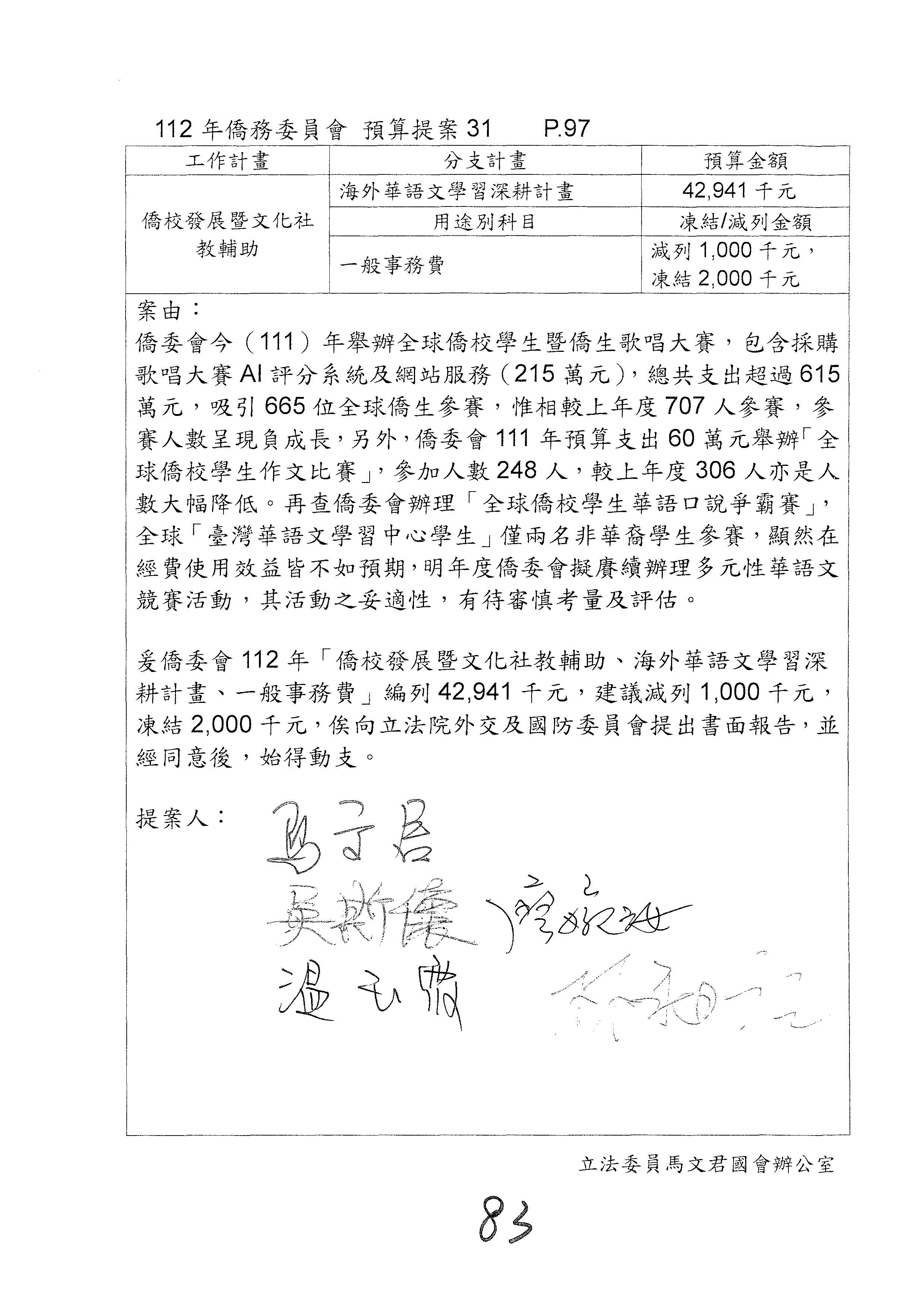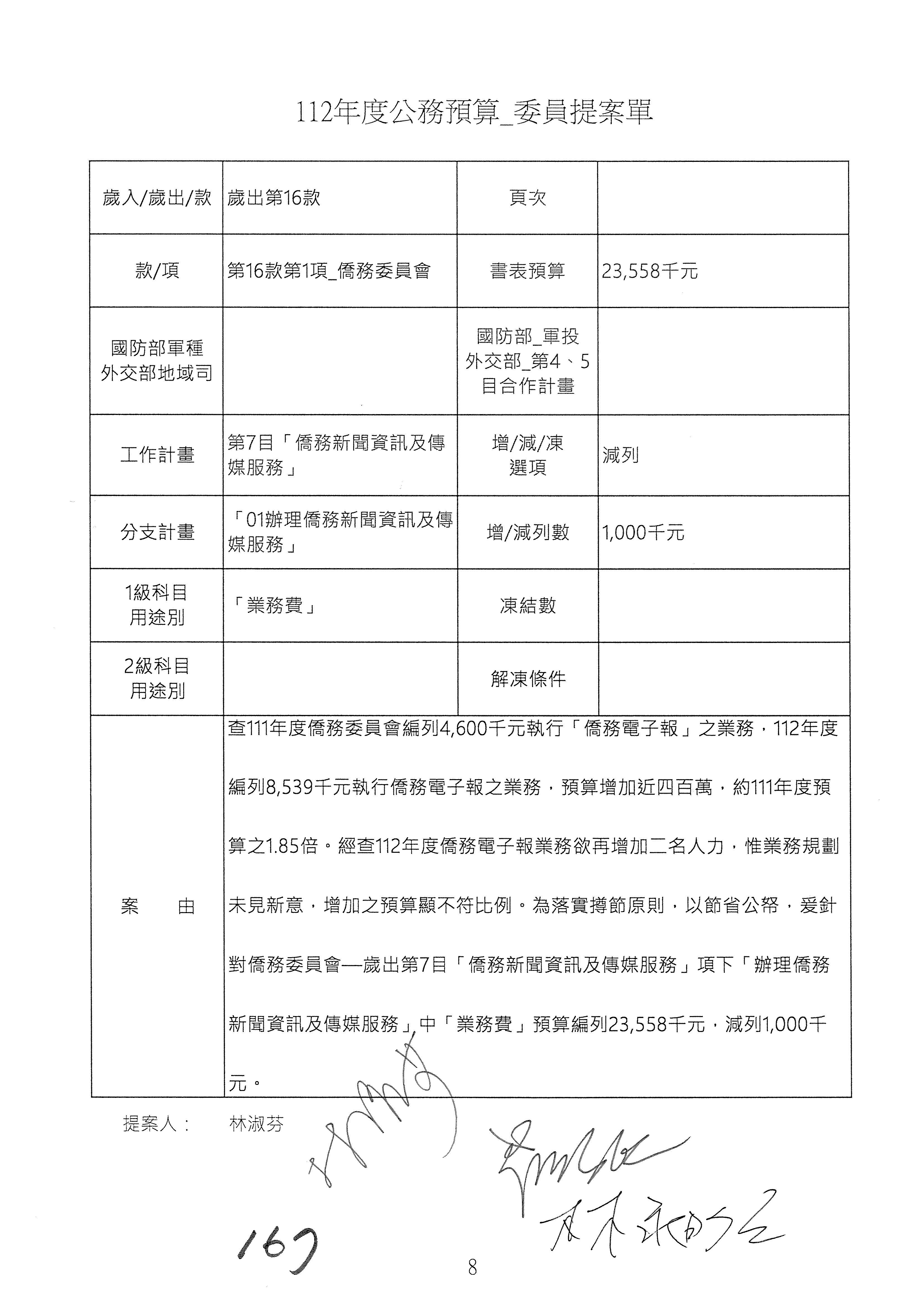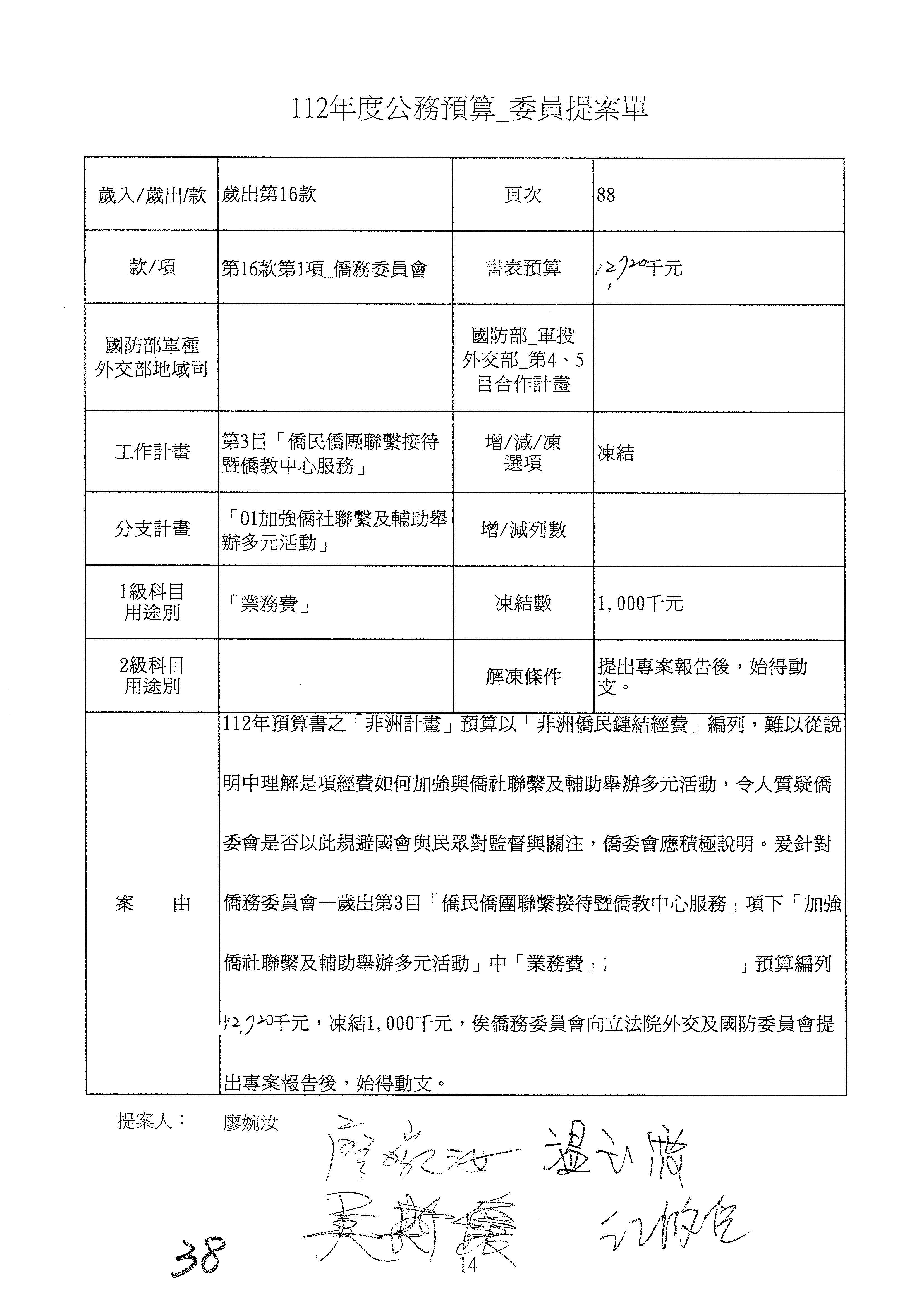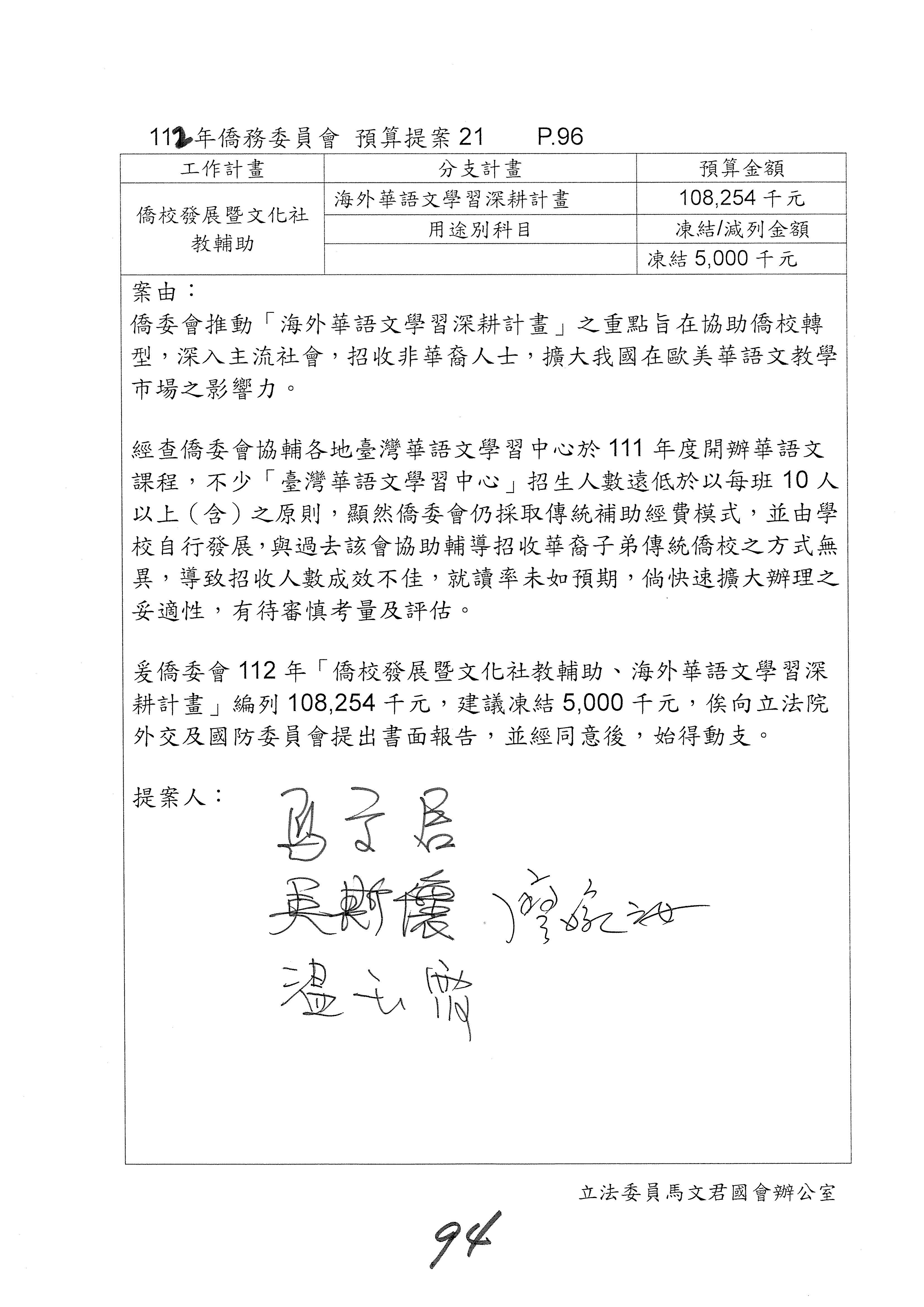 (二)112年度僑務委員會主管預算提案單(公開部分):