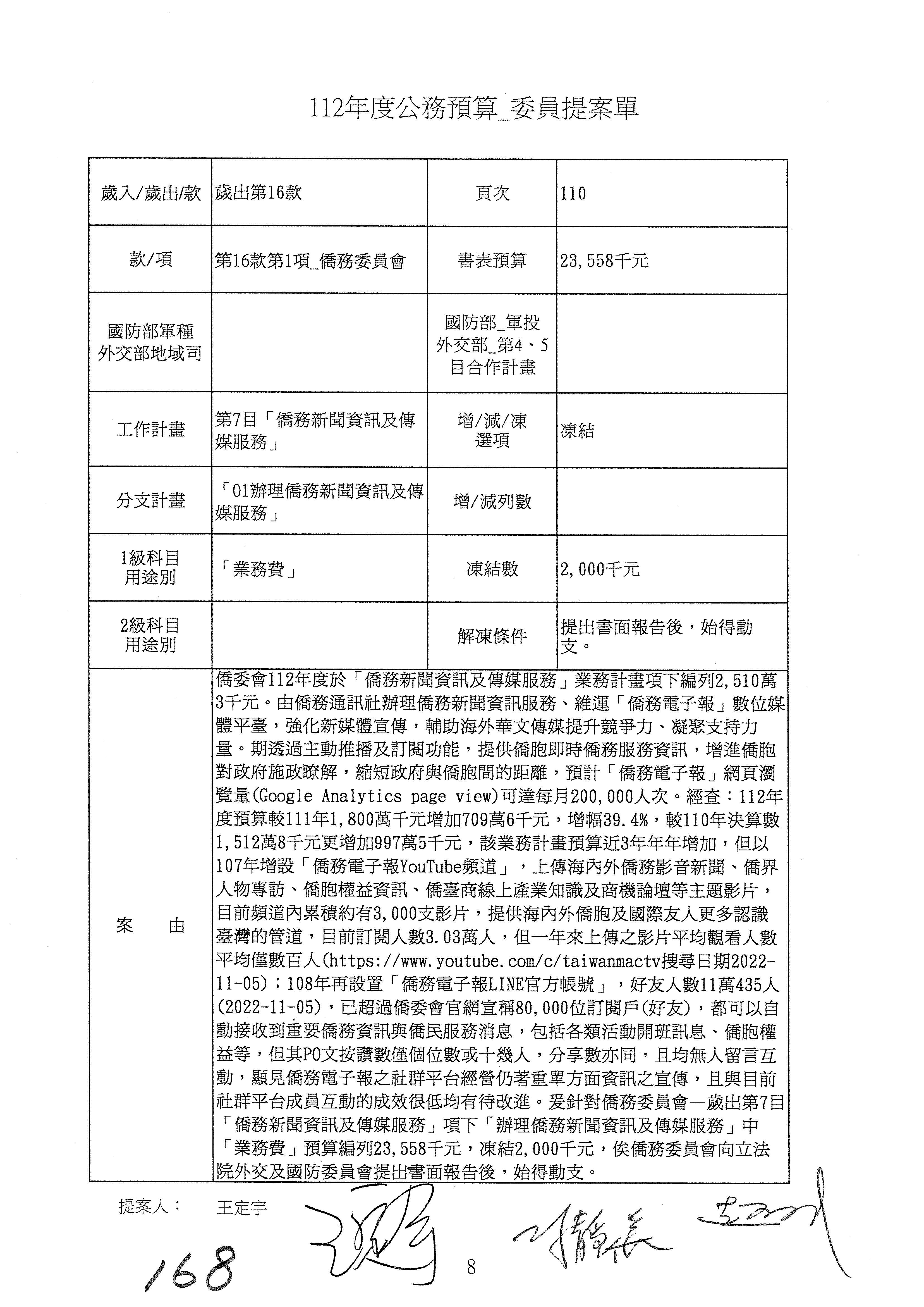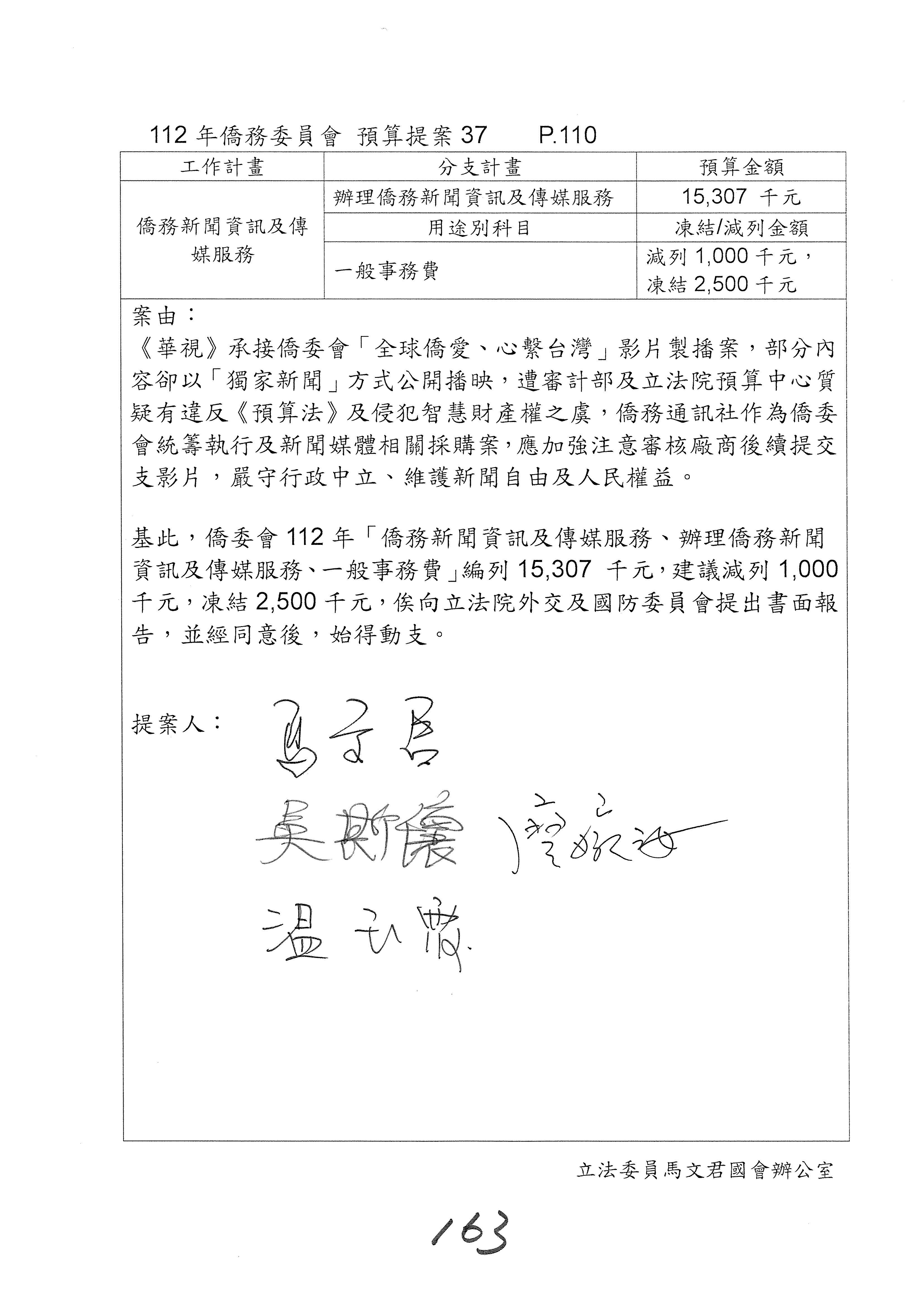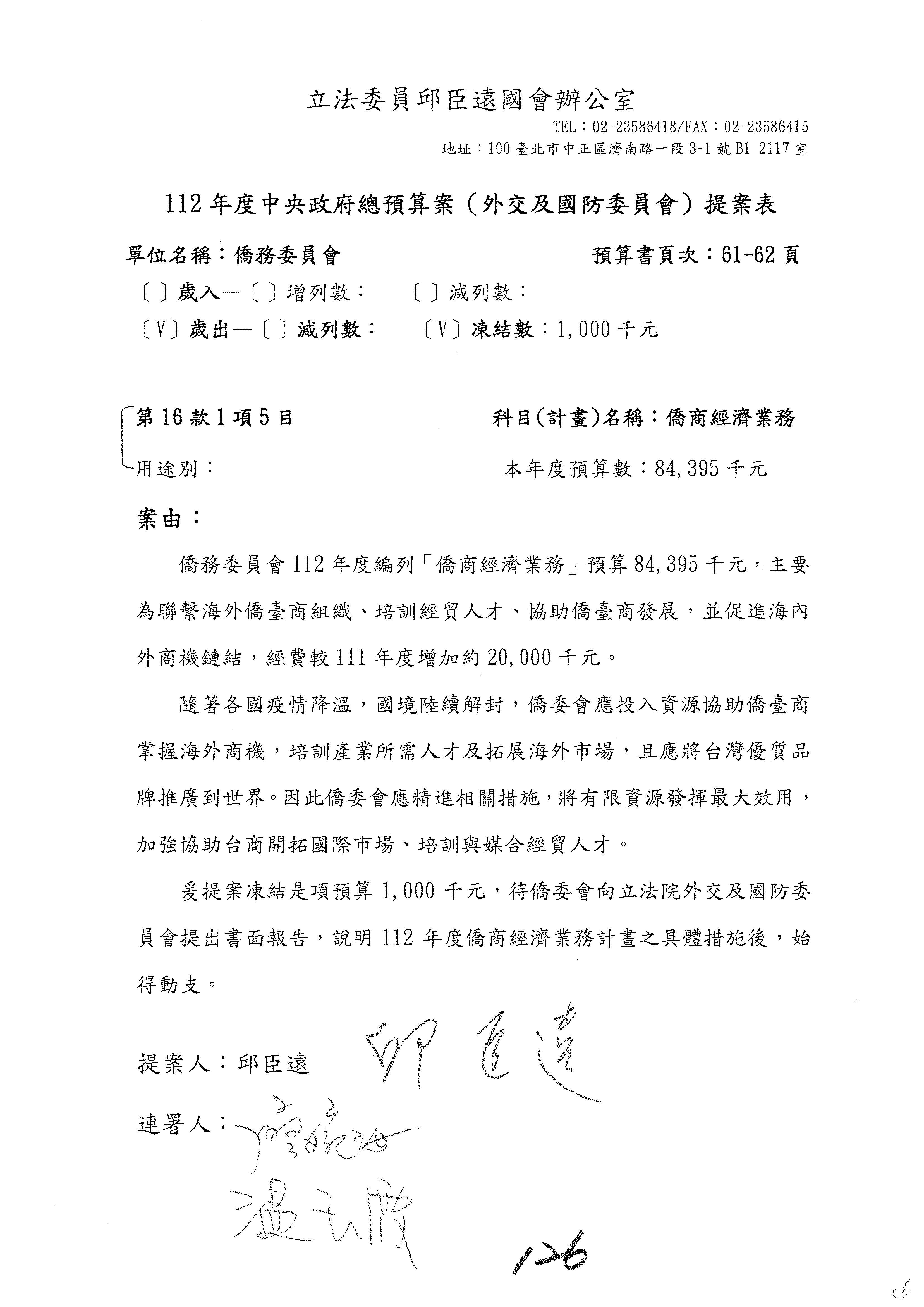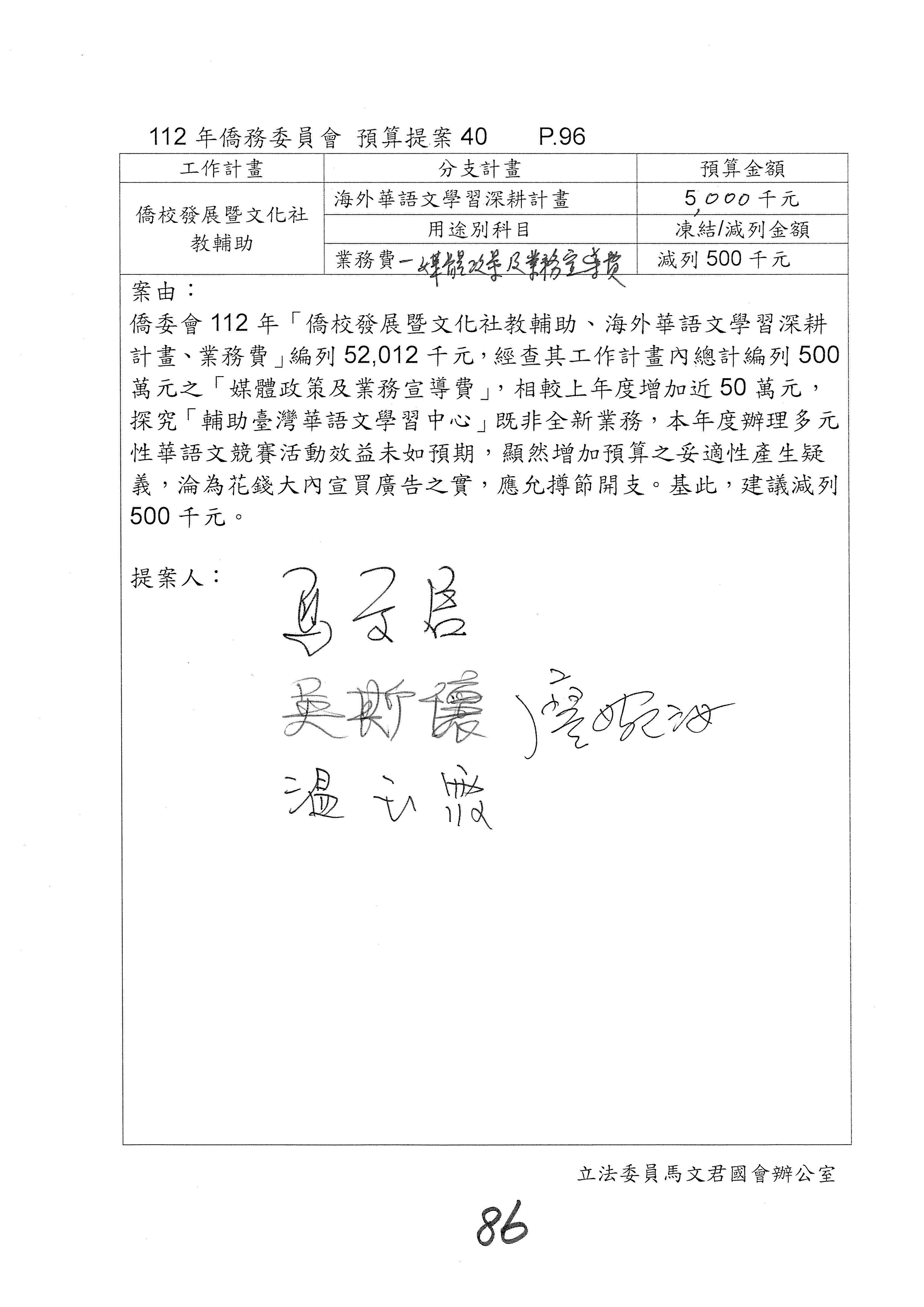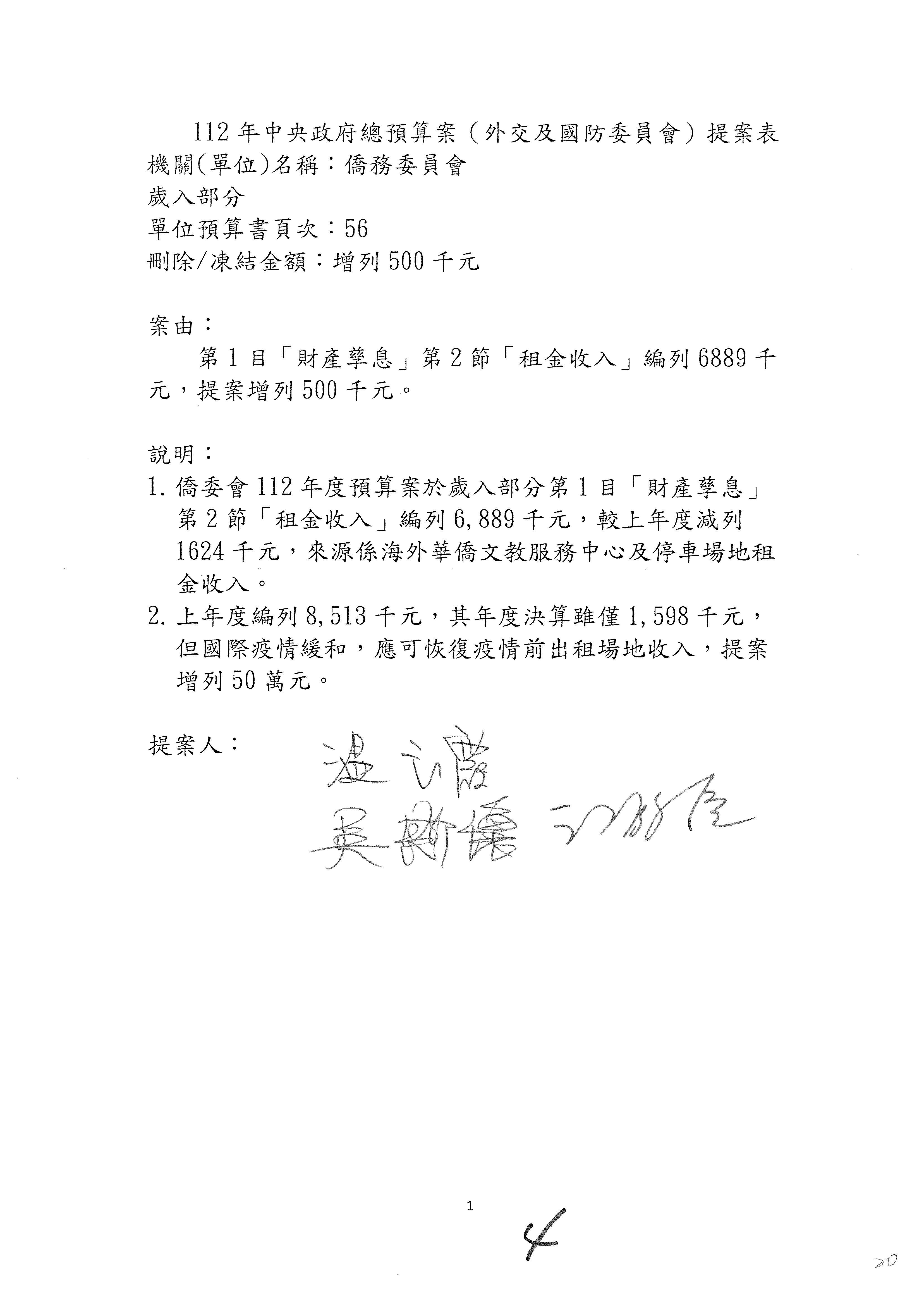 (二)112年度僑務委員會主管預算提案單(公開部分):