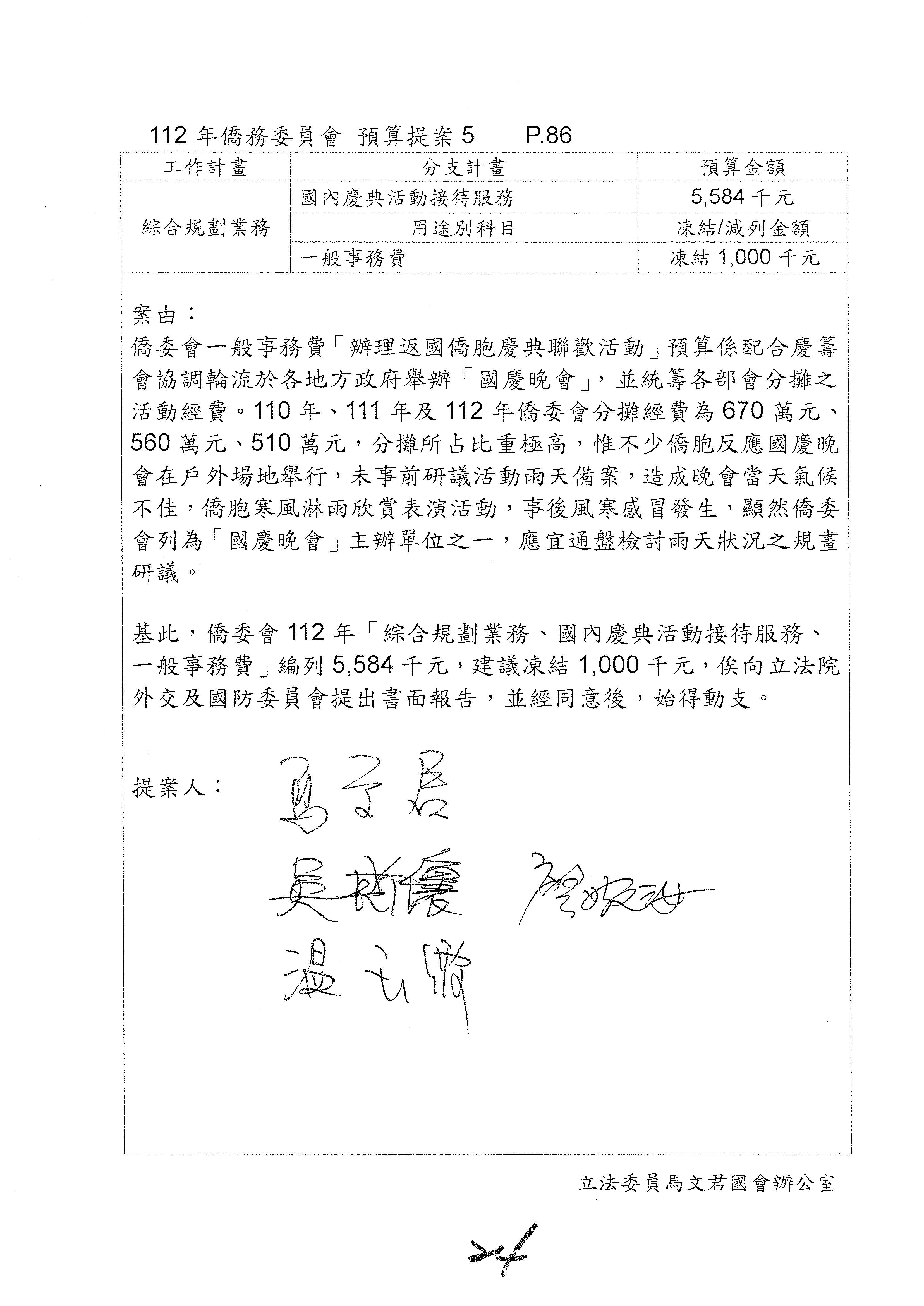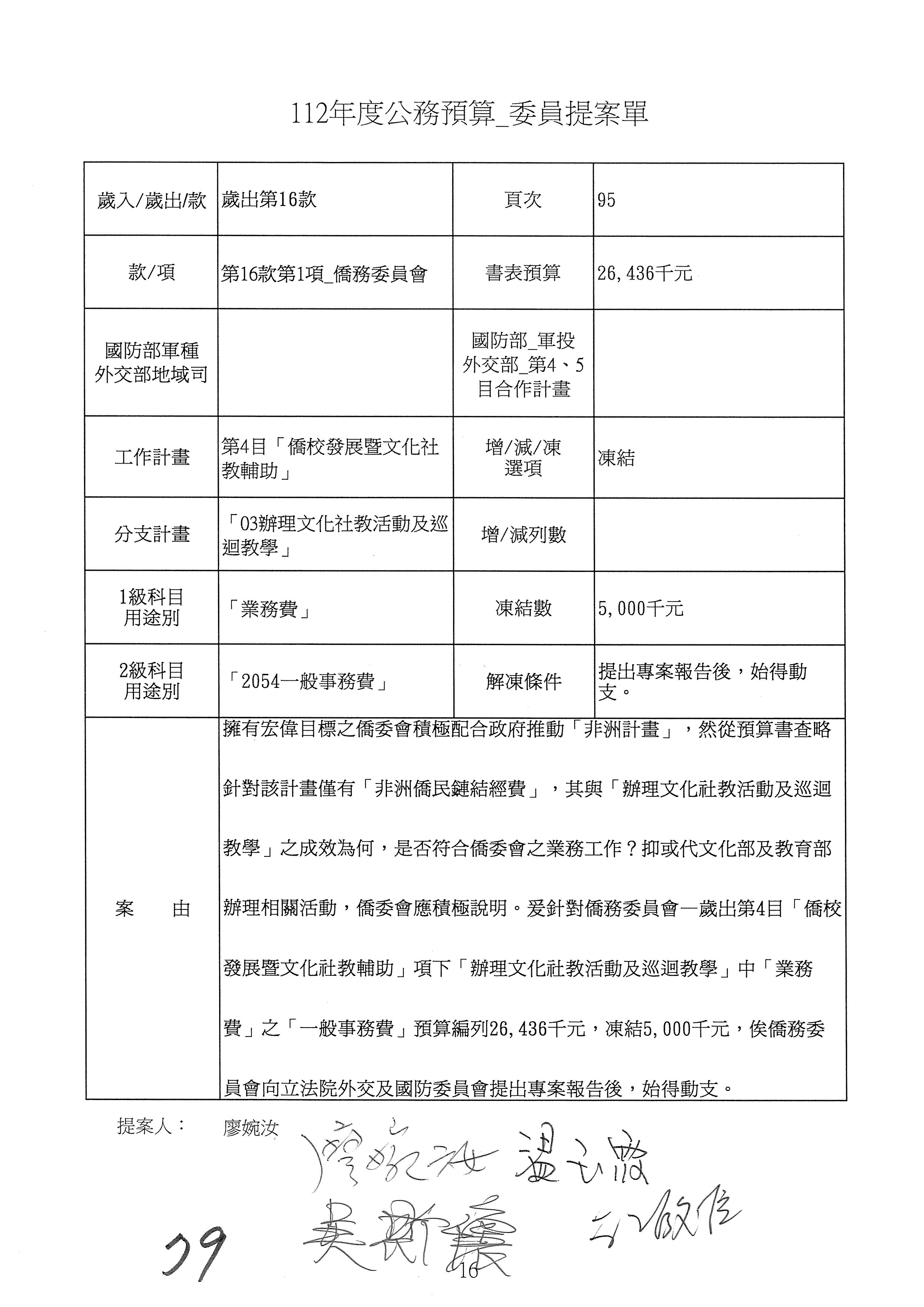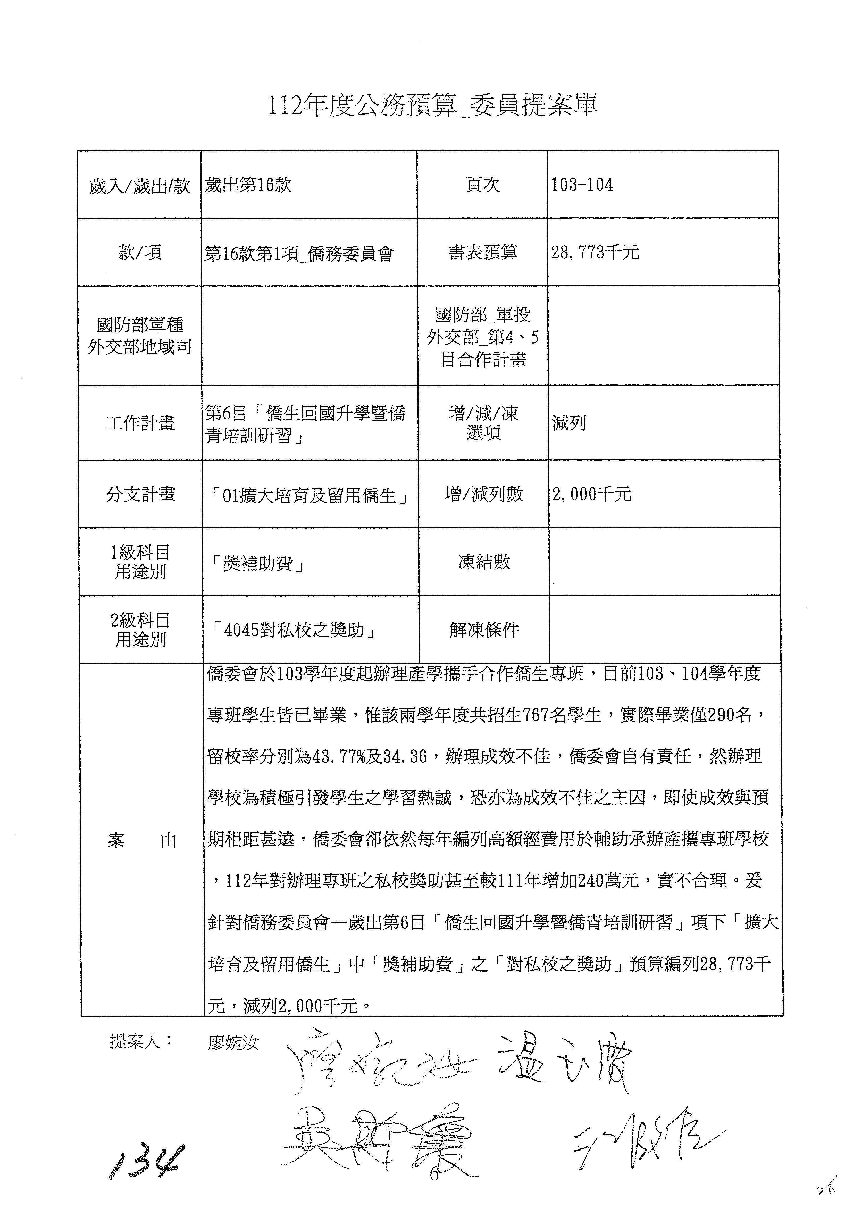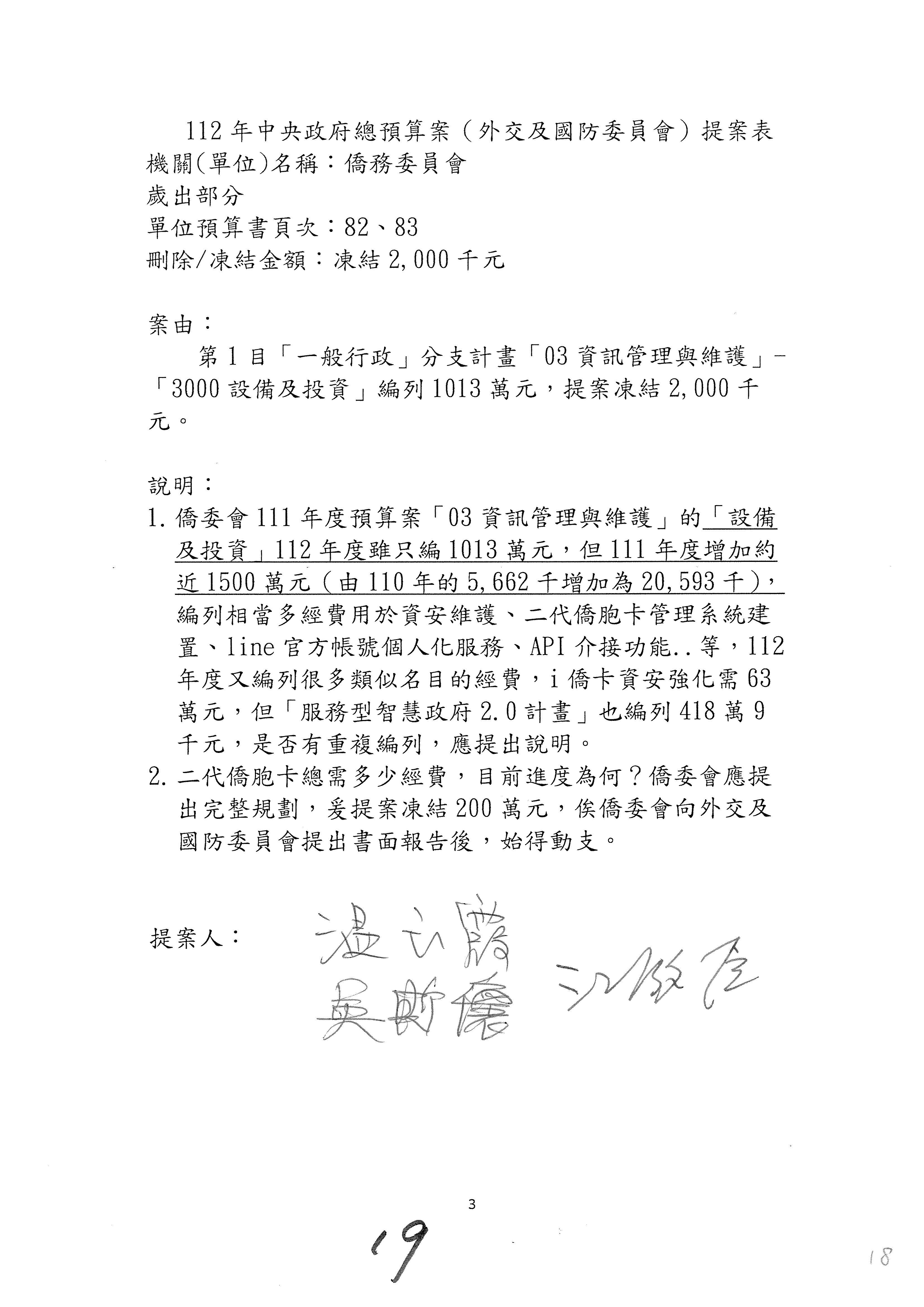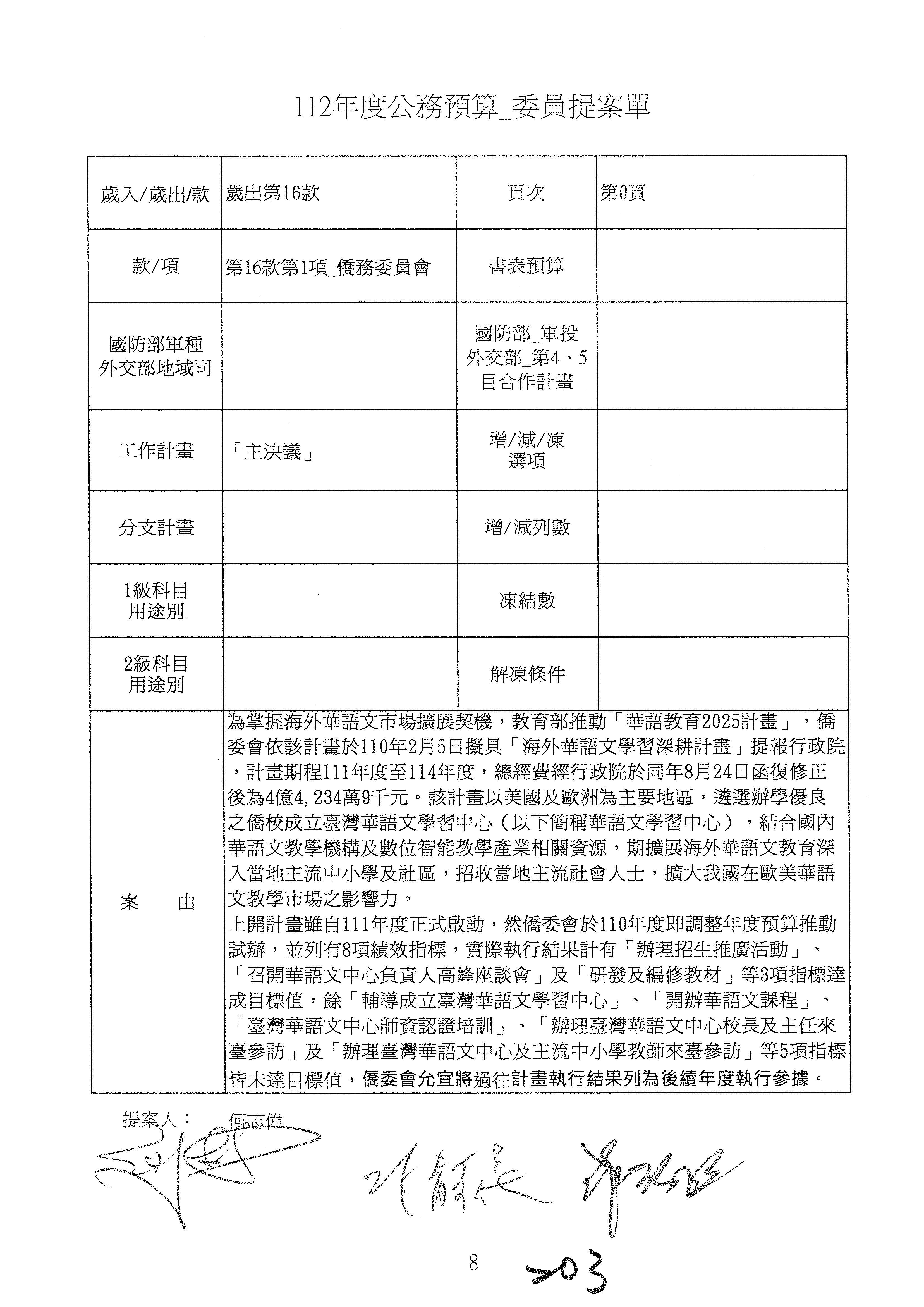(二)112年度僑務委員會主管預算提案單(公開部分):