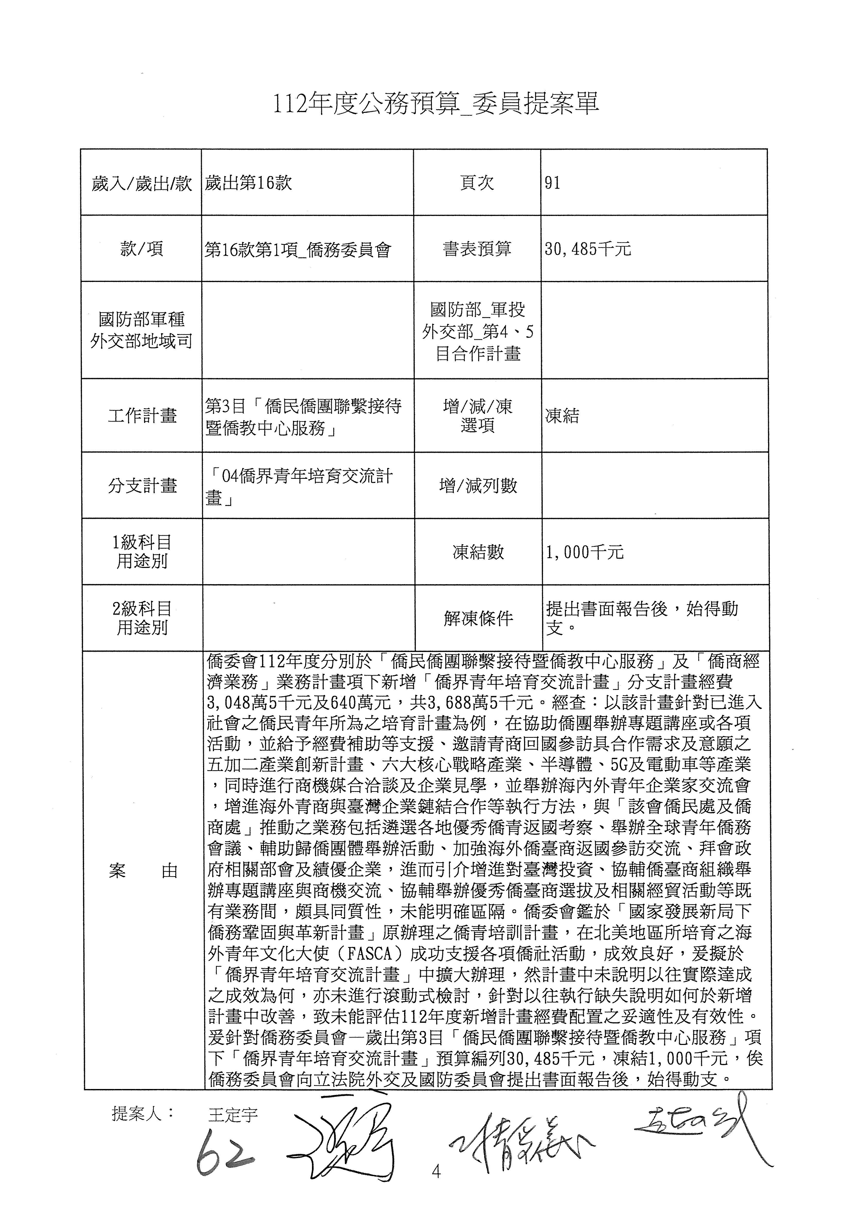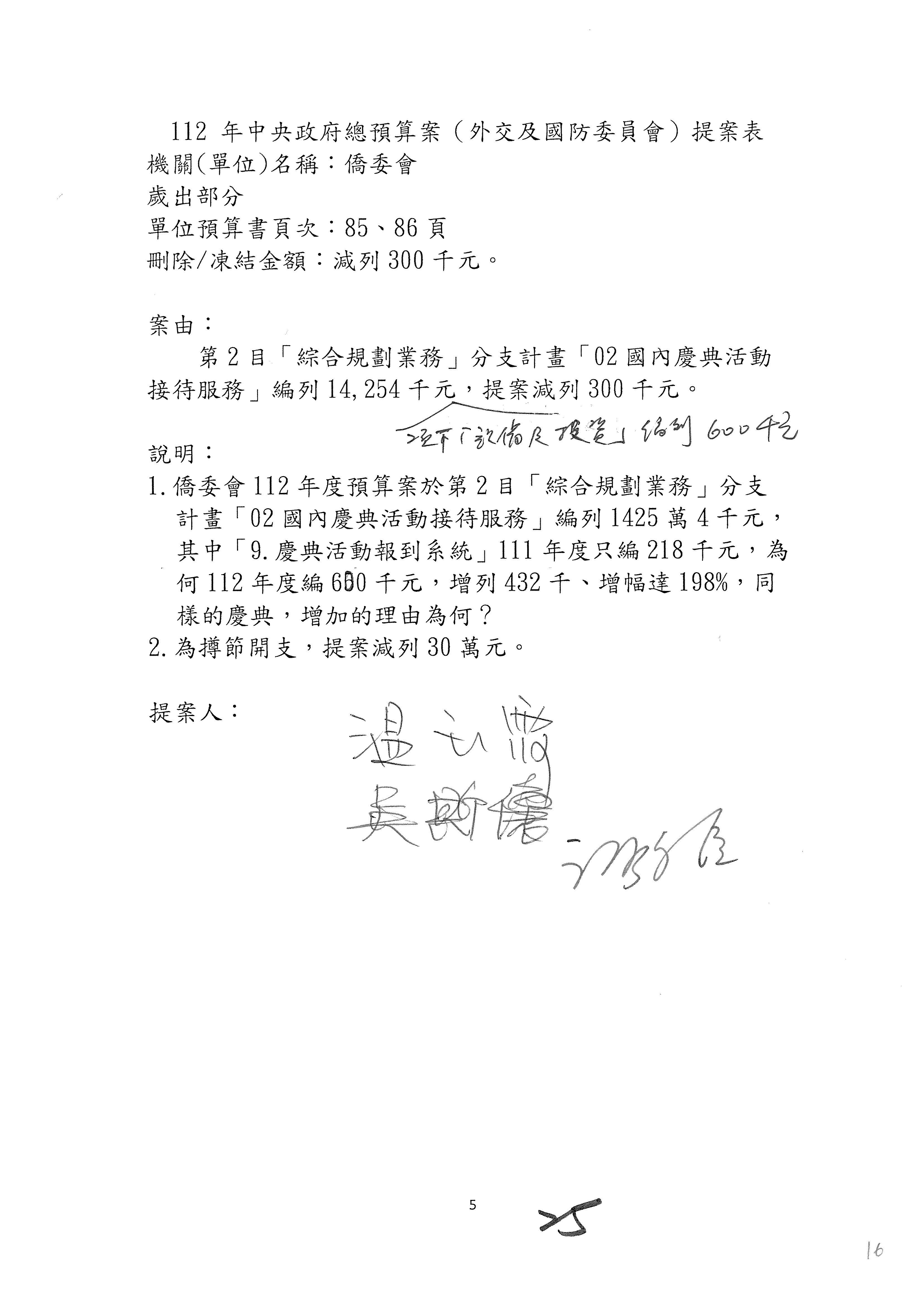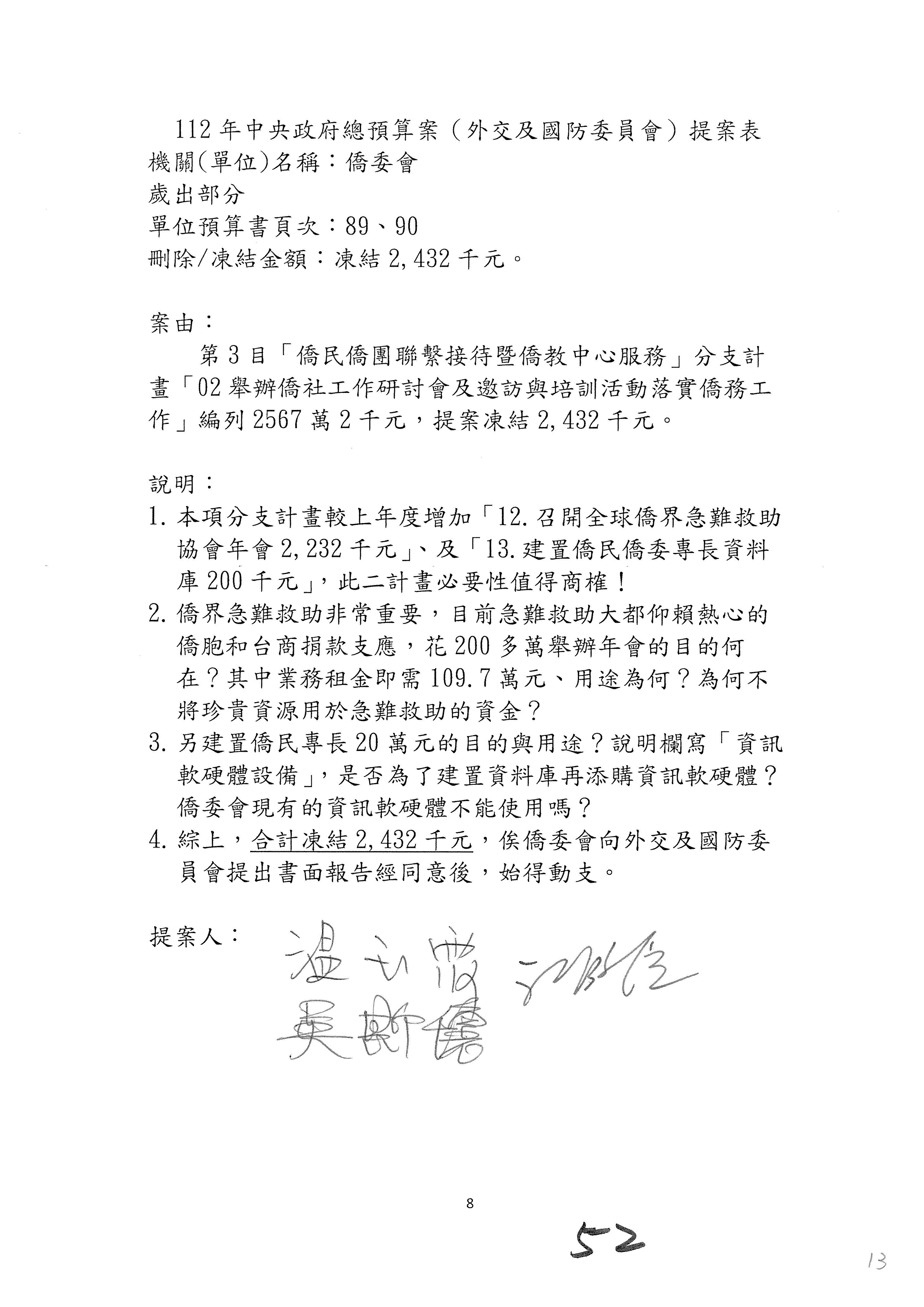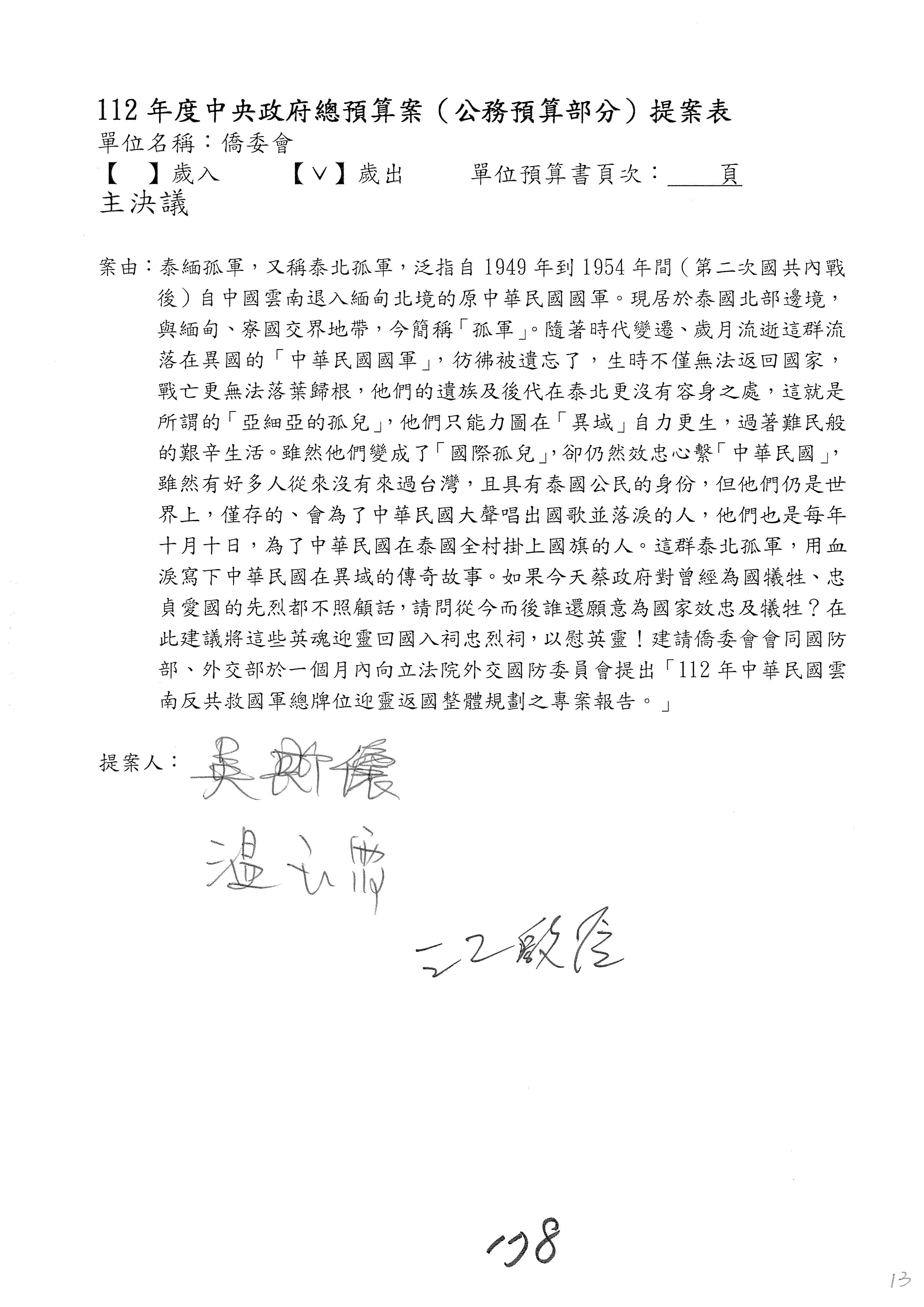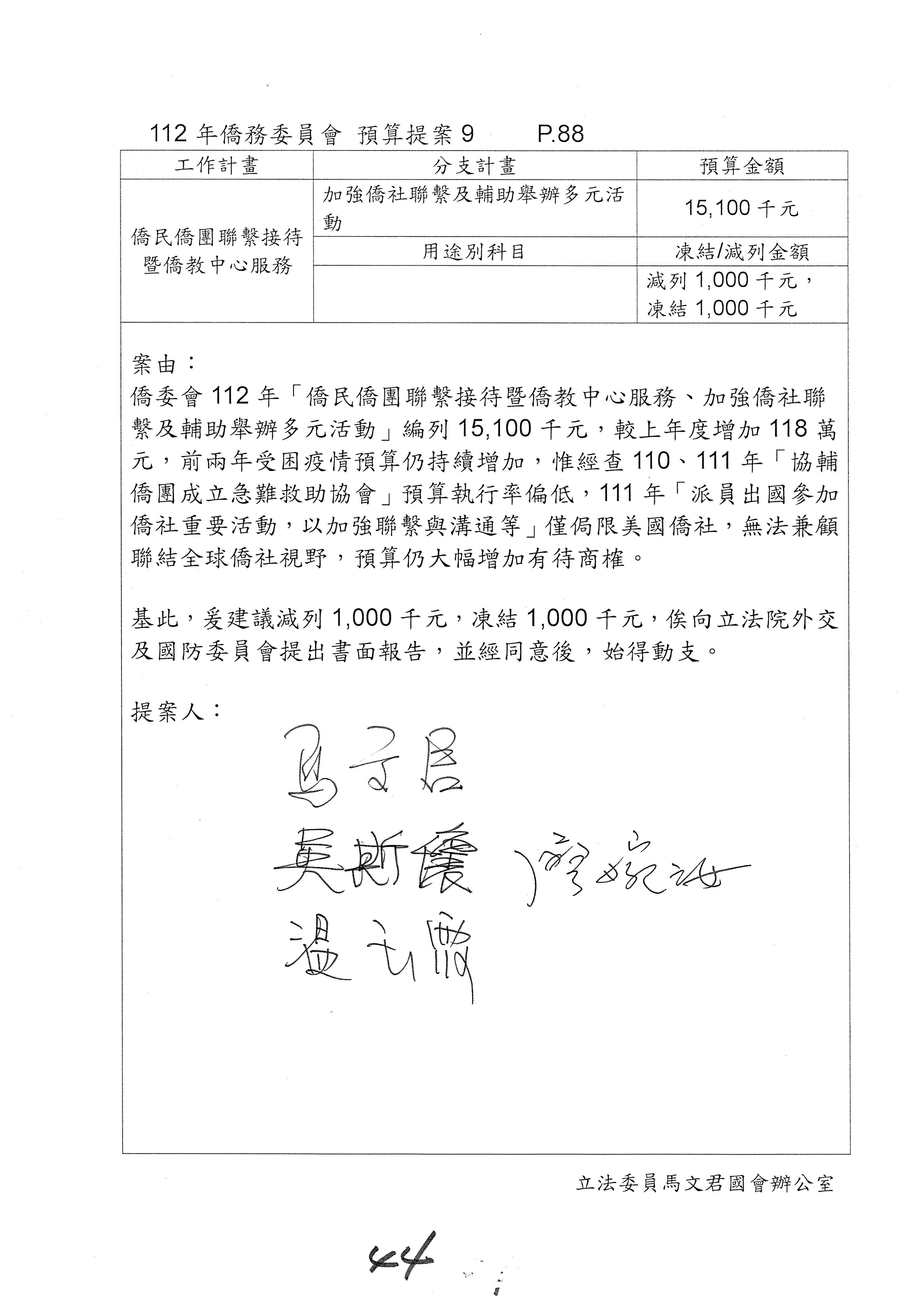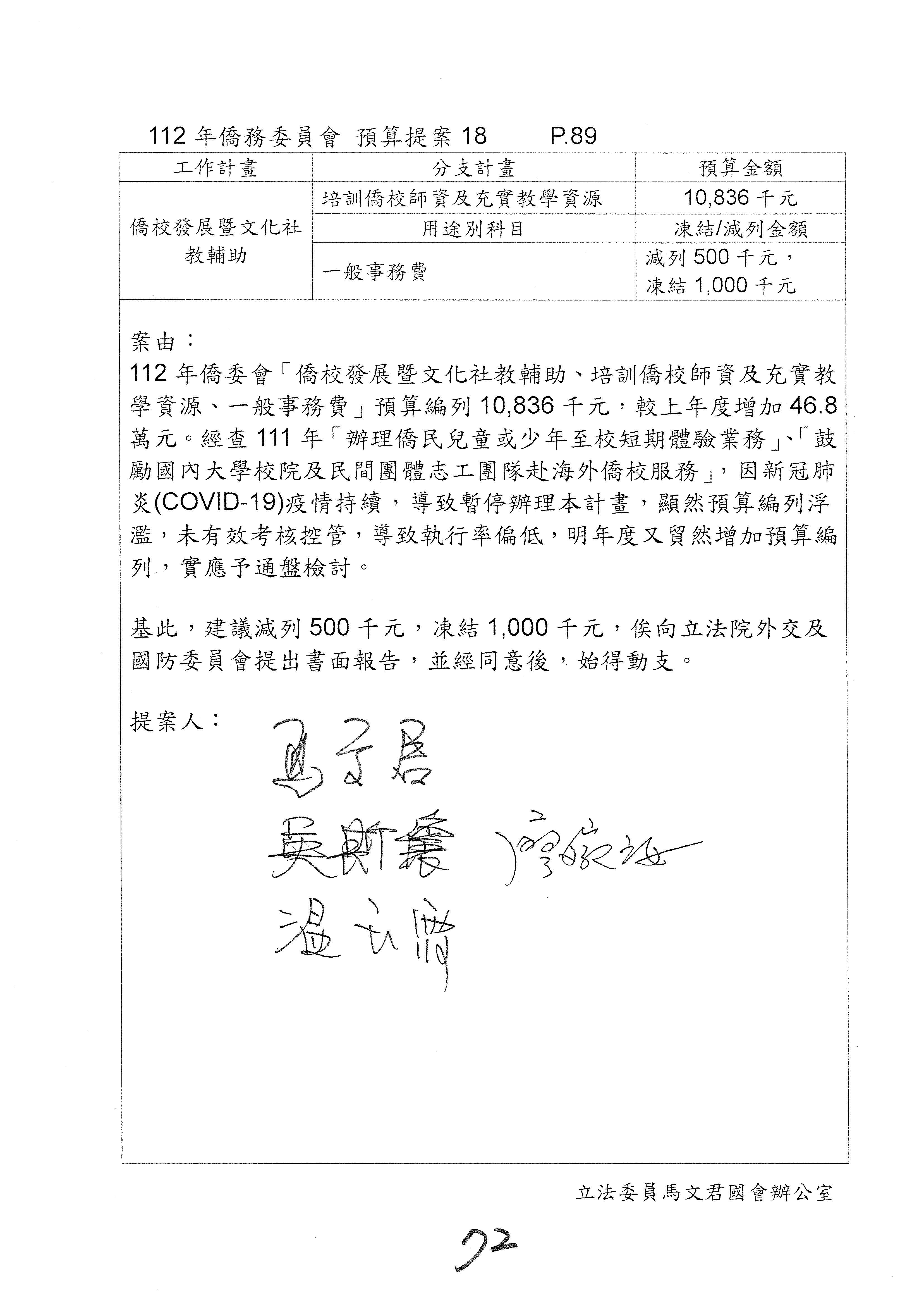(二)112年度僑務委員會主管預算提案單(公開部分):