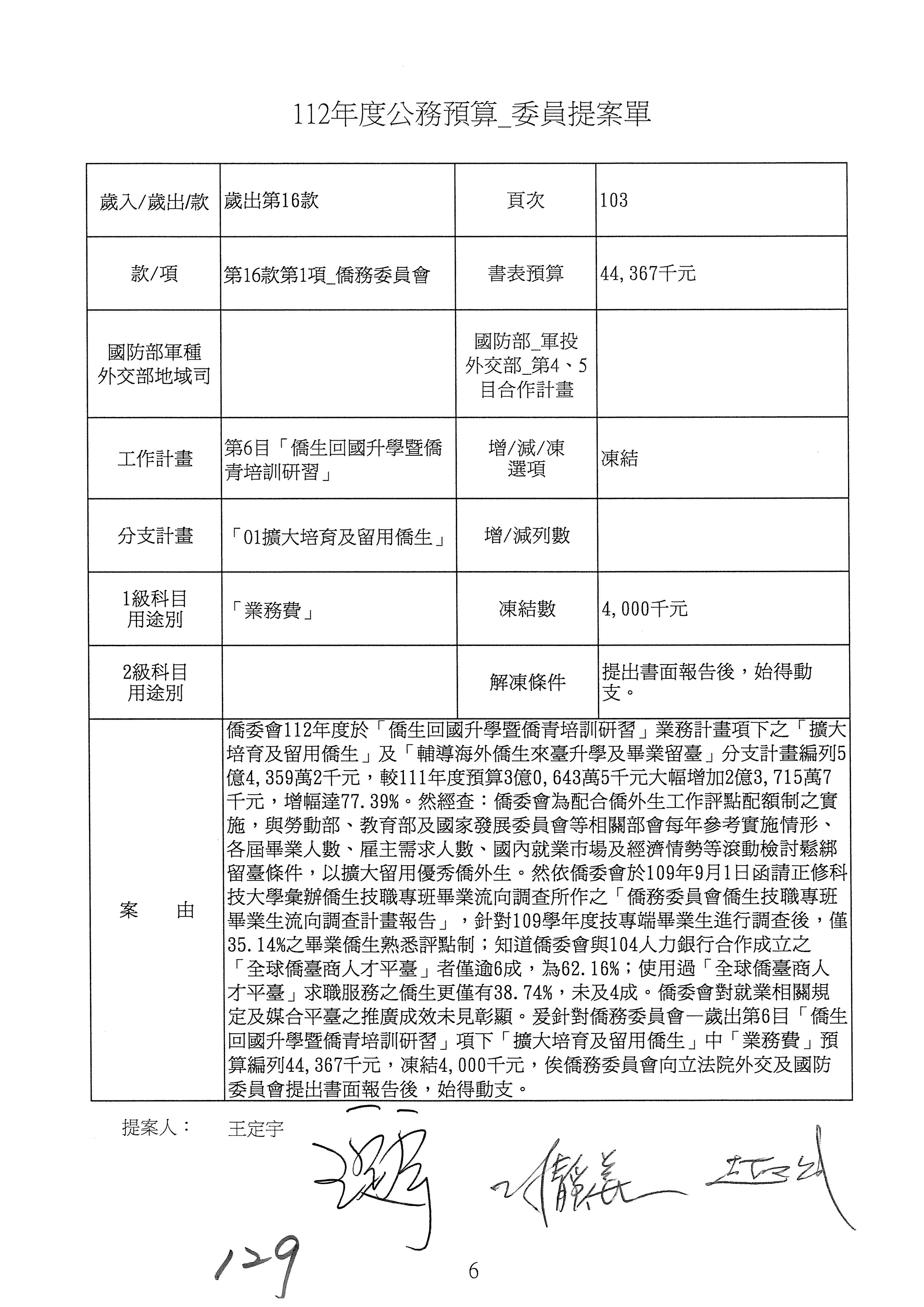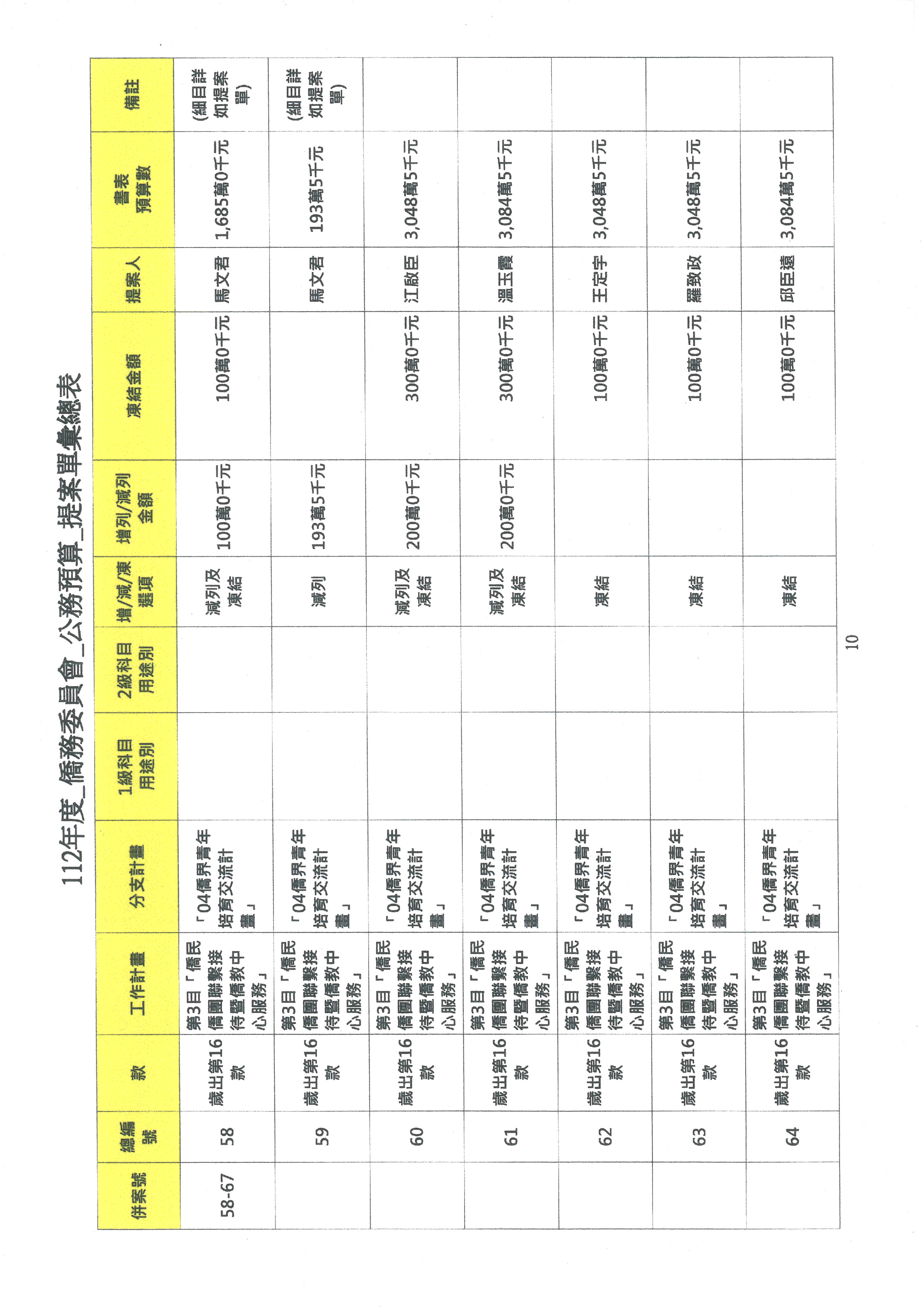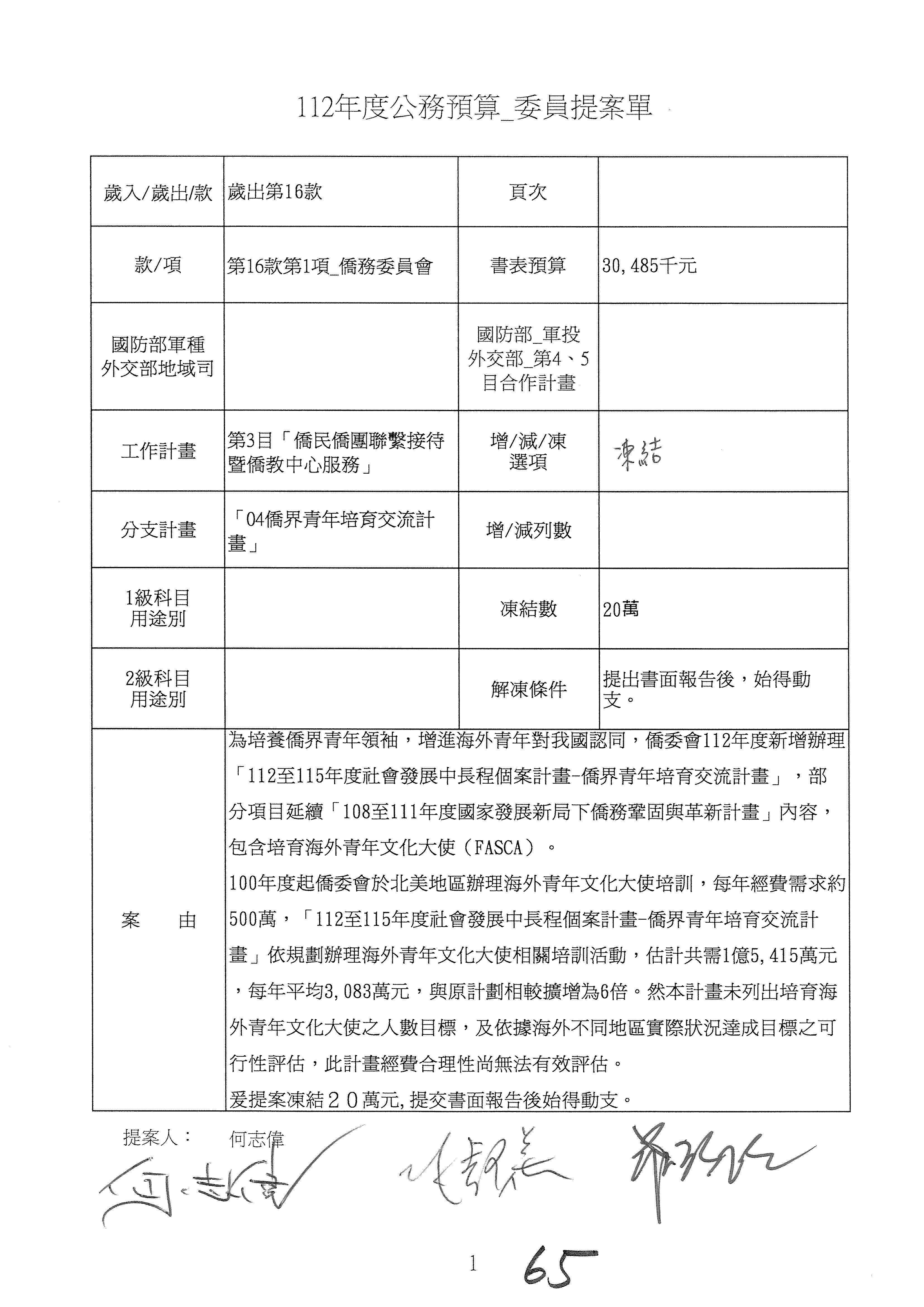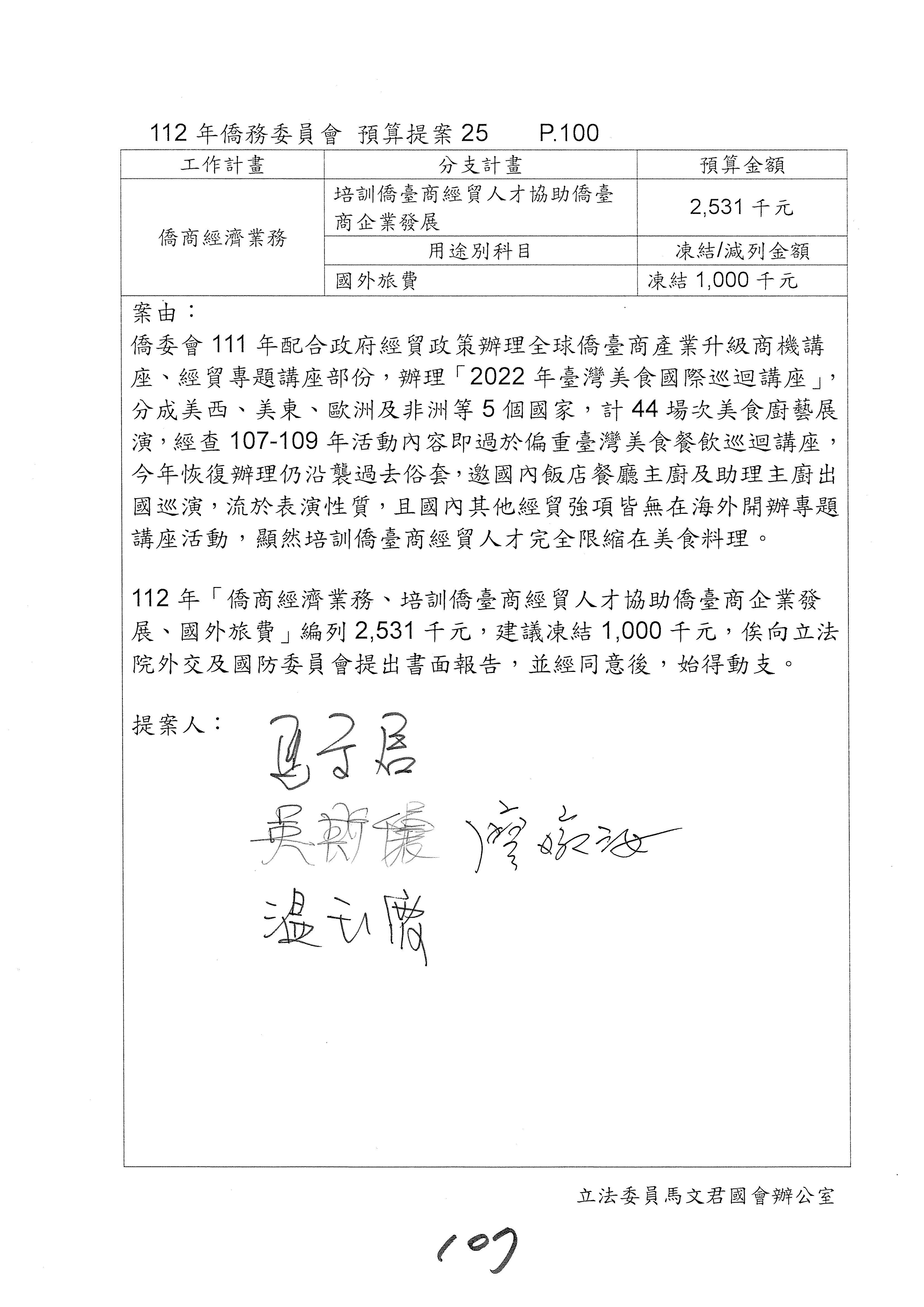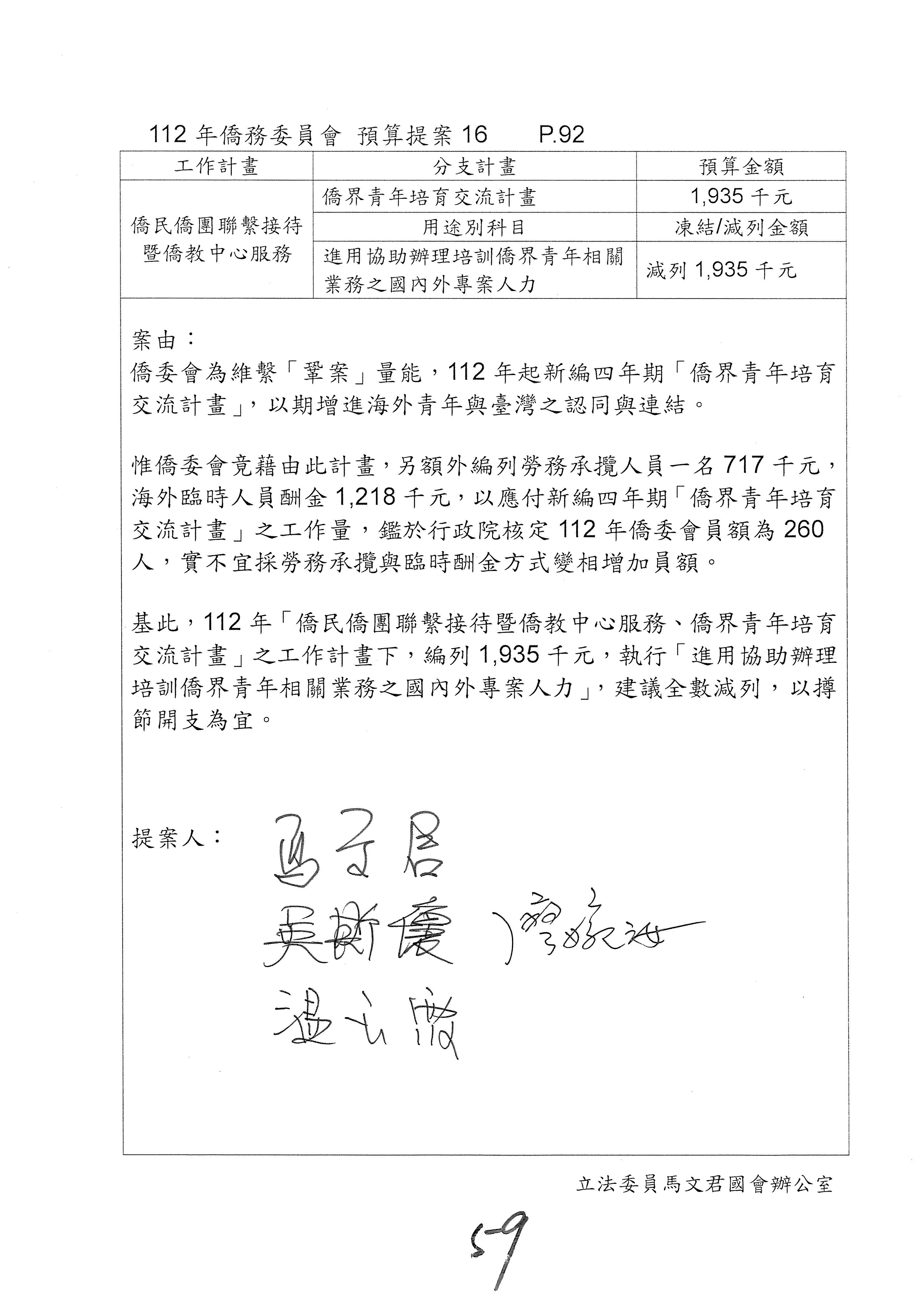 (二)112年度僑務委員會主管預算提案單(公開部分):