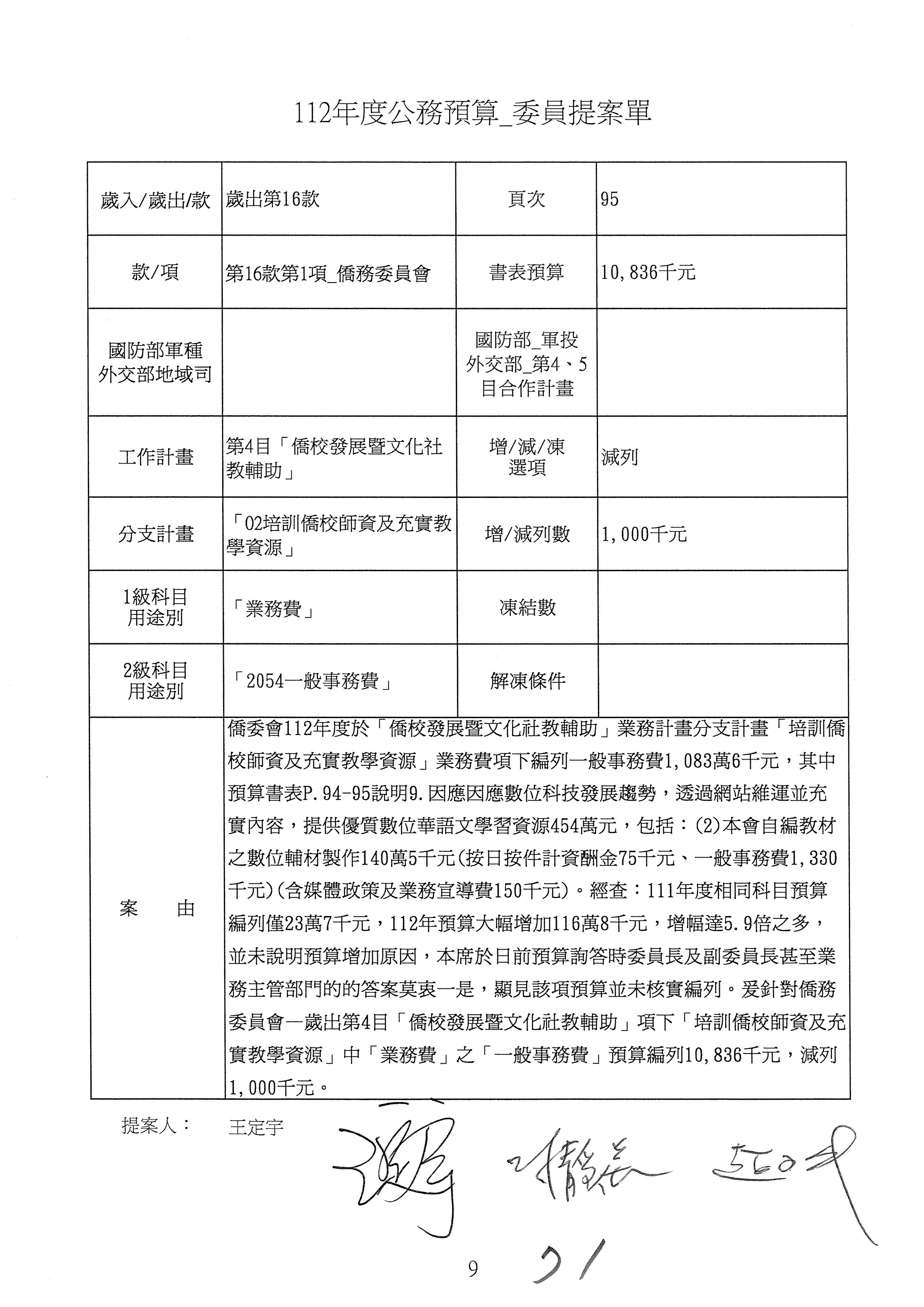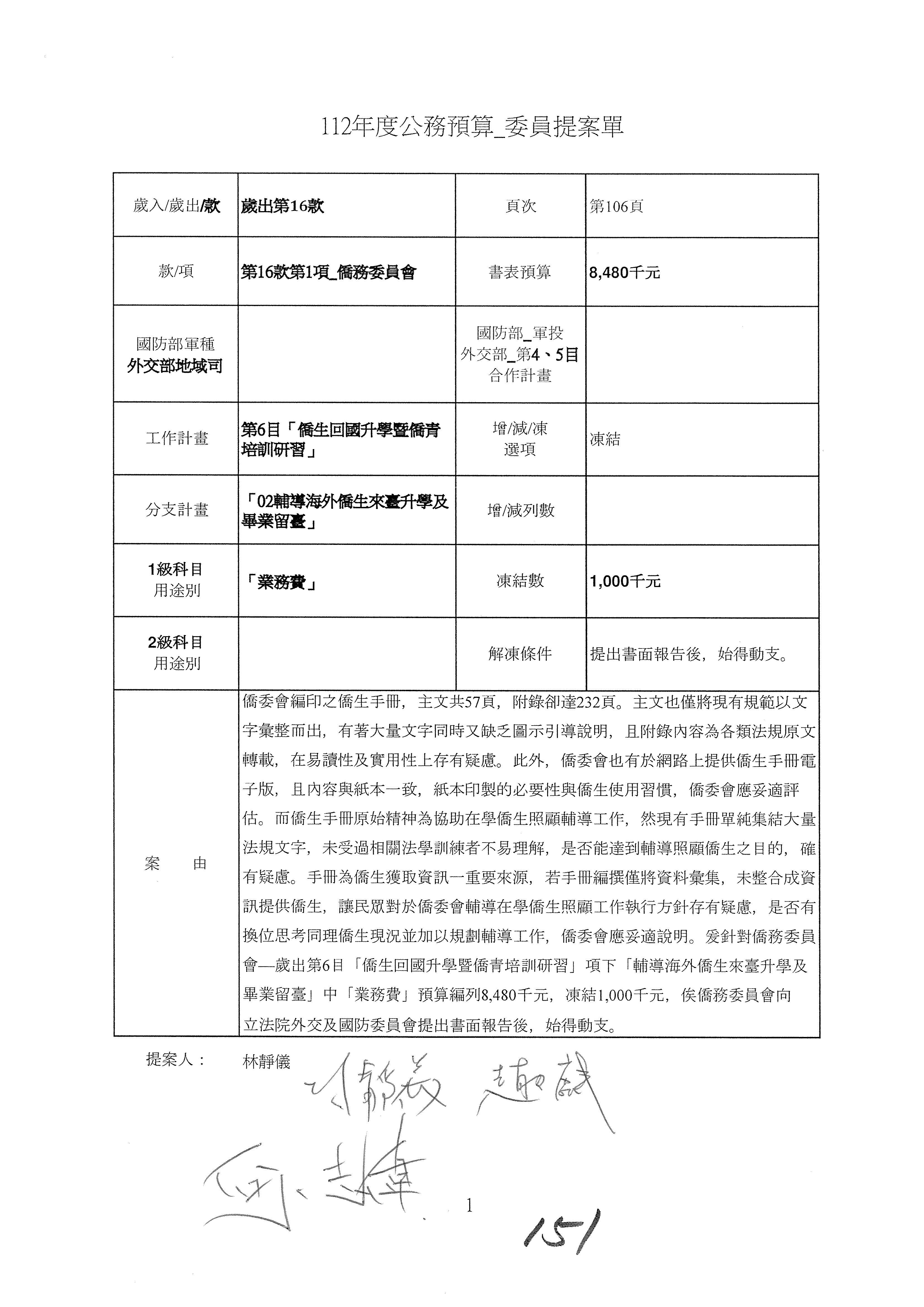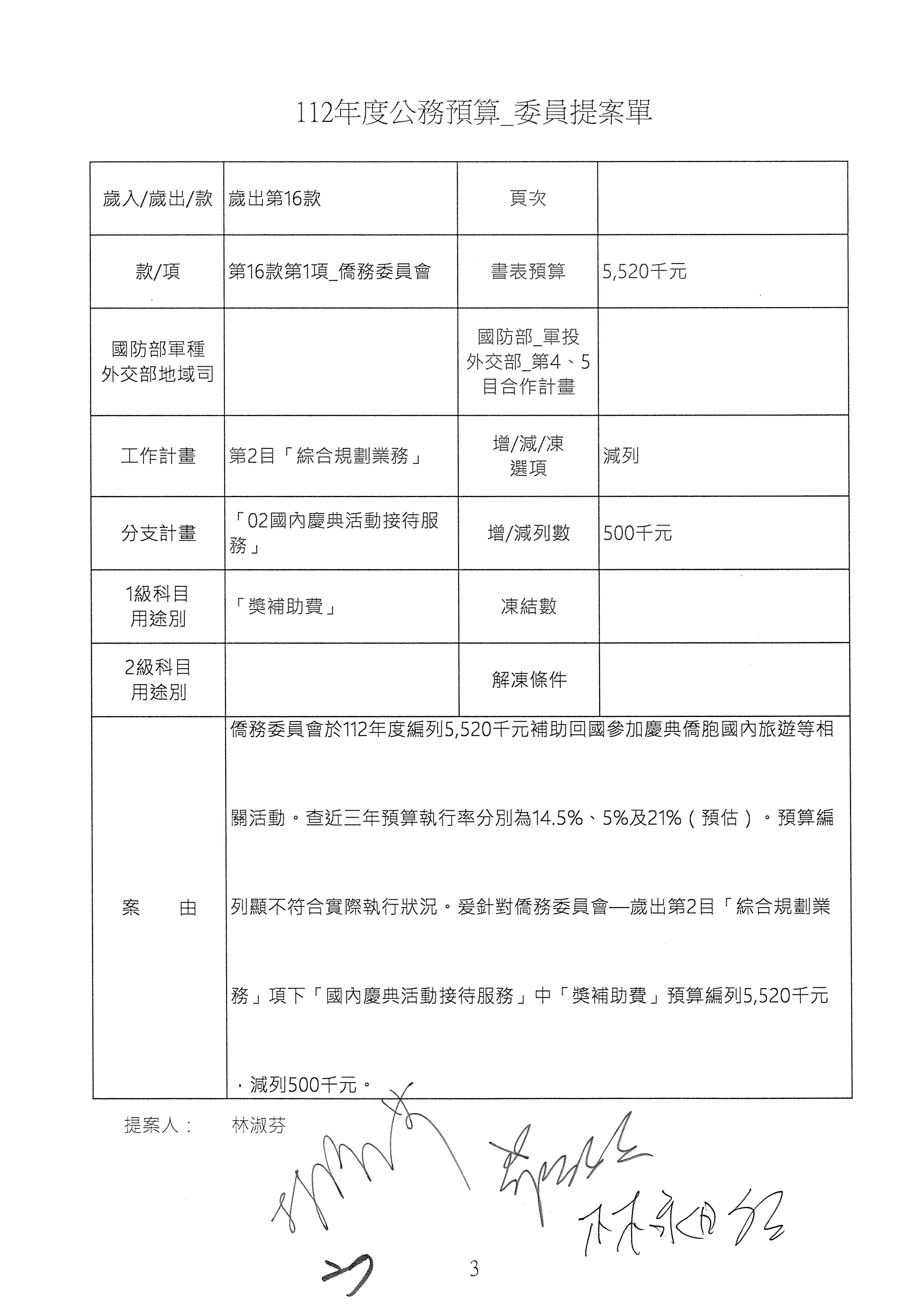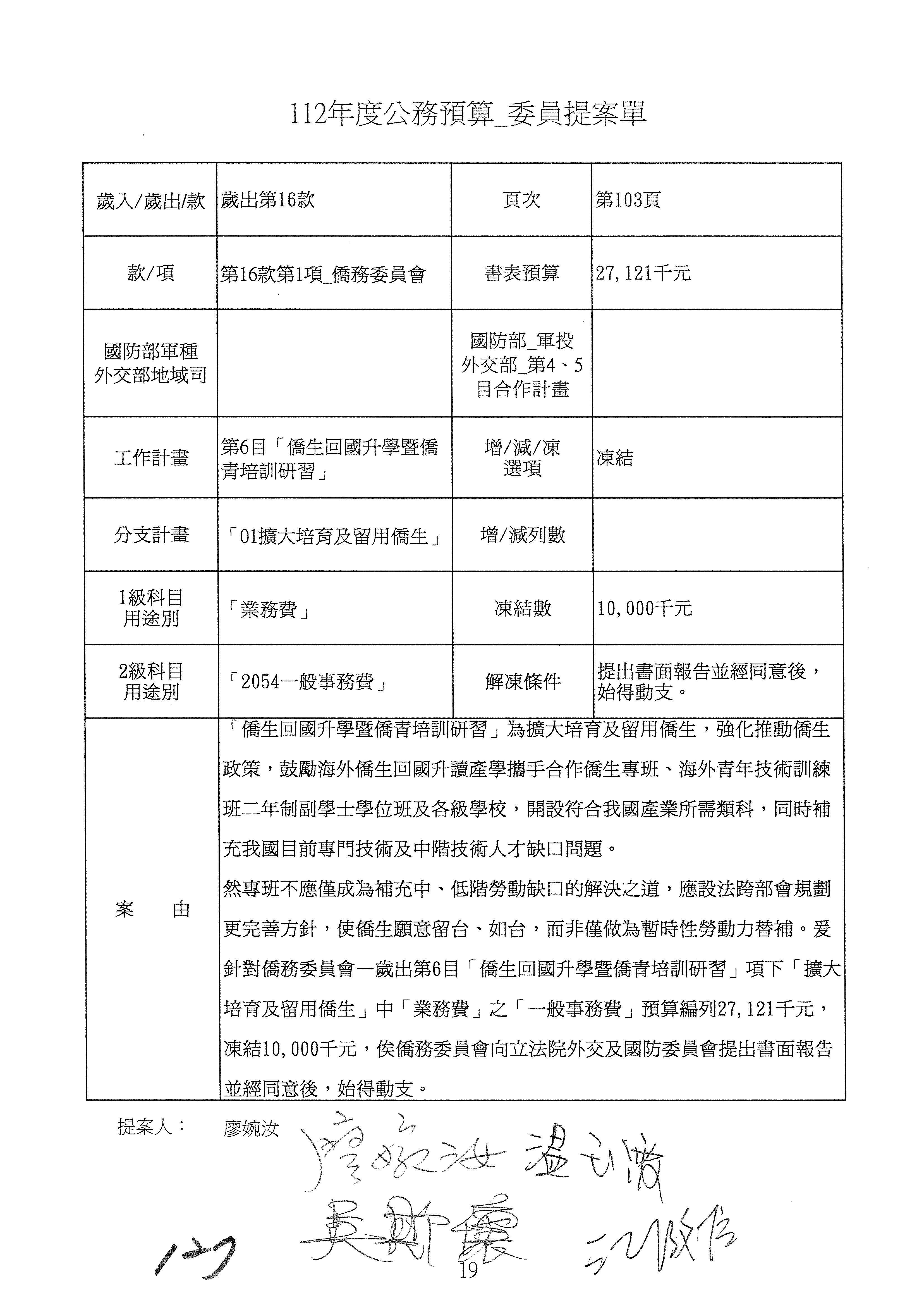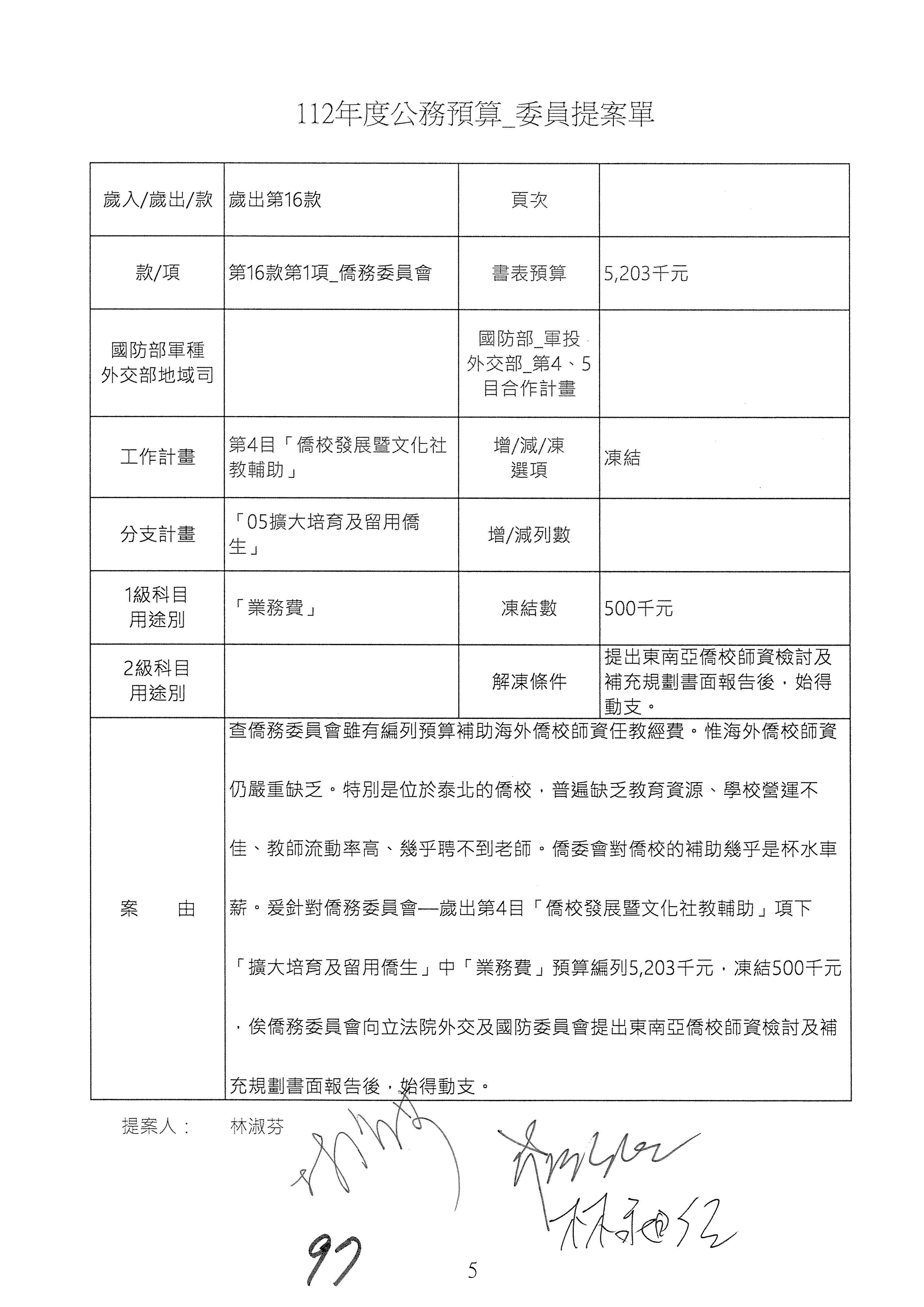 (二)112年度僑務委員會主管預算提案單(公開部分):