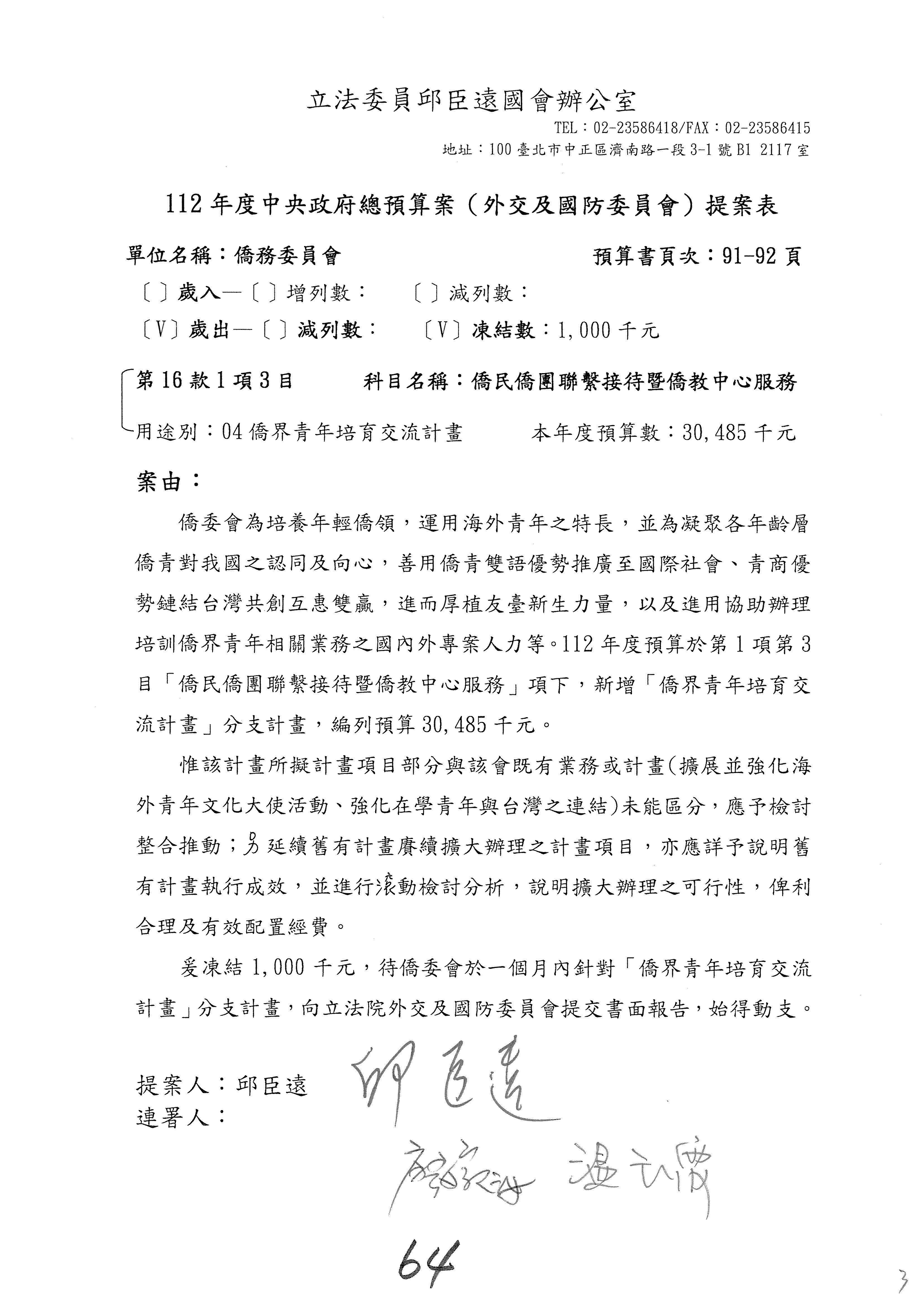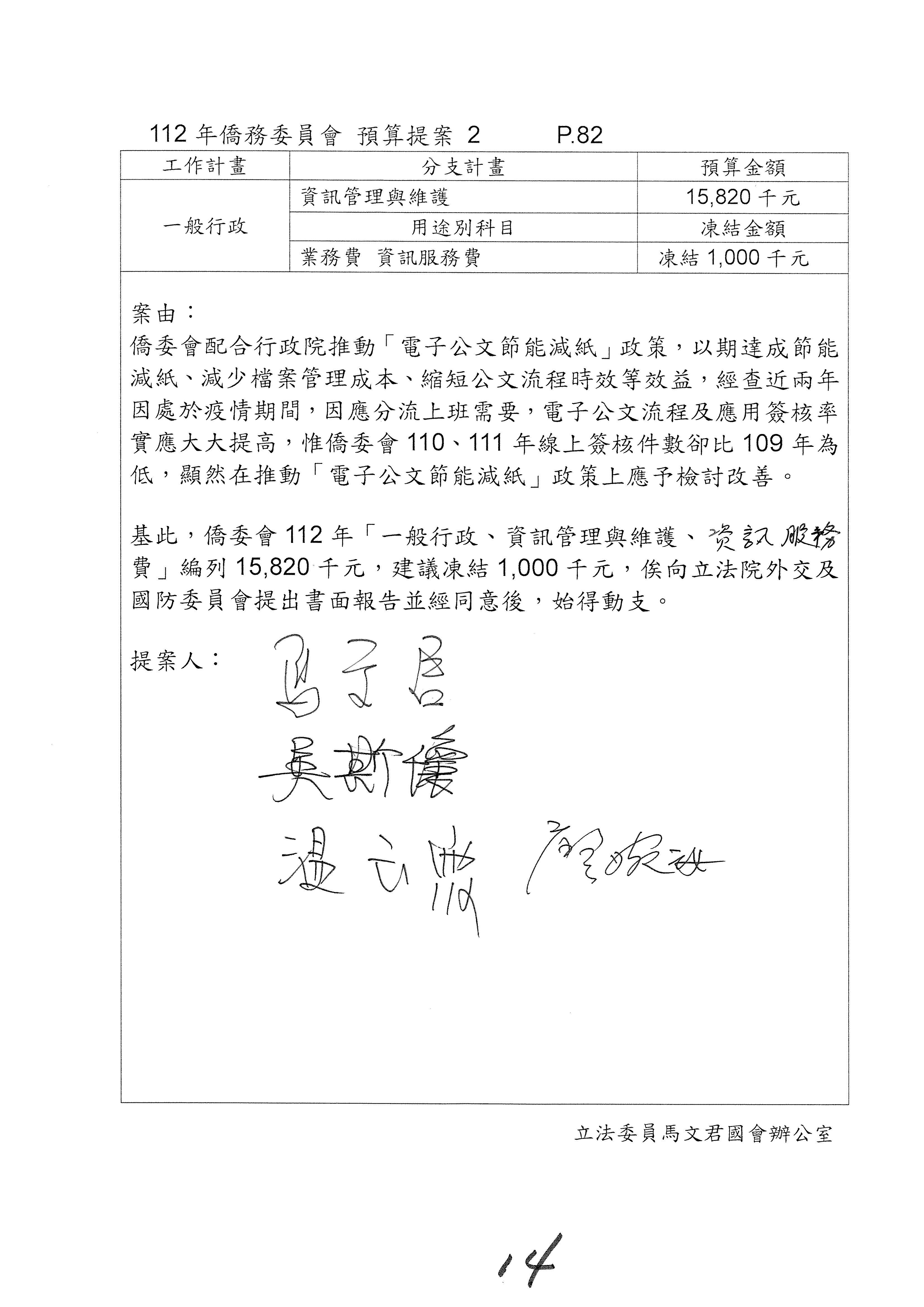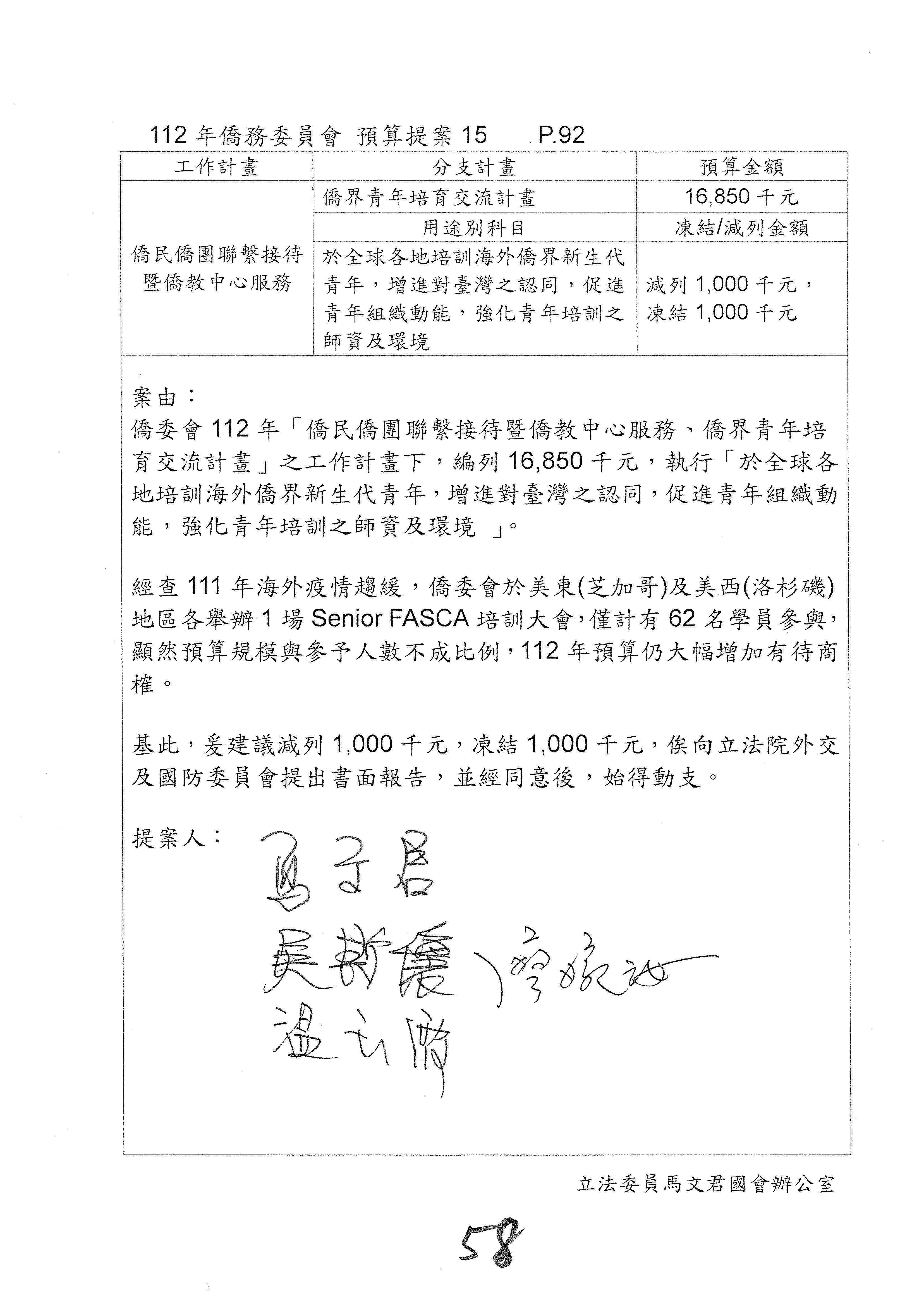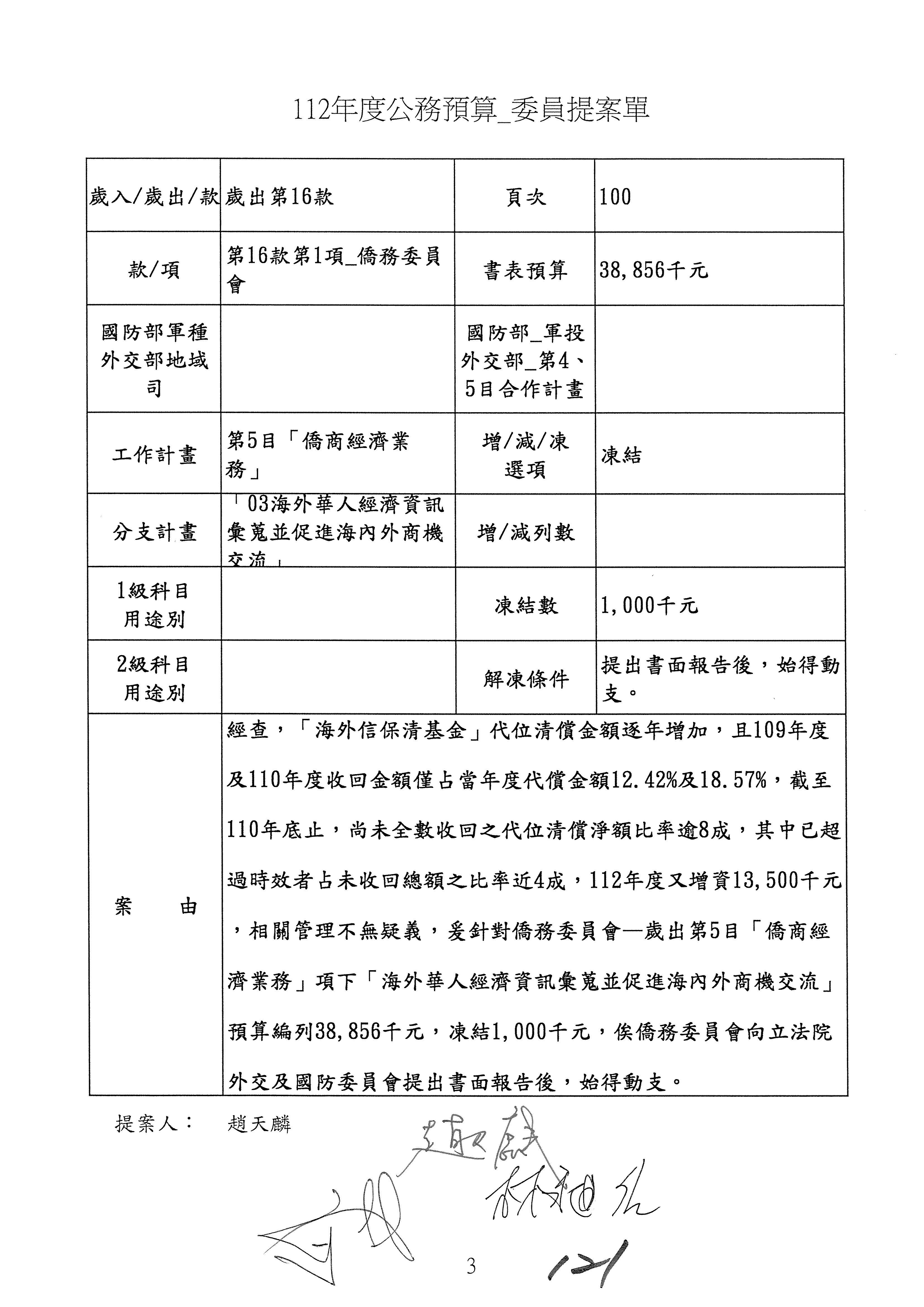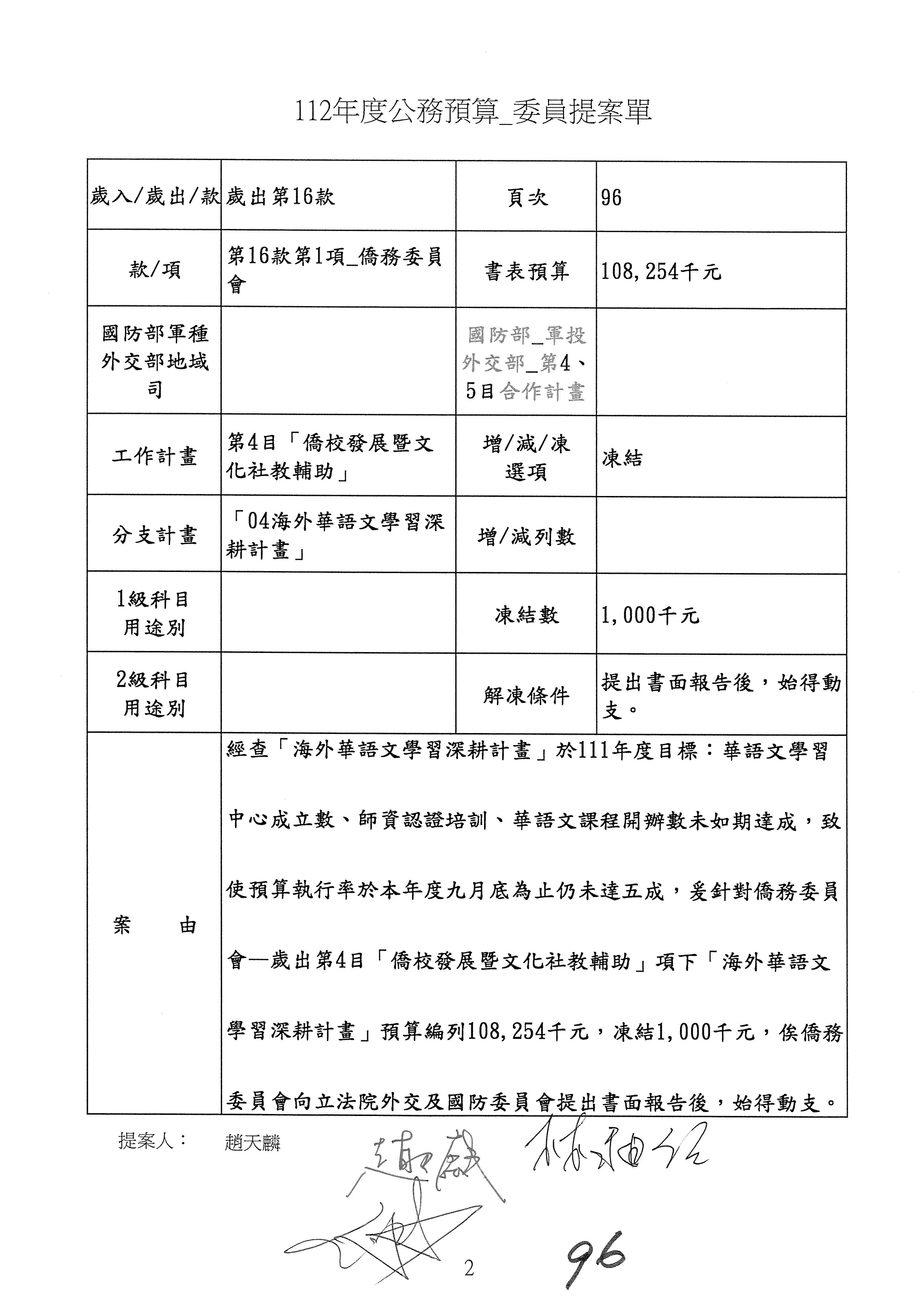 (二)112年度僑務委員會主管預算提案單(公開部分):