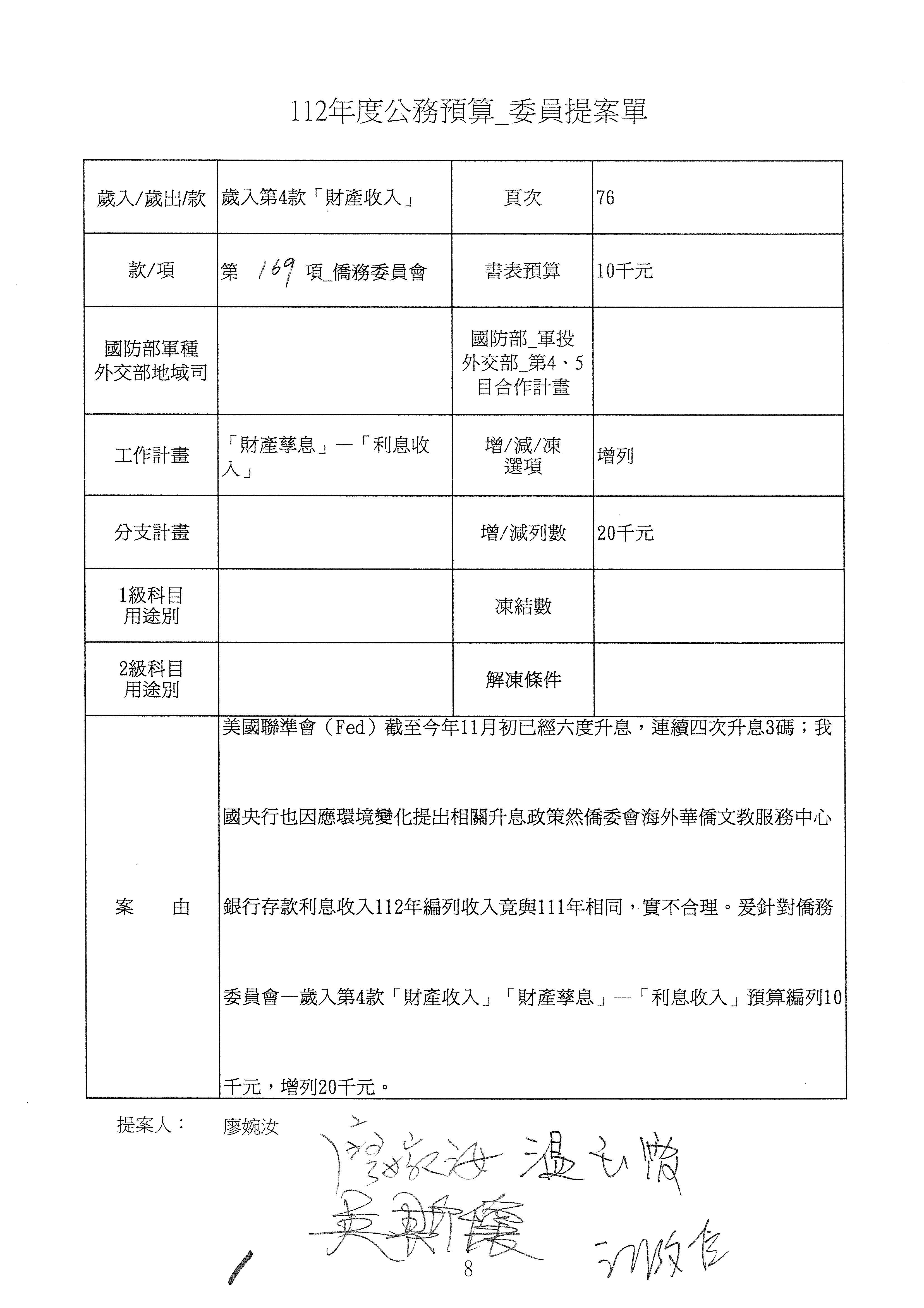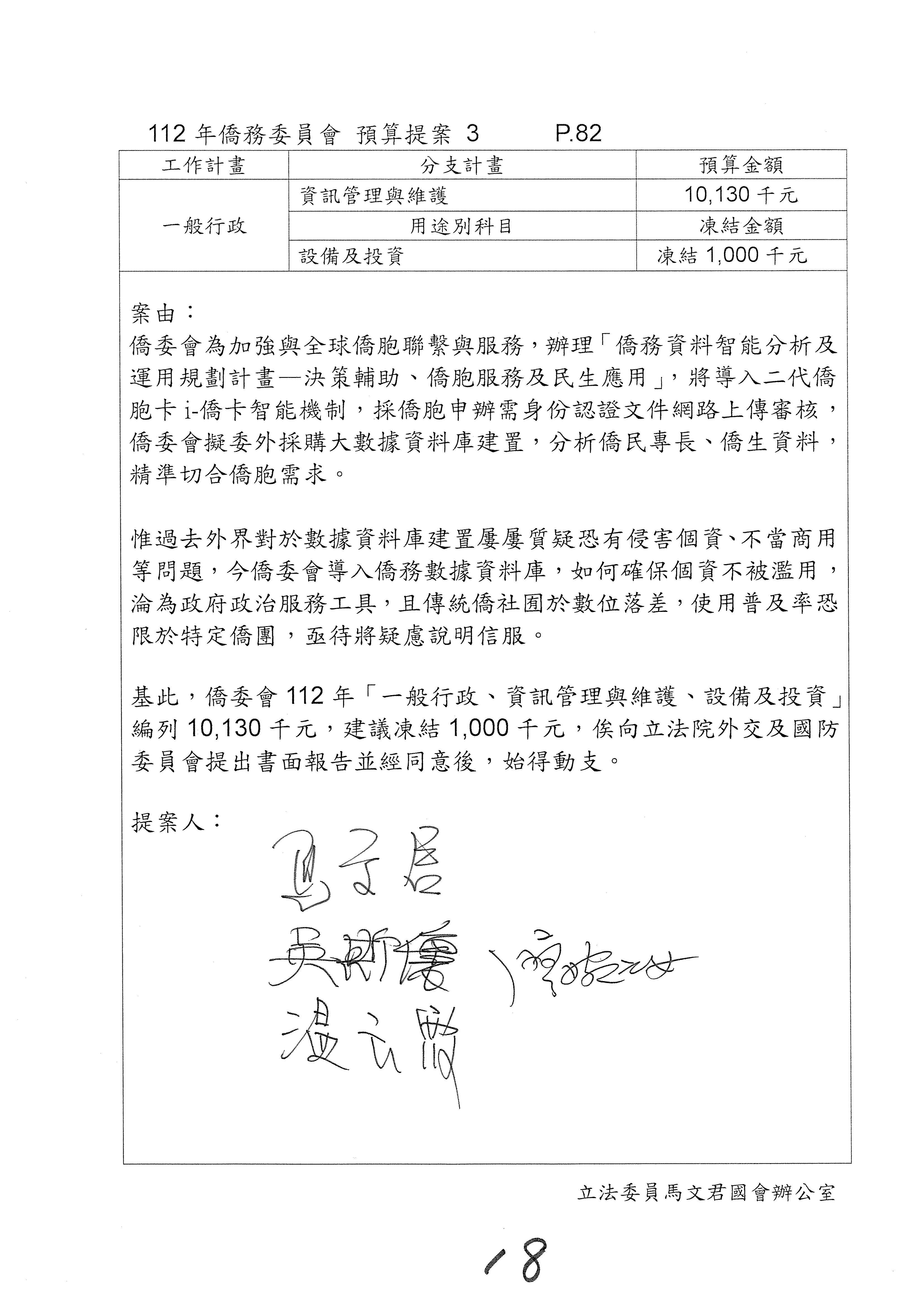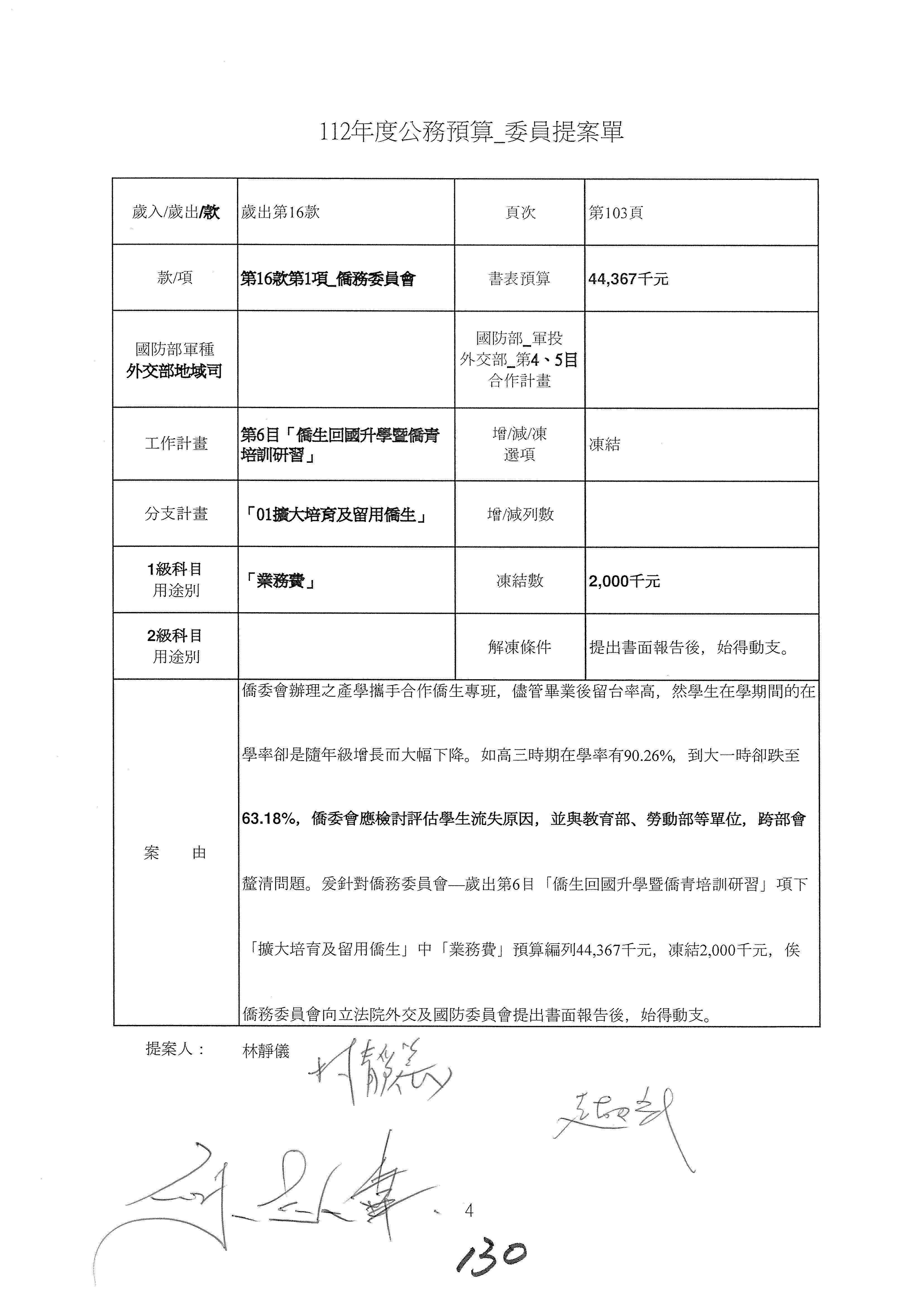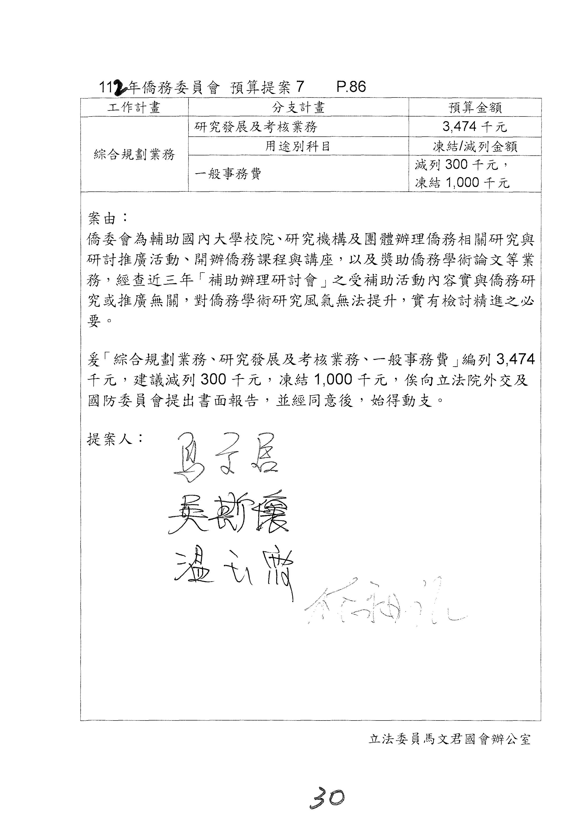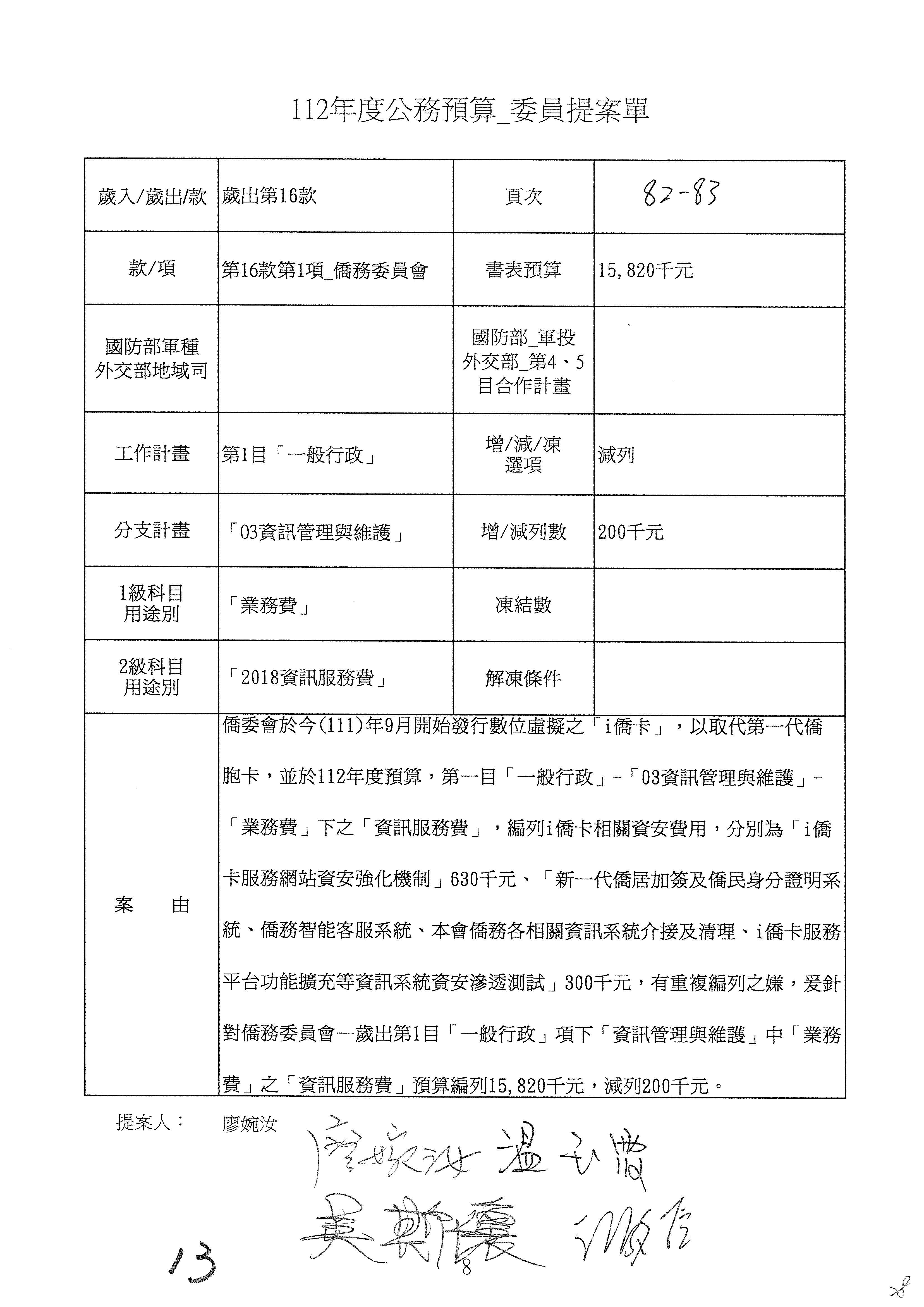 (二)112年度僑務委員會主管預算提案單(公開部分):