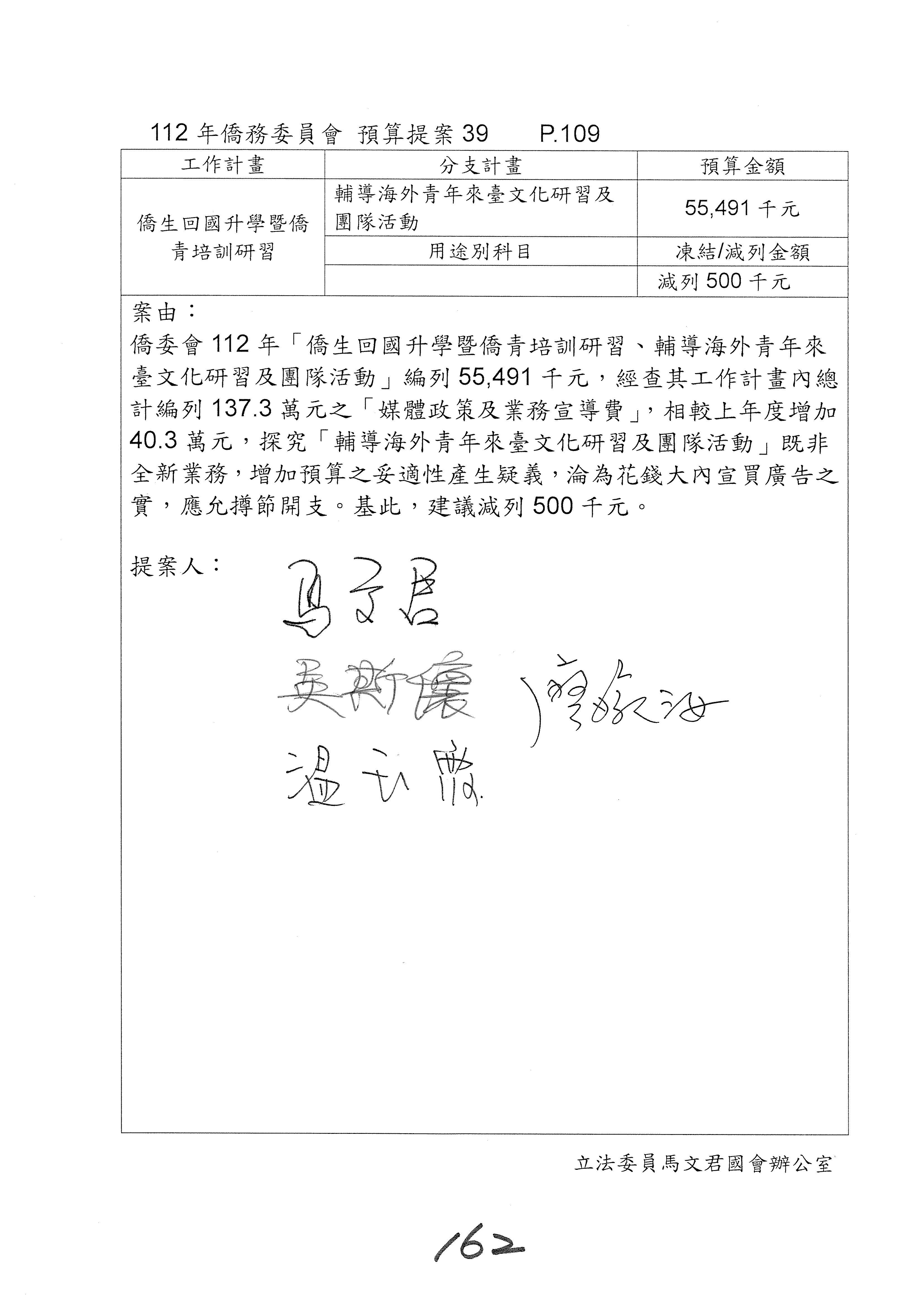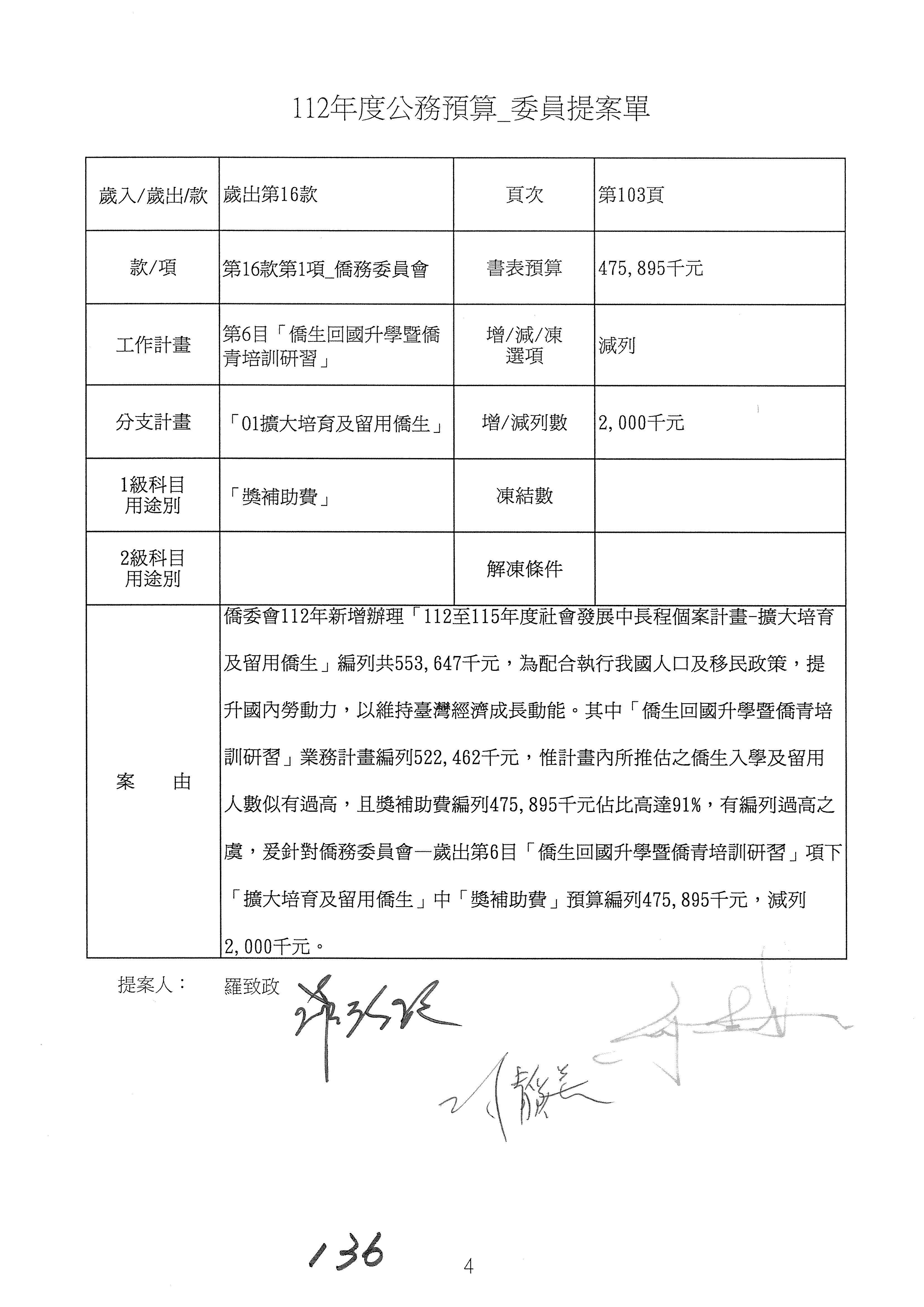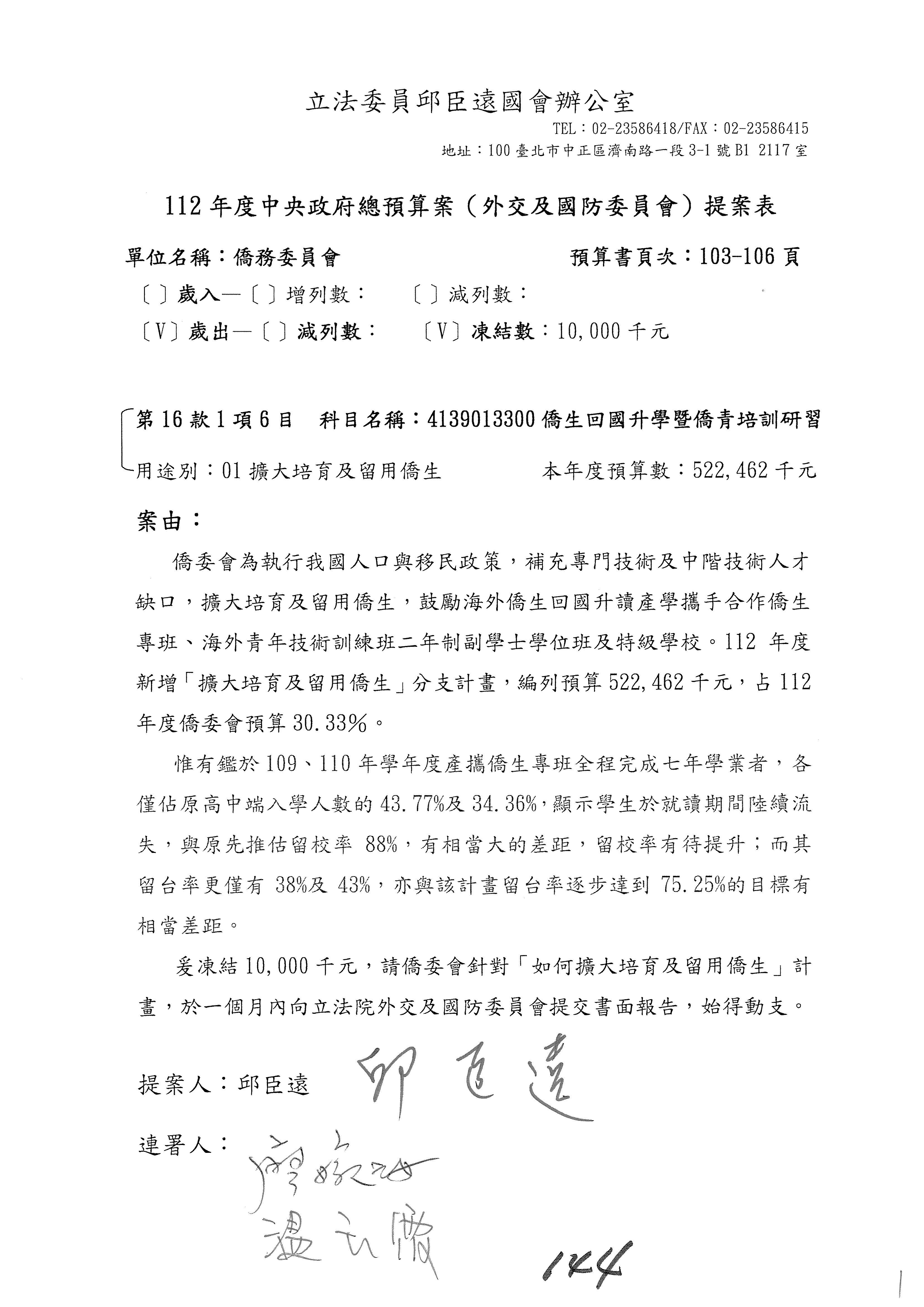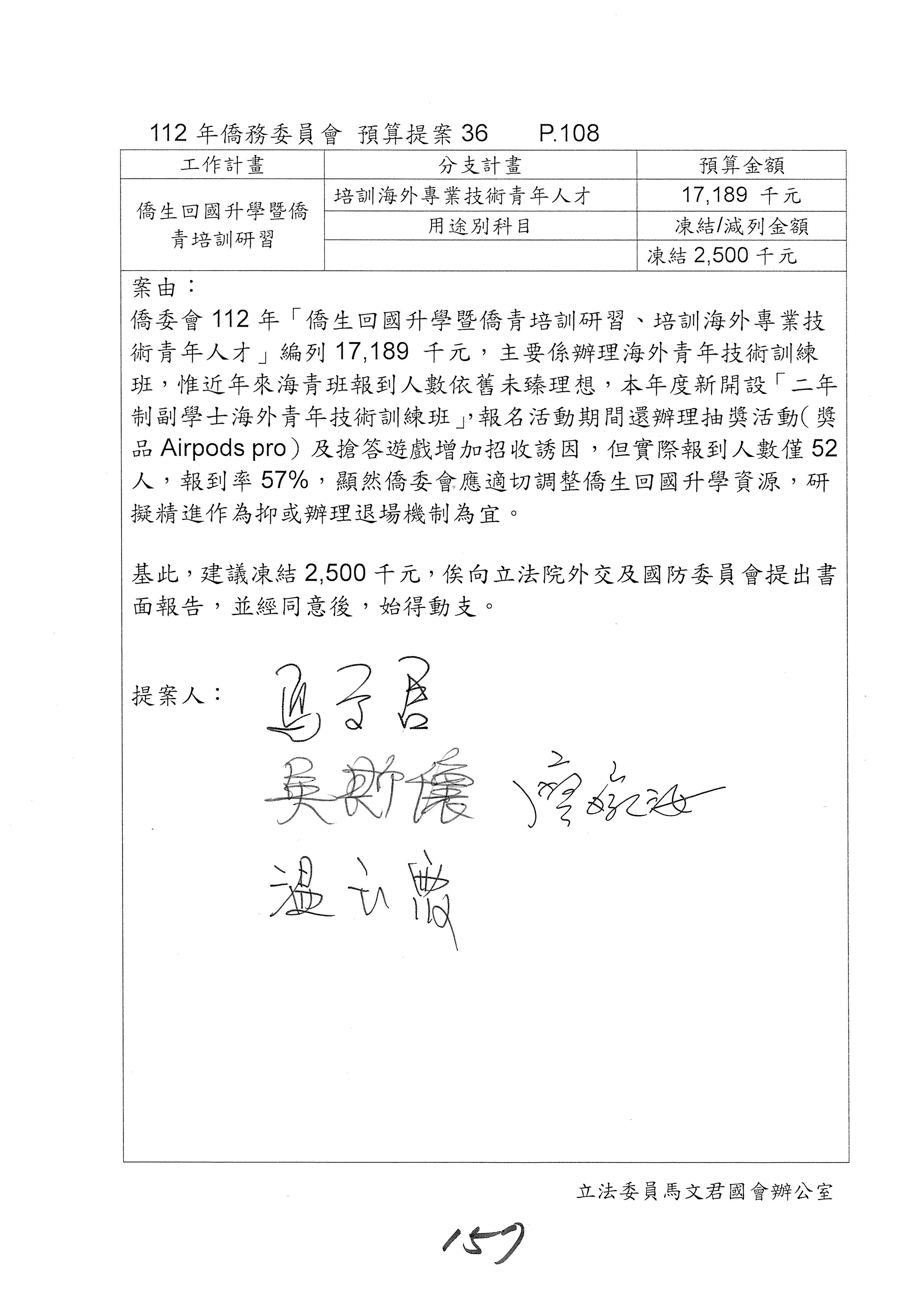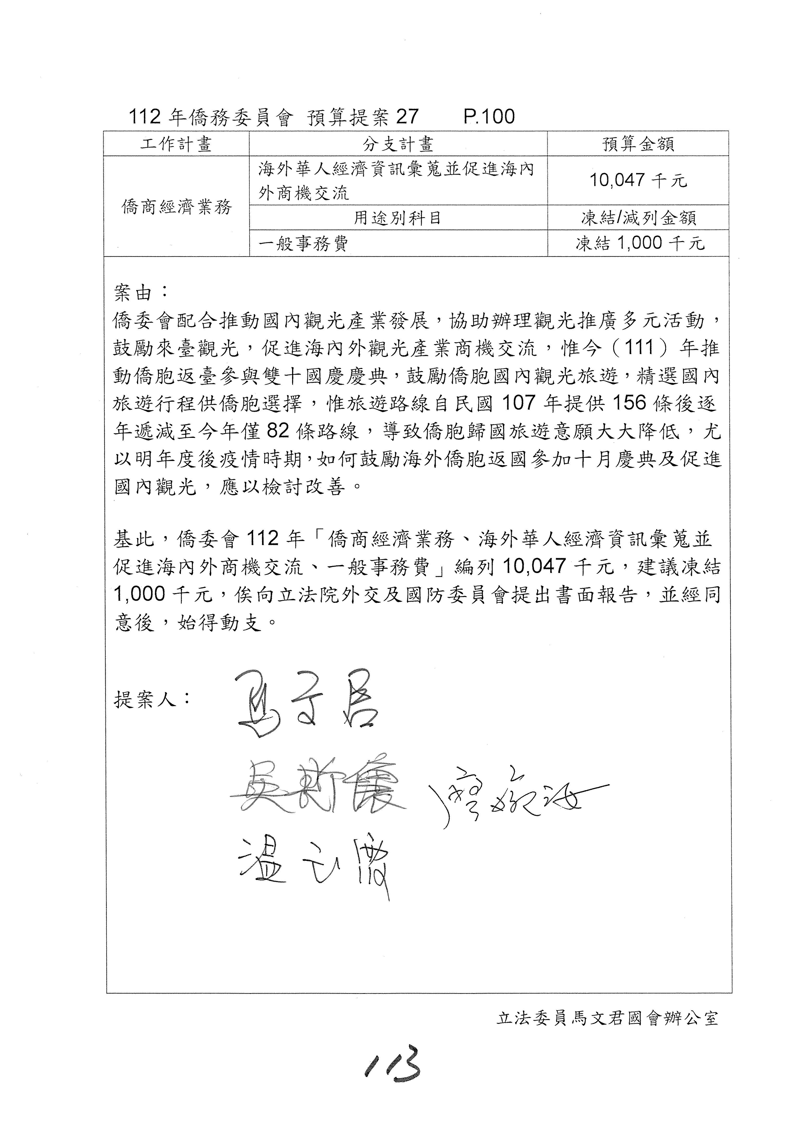 (二)112年度僑務委員會主管預算提案單(公開部分):