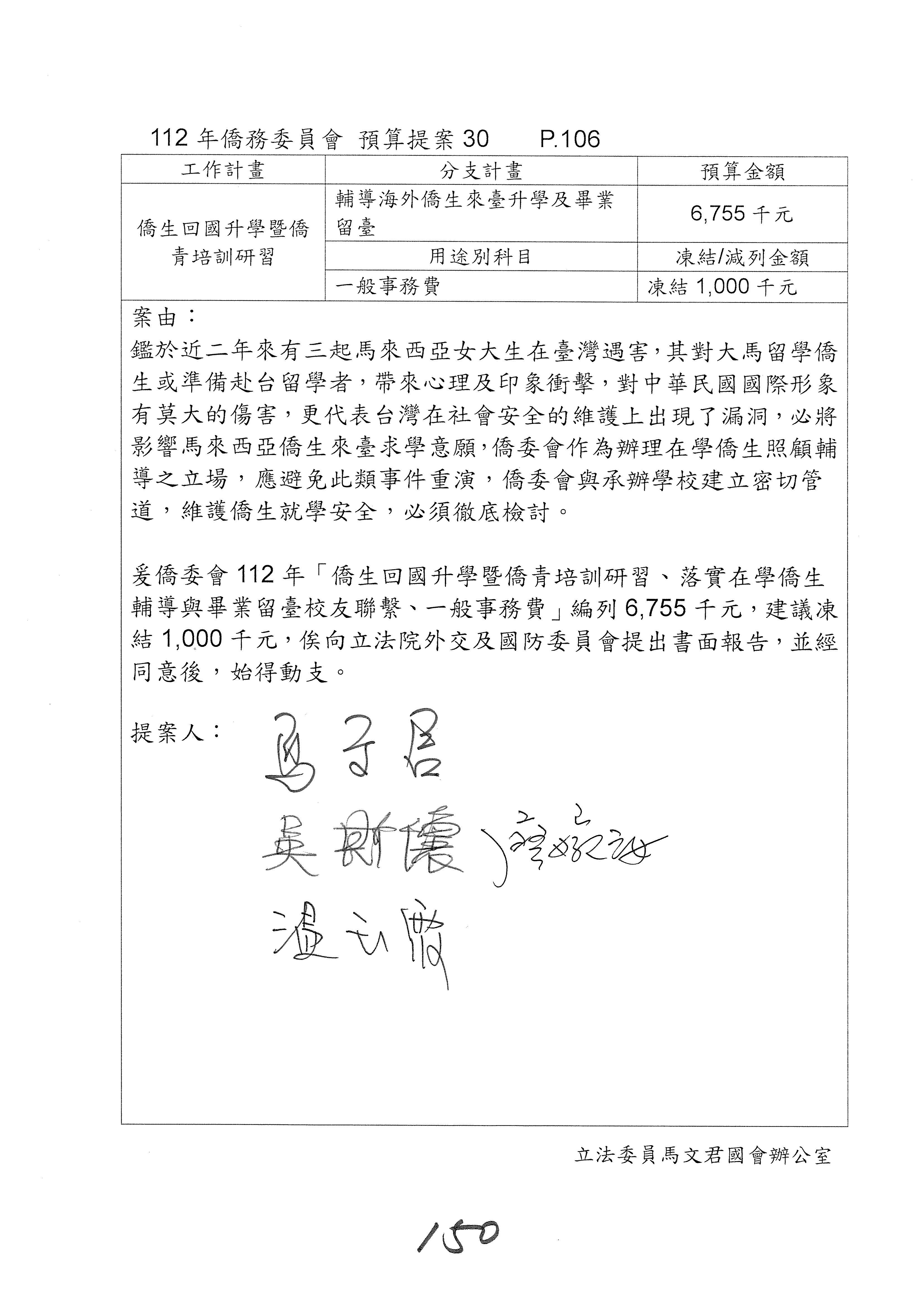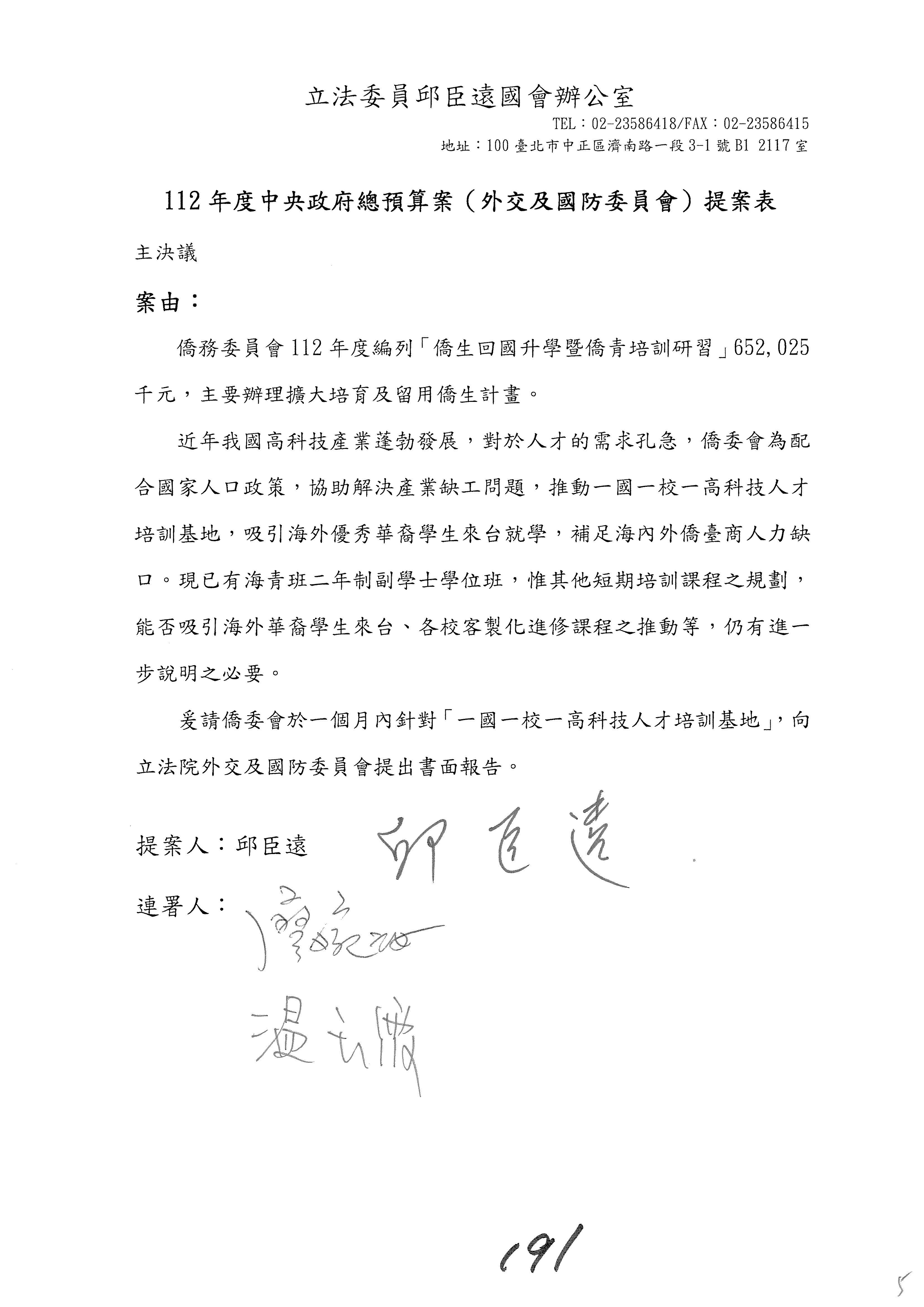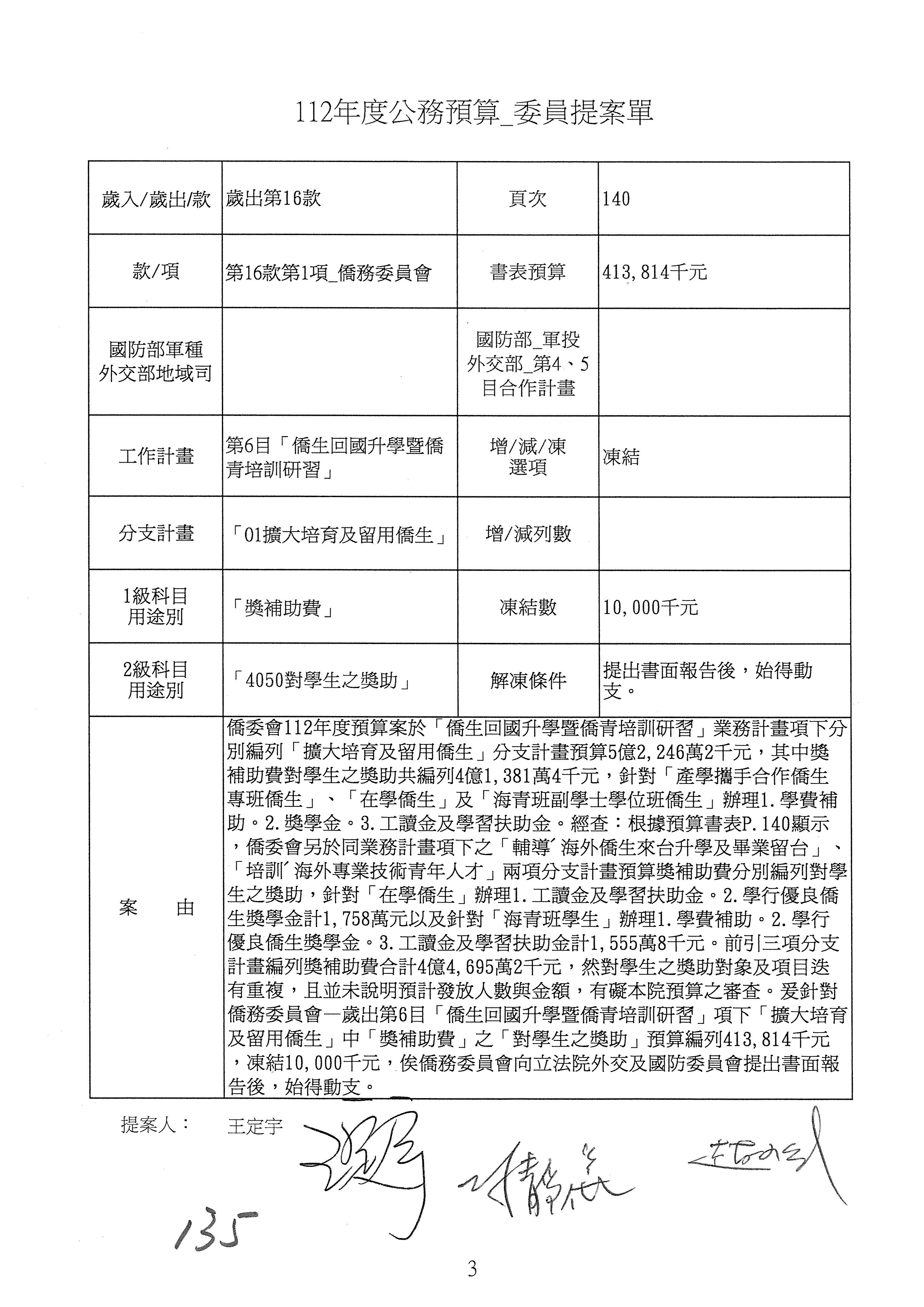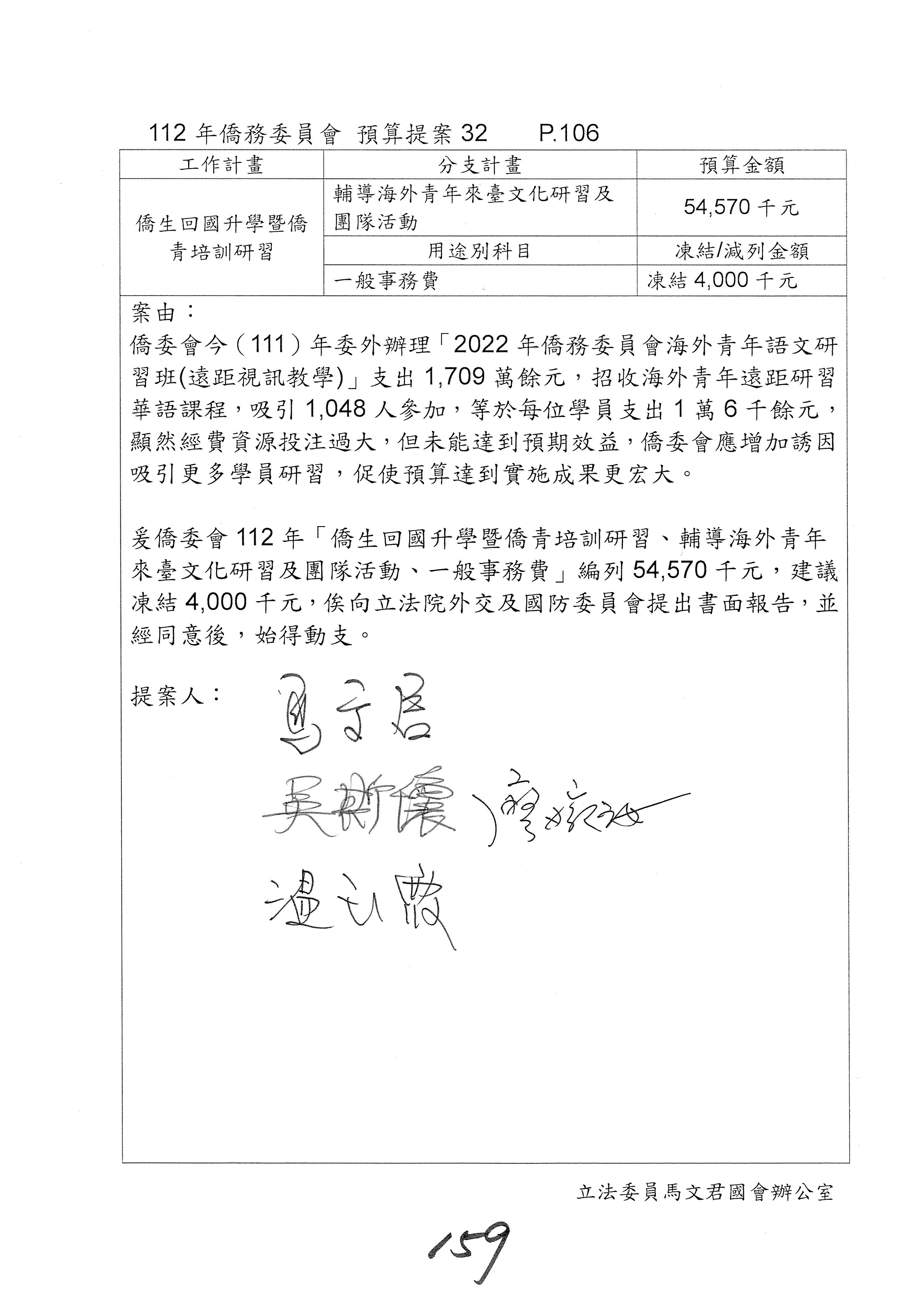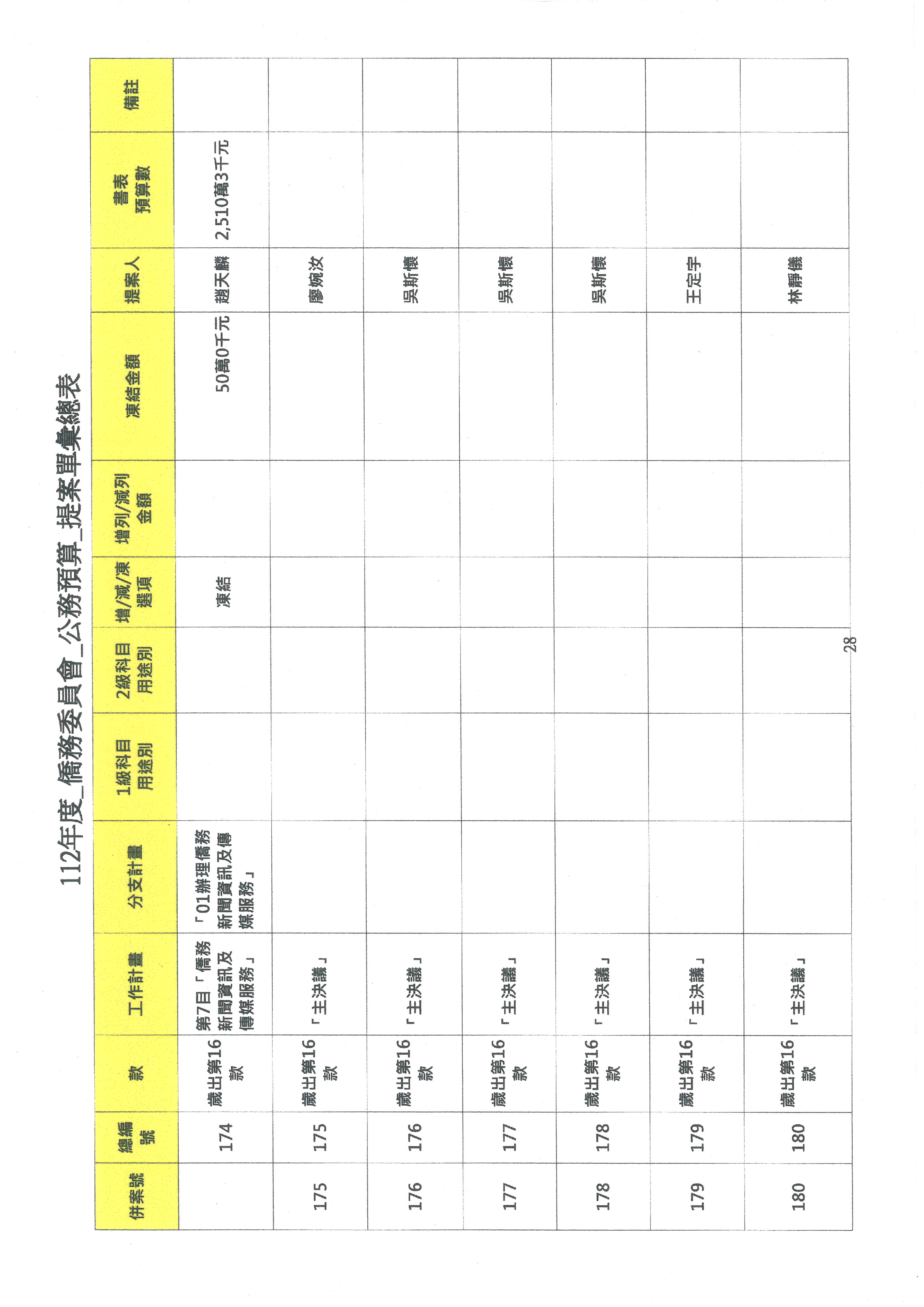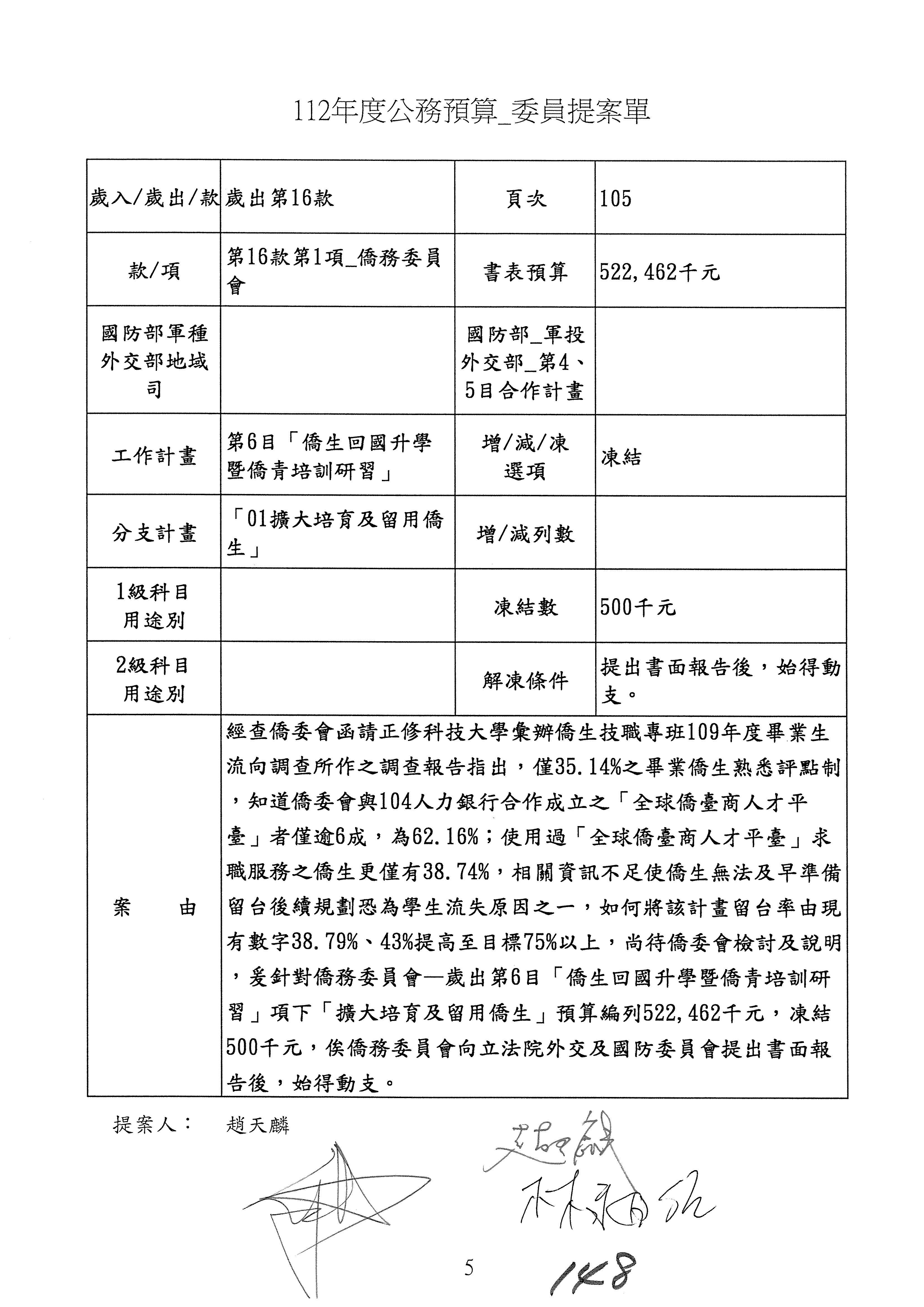 (二)112年度僑務委員會主管預算提案單(公開部分):