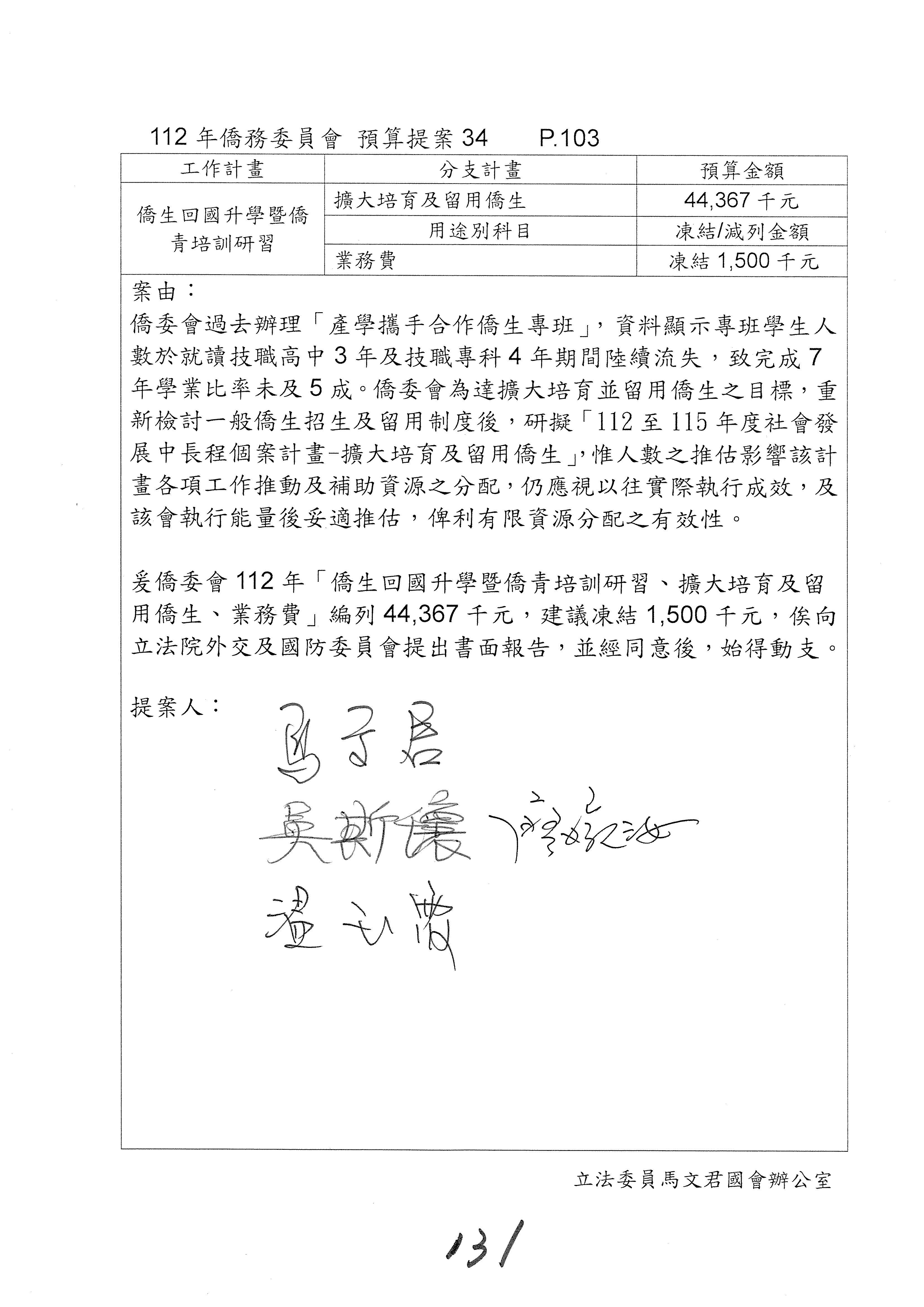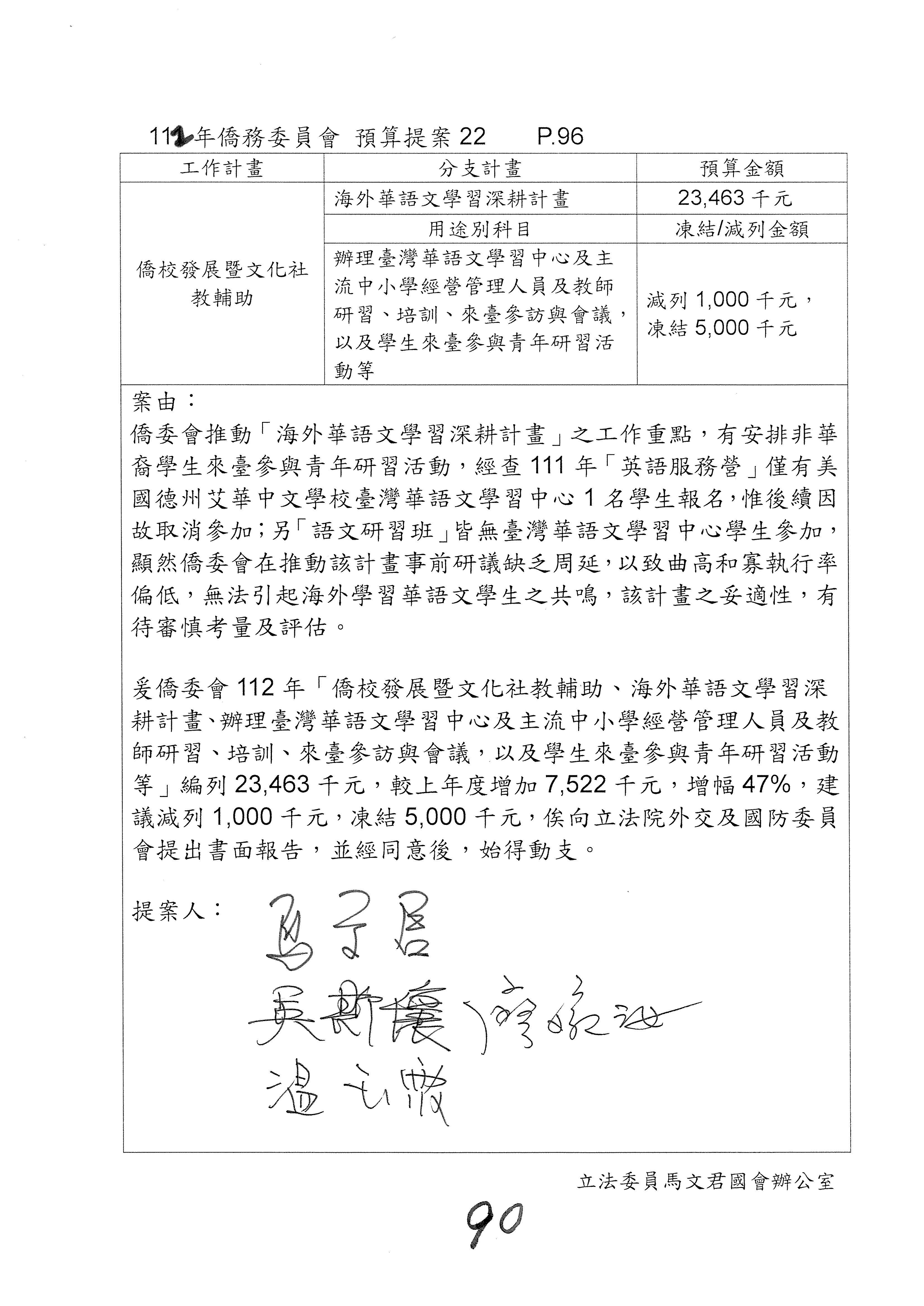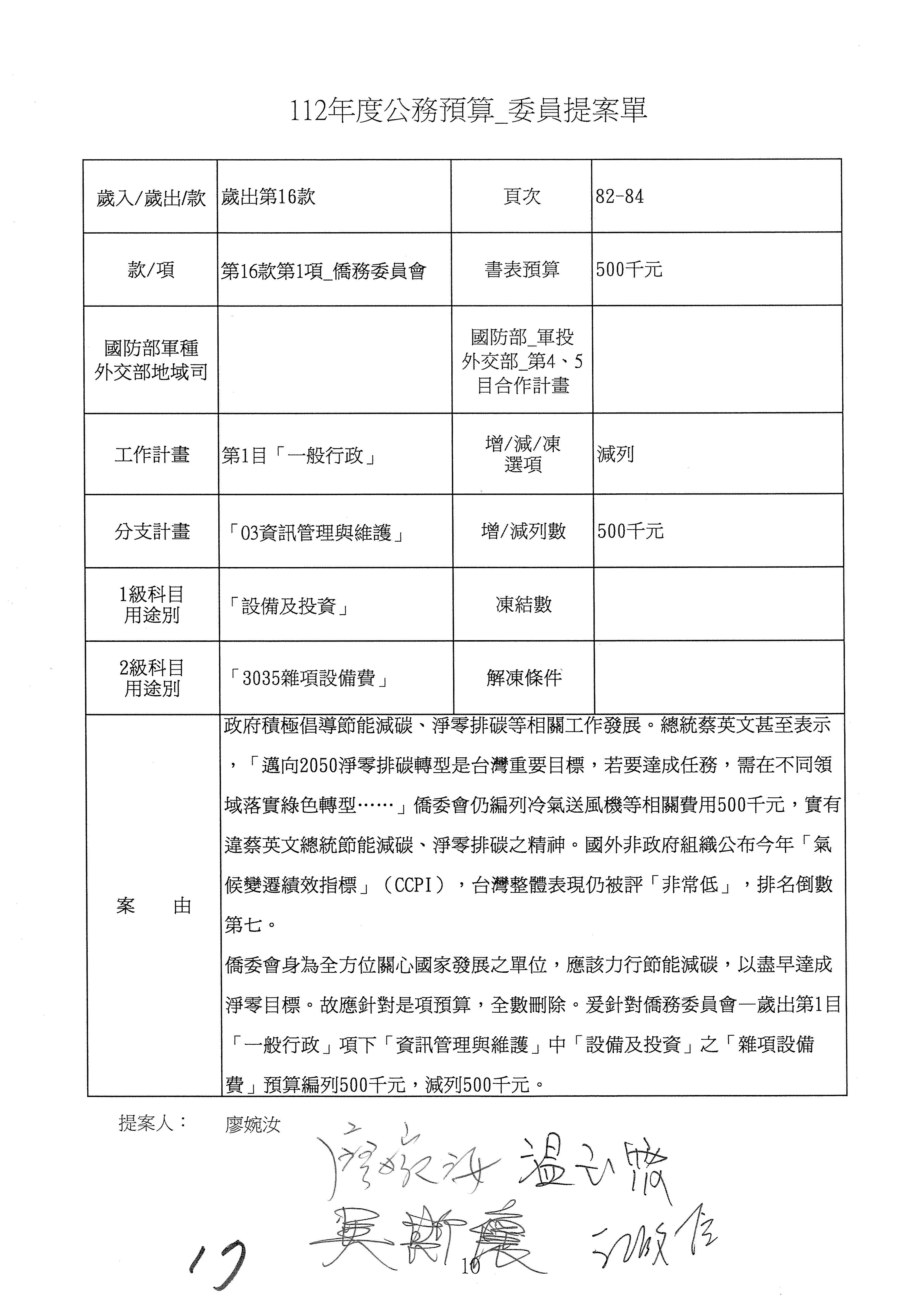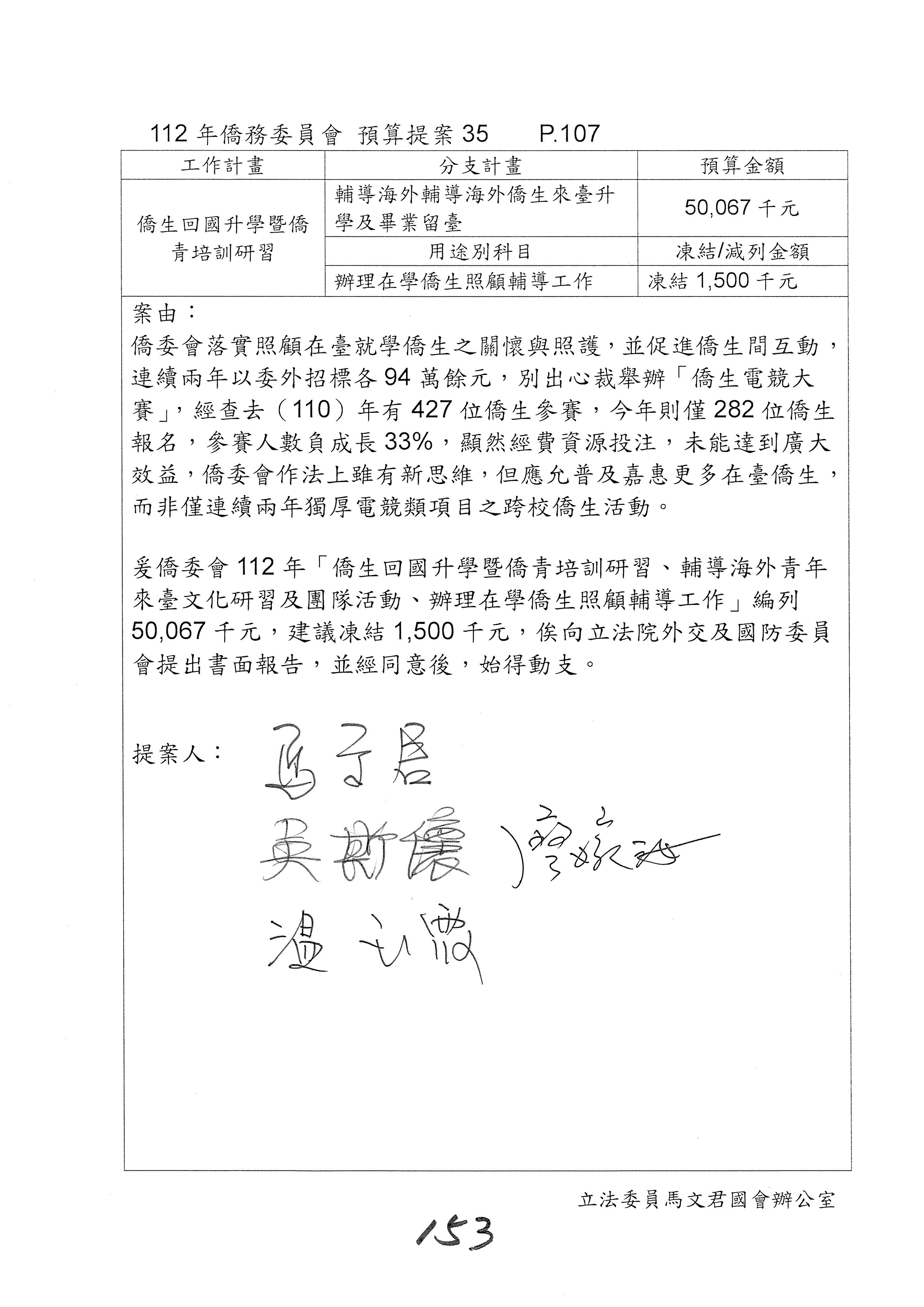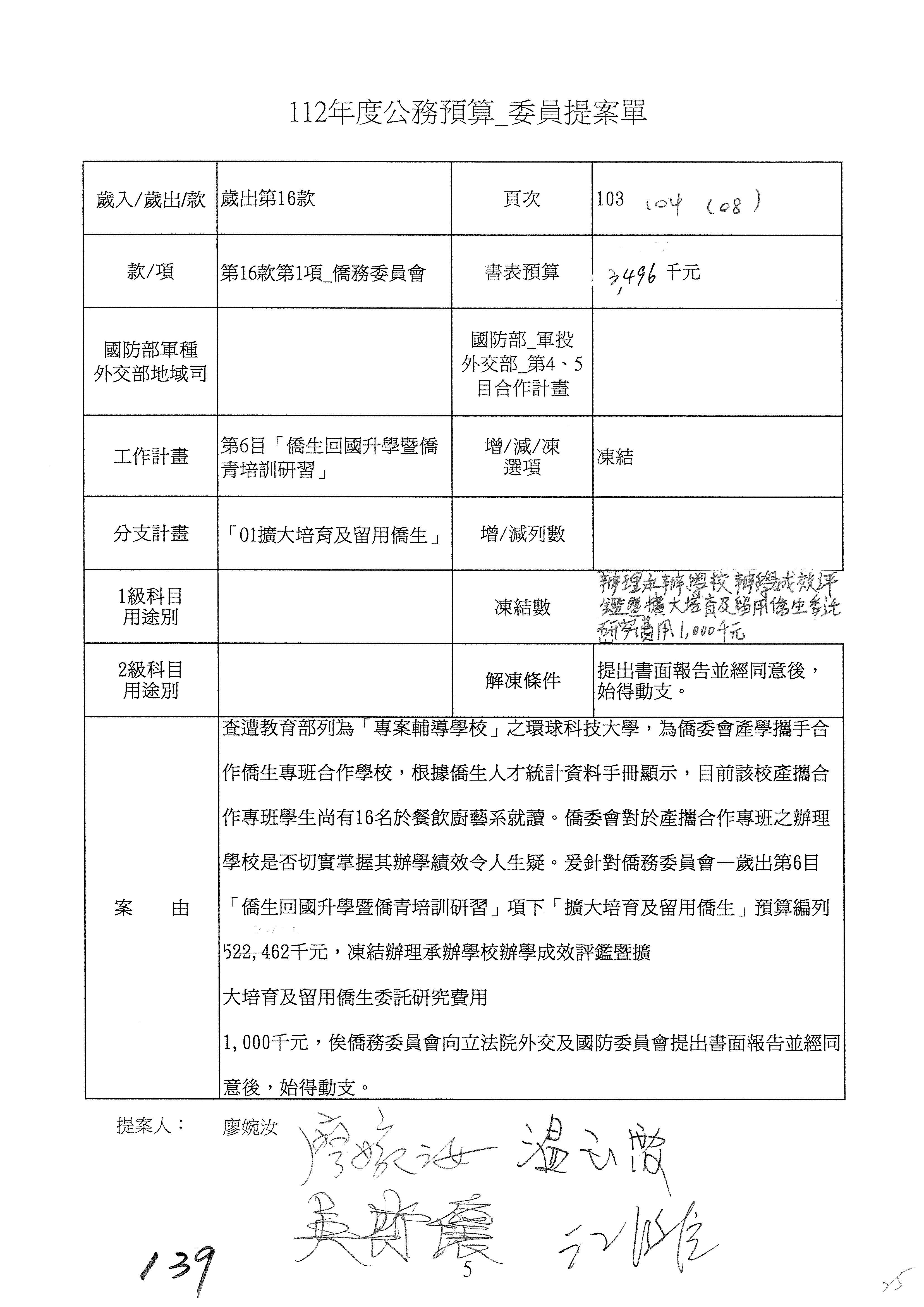 (二)112年度僑務委員會主管預算提案單(公開部分):