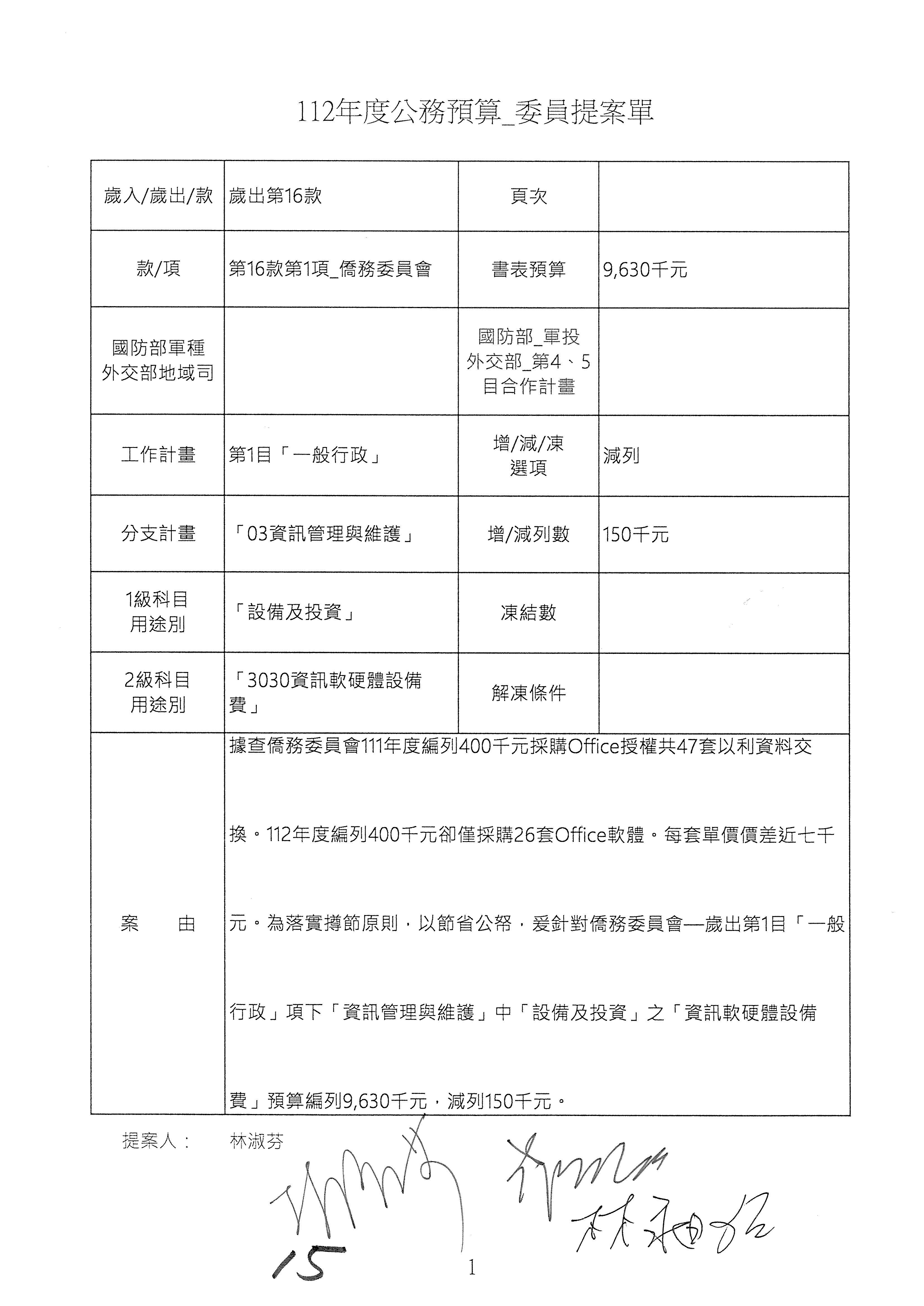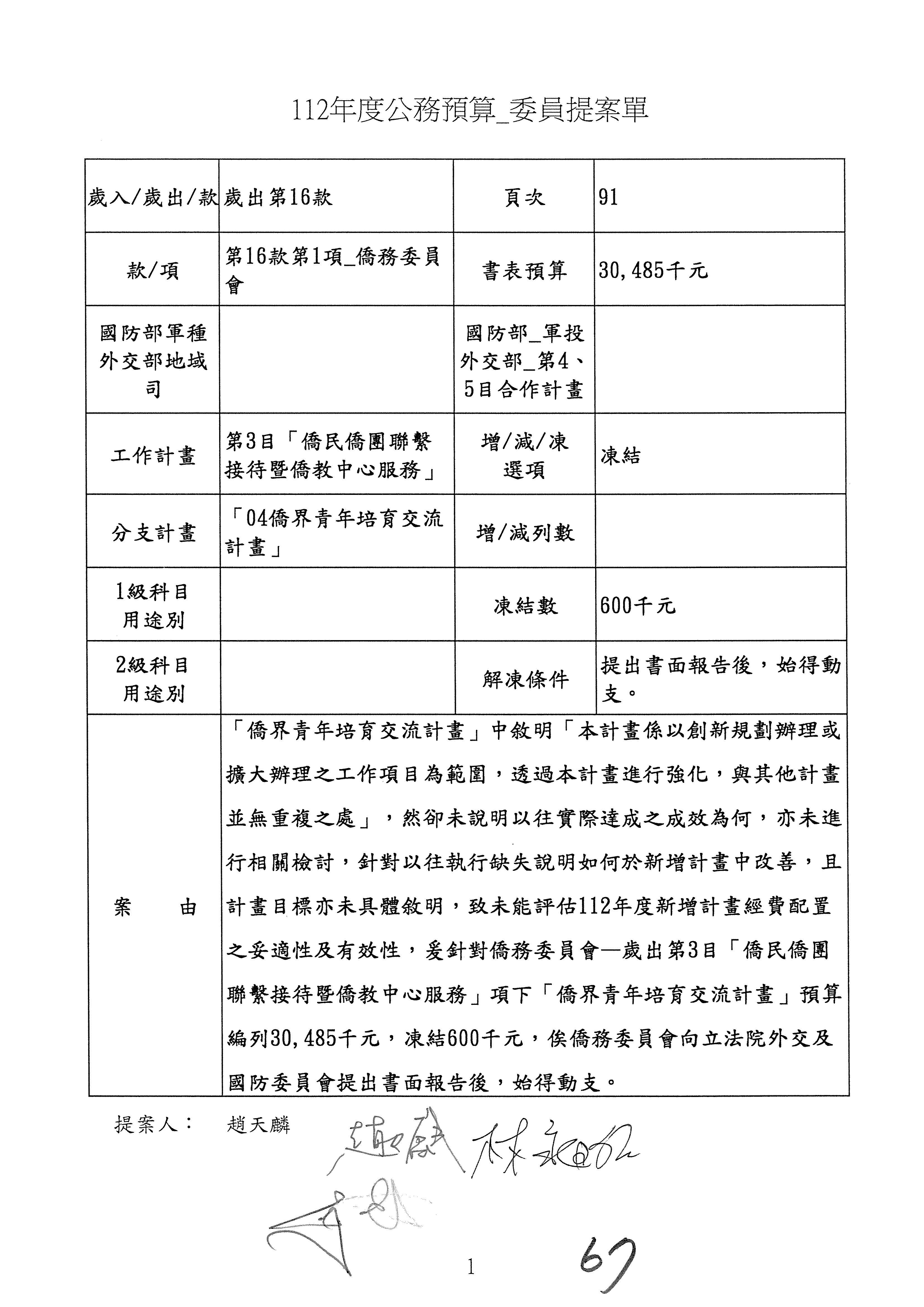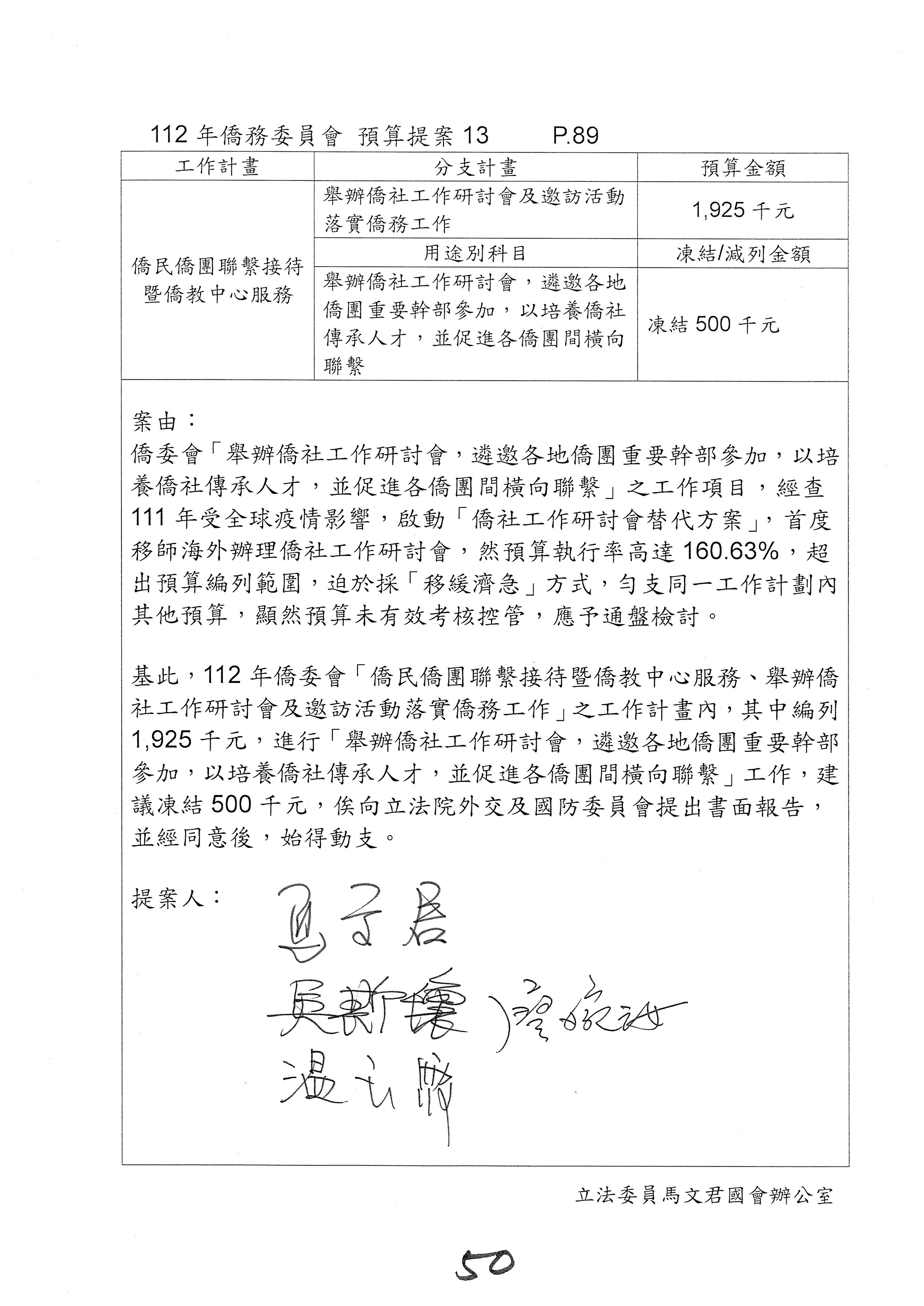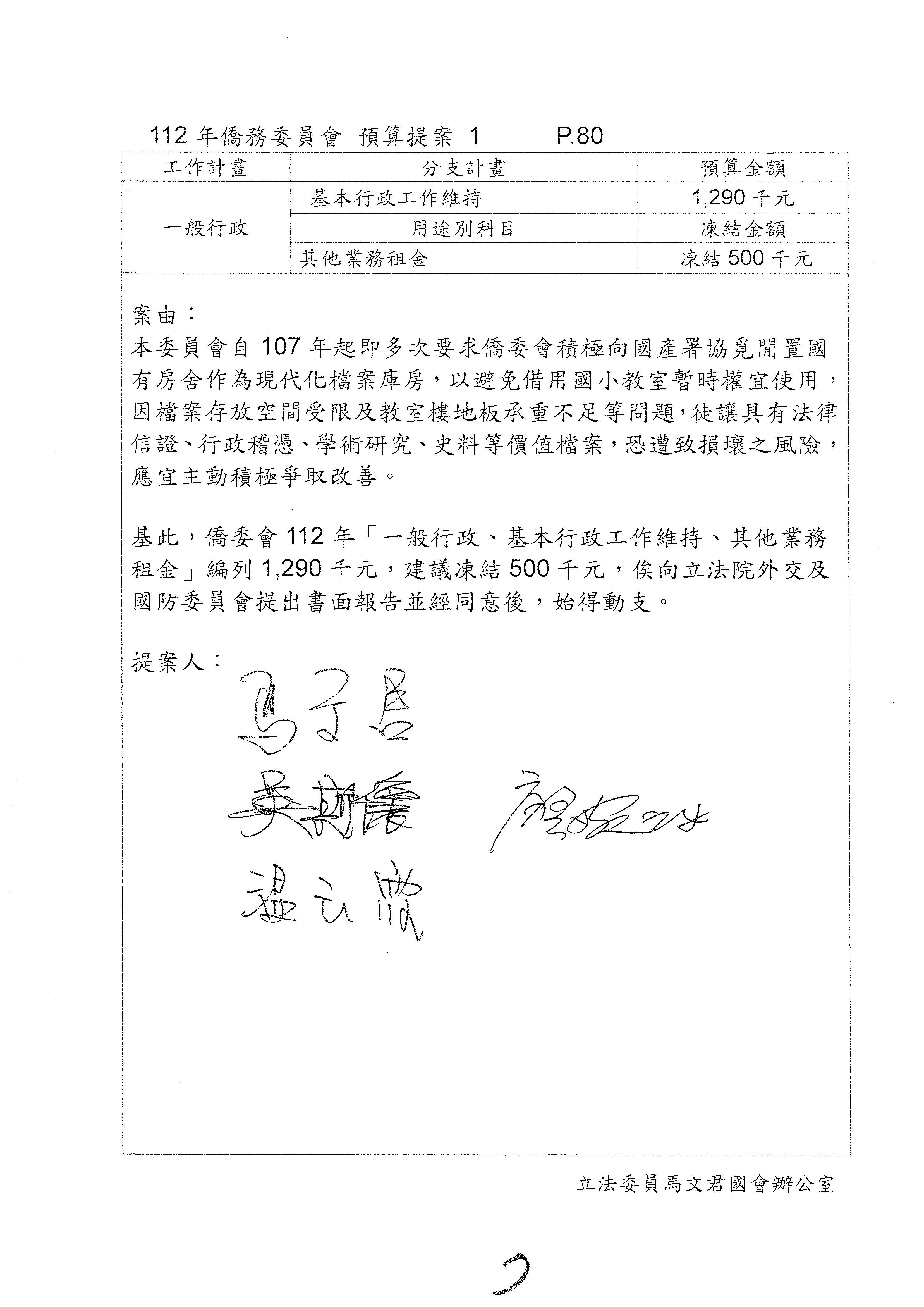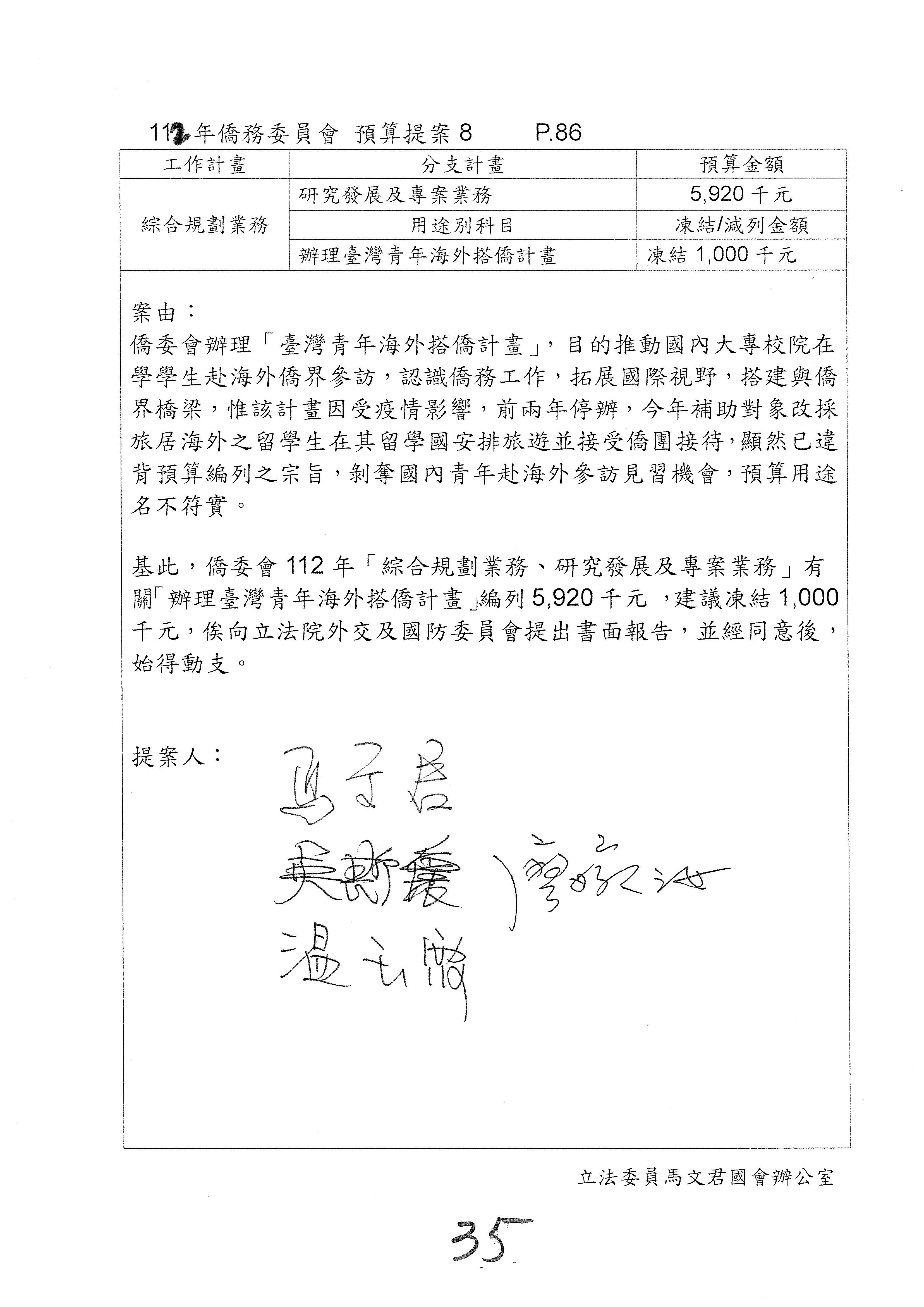 (二)112年度僑務委員會主管預算提案單(公開部分):
