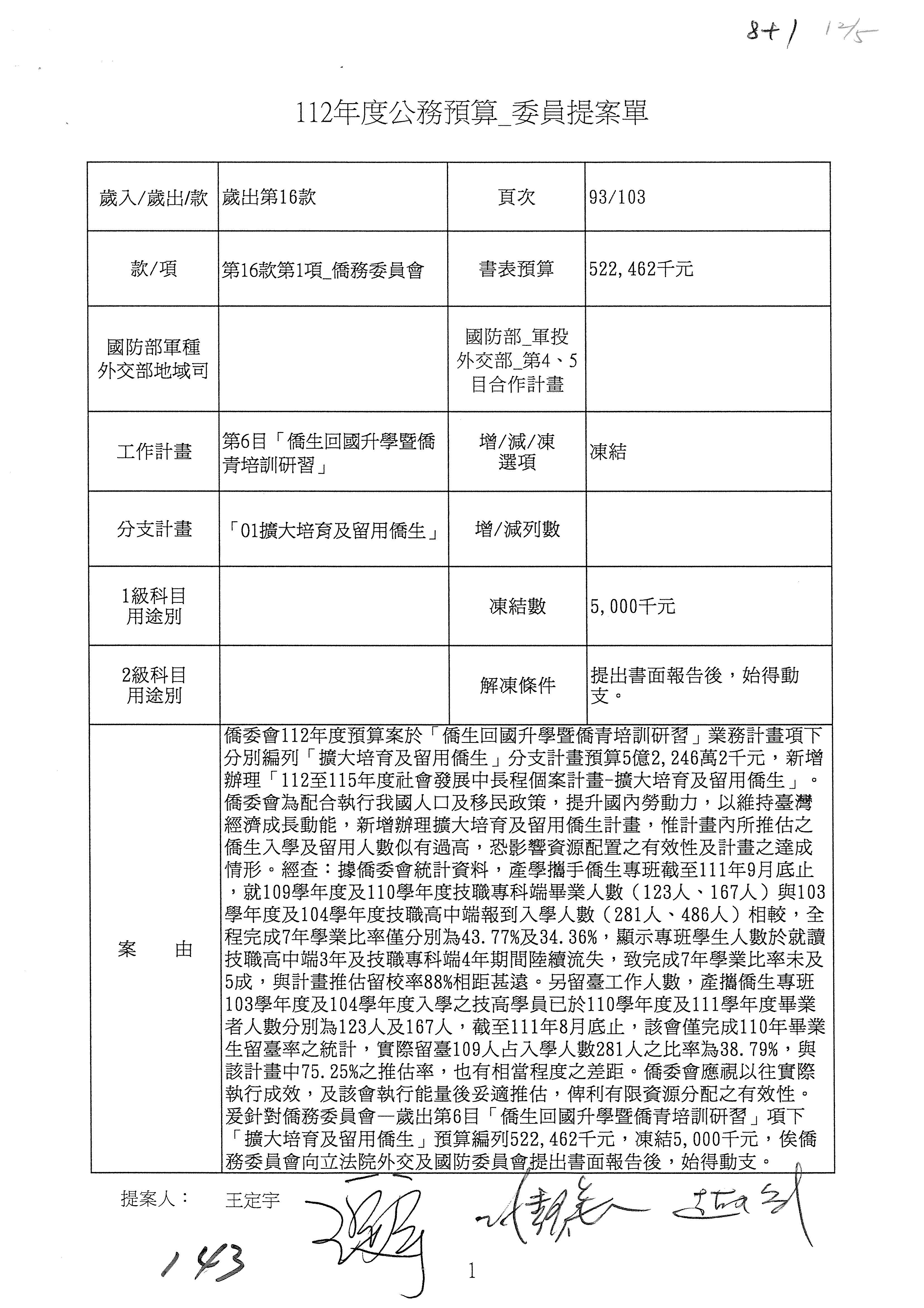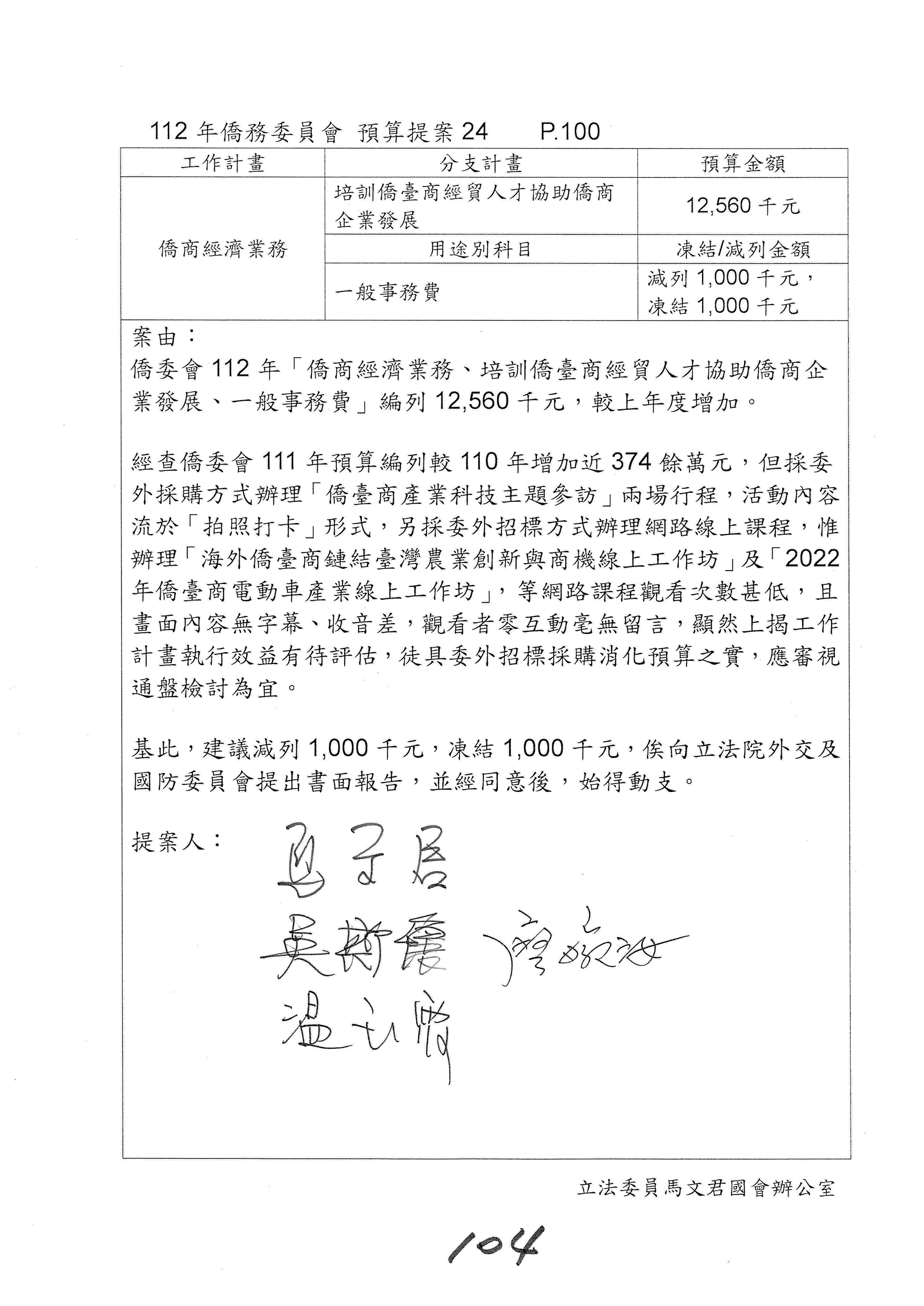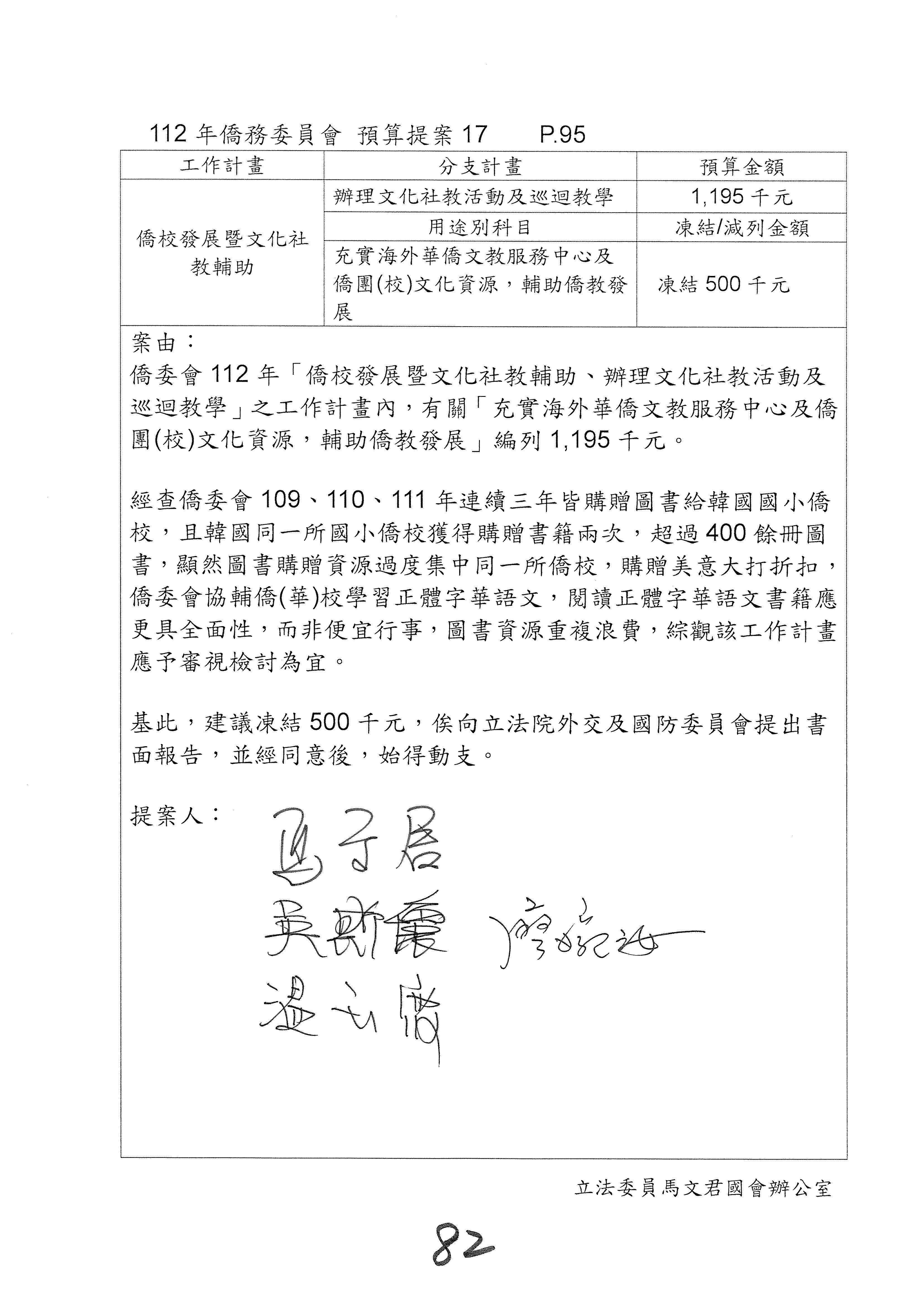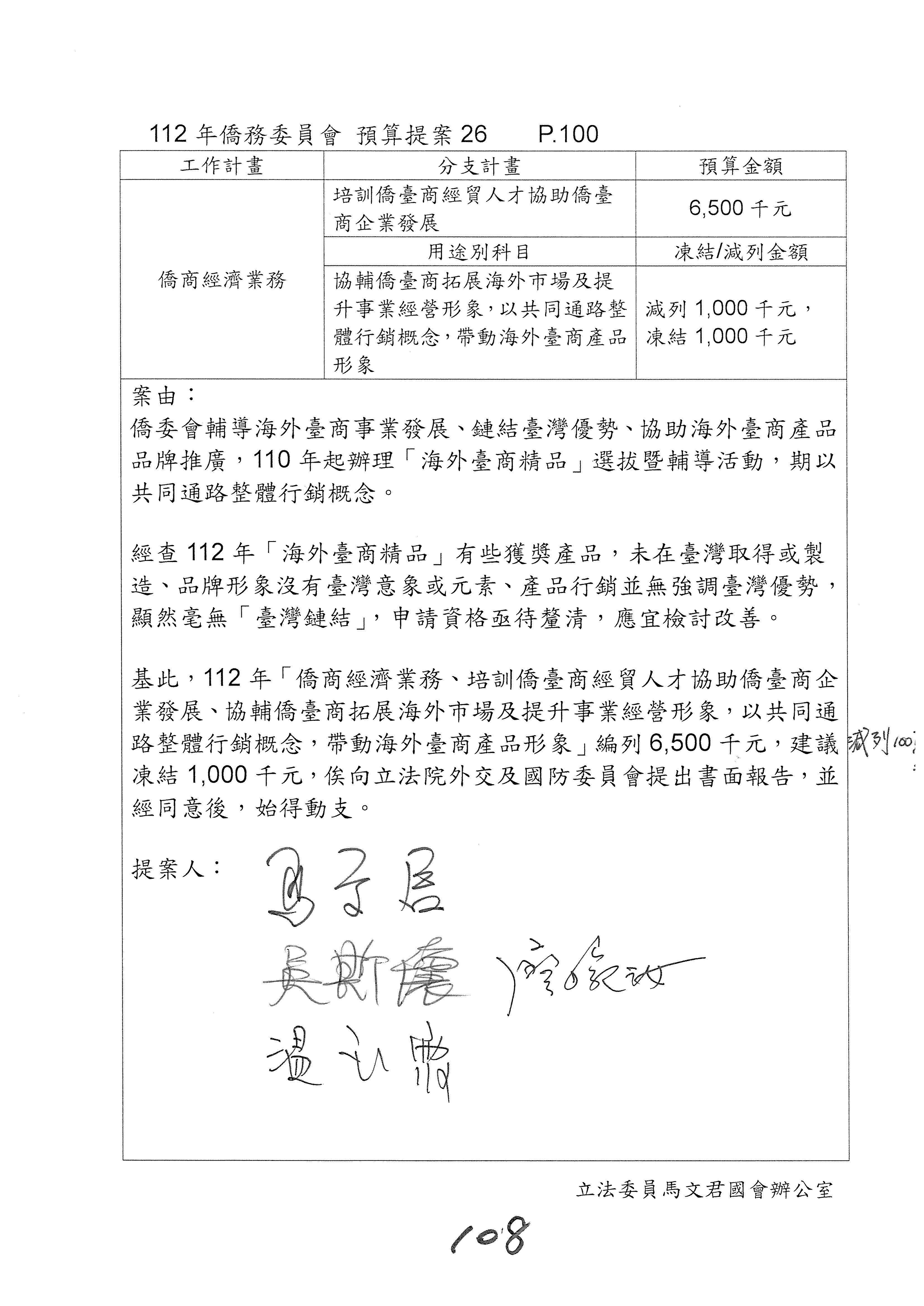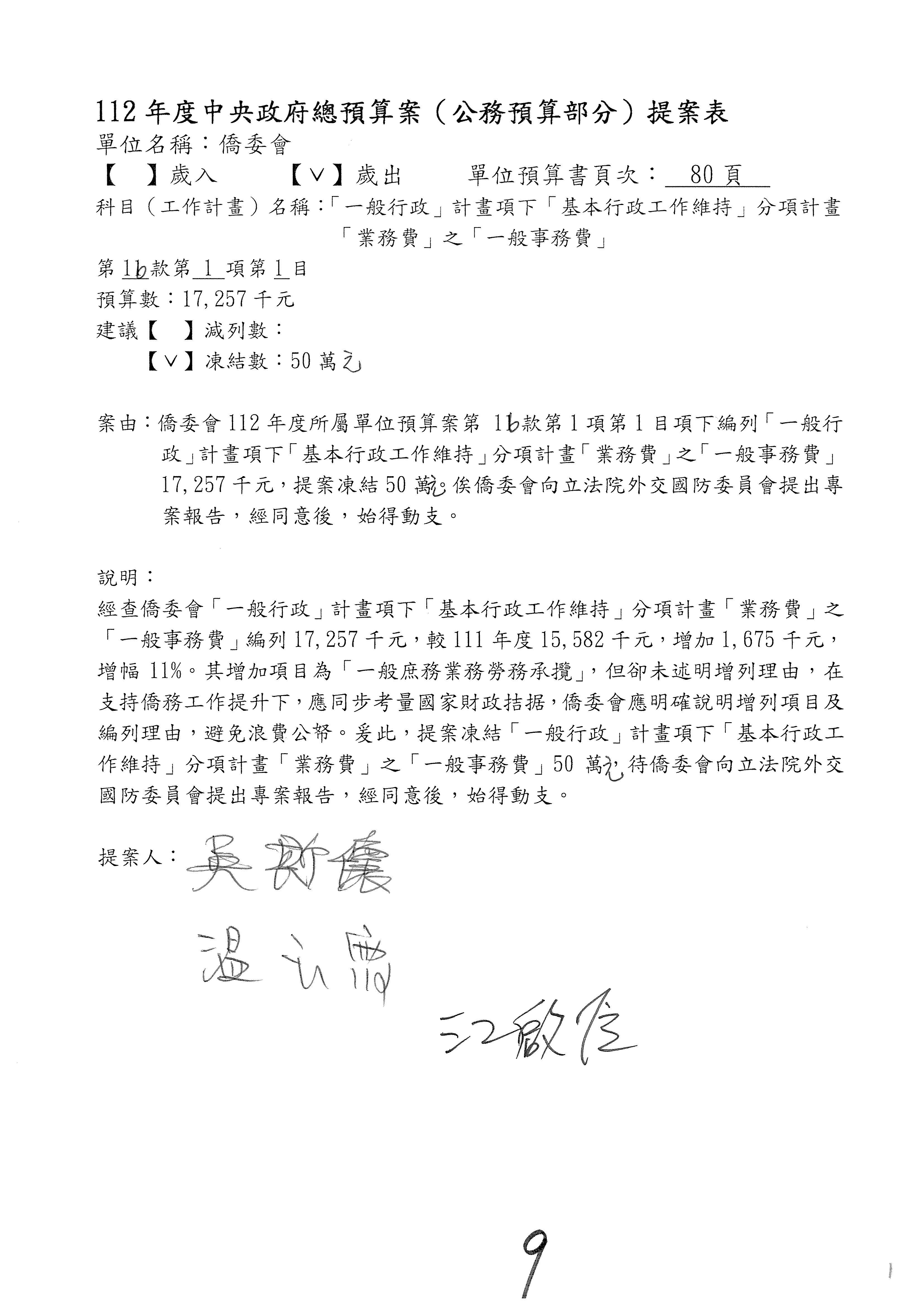 (二)112年度僑務委員會主管預算提案單(公開部分):