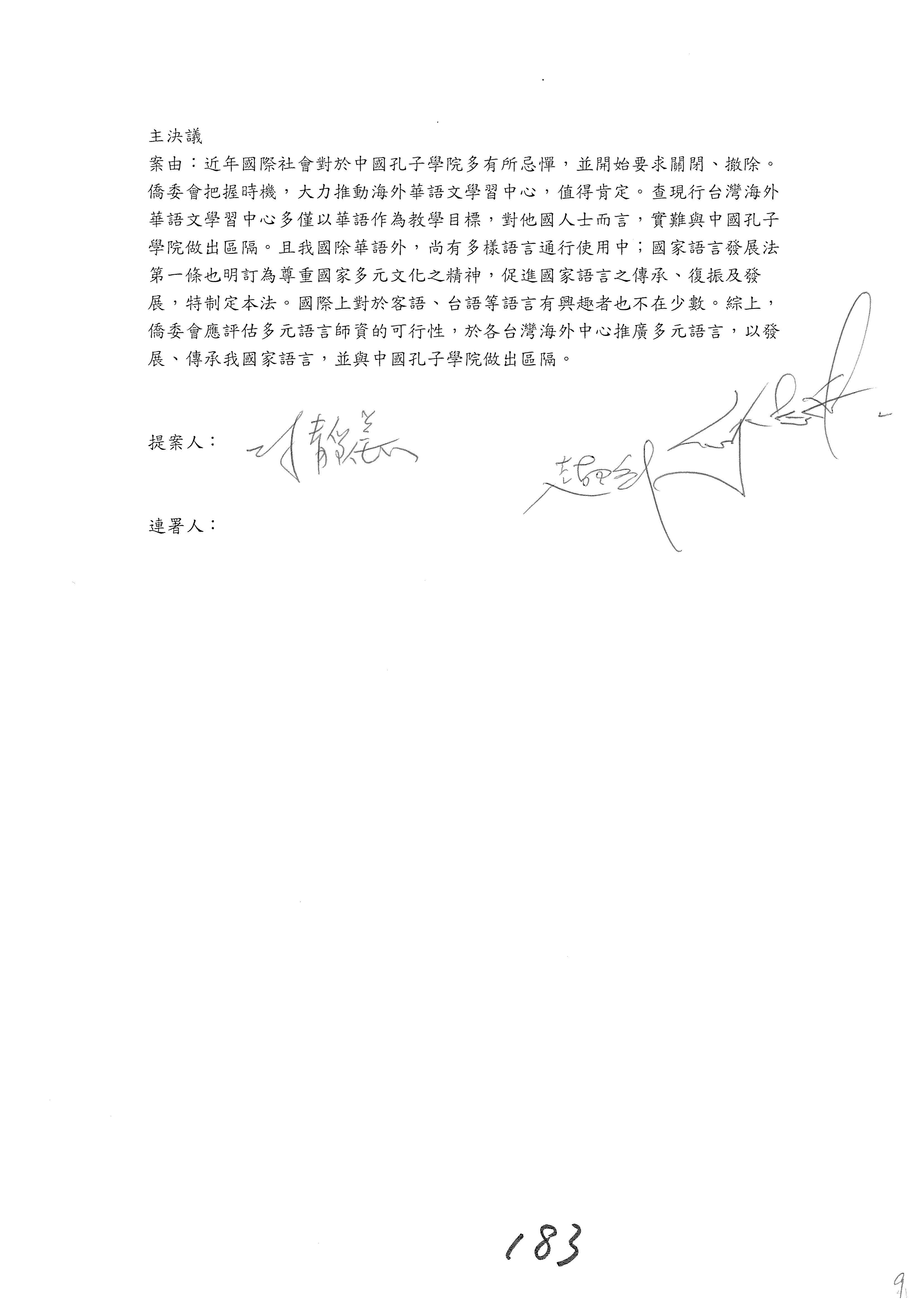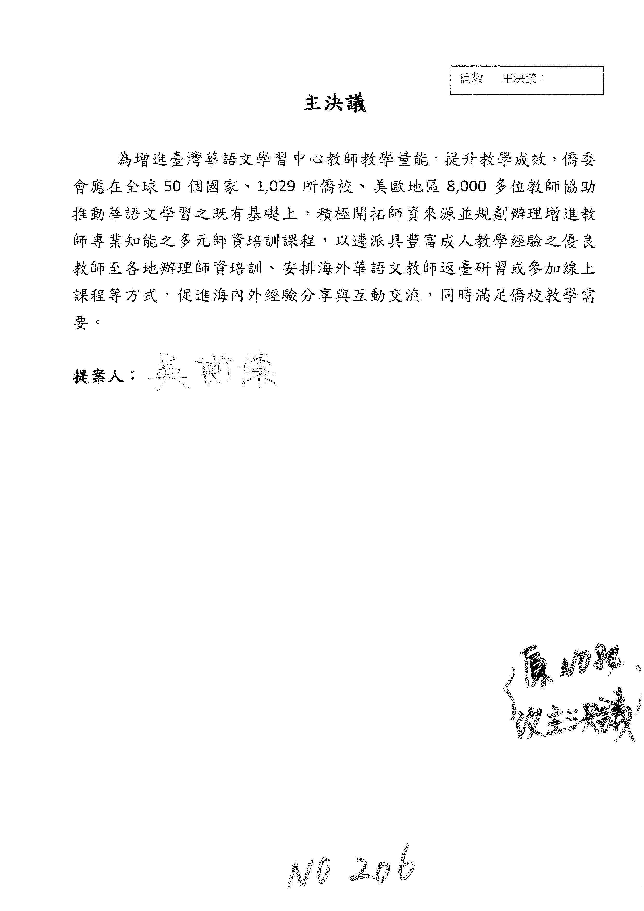童委員長振源:第201案主要是因為我們不是依照教育部的華語教育2025計畫,所以在敘述上可不可以把它拿掉?因為這樣寫似乎我們是根據教育部的安排。