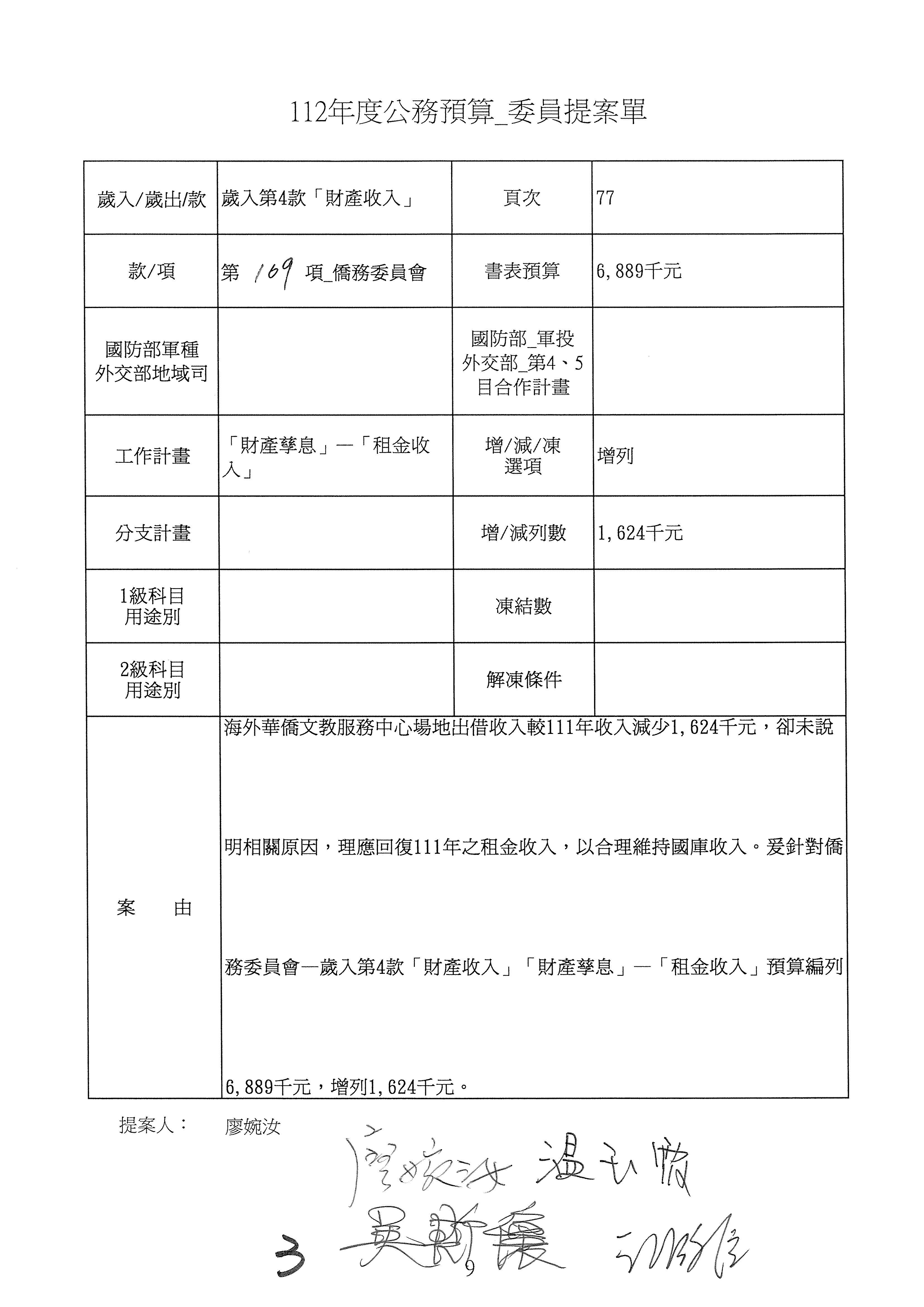 主席:其他委員有要補充說明嗎?好,第2案到第4案就依據廖婉汝委員所提第3案增列162萬4,000元。