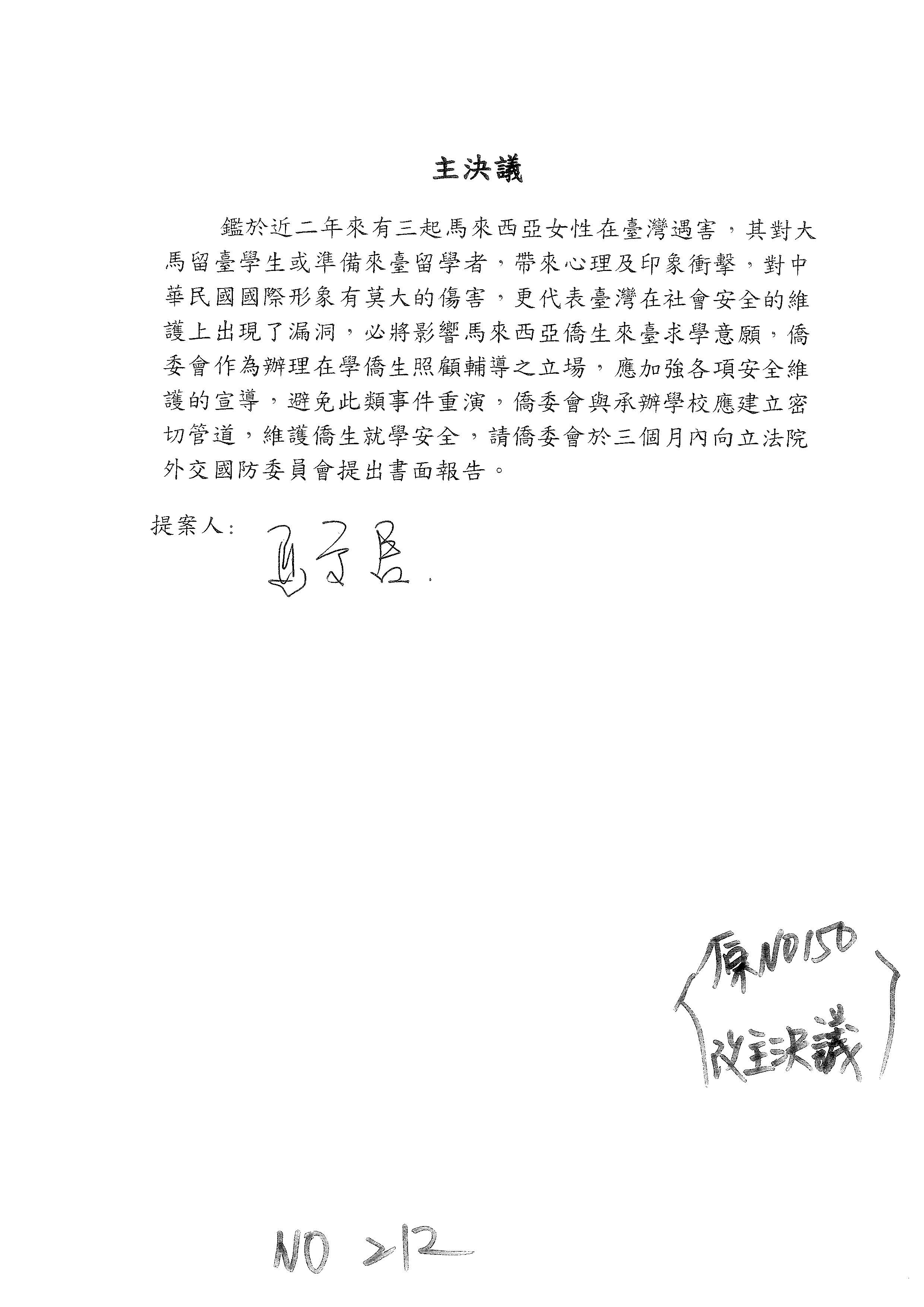 童委員長振源:第200案的狀況也是類似,後面是不是可以請僑委會三個月內提出書面報告就好?沒關係,因為委員是「建請」,如果委員只是希望我們儘量努力,我們就朝這方向努力。