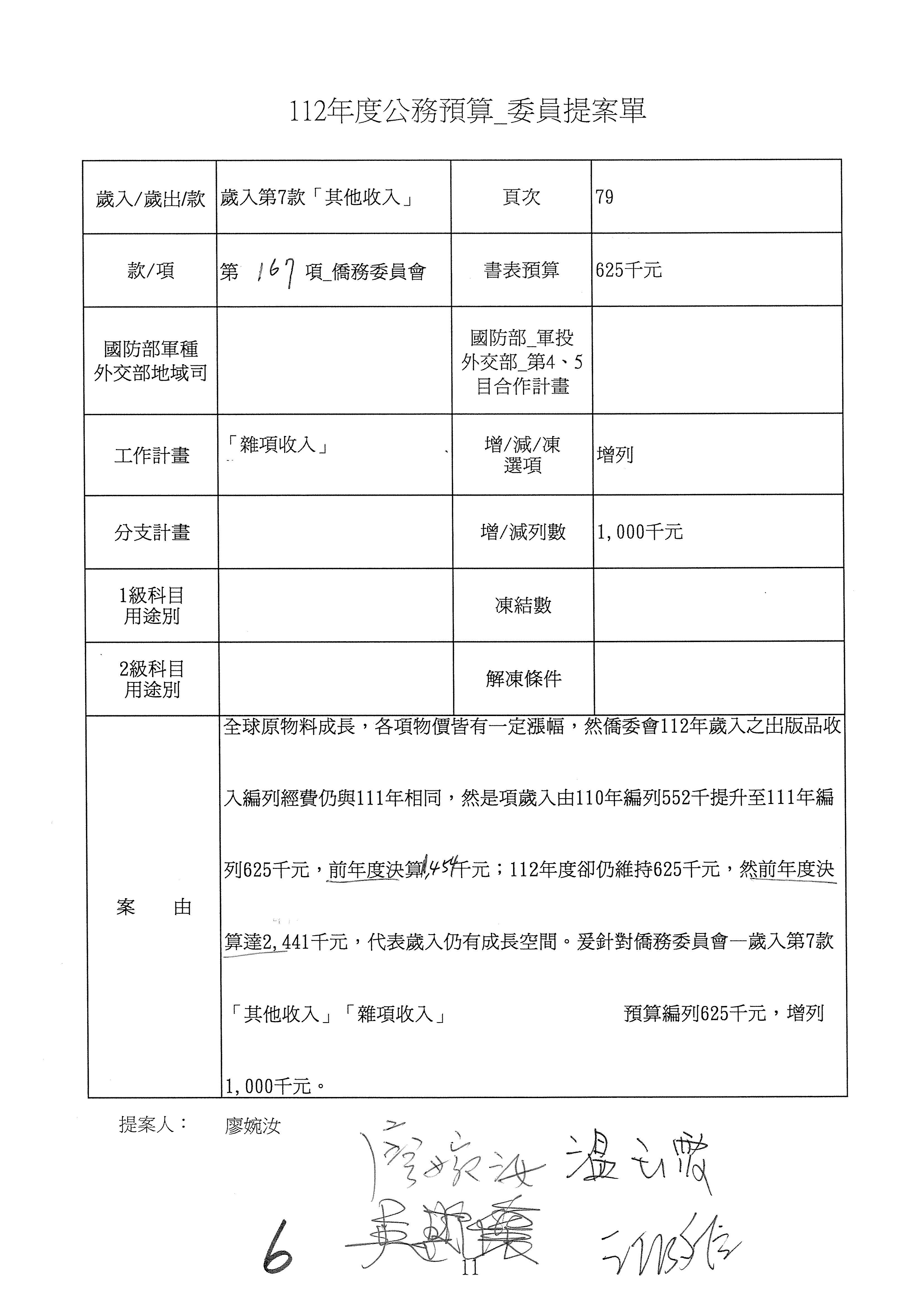 第167項 僑務委員會62萬5千元。