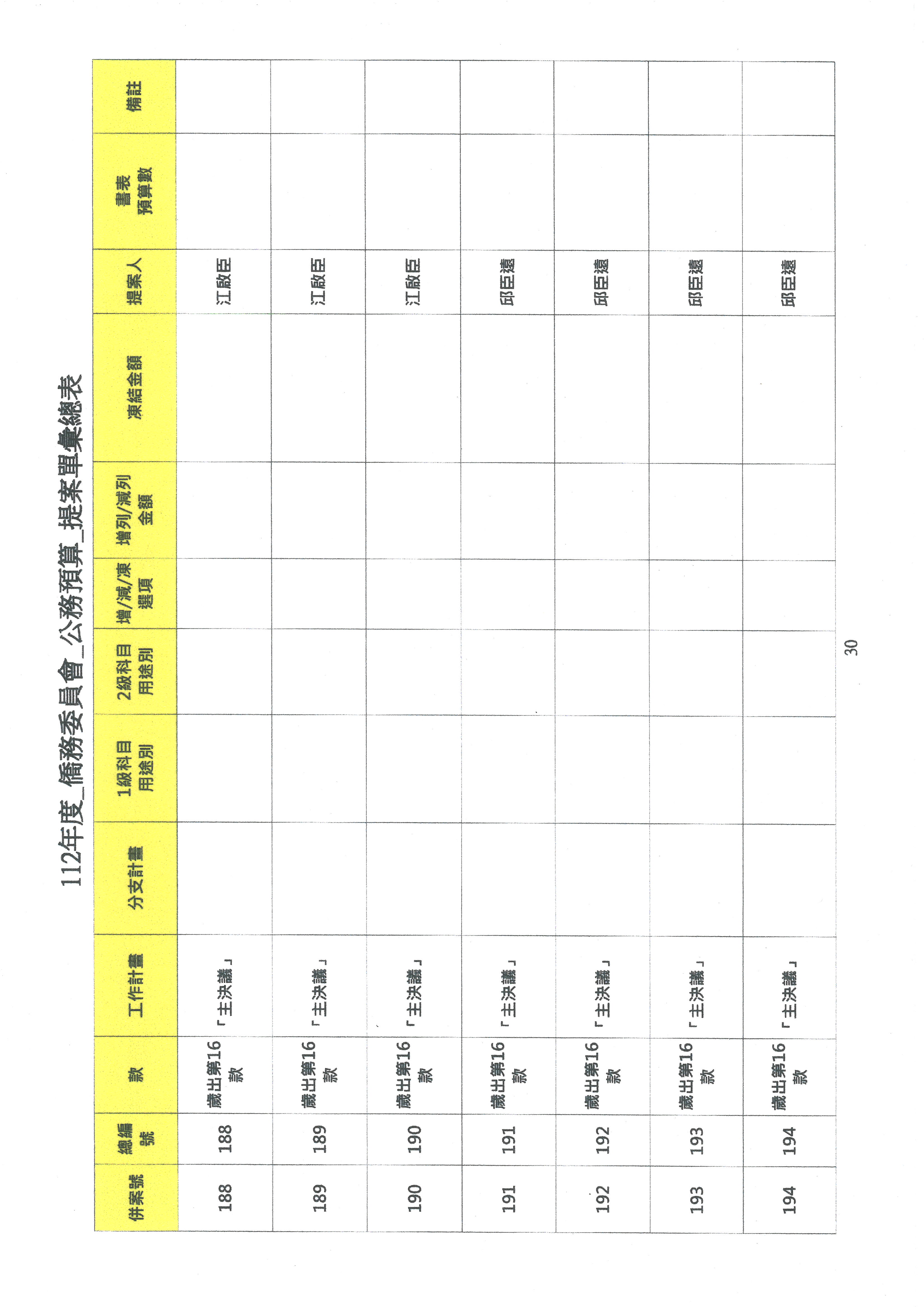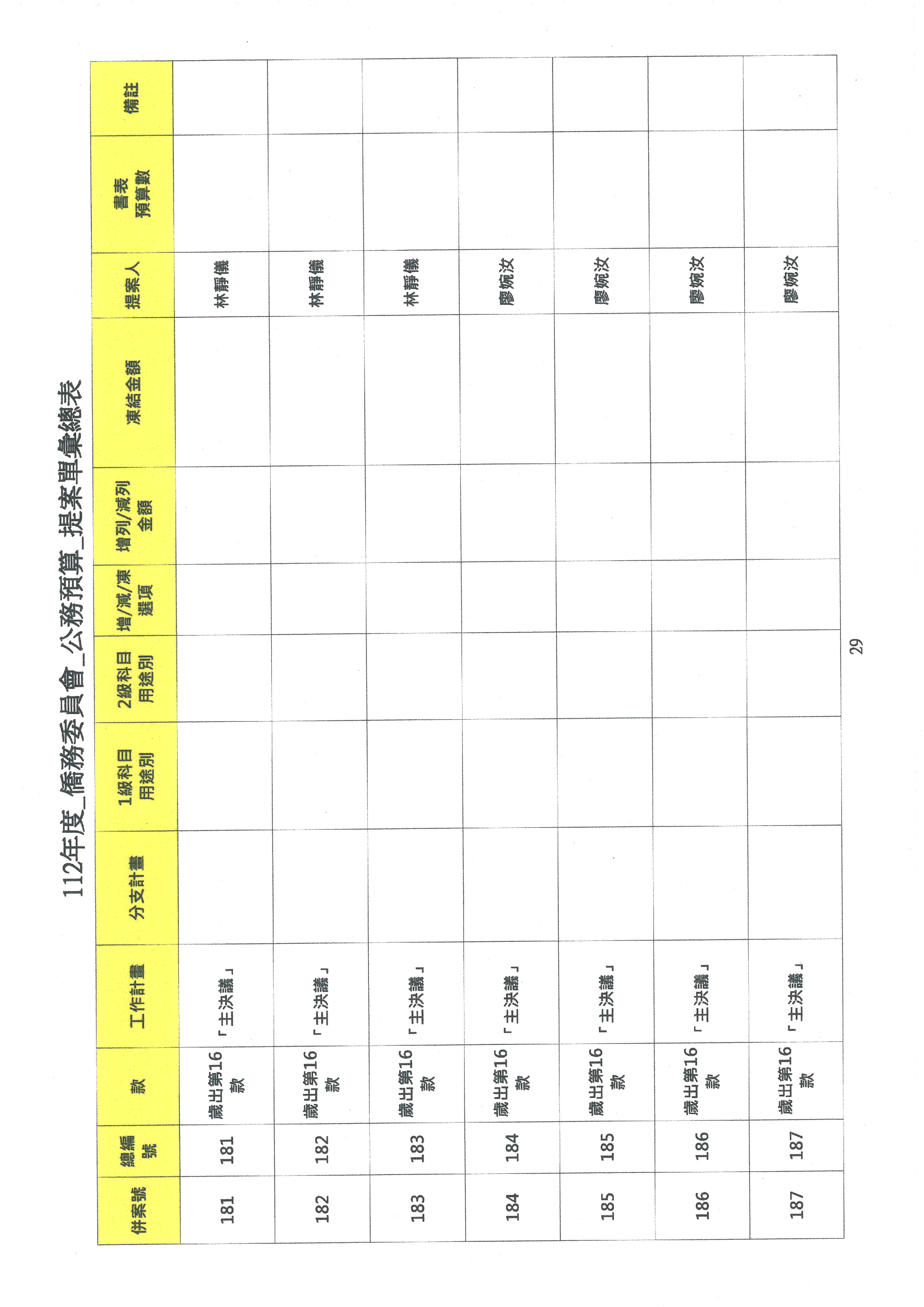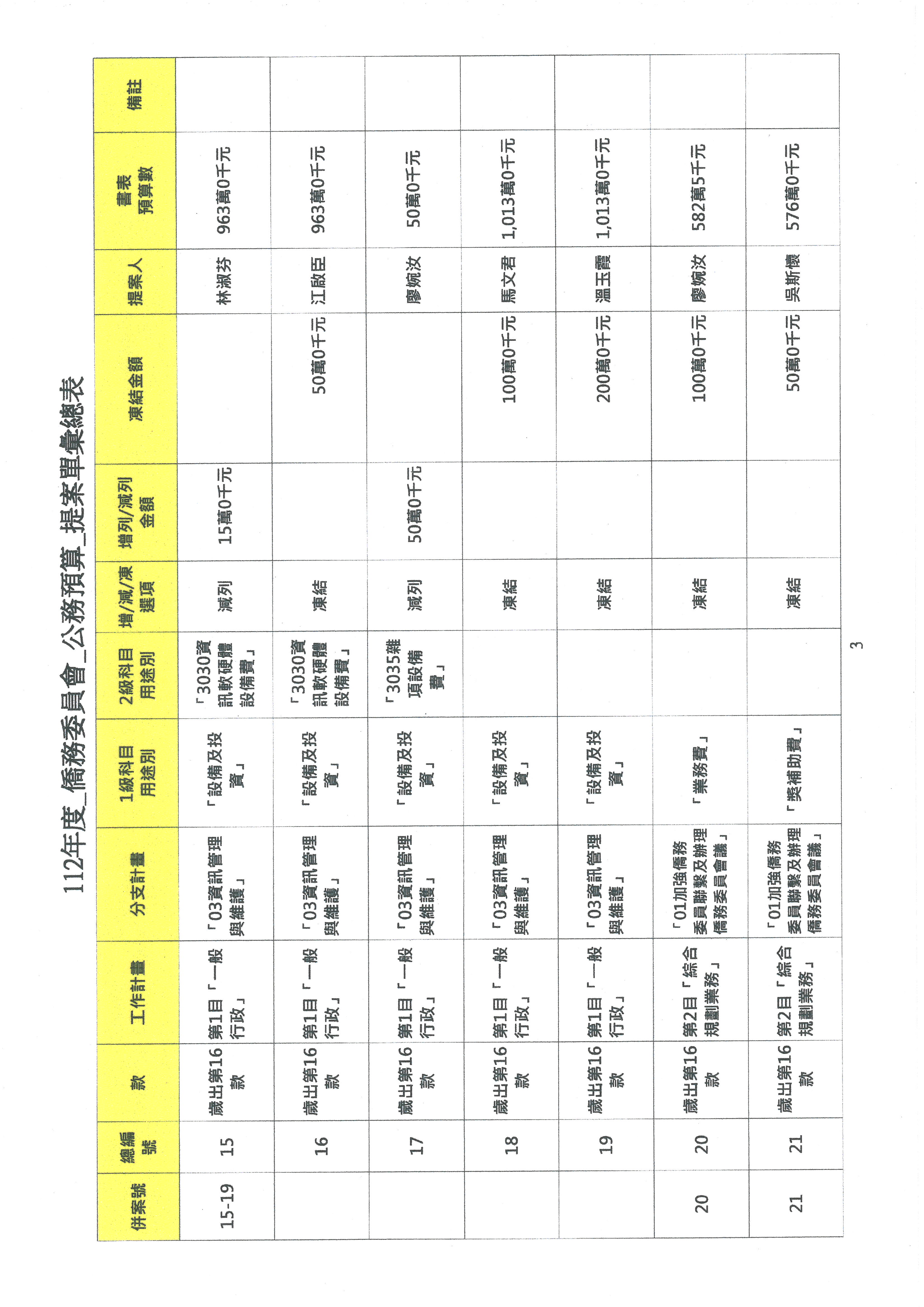 請議事人員宣讀預算數及有關收支公開部分委員提案,宣讀完畢後進行協商。