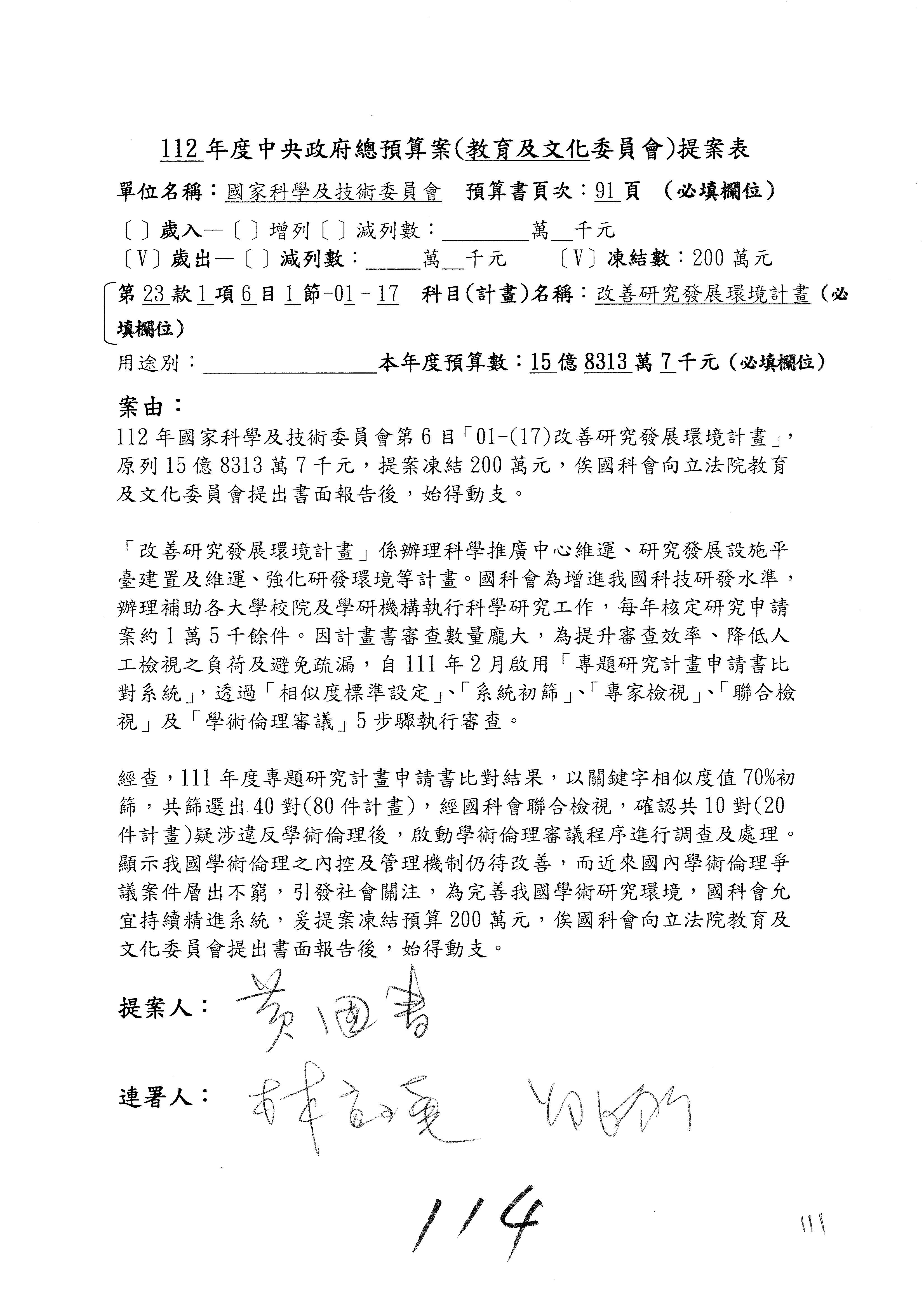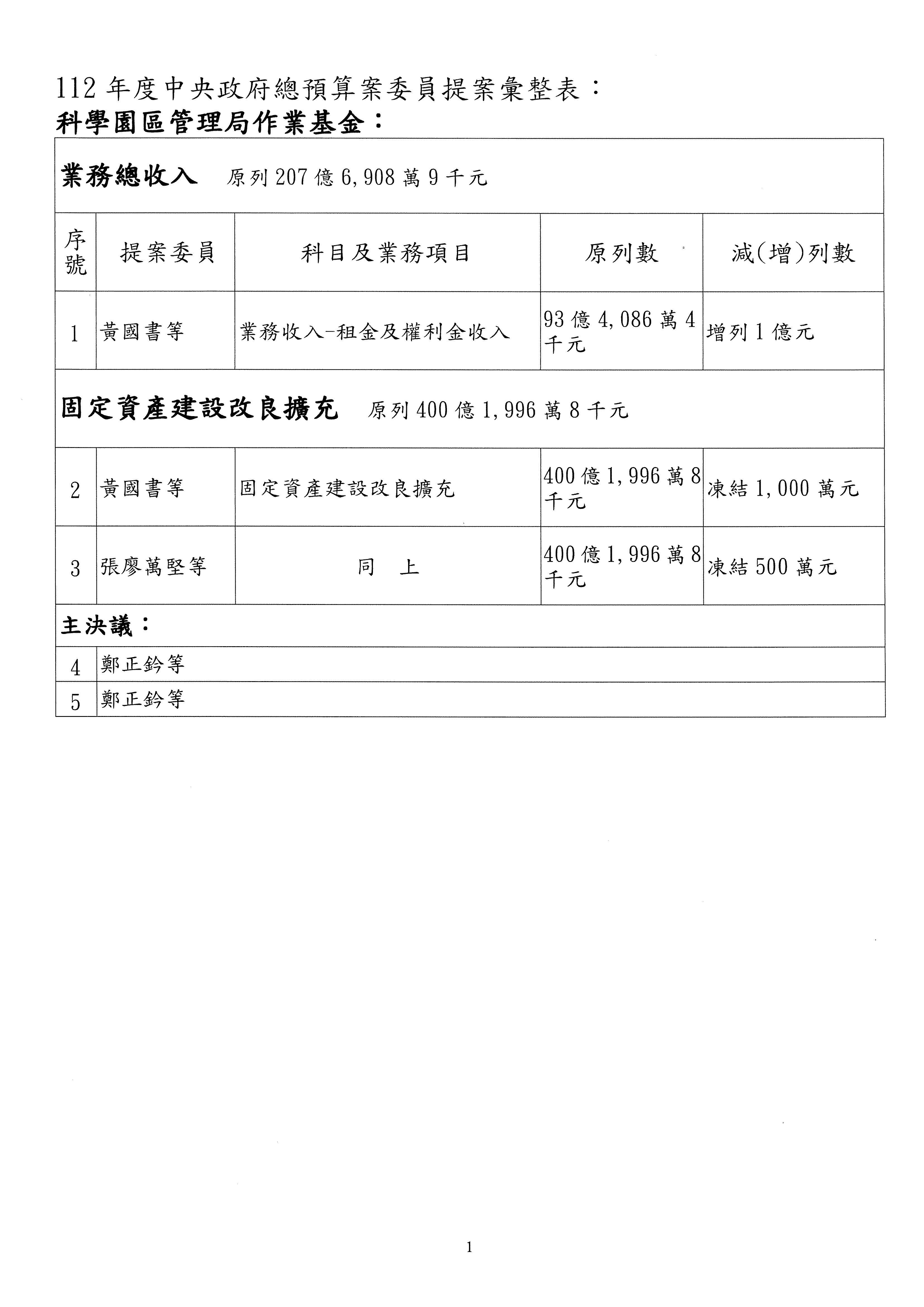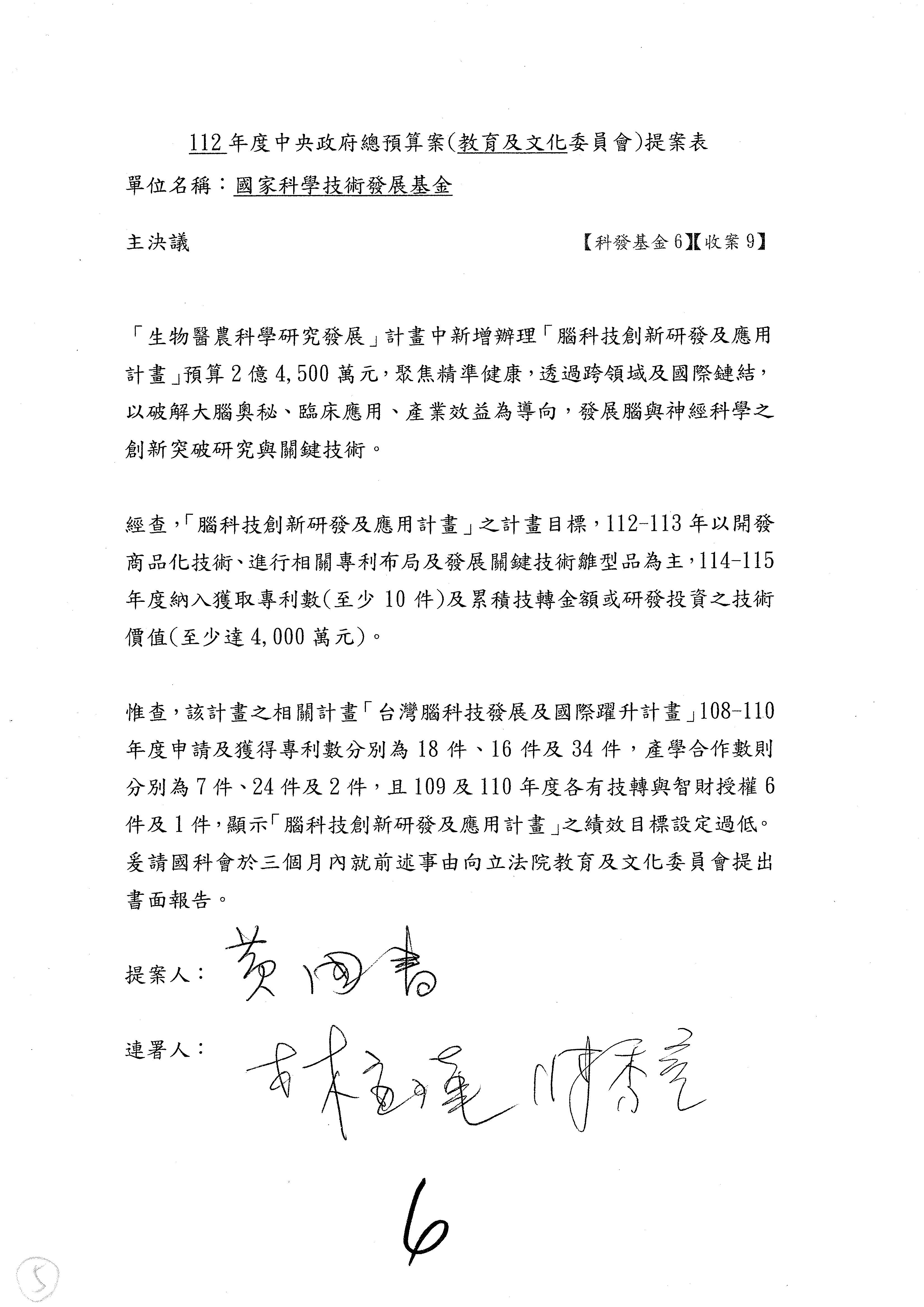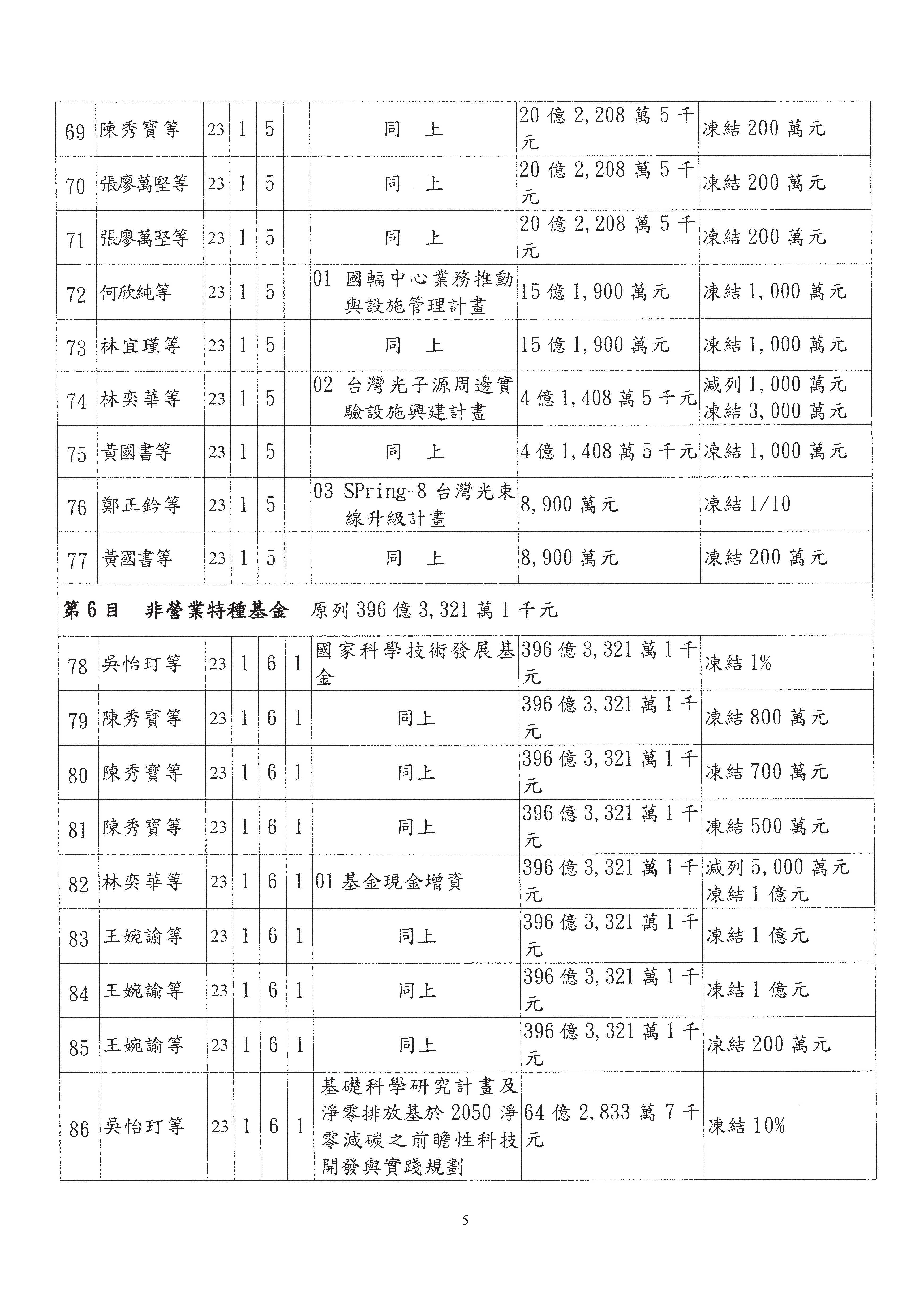 黃委員國書:我有兩案,第5案凍1,000萬元、第6案改主決議。