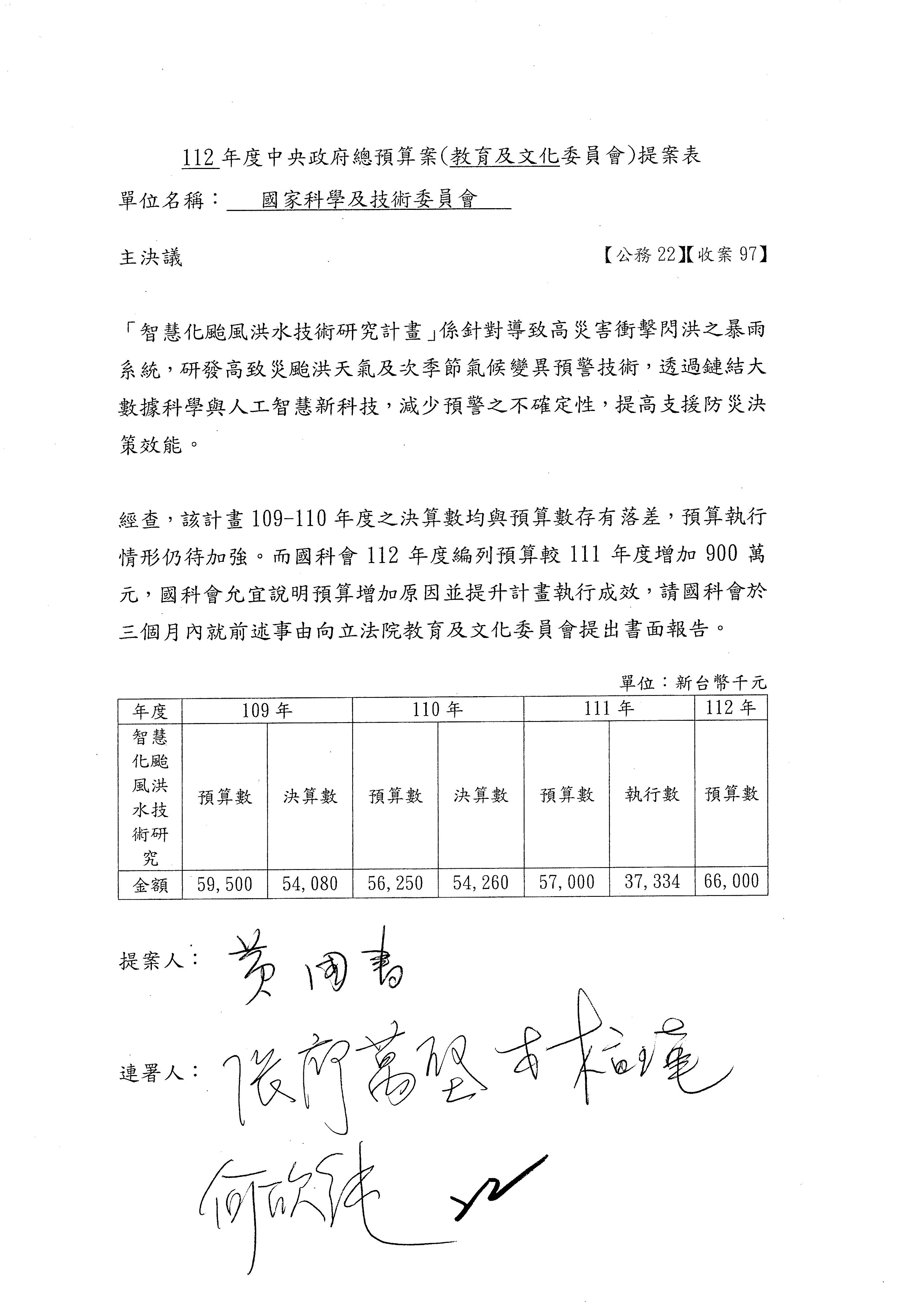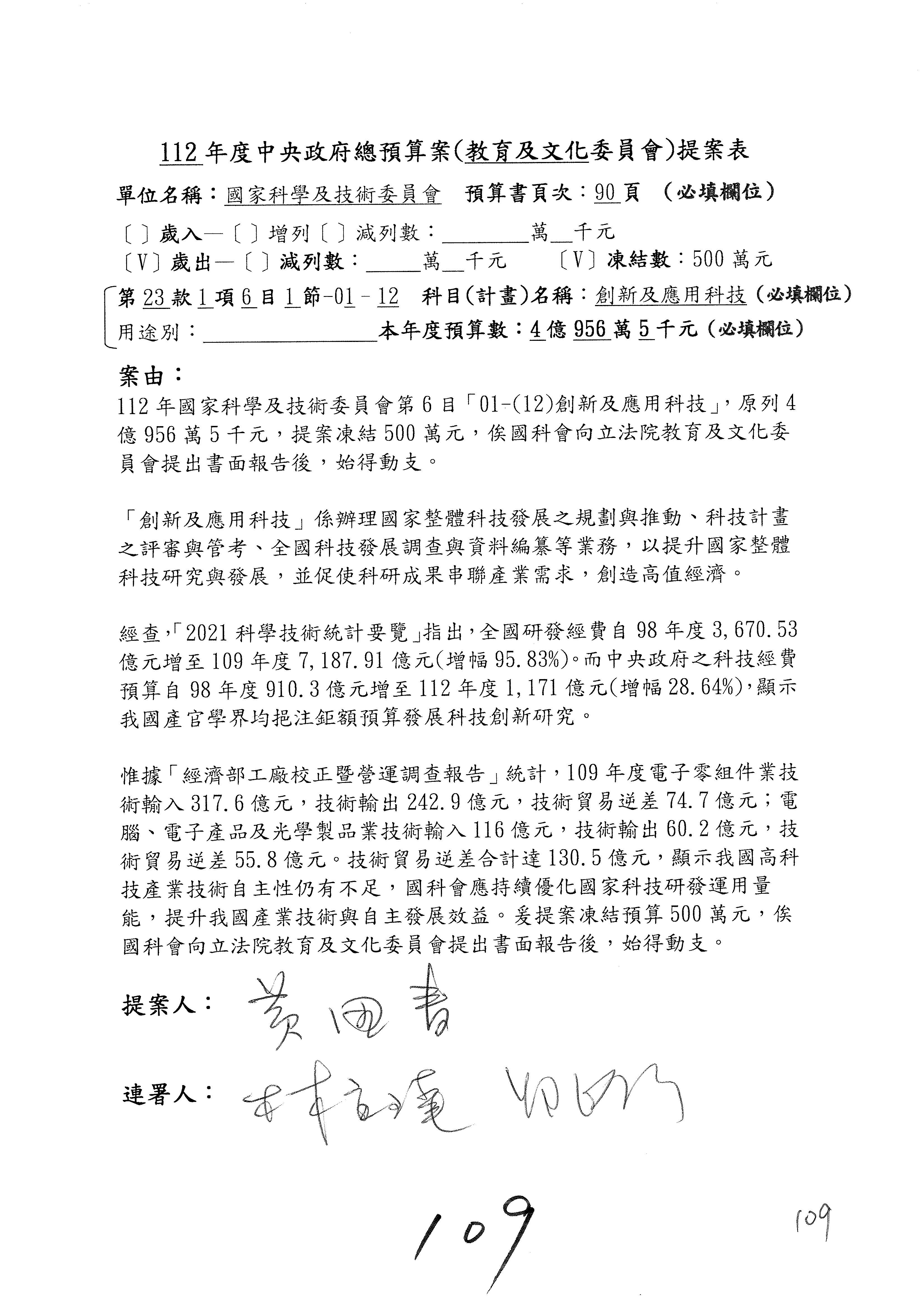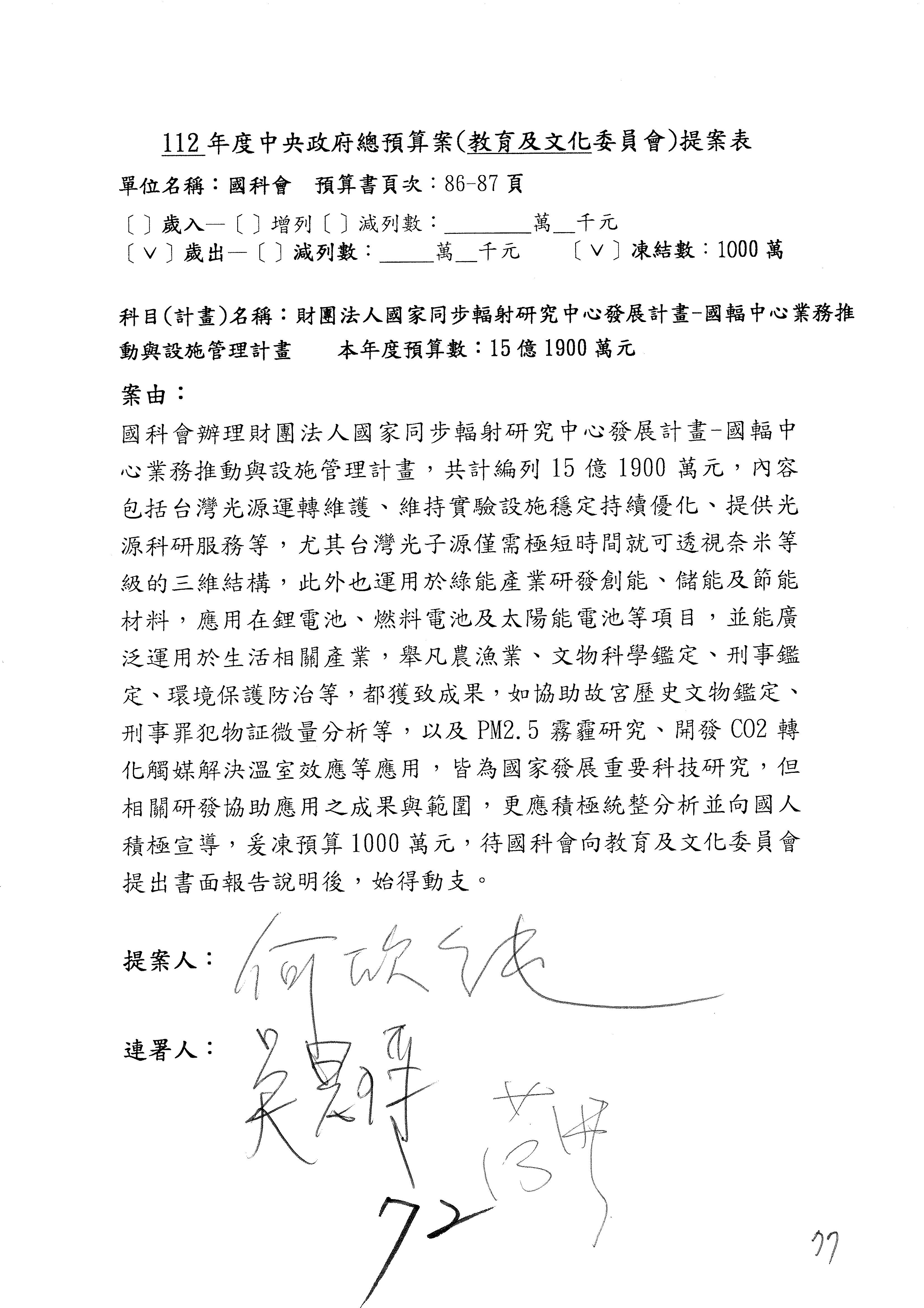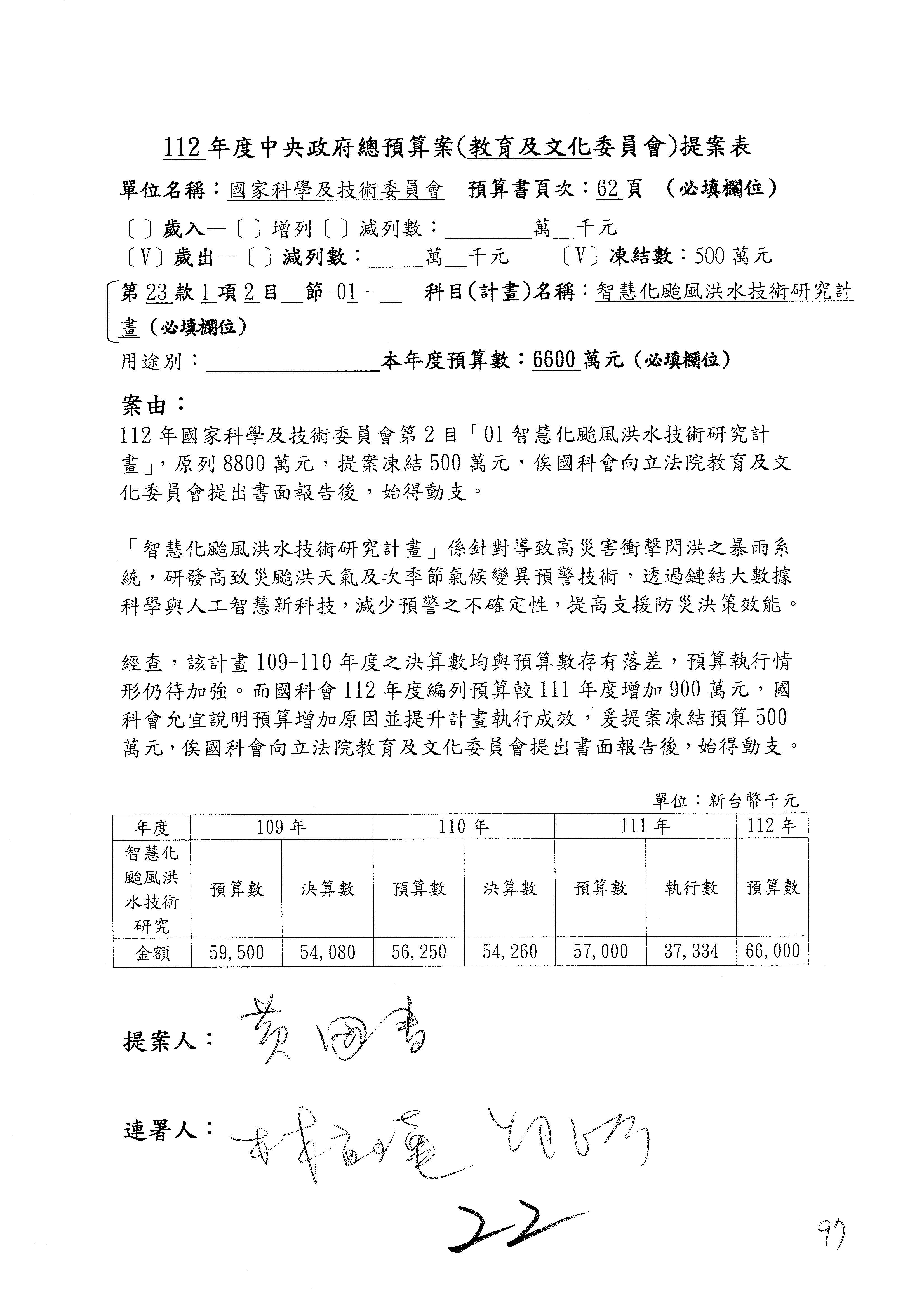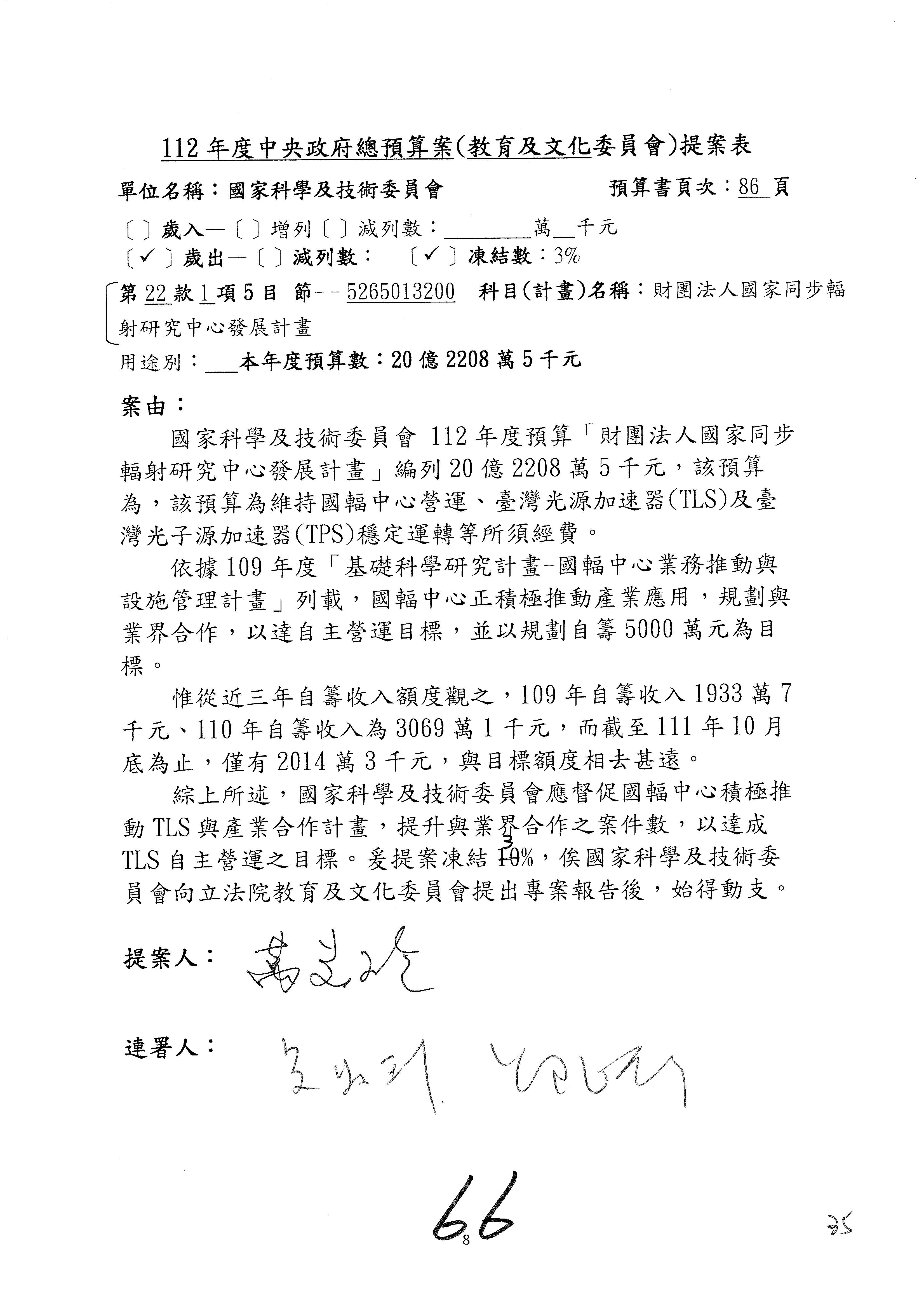 黃委員國書:我有兩案,第5案凍1,000萬元、第6案改主決議。