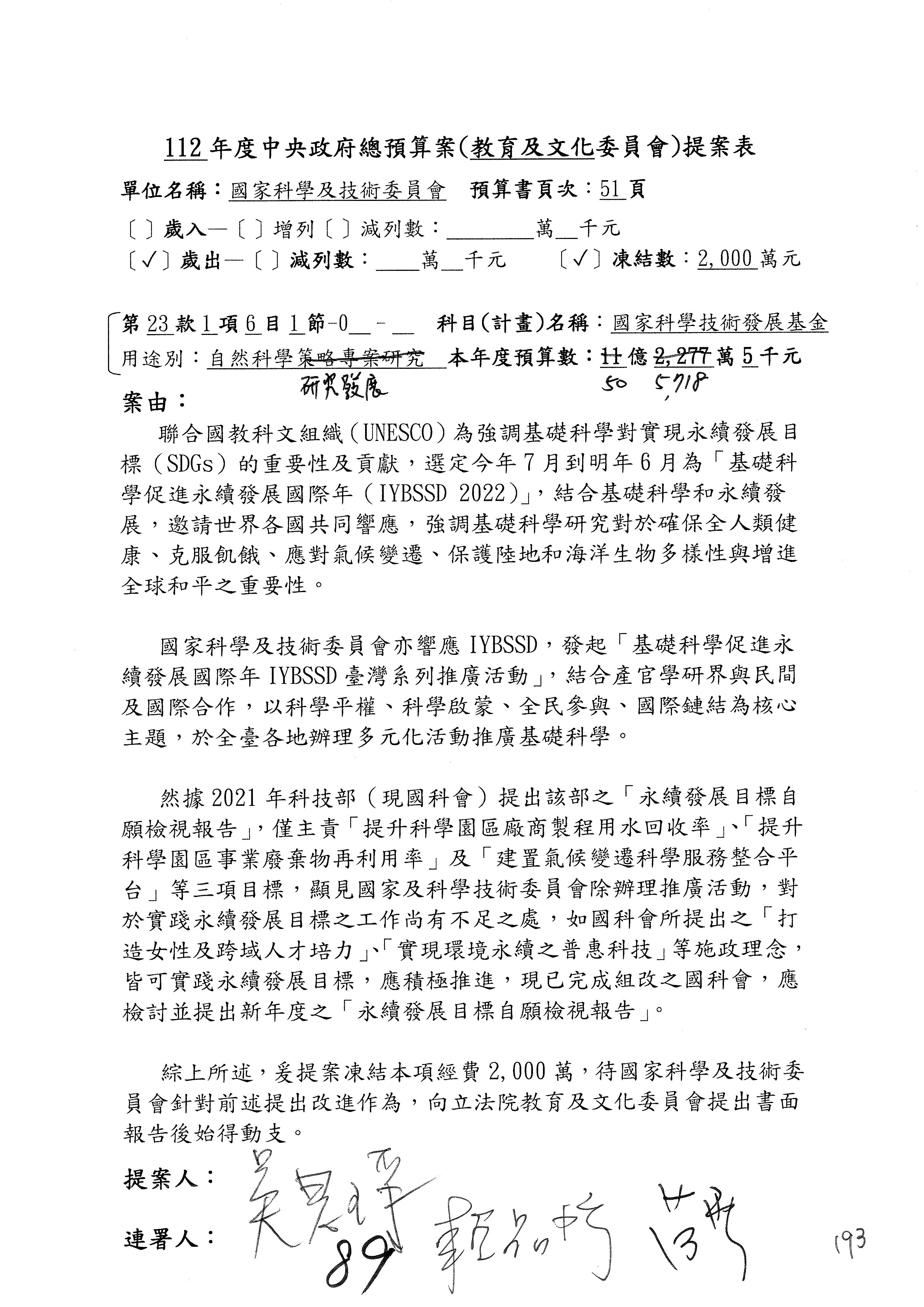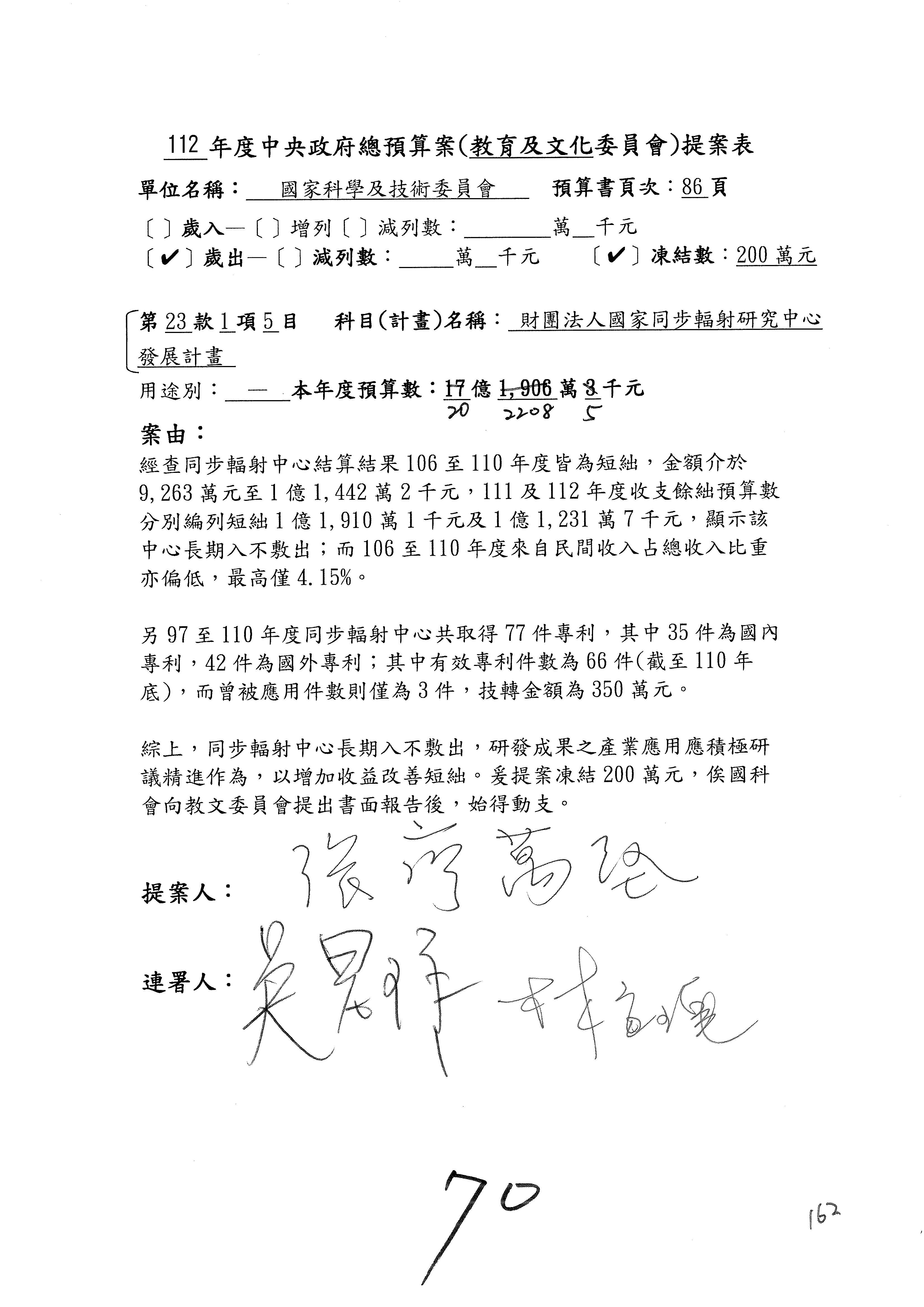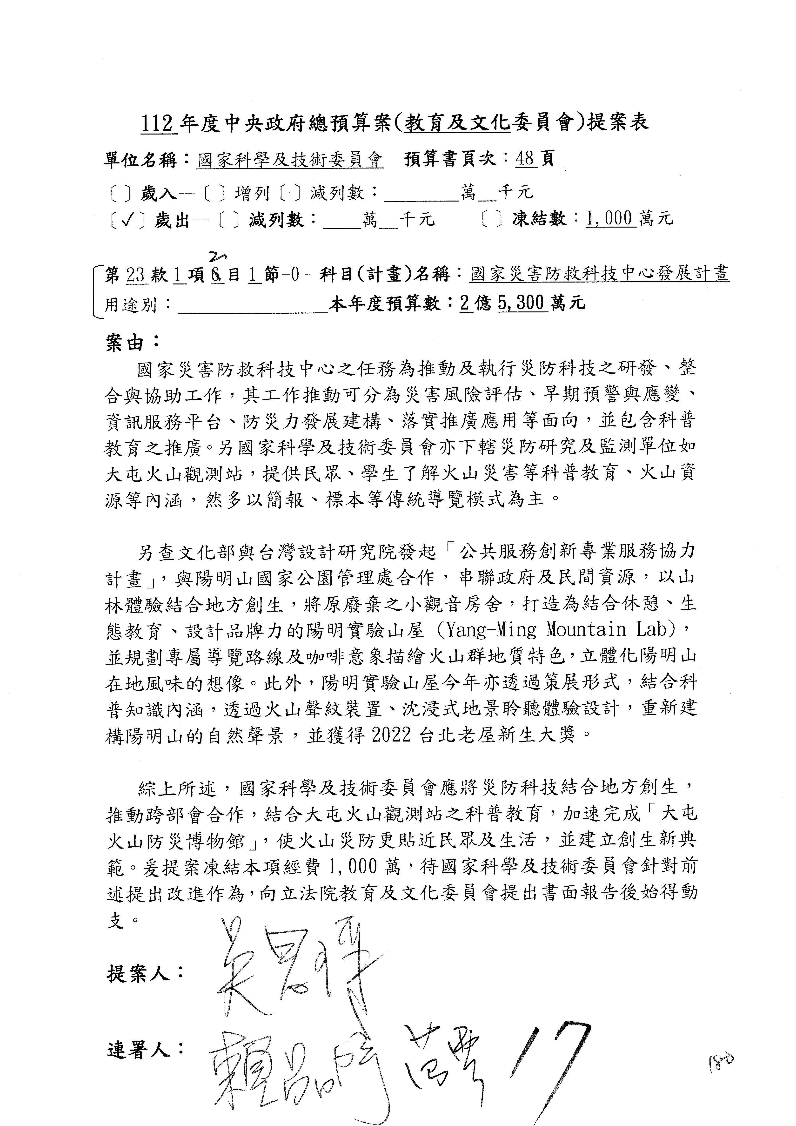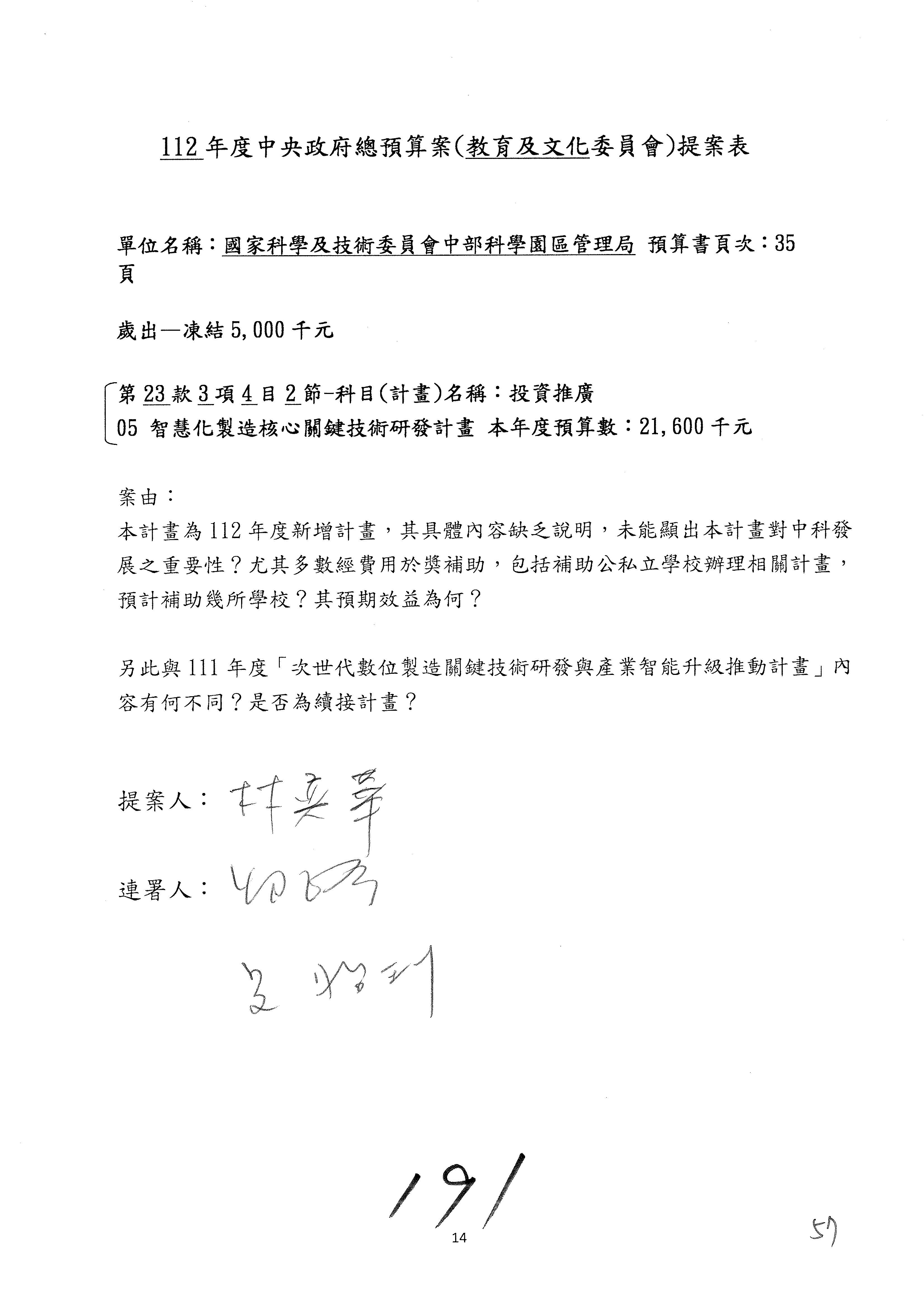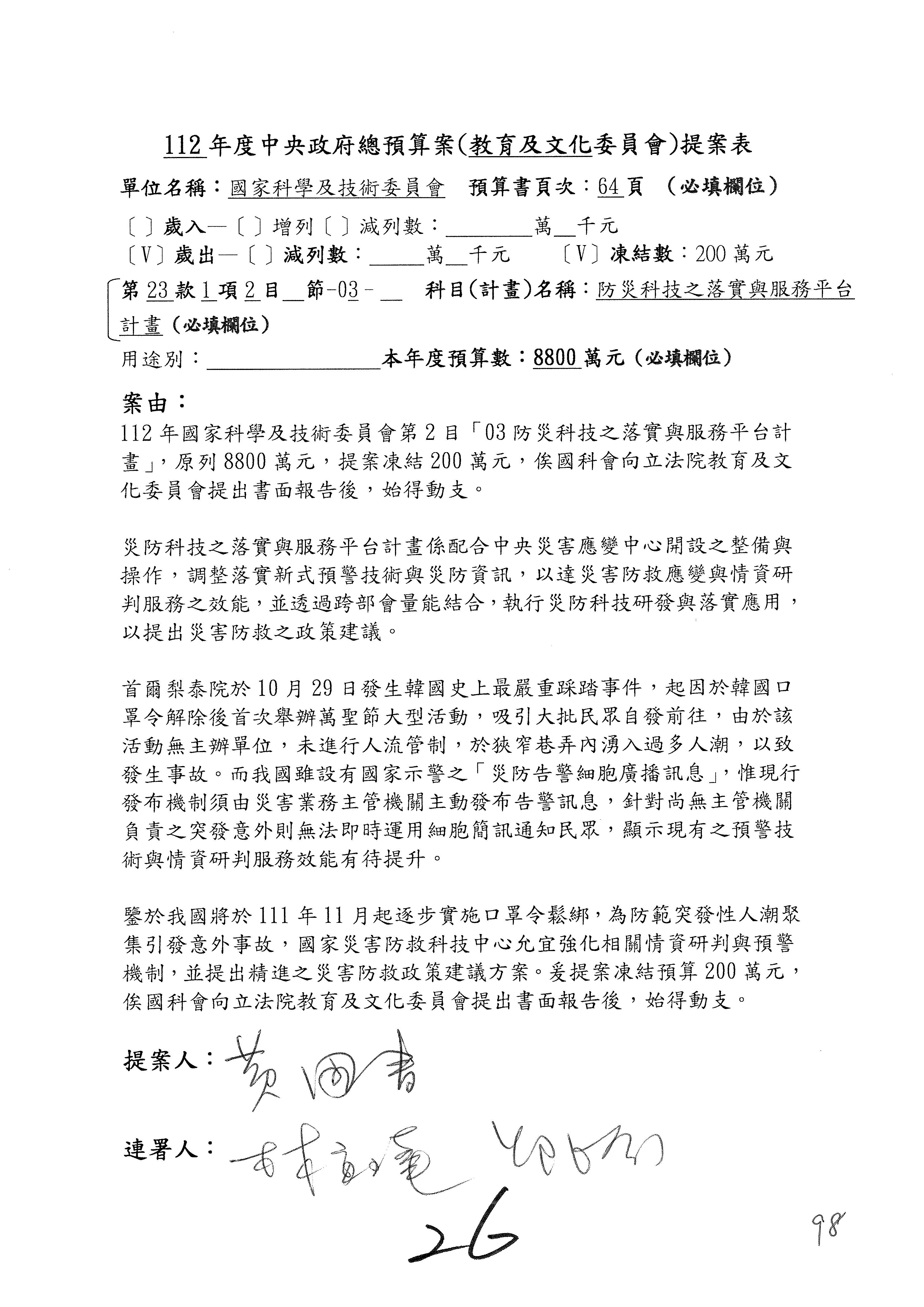 黃委員國書:我有兩案,第5案凍1,000萬元、第6案改主決議。