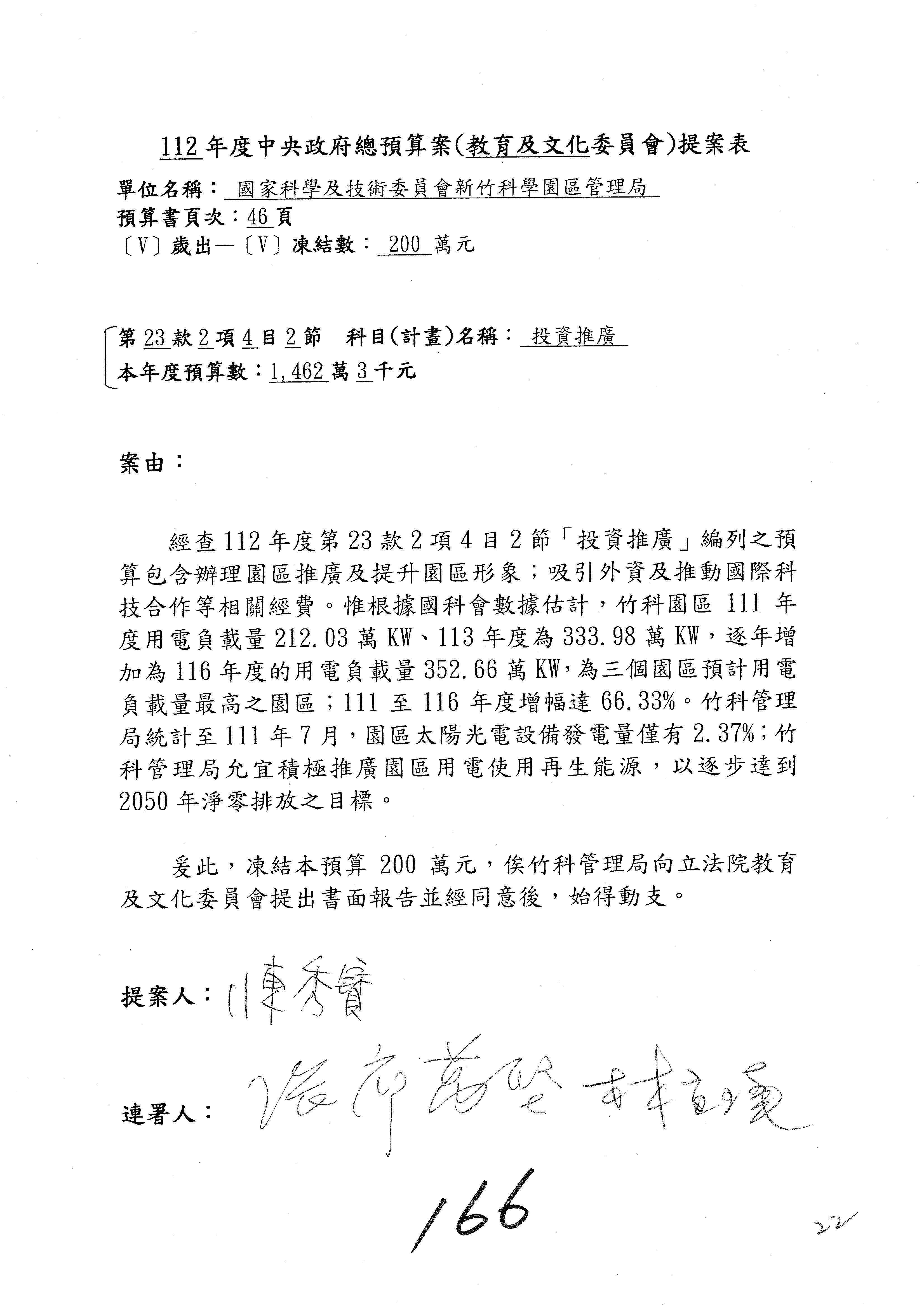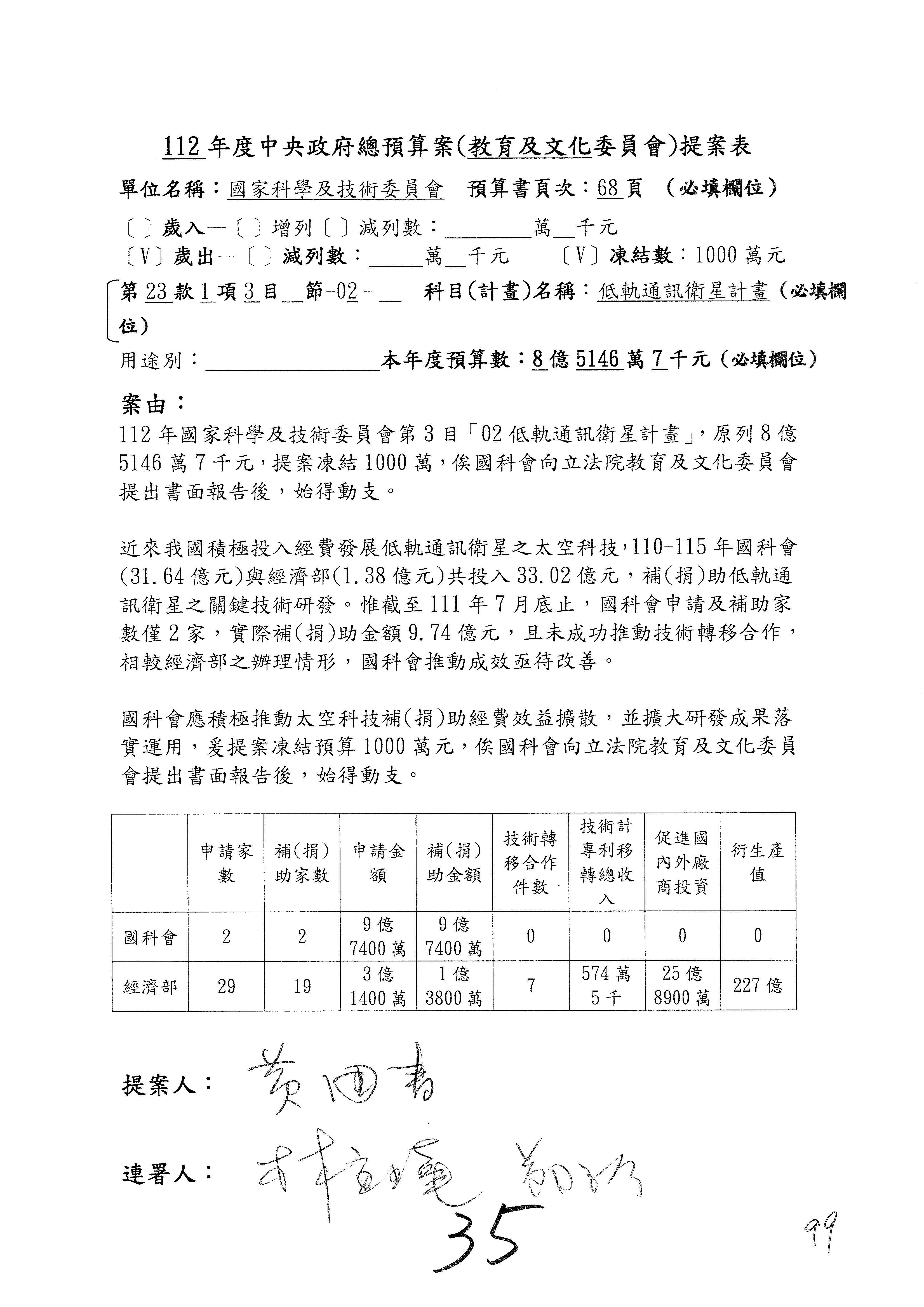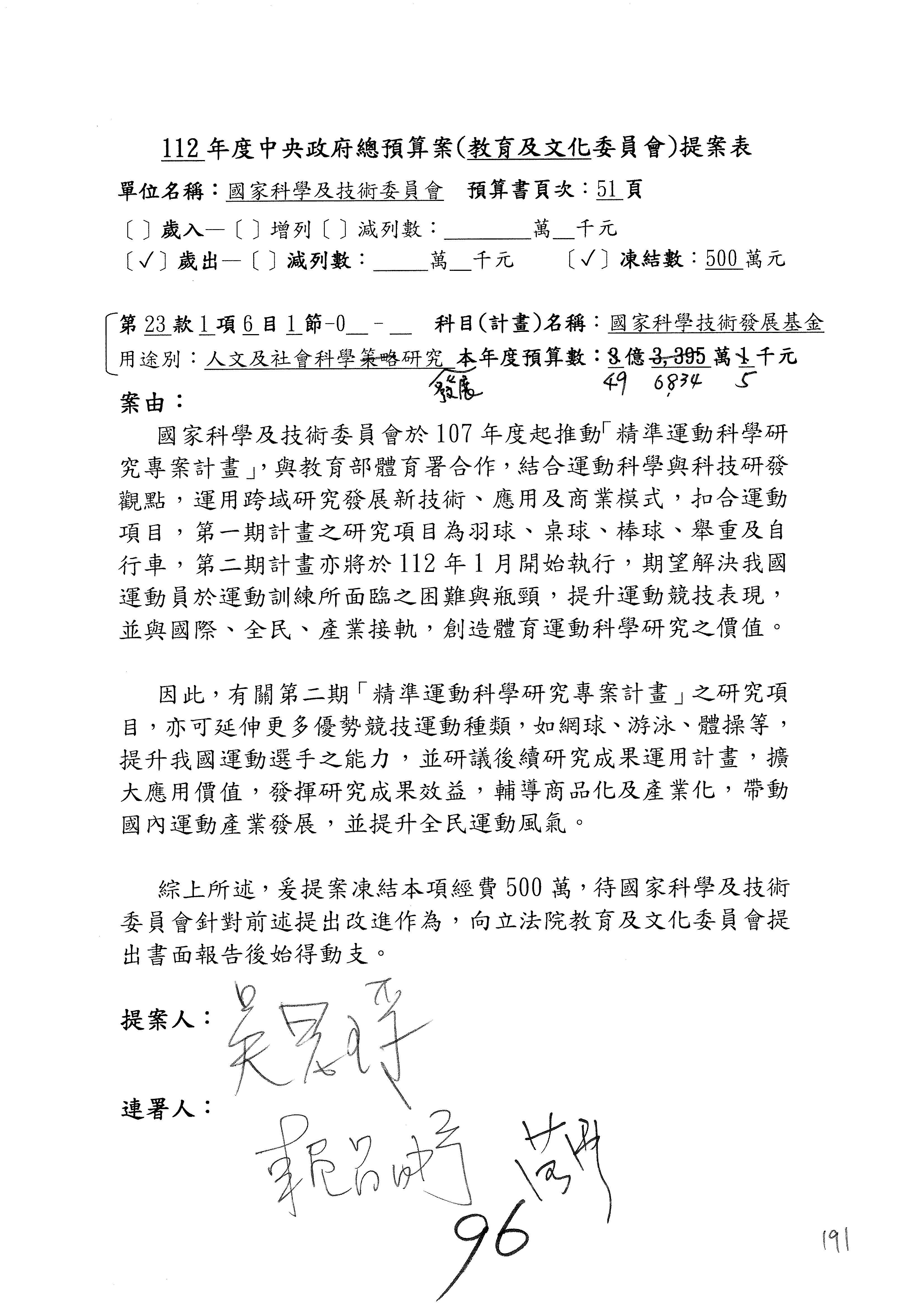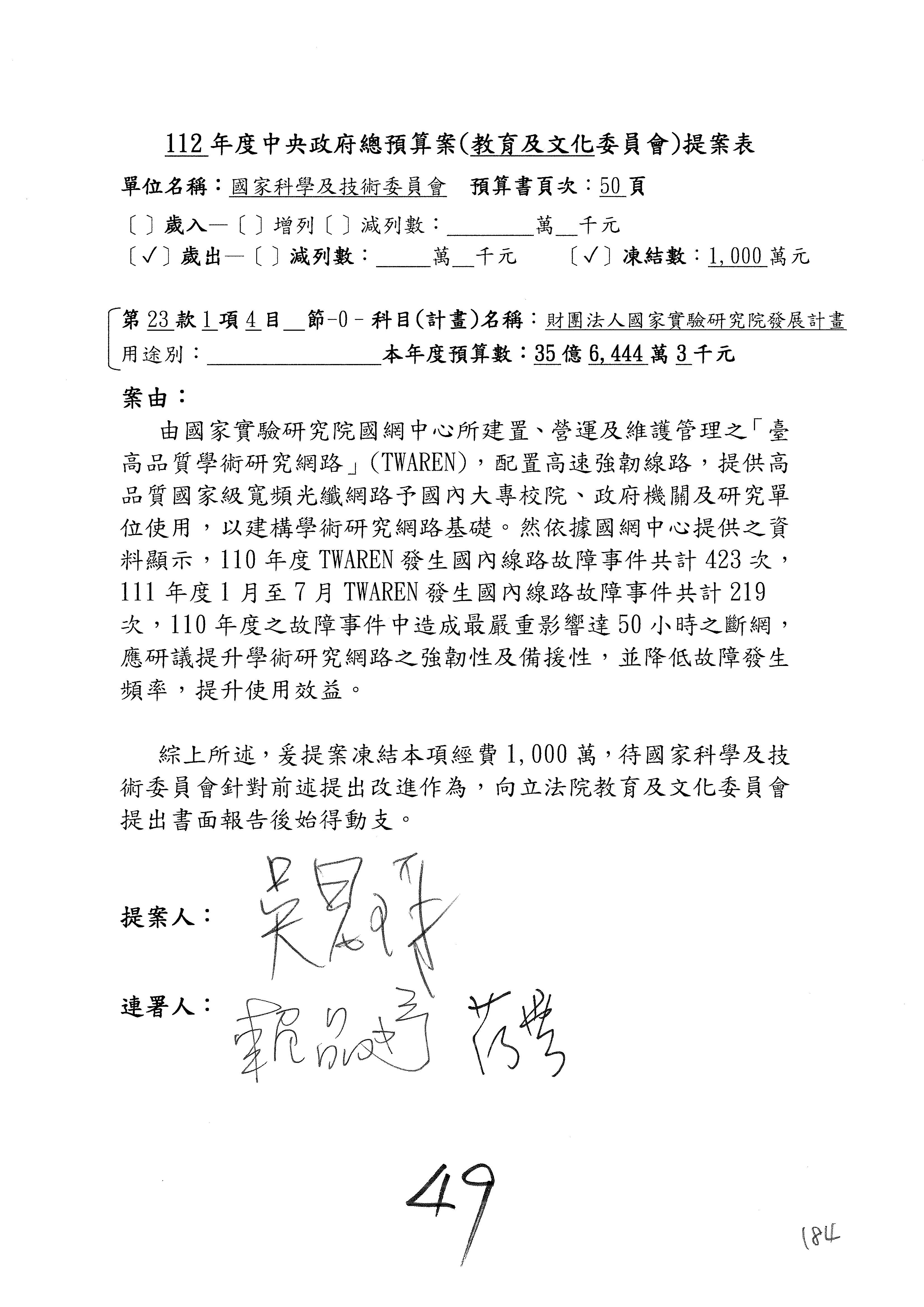黃委員國書:我有兩案,第5案凍1,000萬元、第6案改主決議。