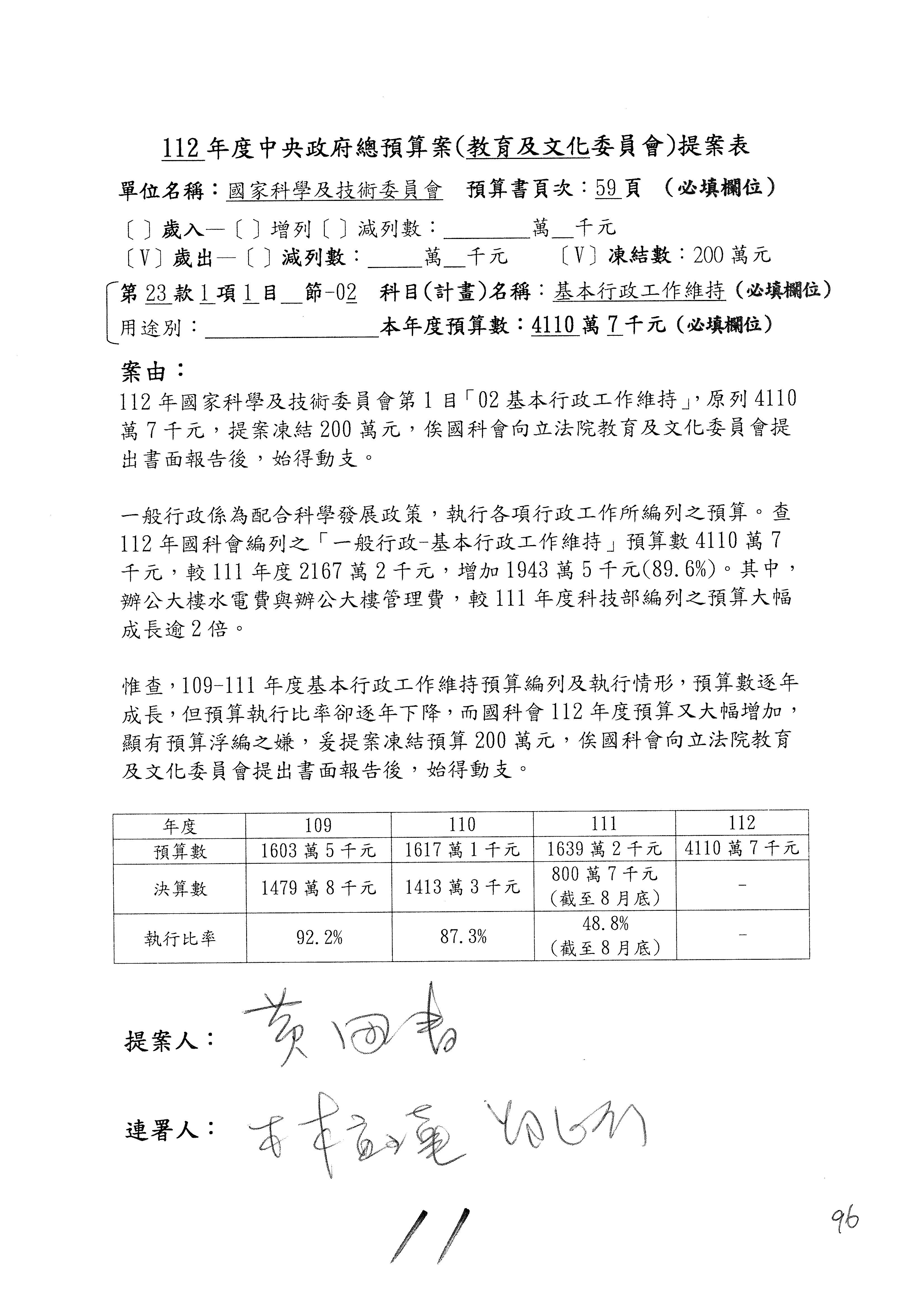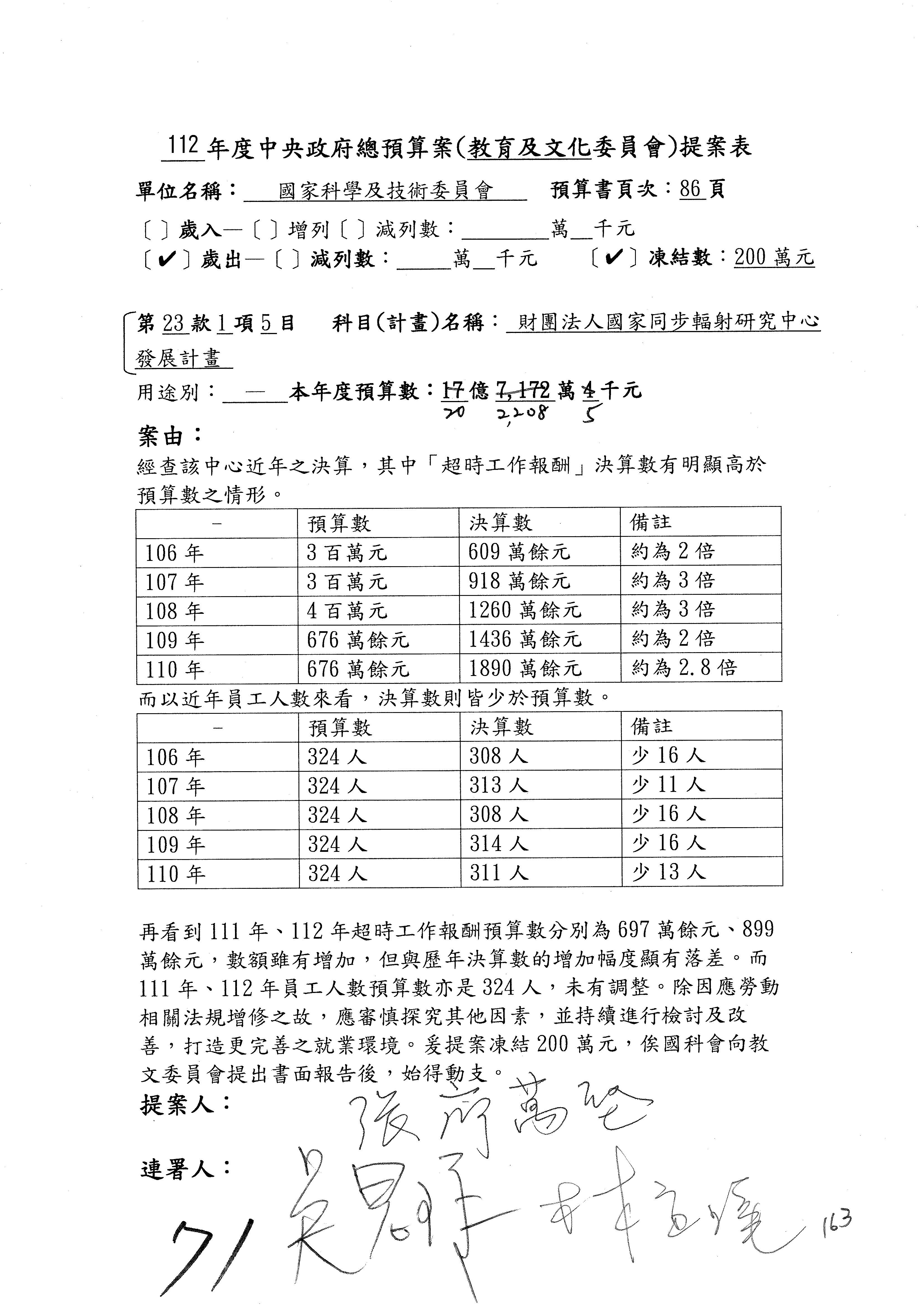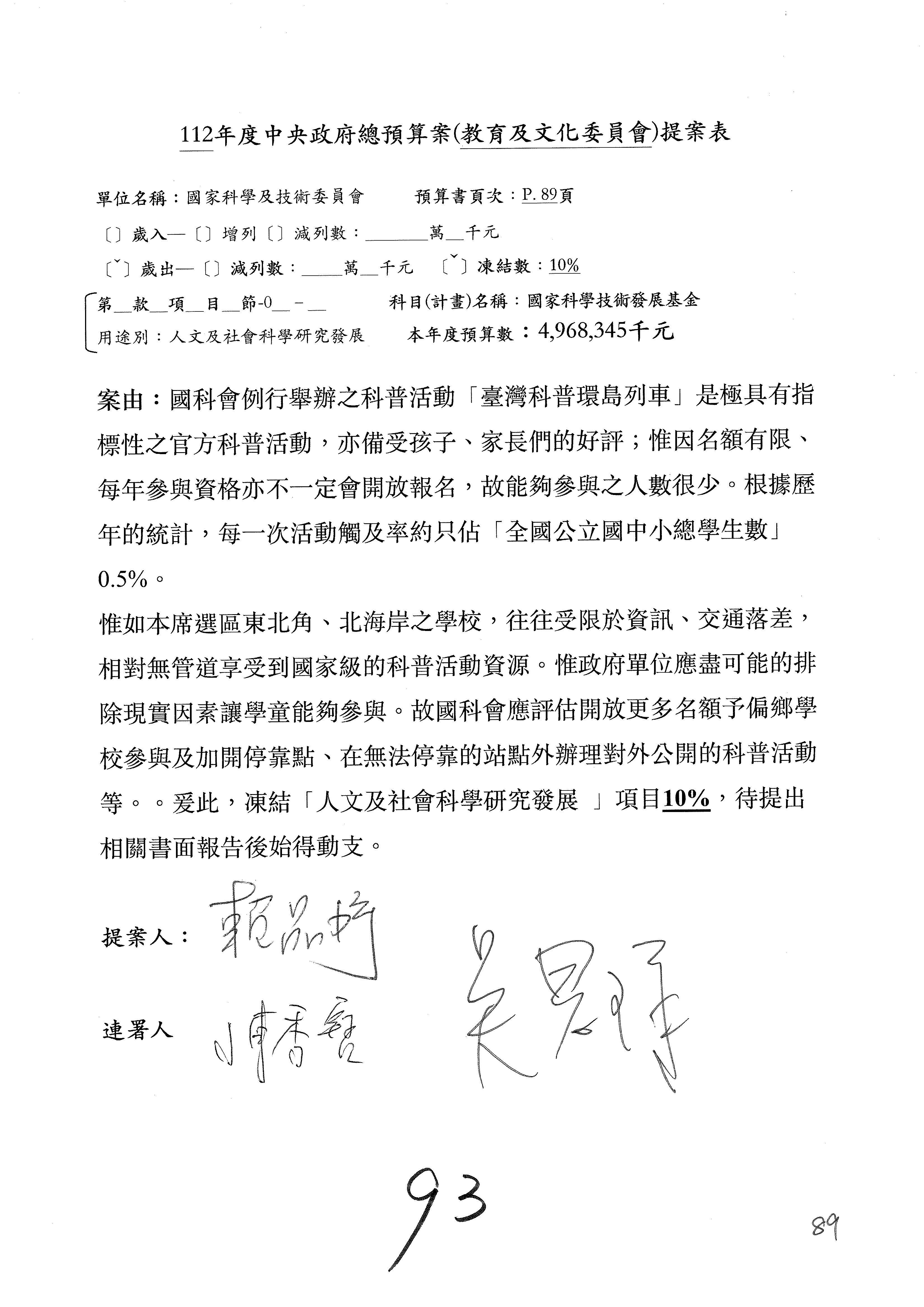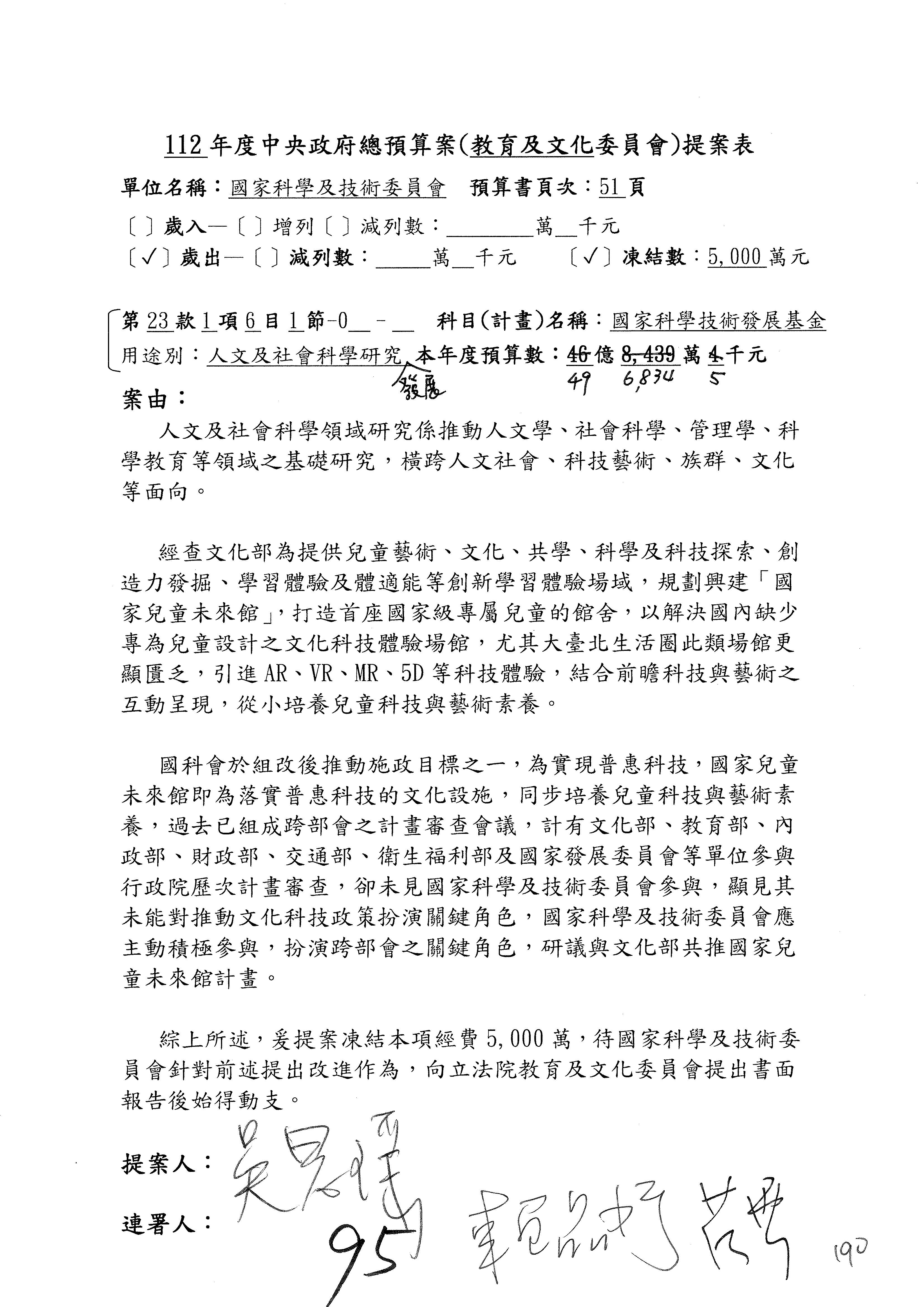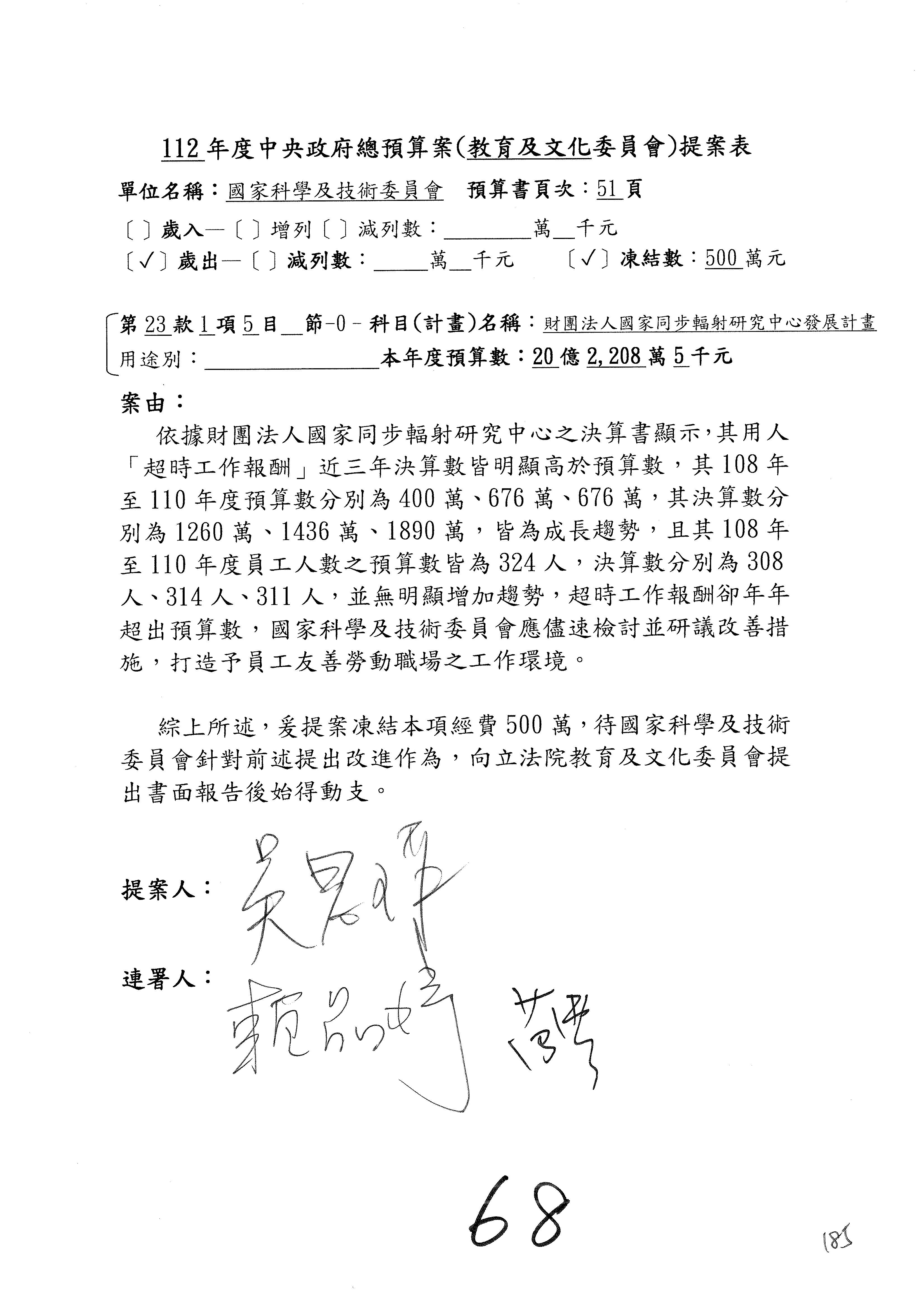 黃委員國書:我有兩案,第5案凍1,000萬元、第6案改主決議。