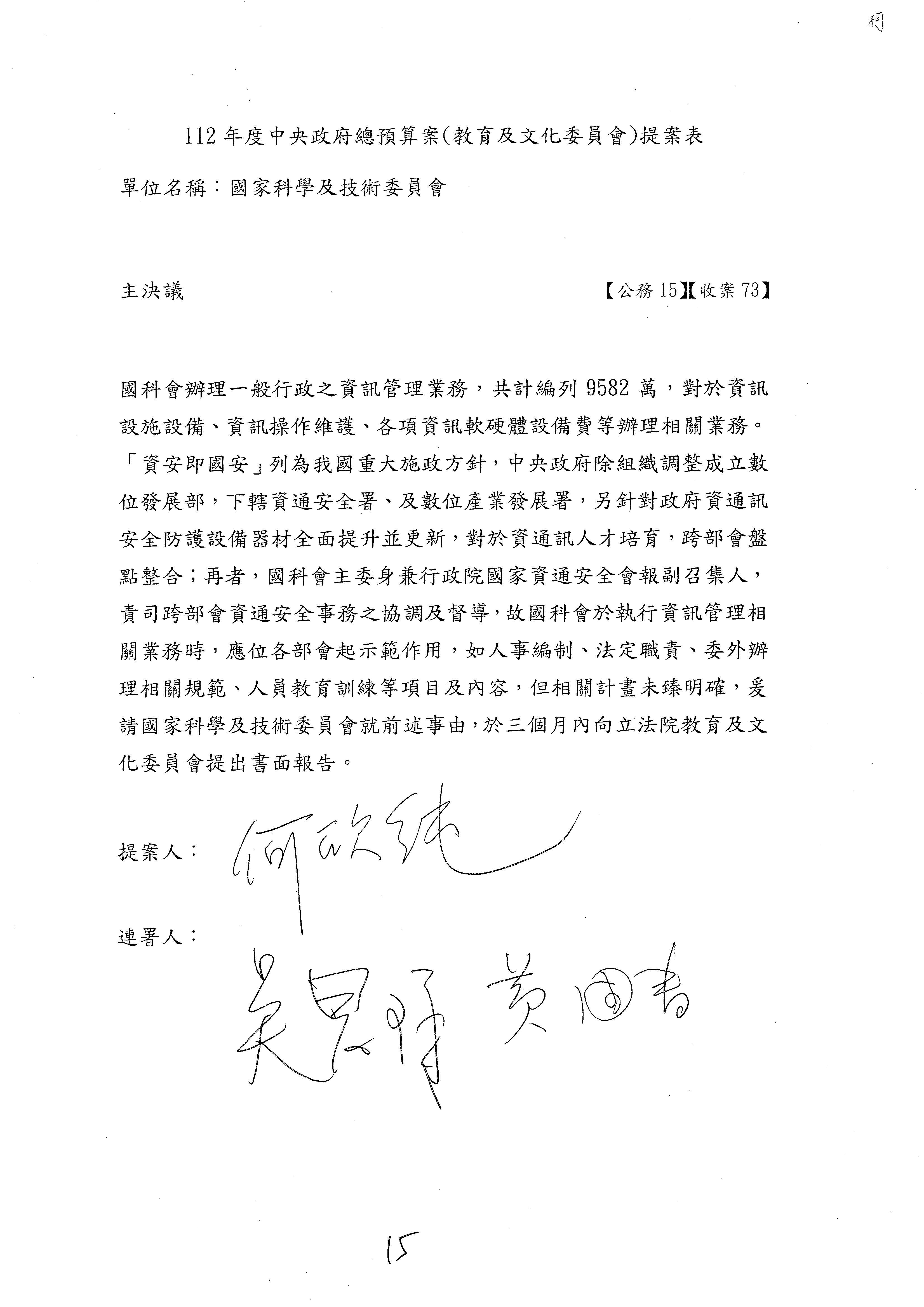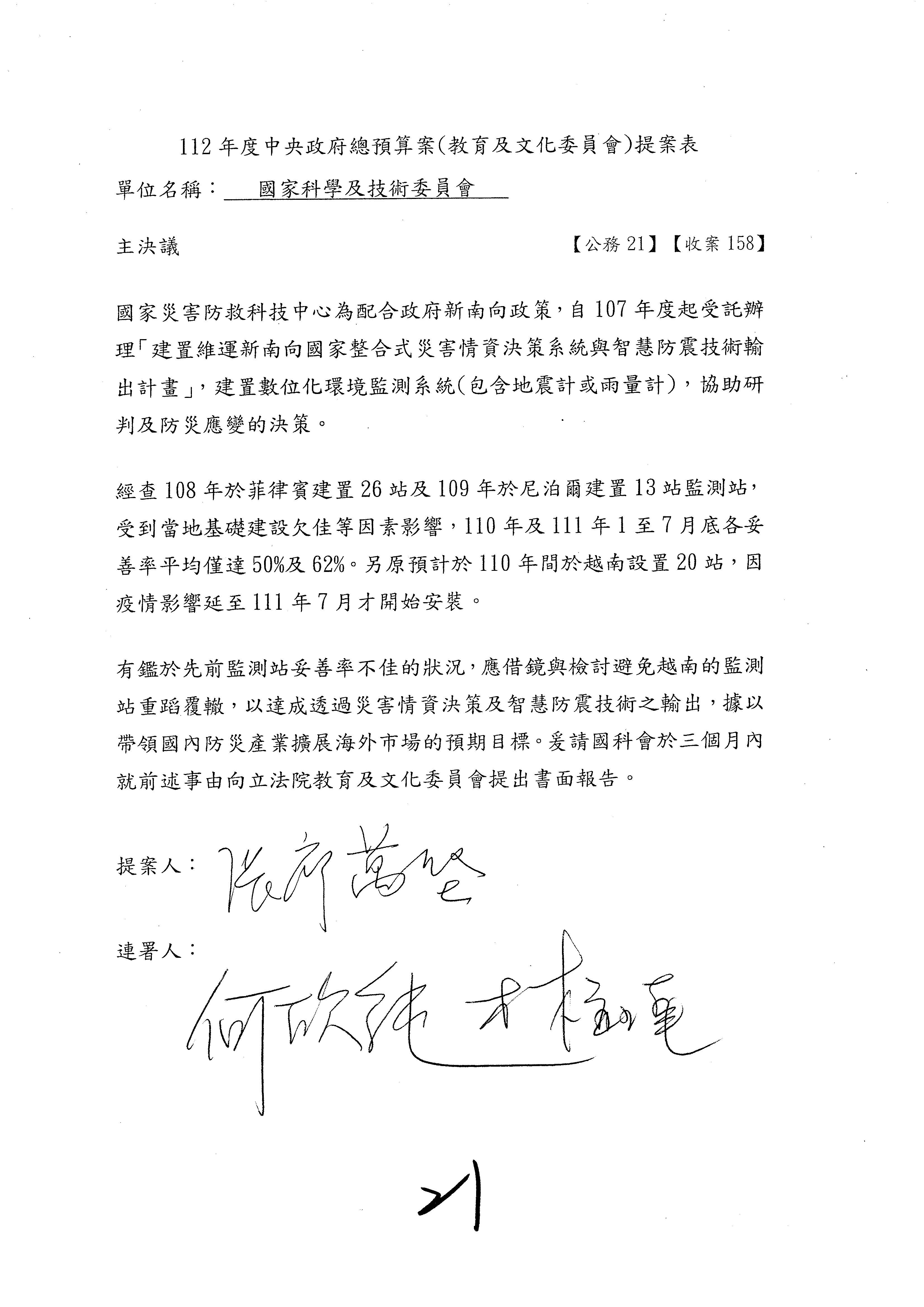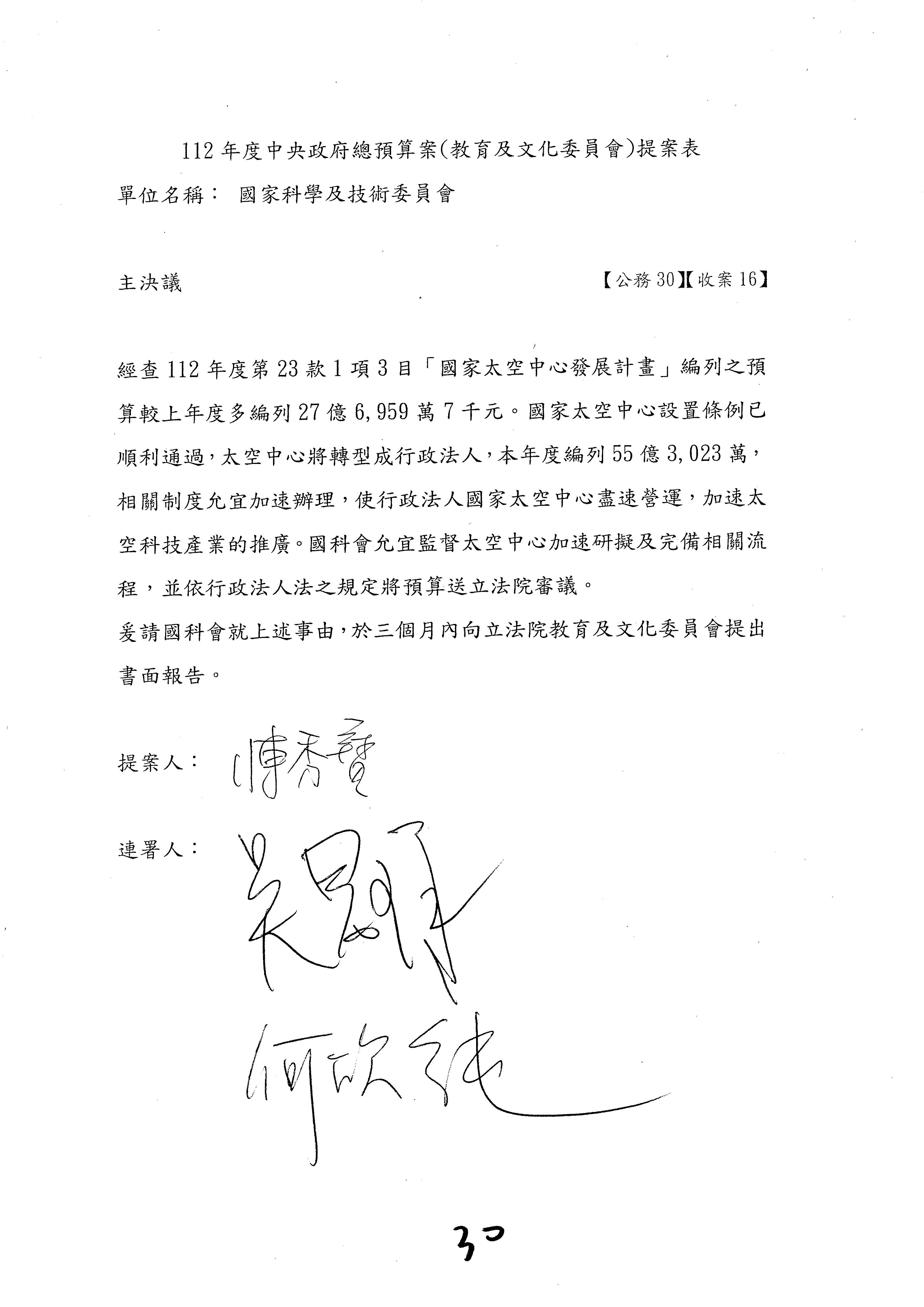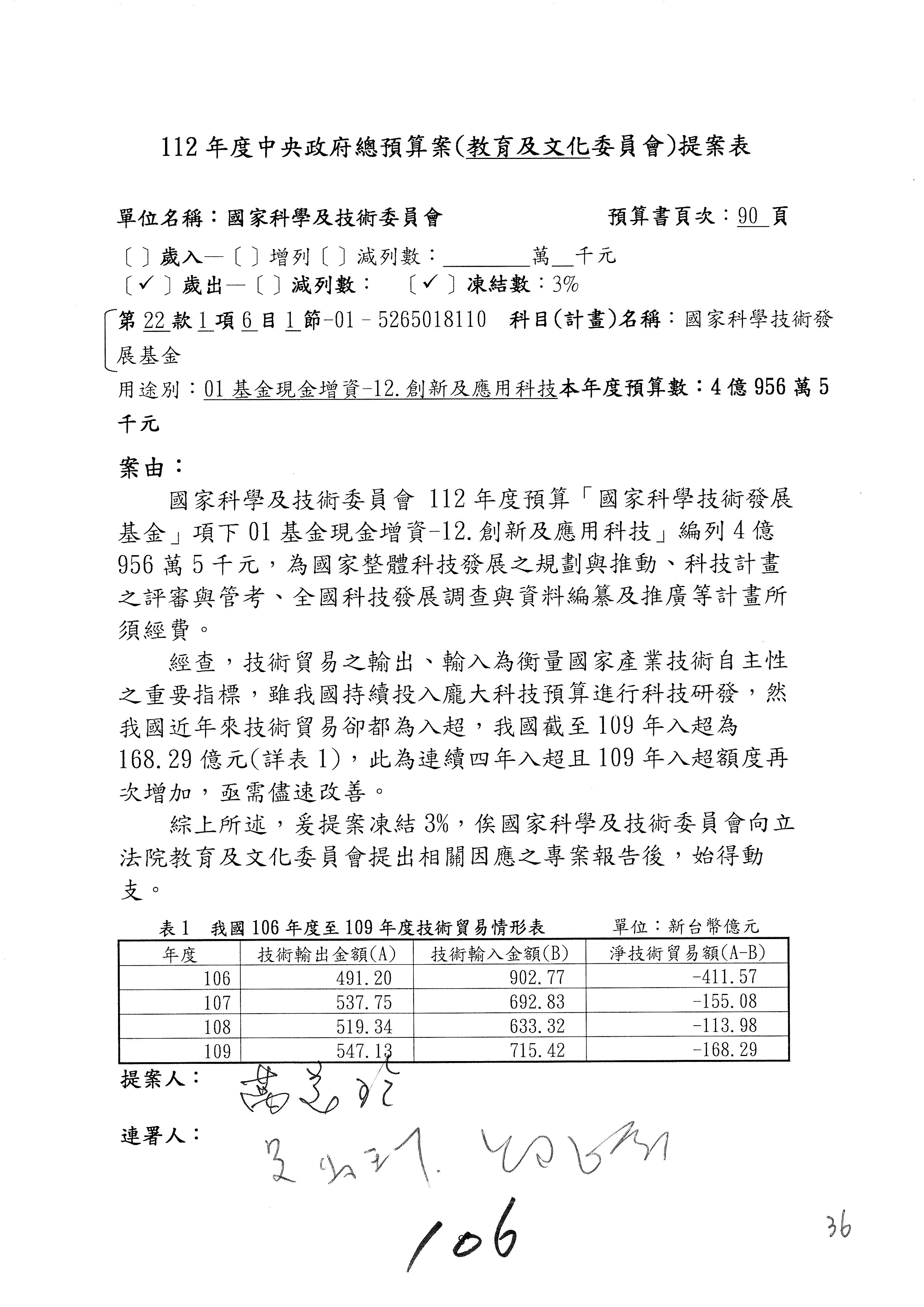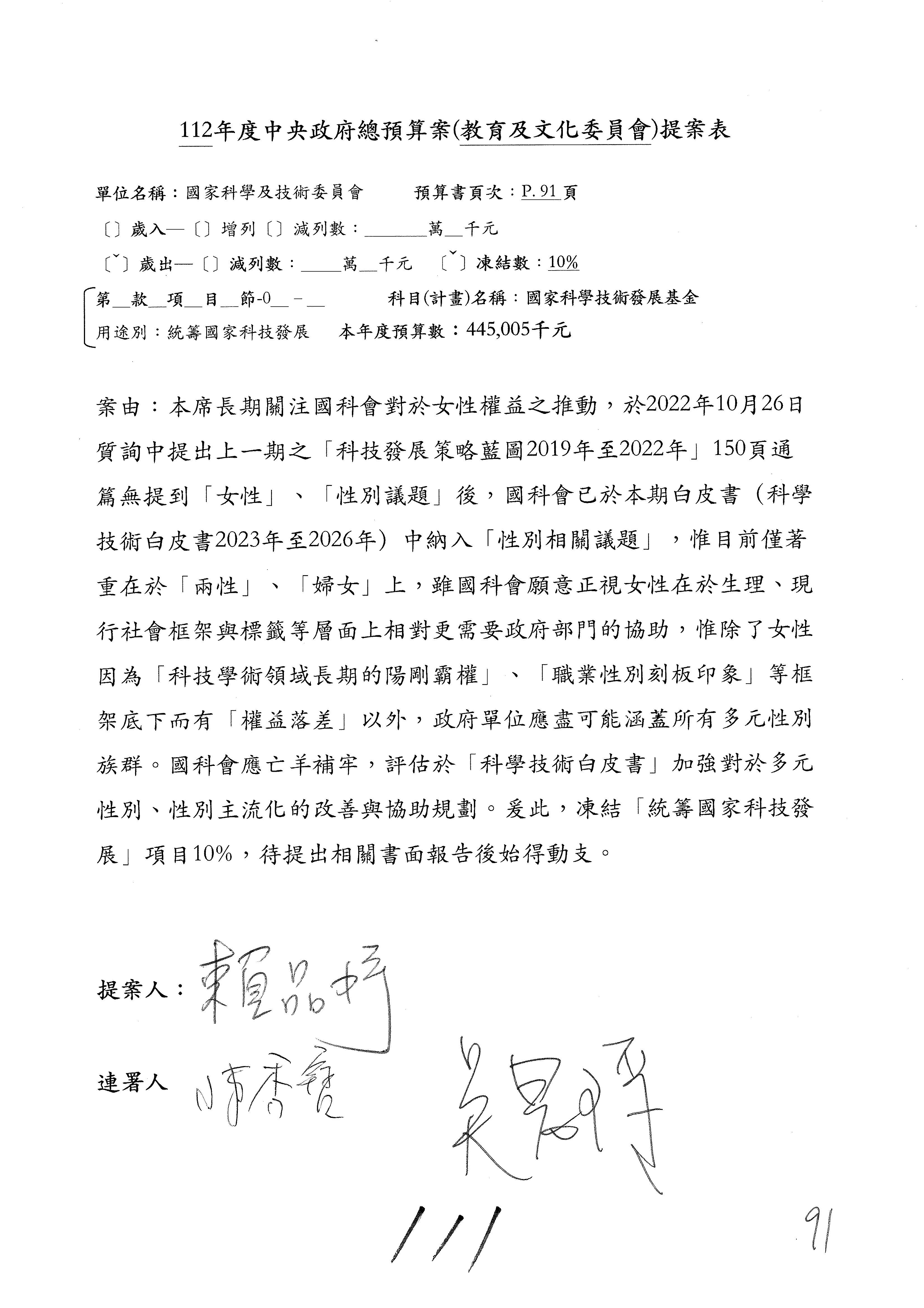 一、中華民國112年度中央政府總預算案審查國家科學及技術委員會收支部分