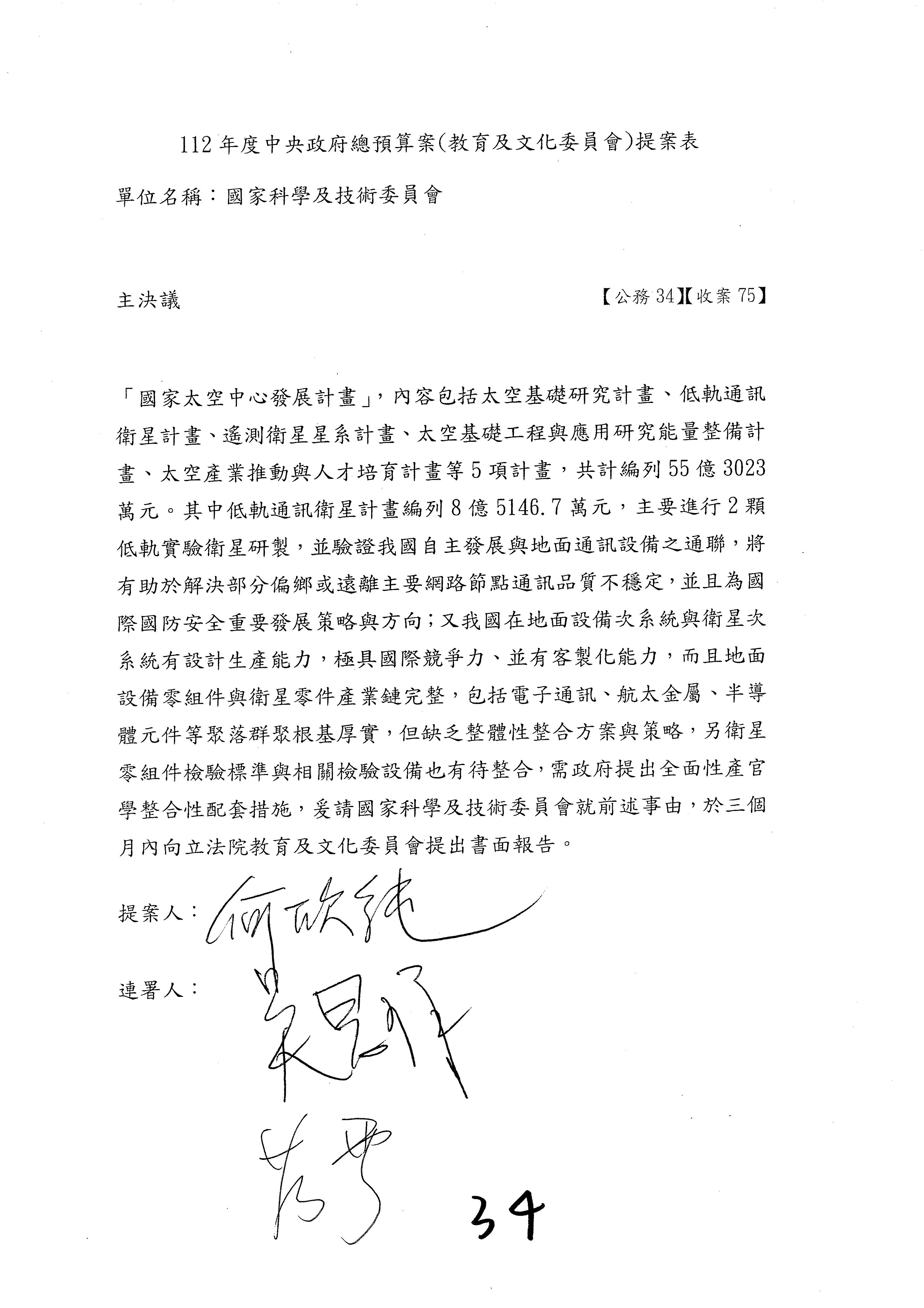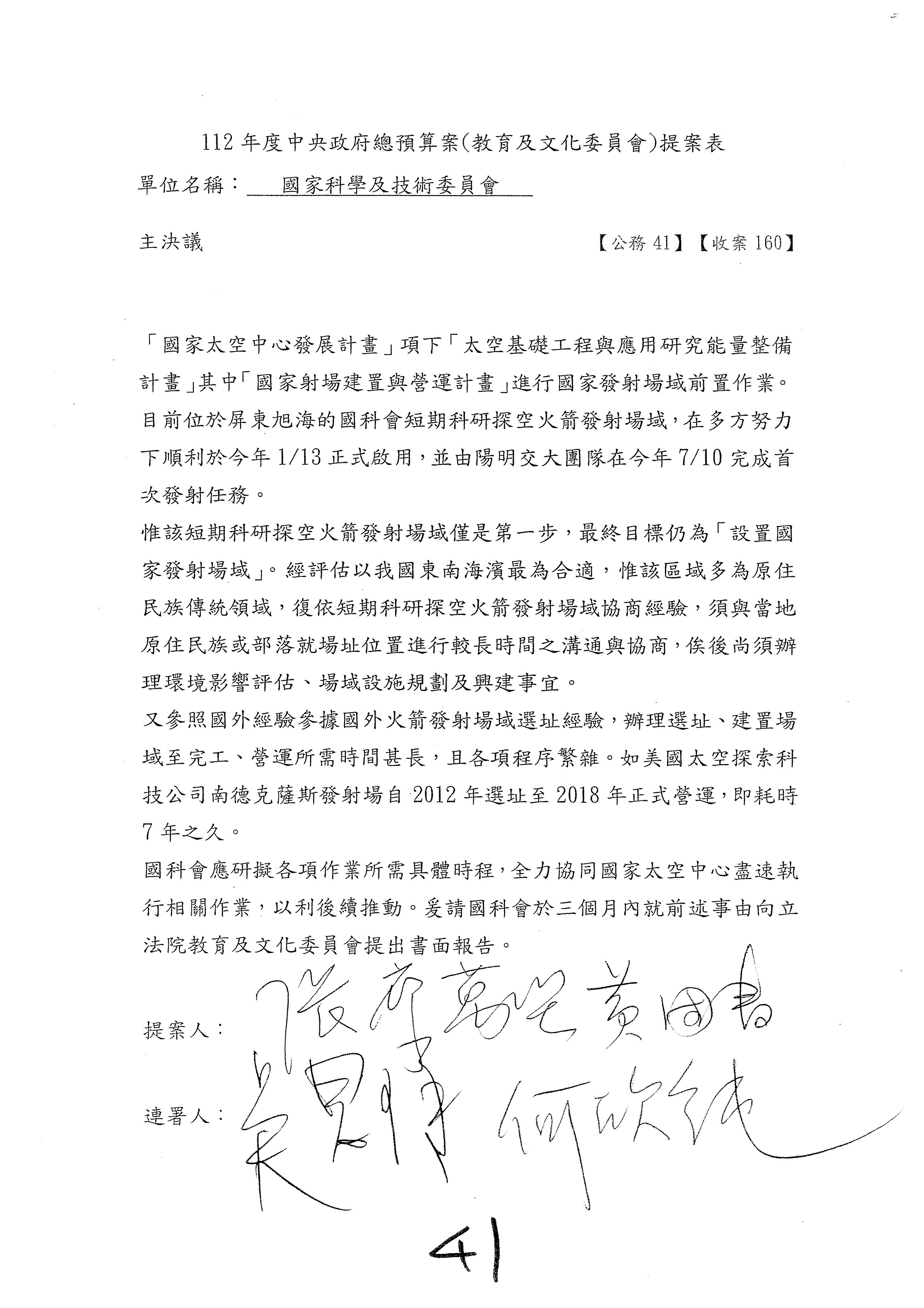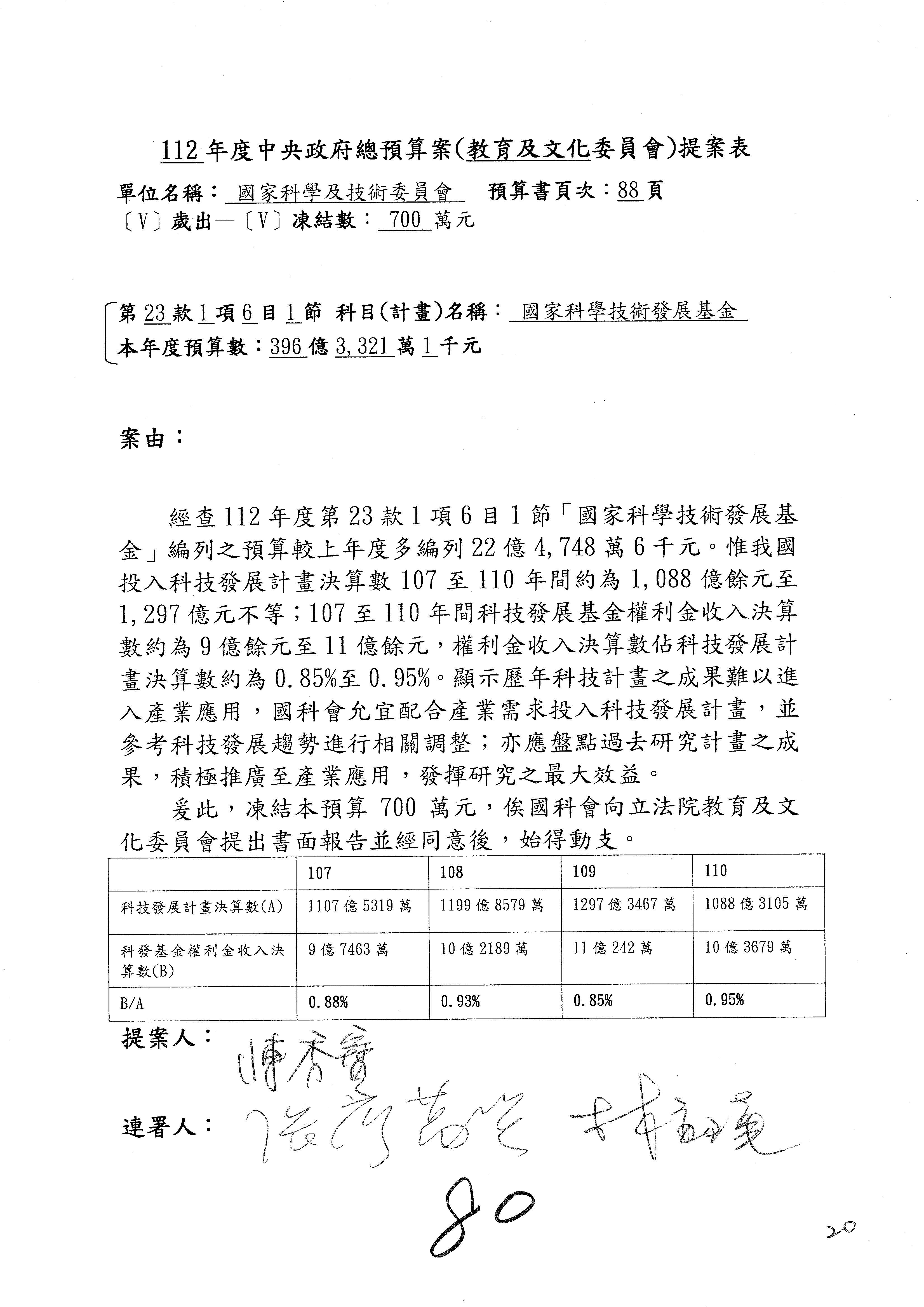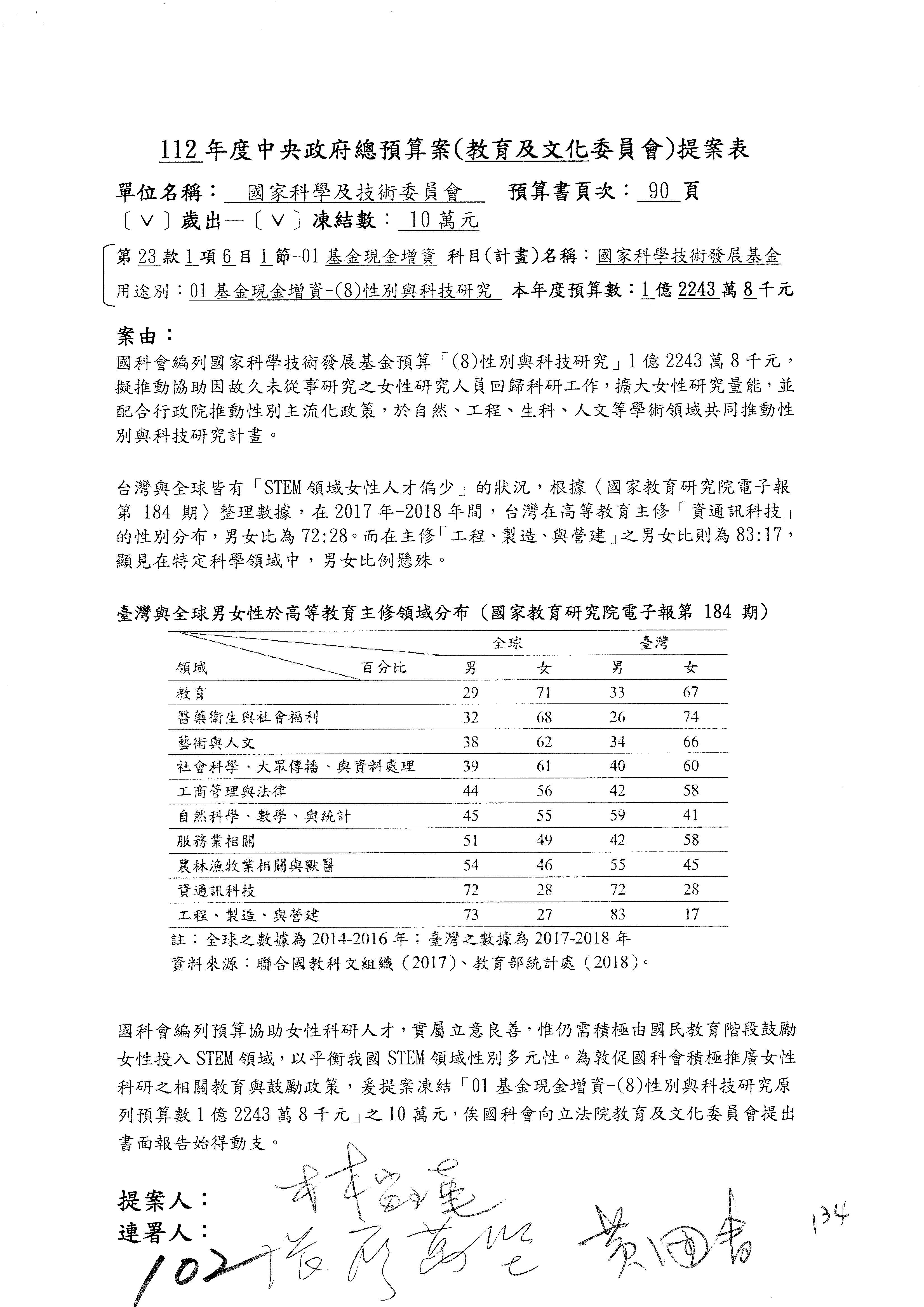 一、中華民國112年度中央政府總預算案審查國家科學及技術委員會收支部分