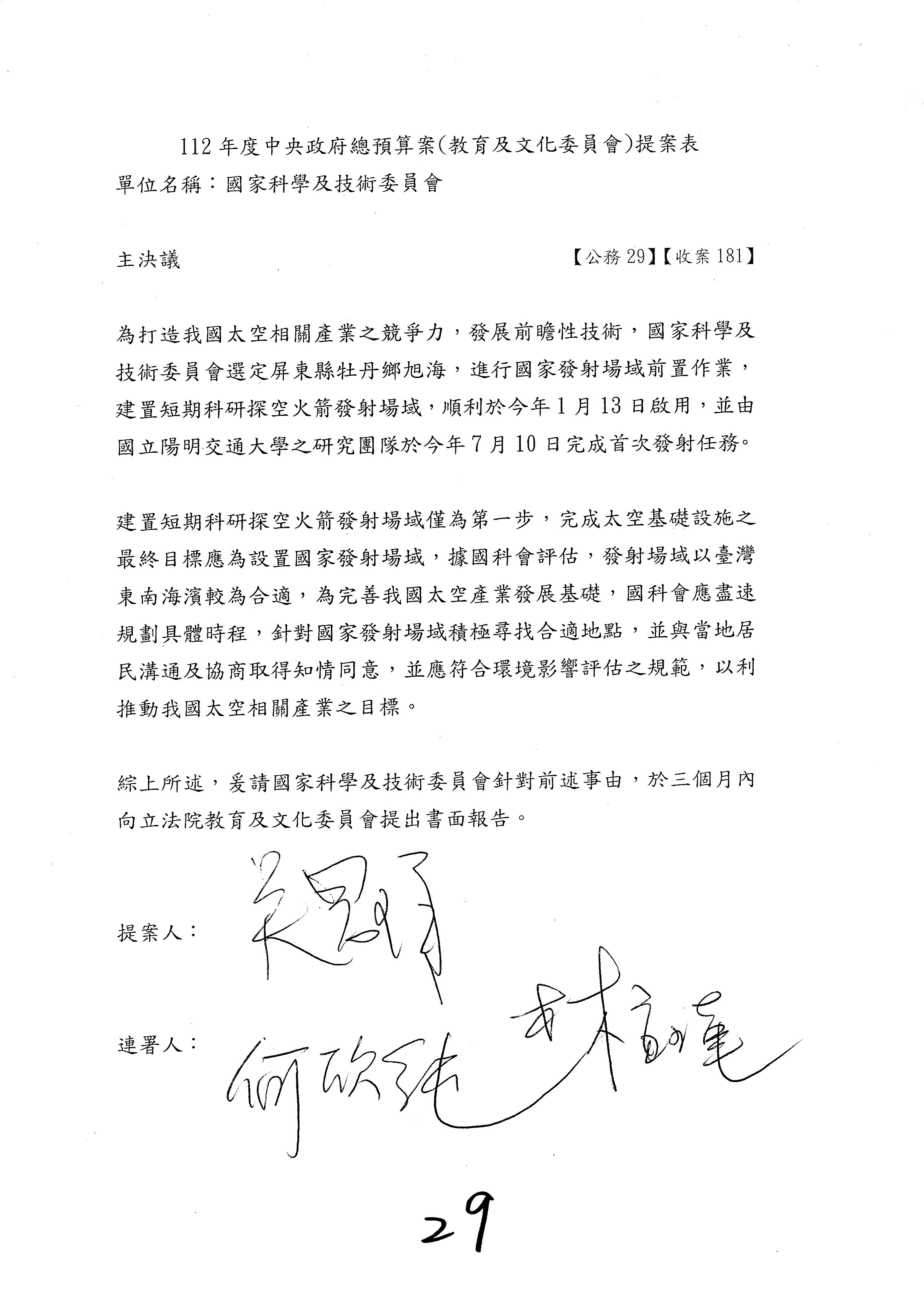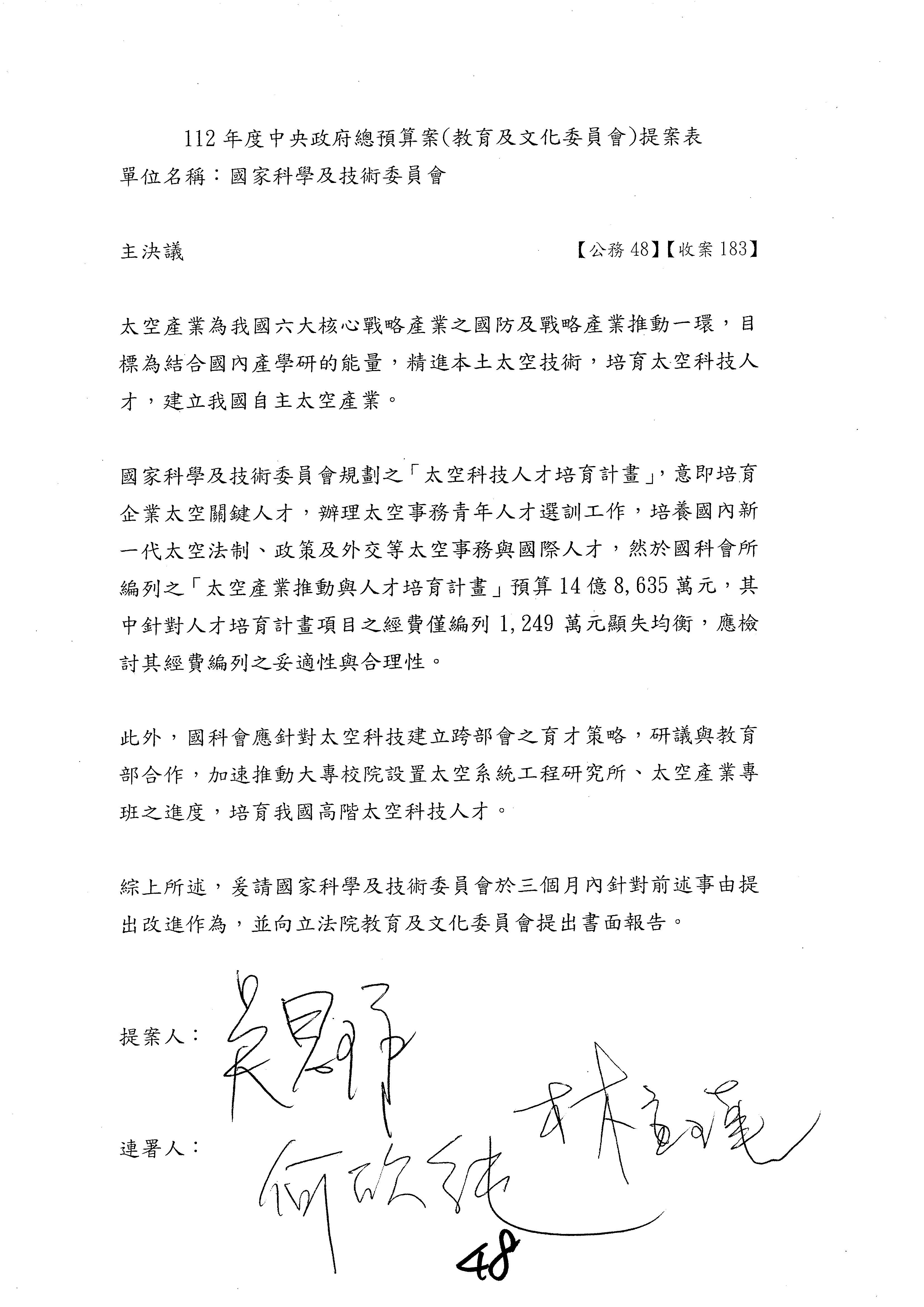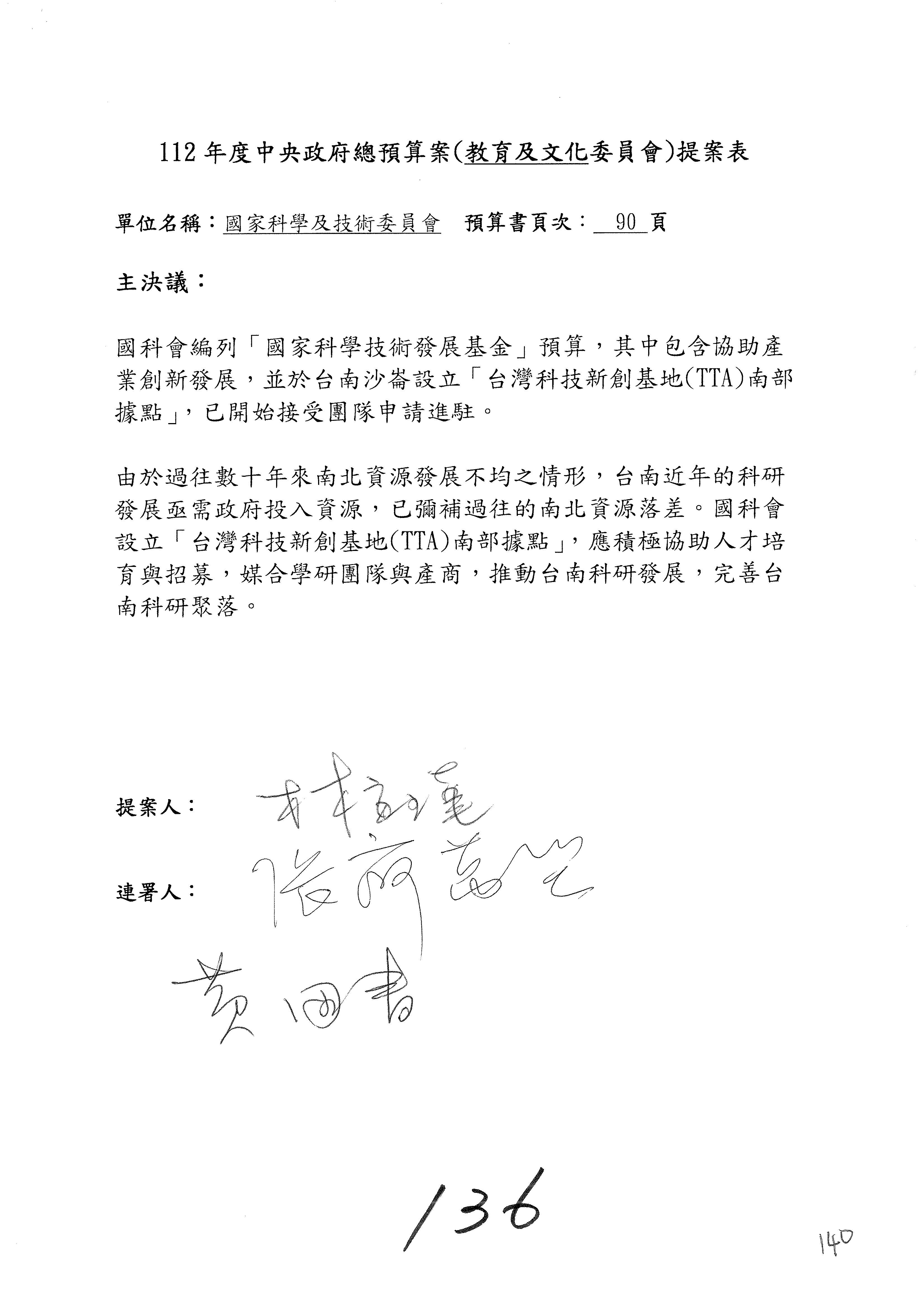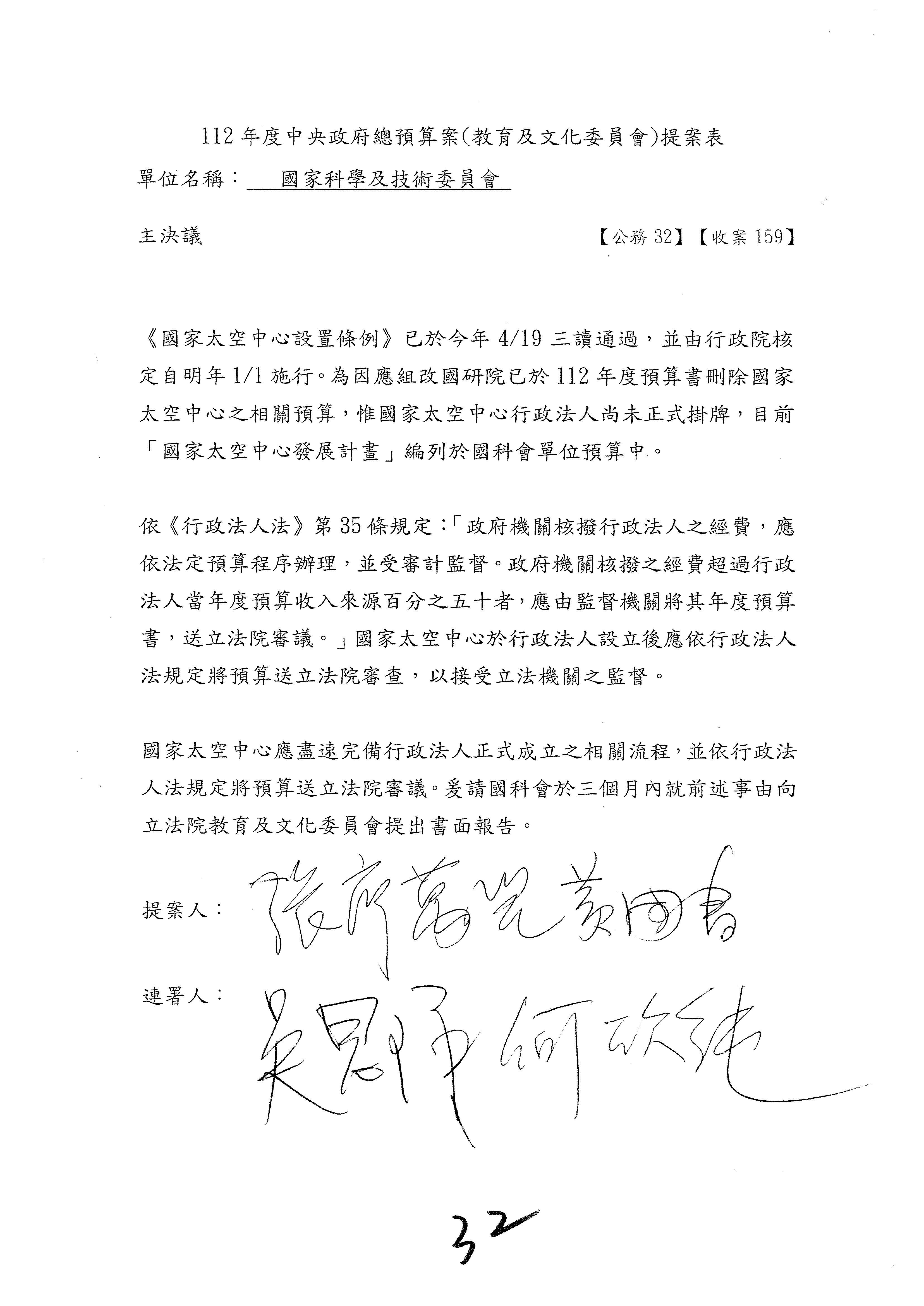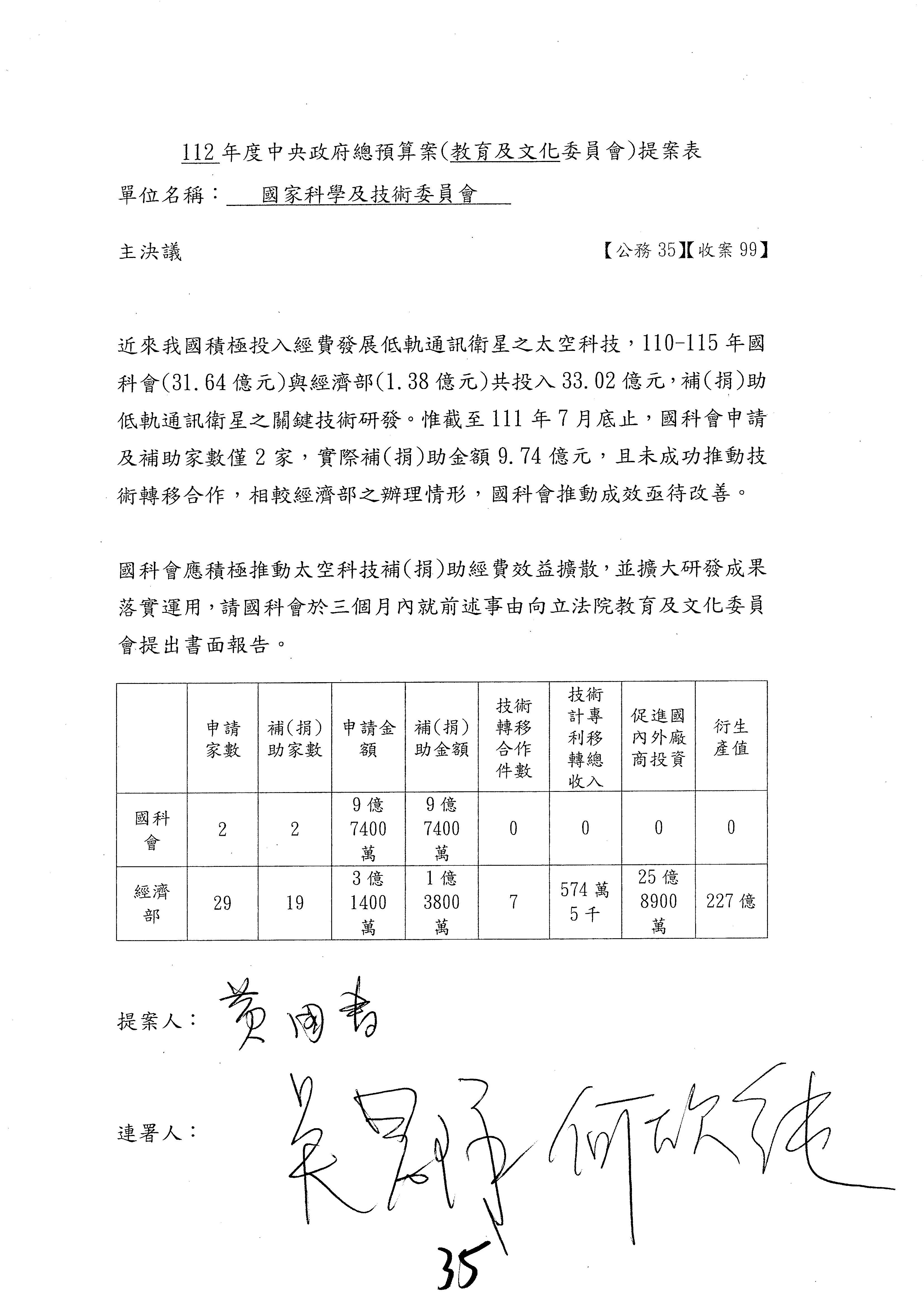一、中華民國112年度中央政府總預算案審查國家科學及技術委員會收支部分