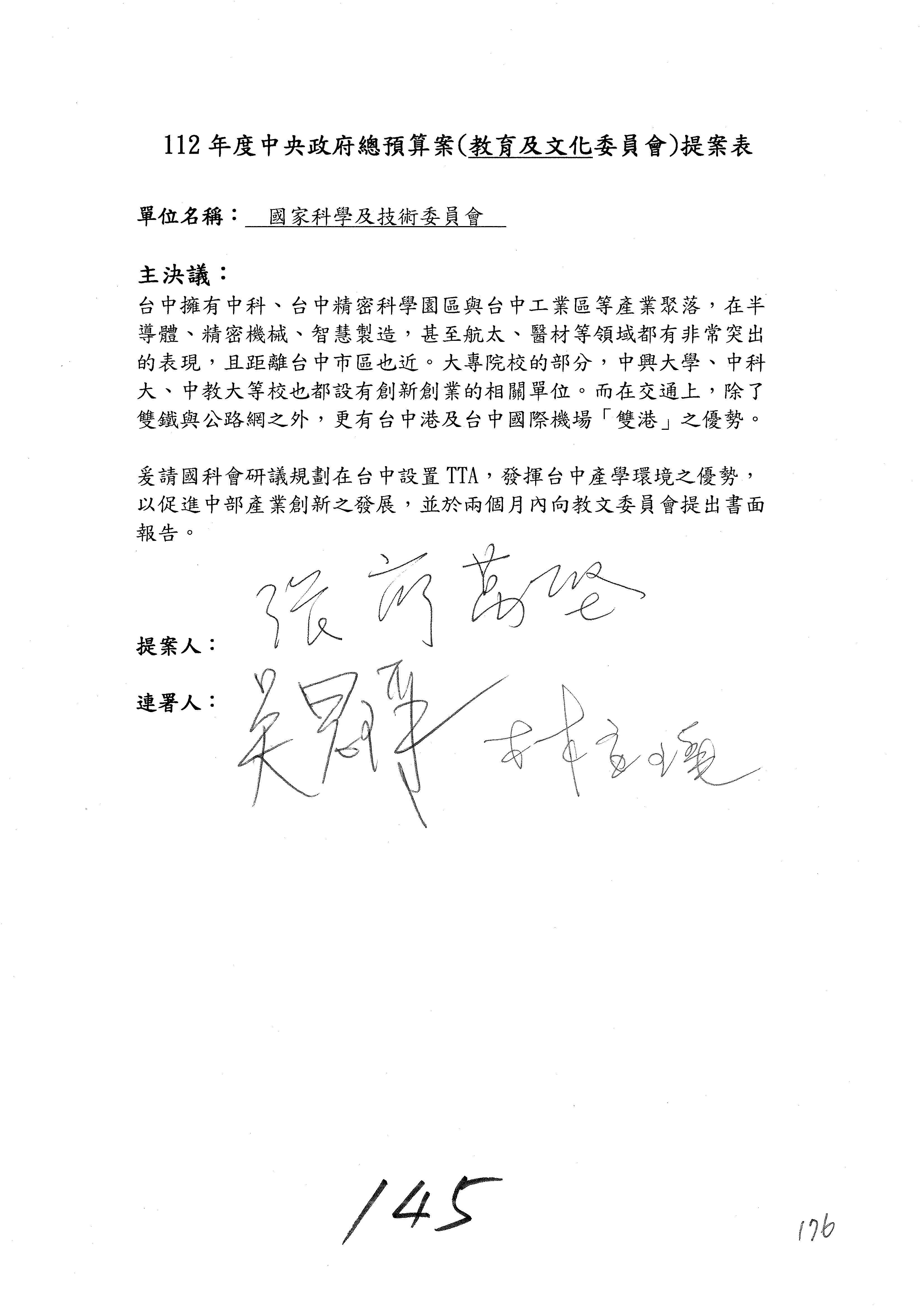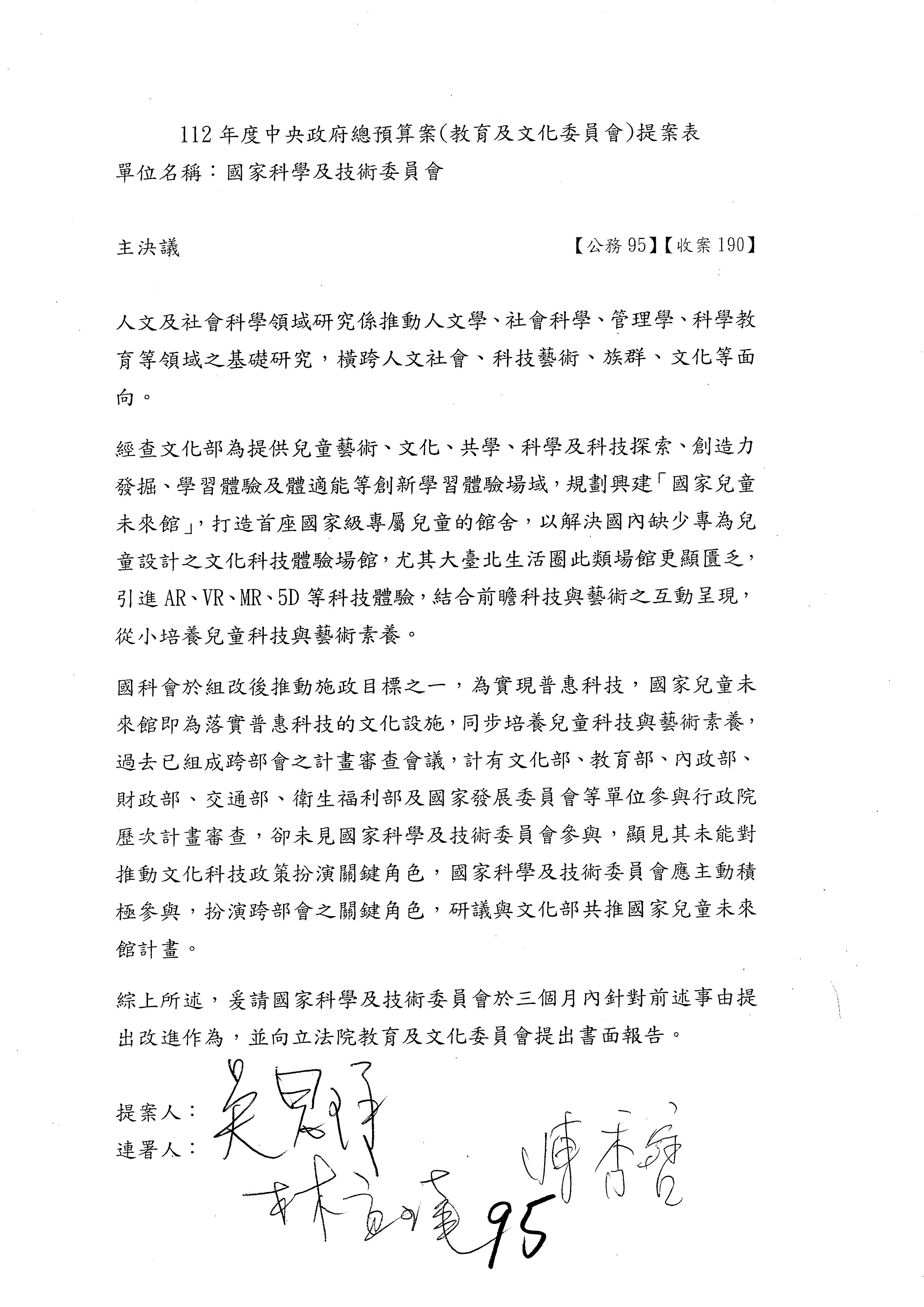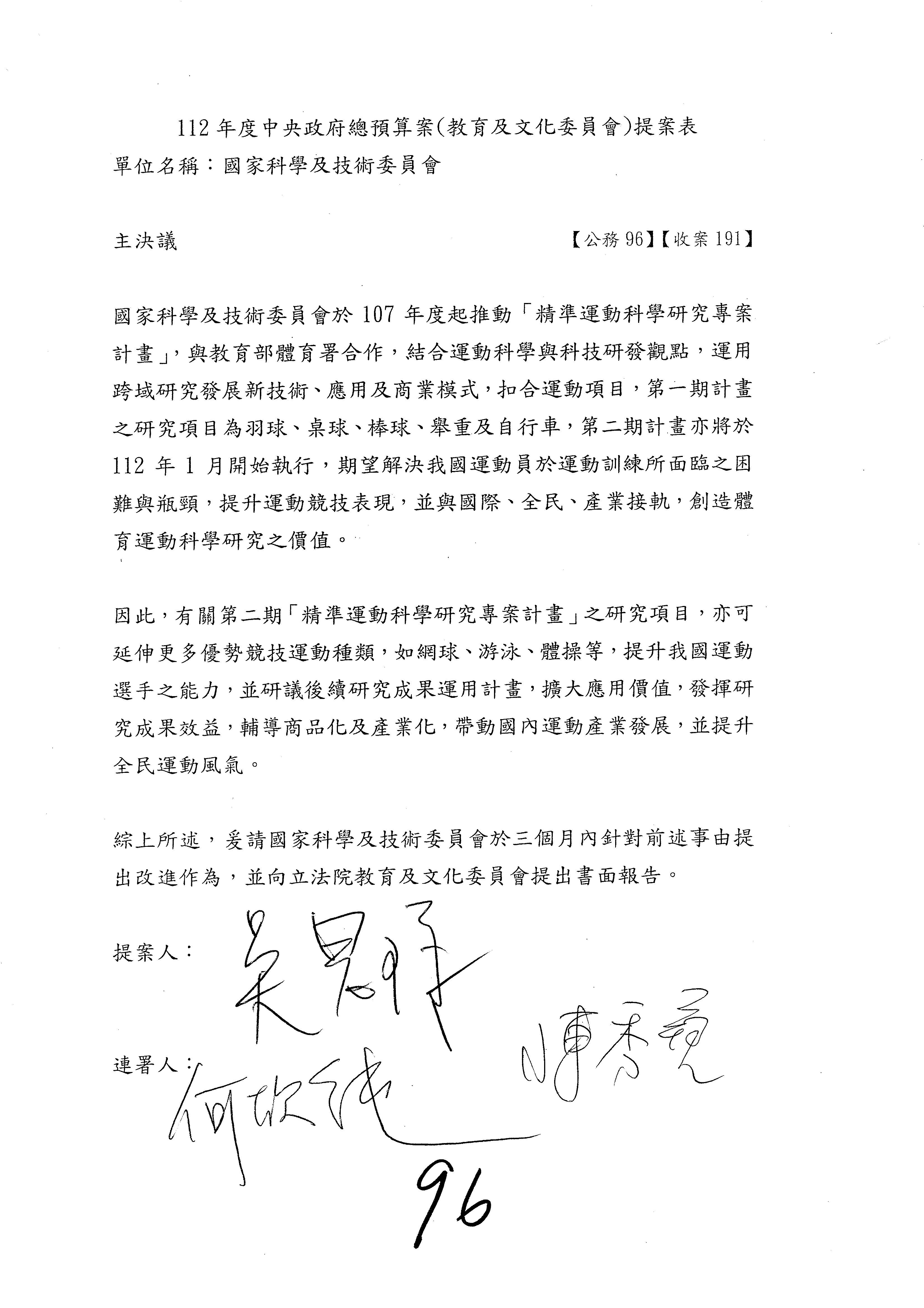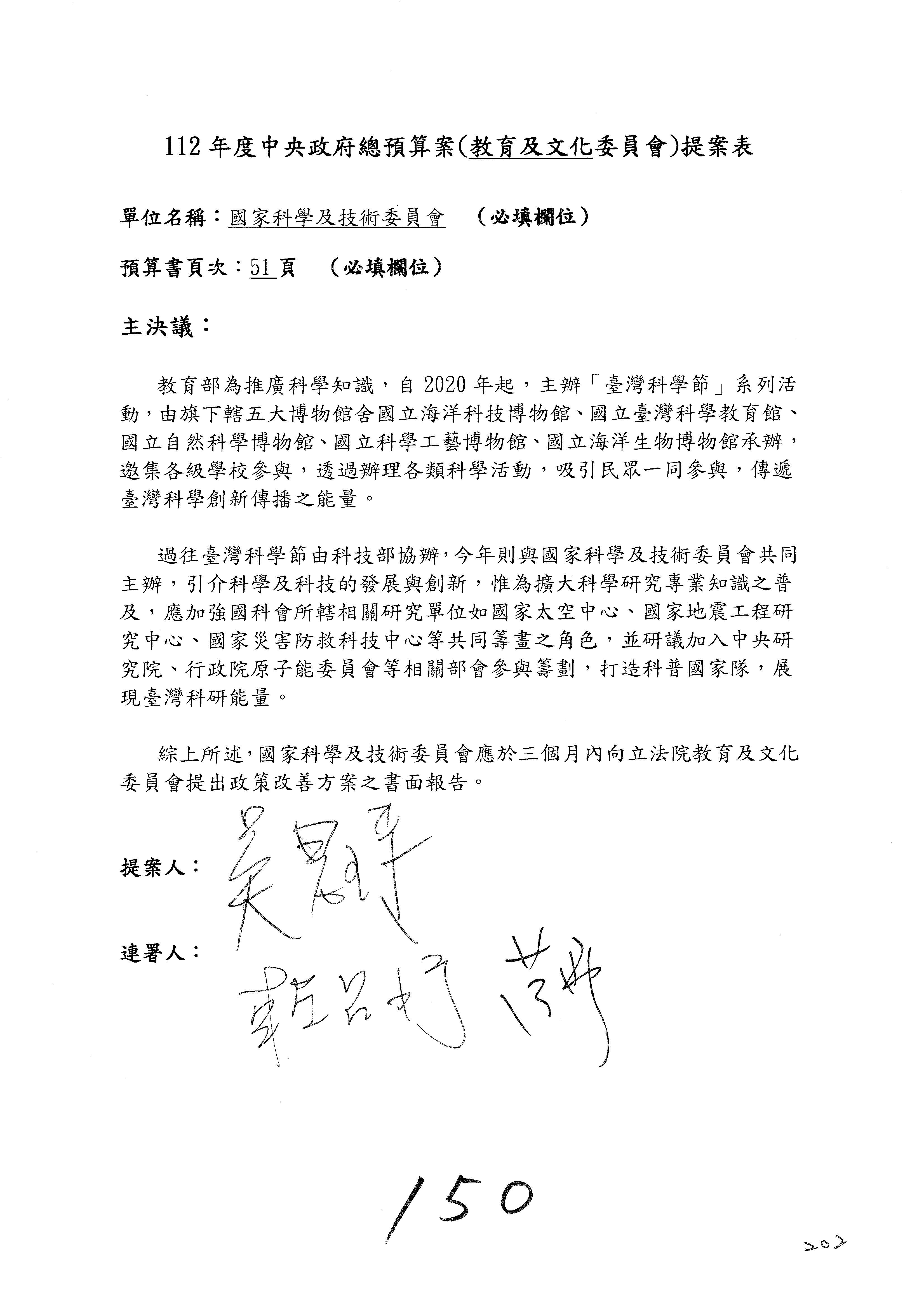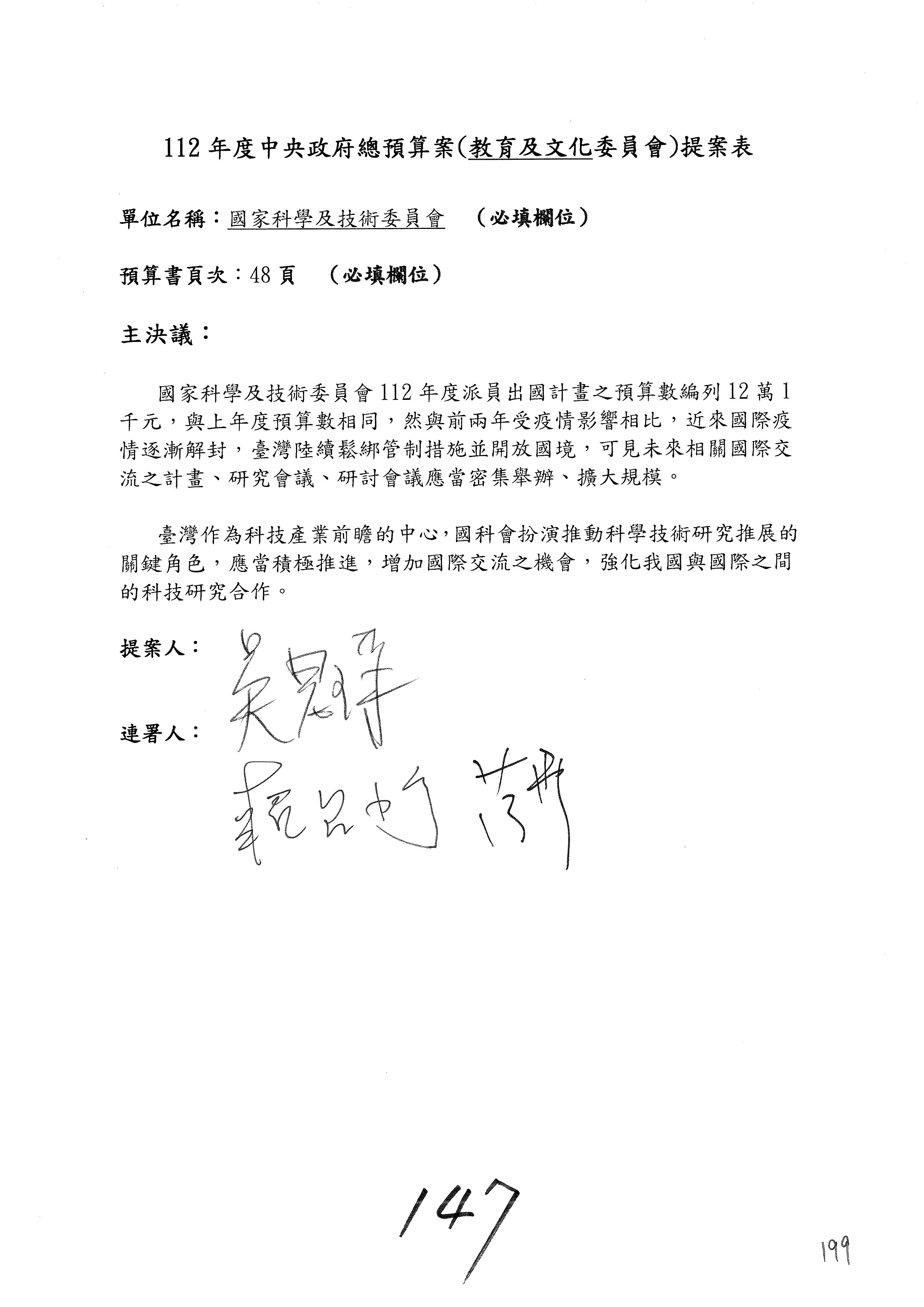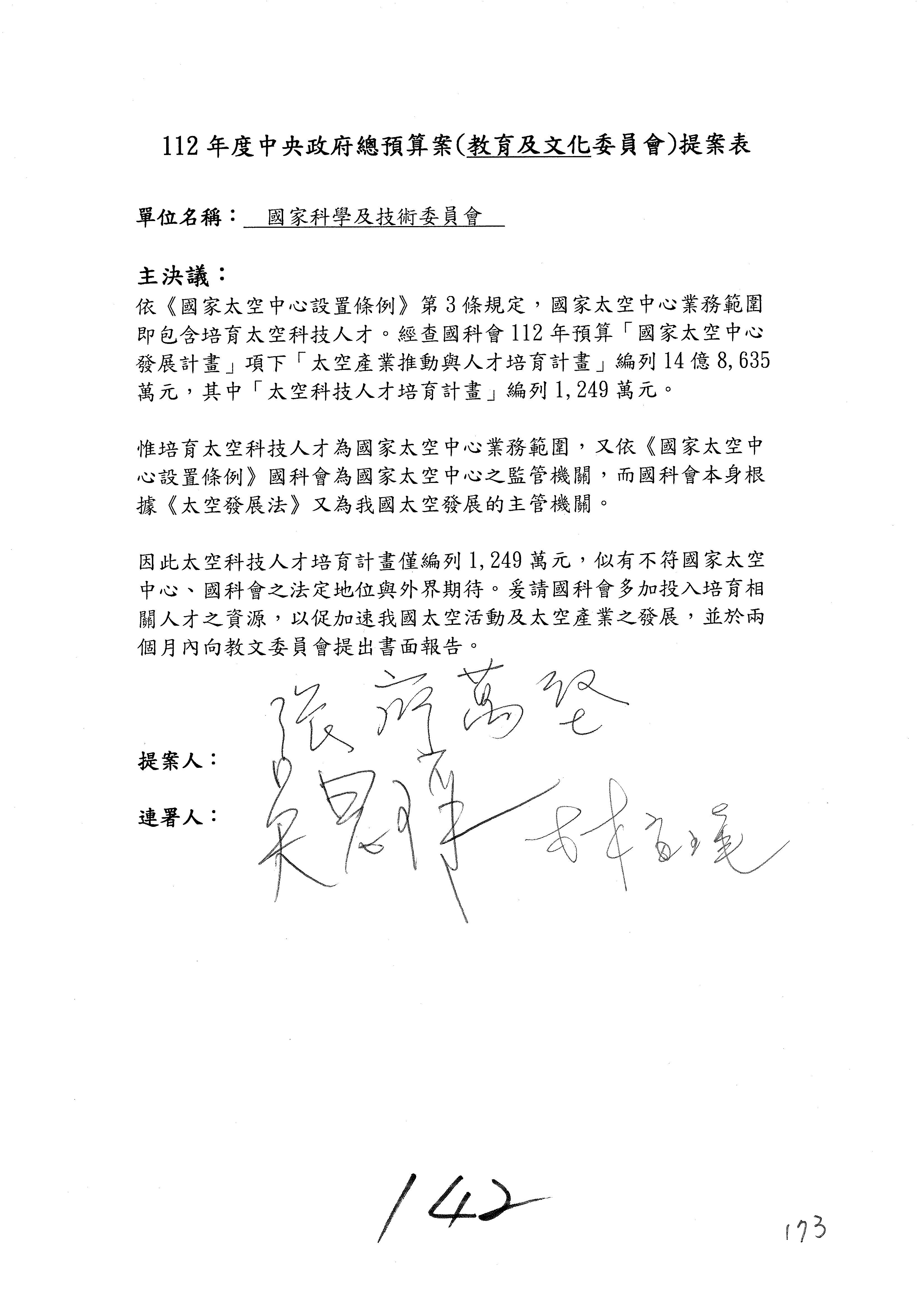 一、繼續審查112年度中央政府總預算案有關國家科學及技術委員會與所屬單位預算案。