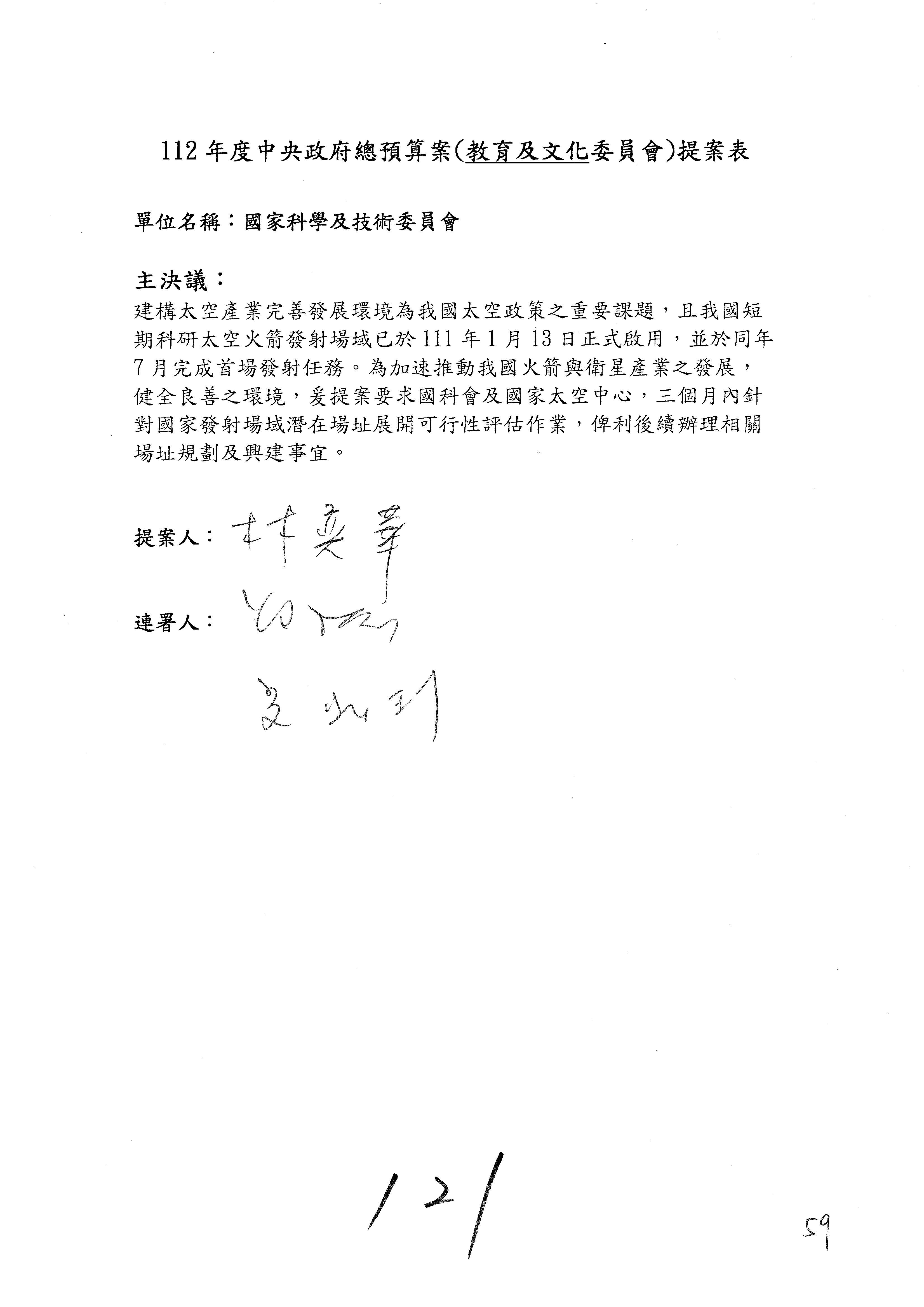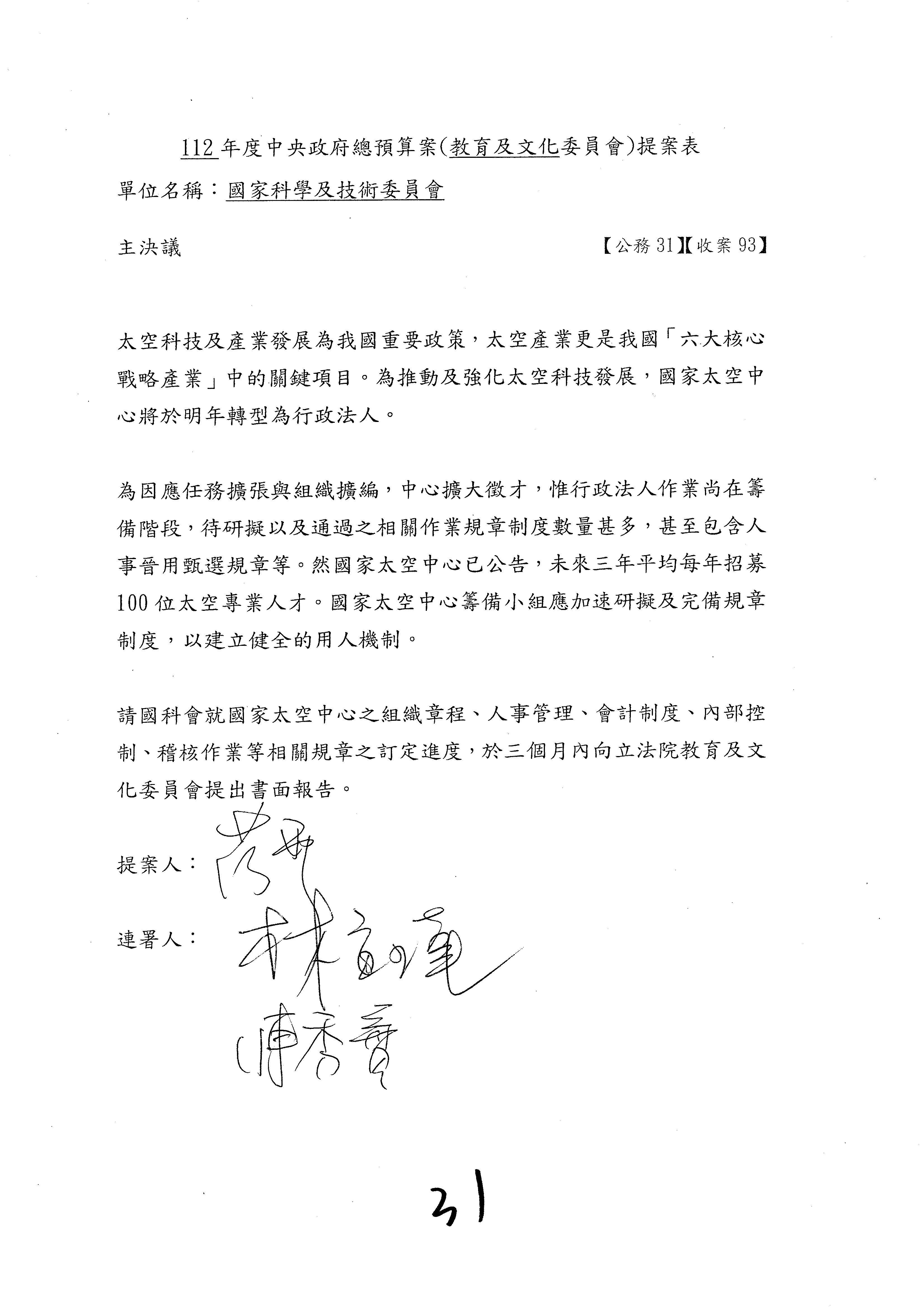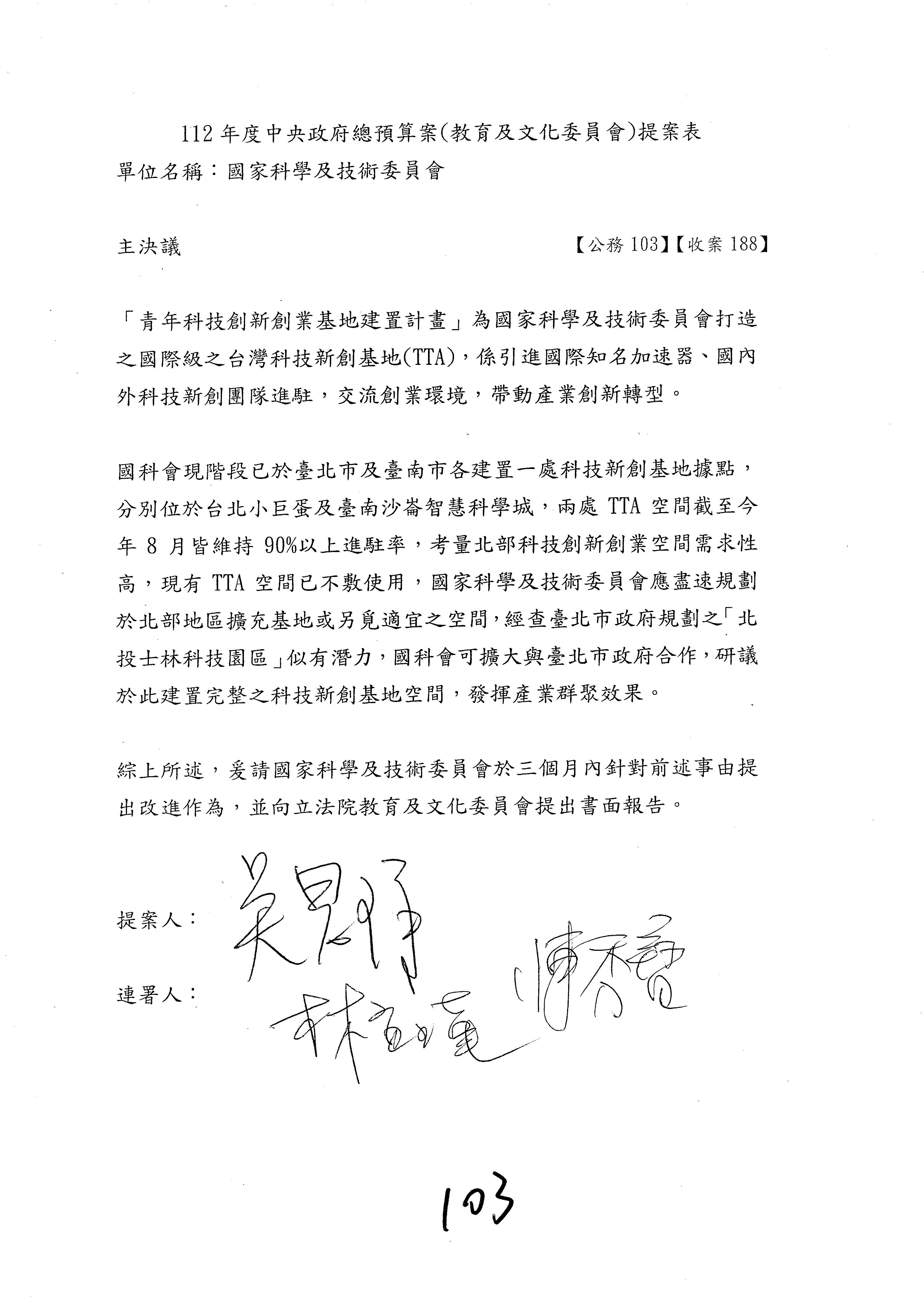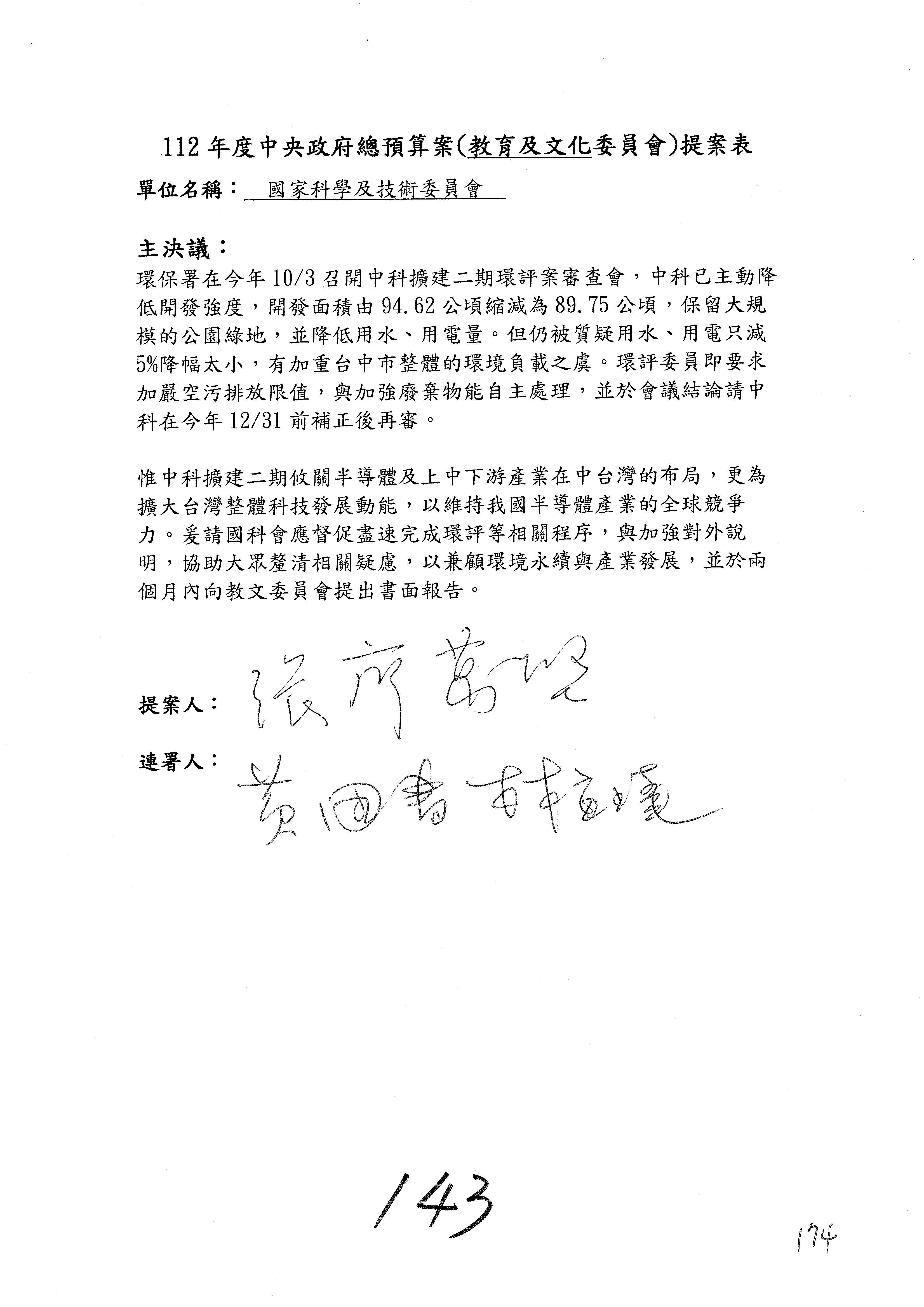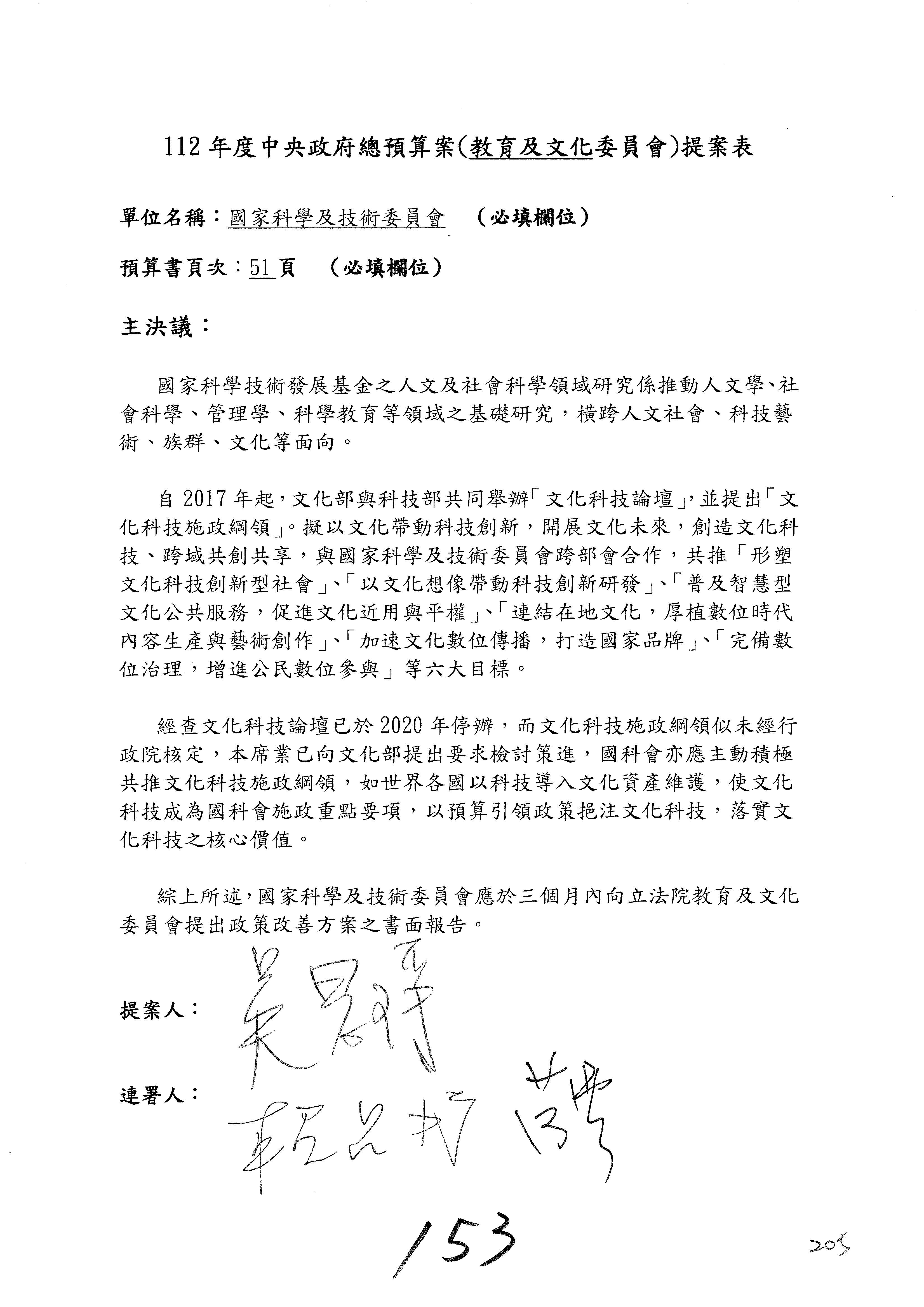 一、繼續審查112年度中央政府總預算案有關國家科學及技術委員會與所屬單位預算案。