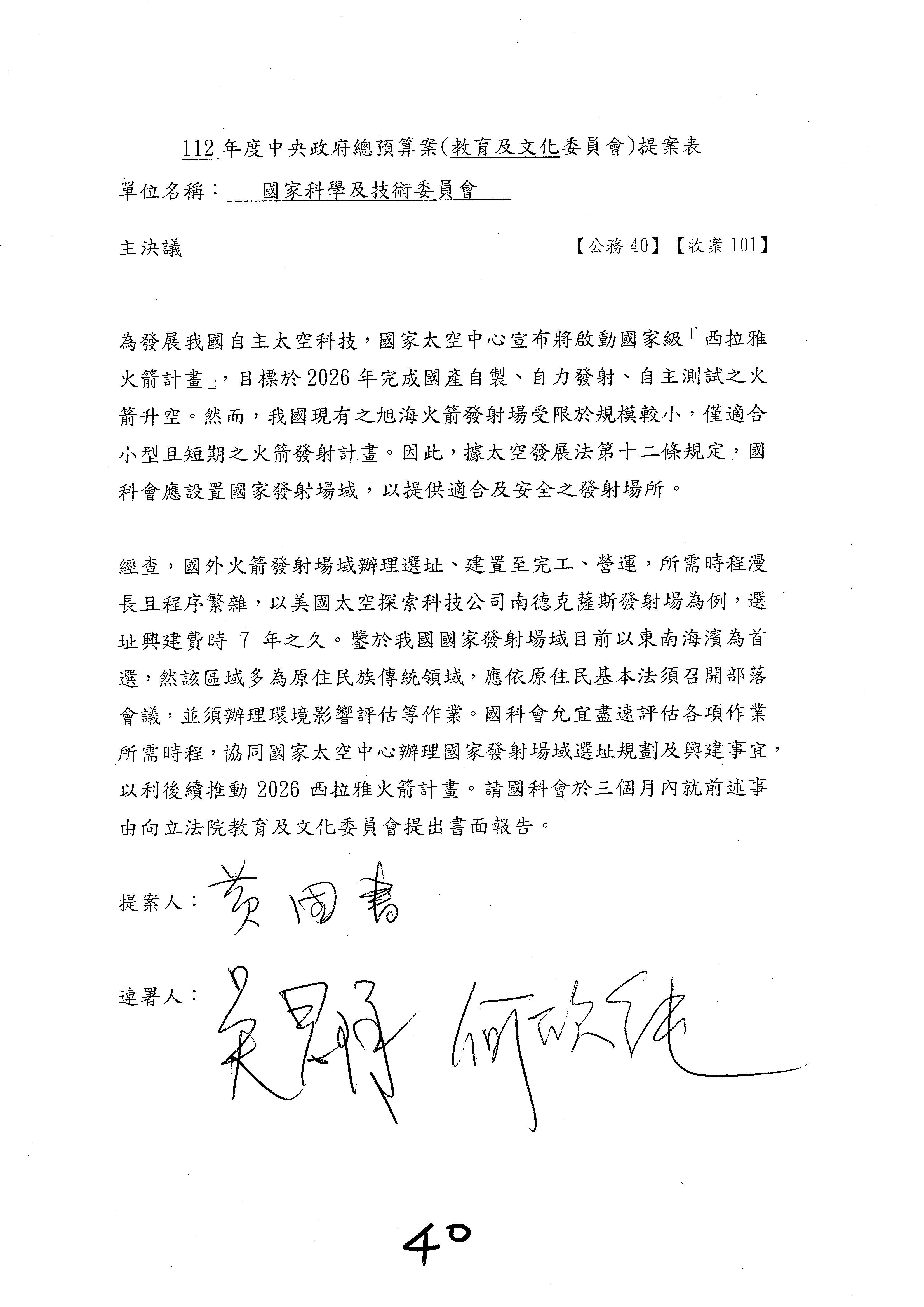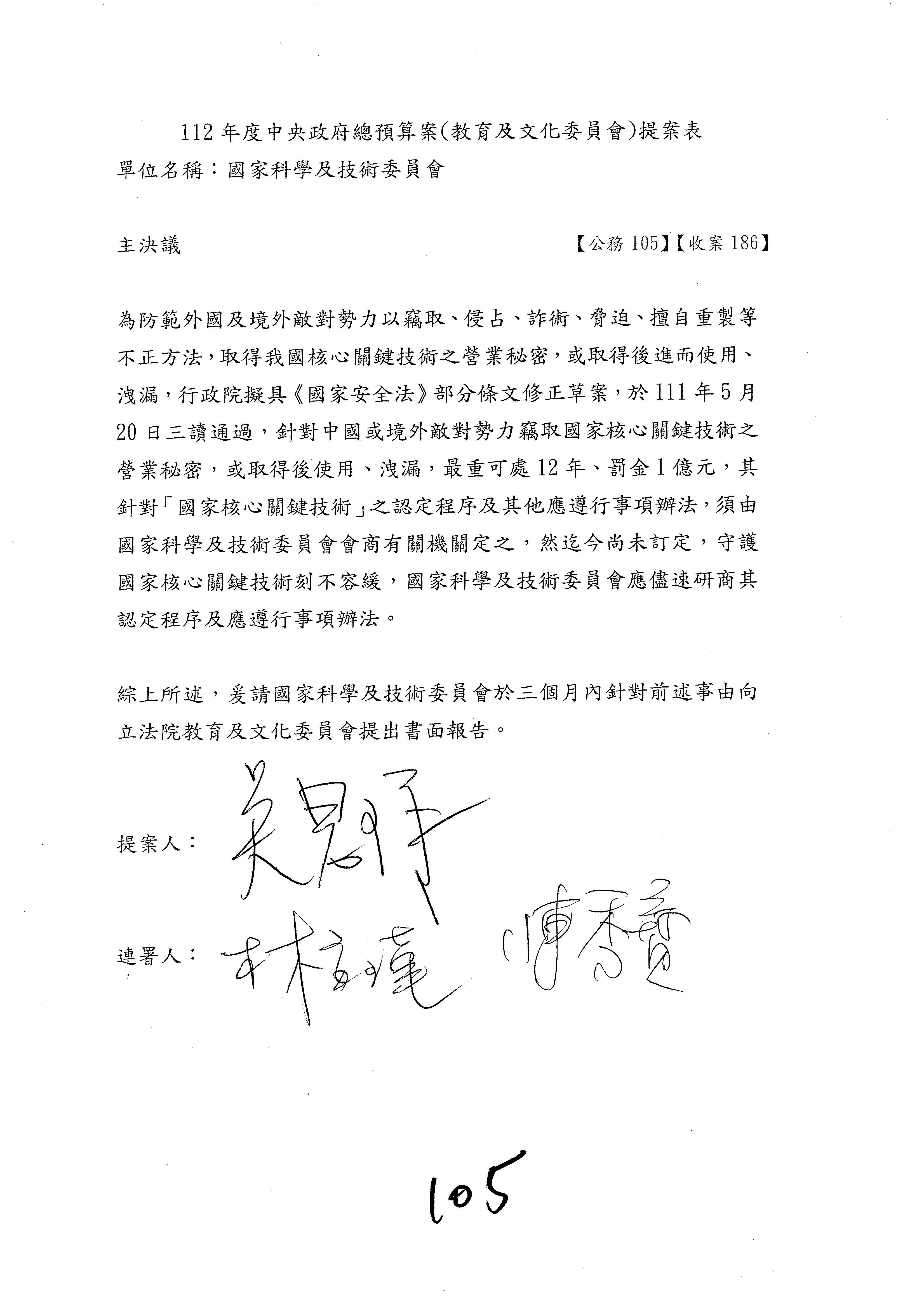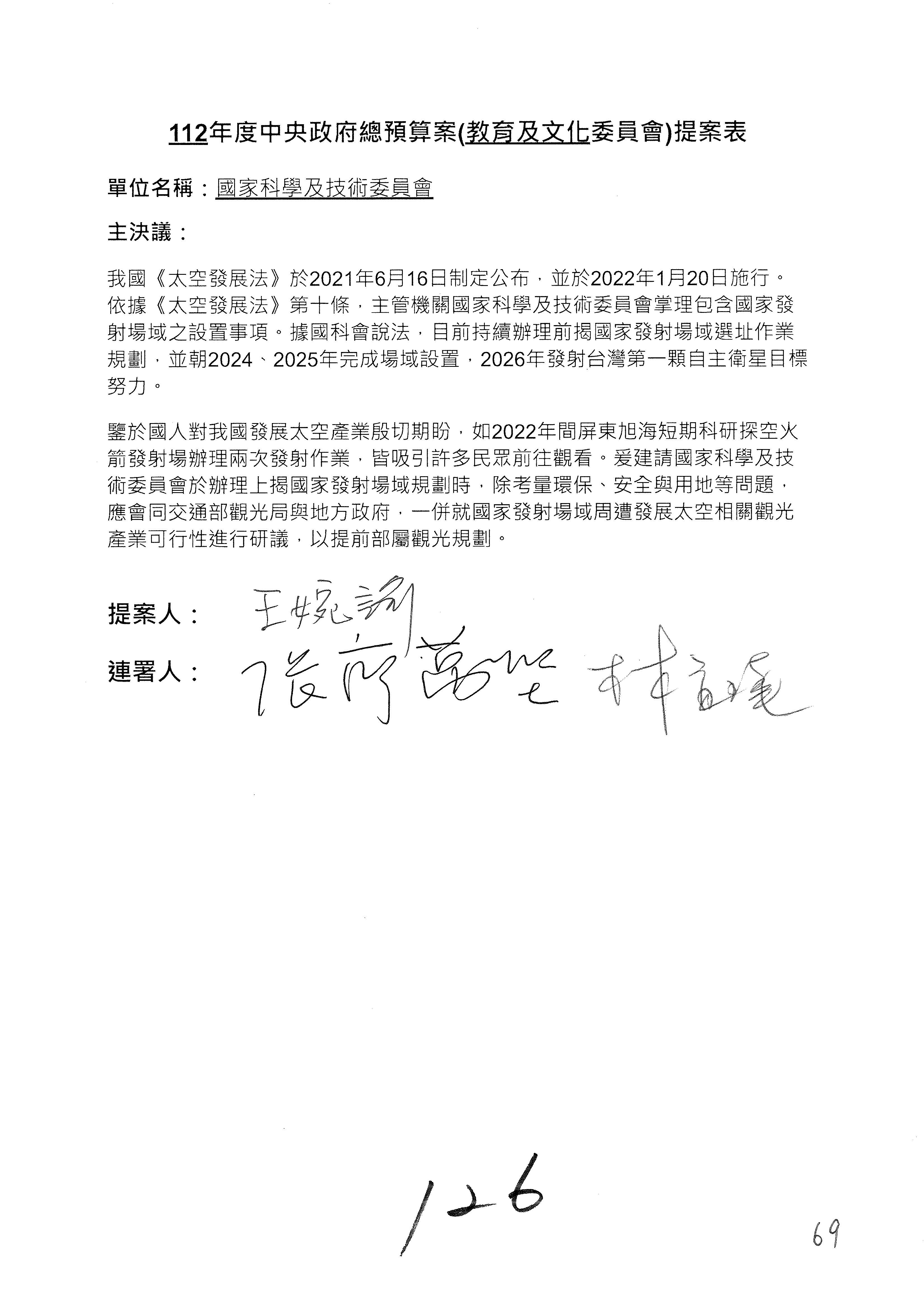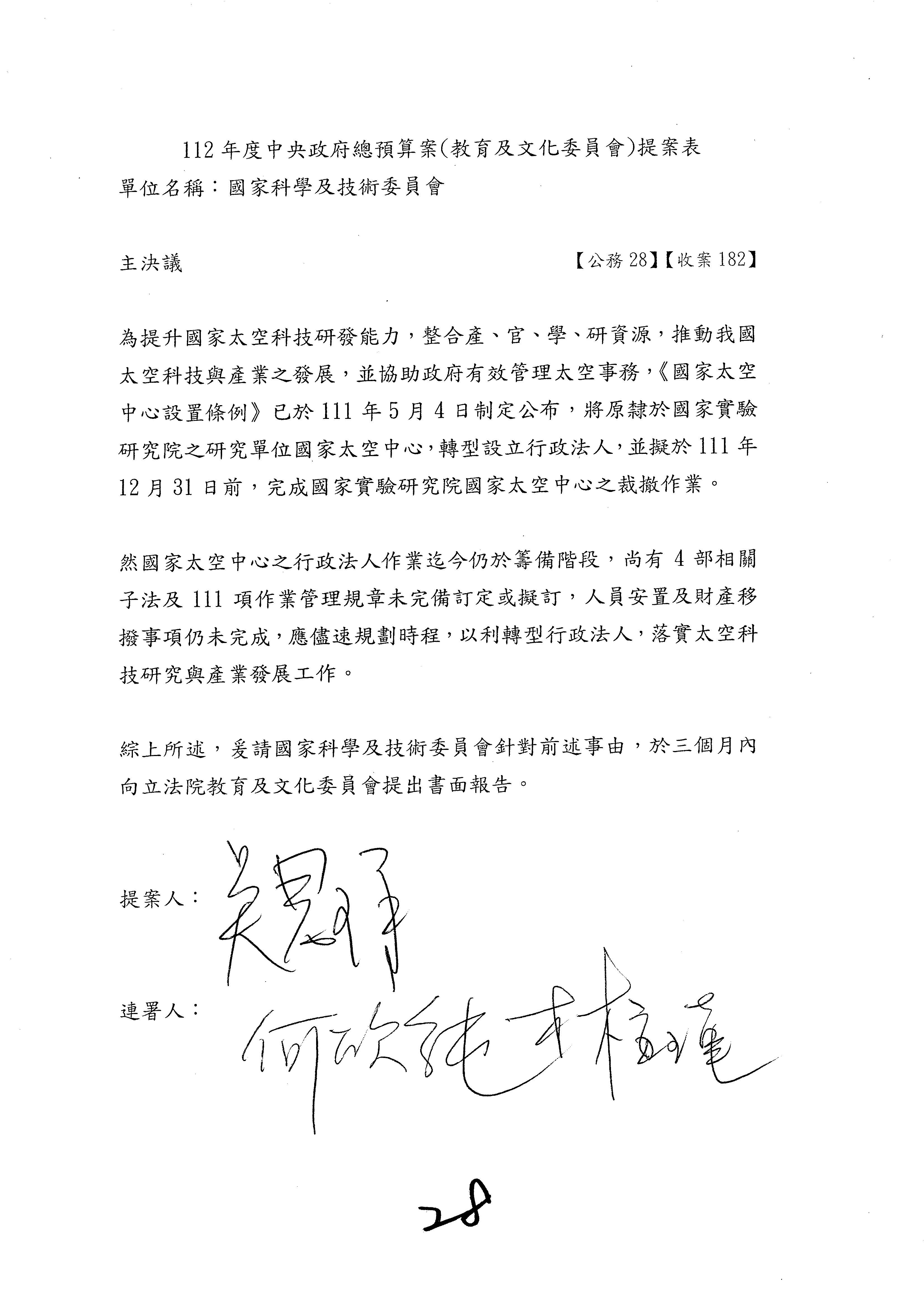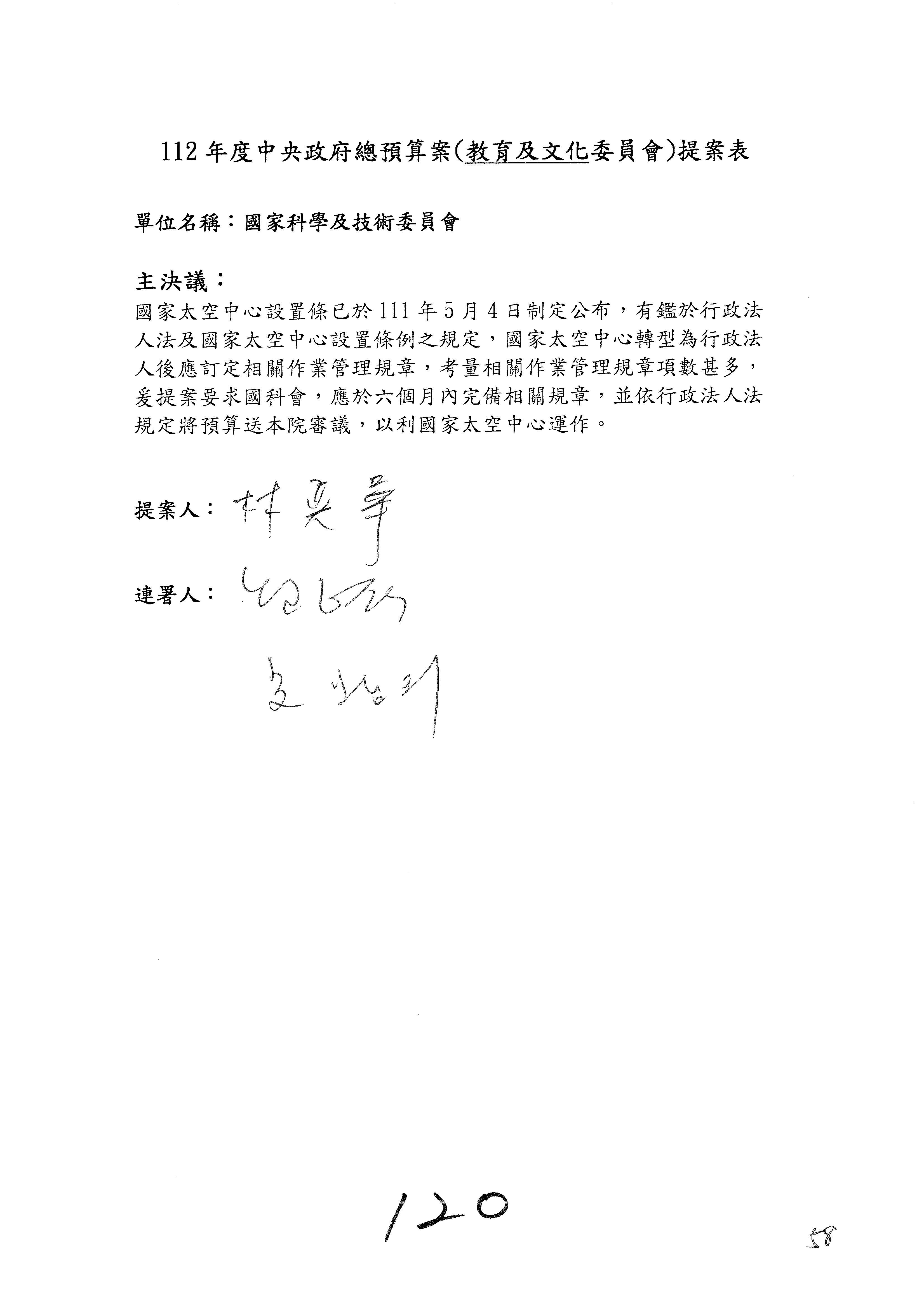 一、繼續審查112年度中央政府總預算案有關國家科學及技術委員會與所屬單位預算案。