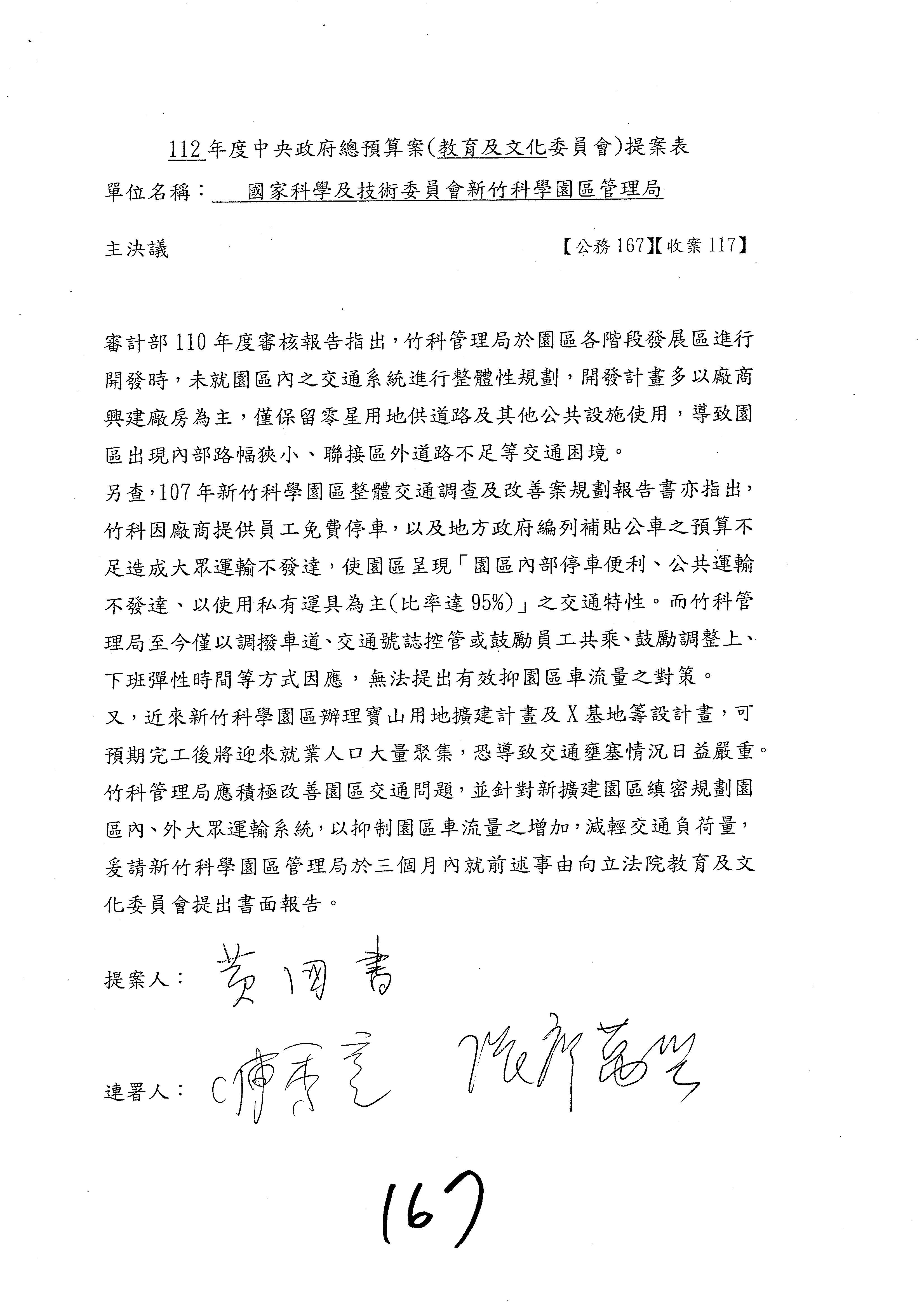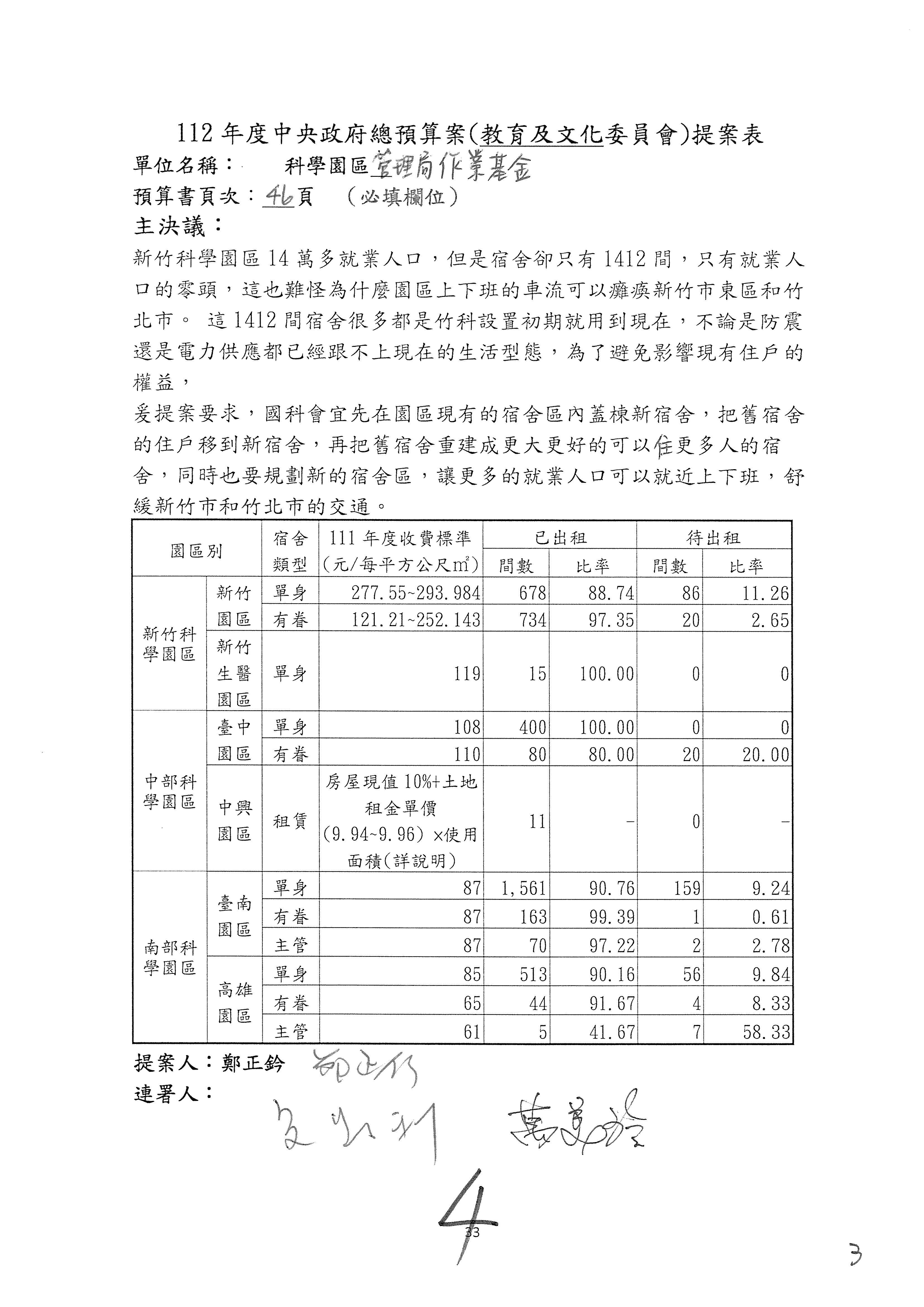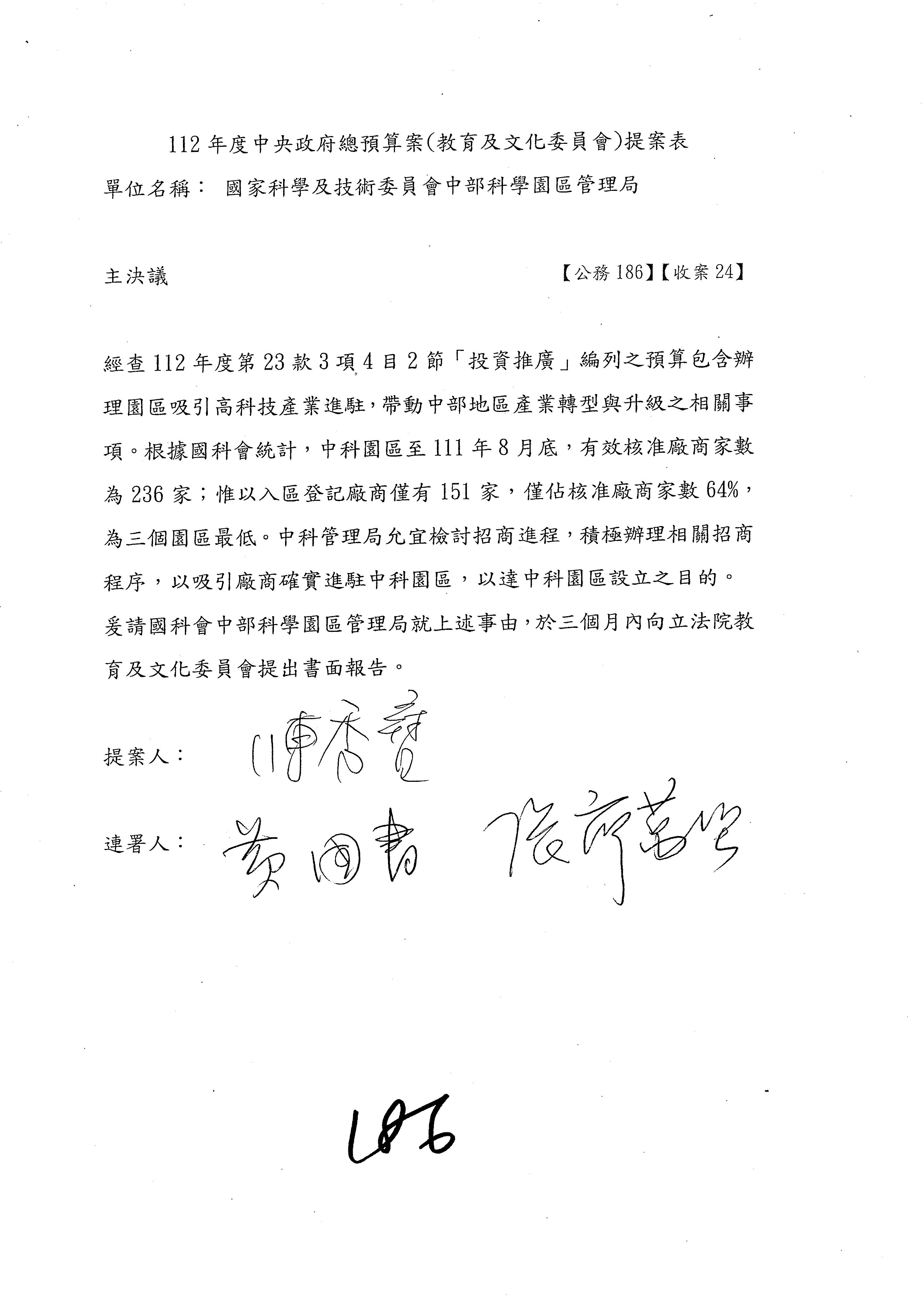 三、繼續審查112年度中央政府總預算案有關國家科學及技術委員會主管科學園區管理局作業基金附屬單位預算案。