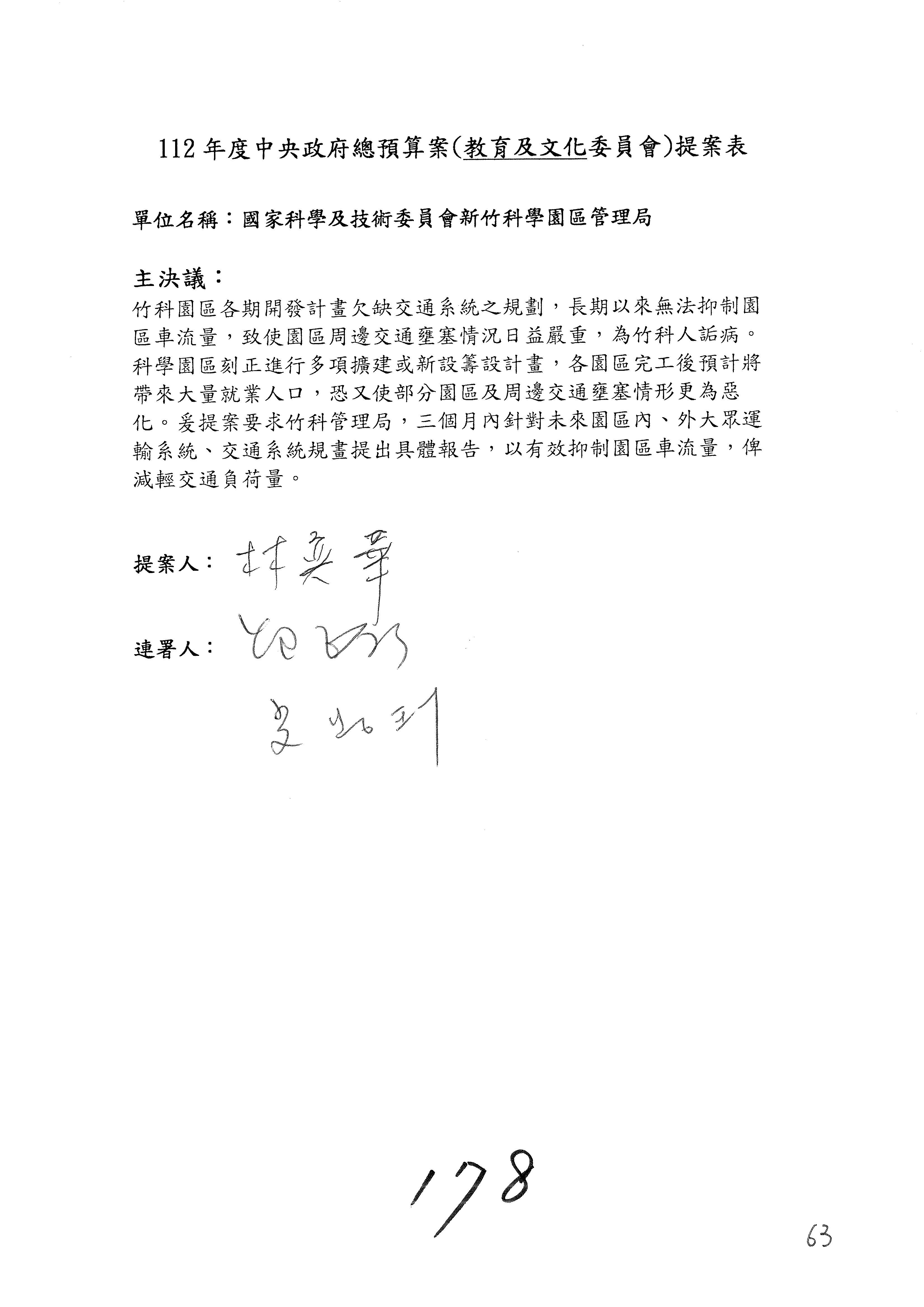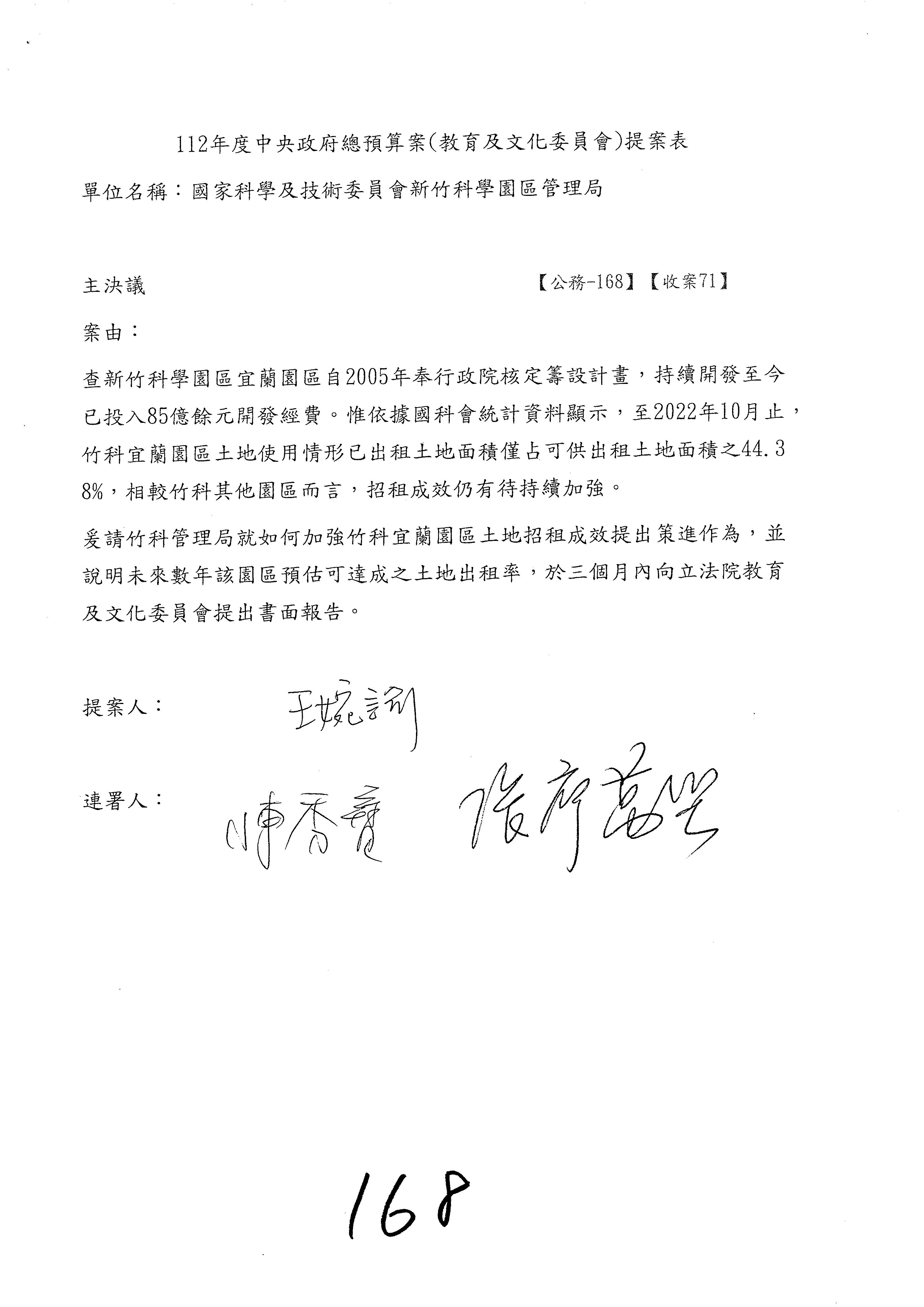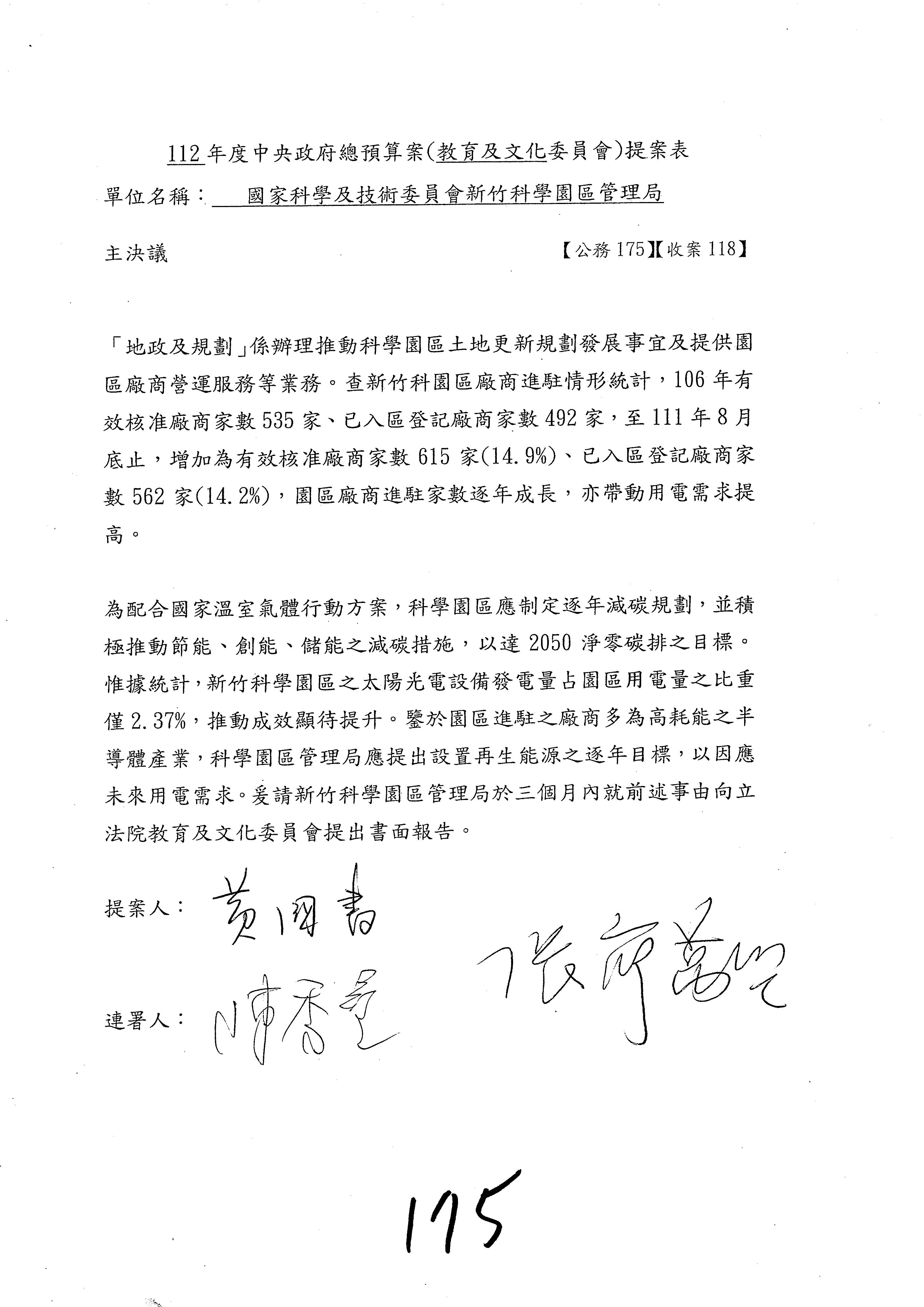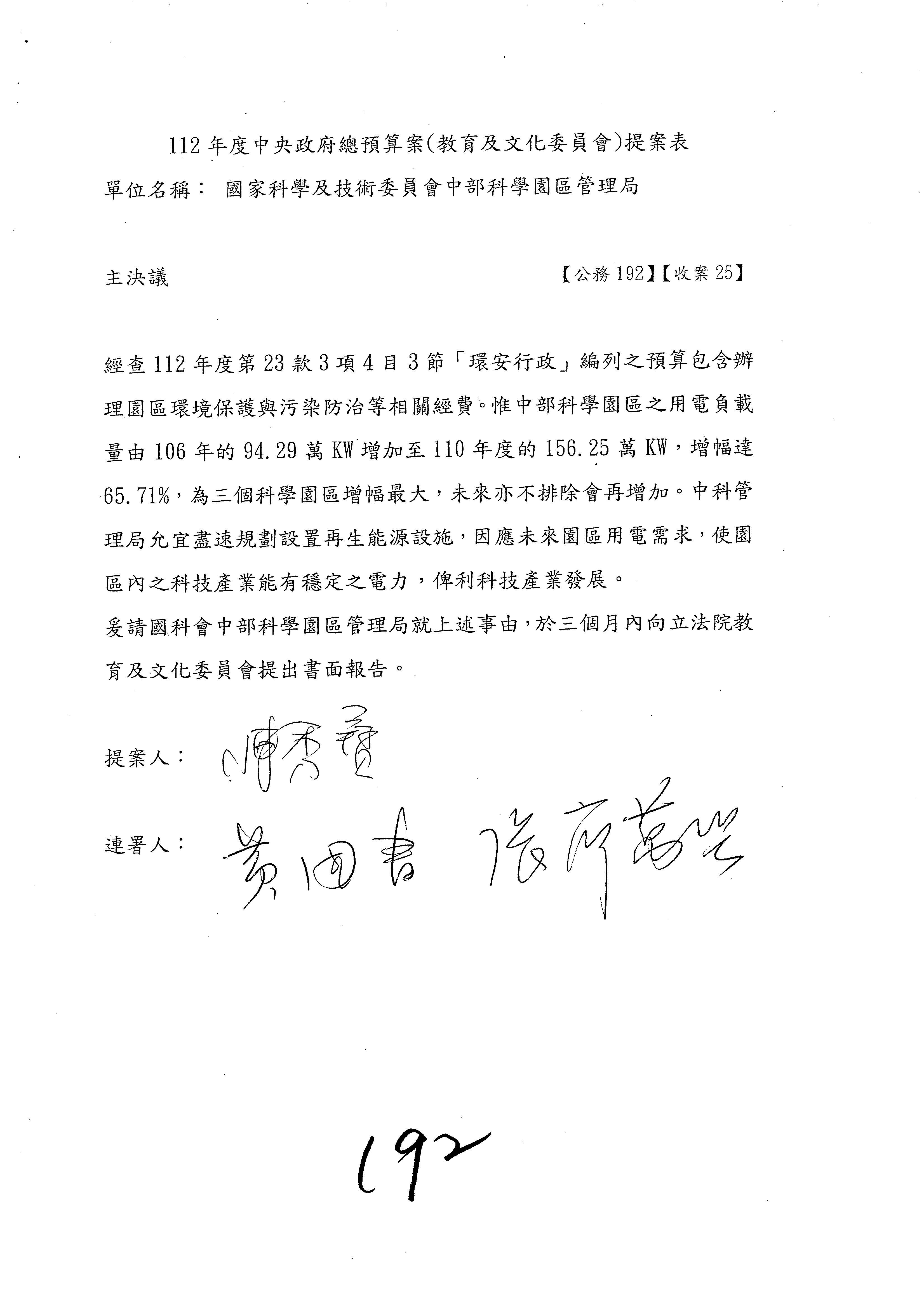 三、繼續審查112年度中央政府總預算案有關國家科學及技術委員會主管科學園區管理局作業基金附屬單位預算案。