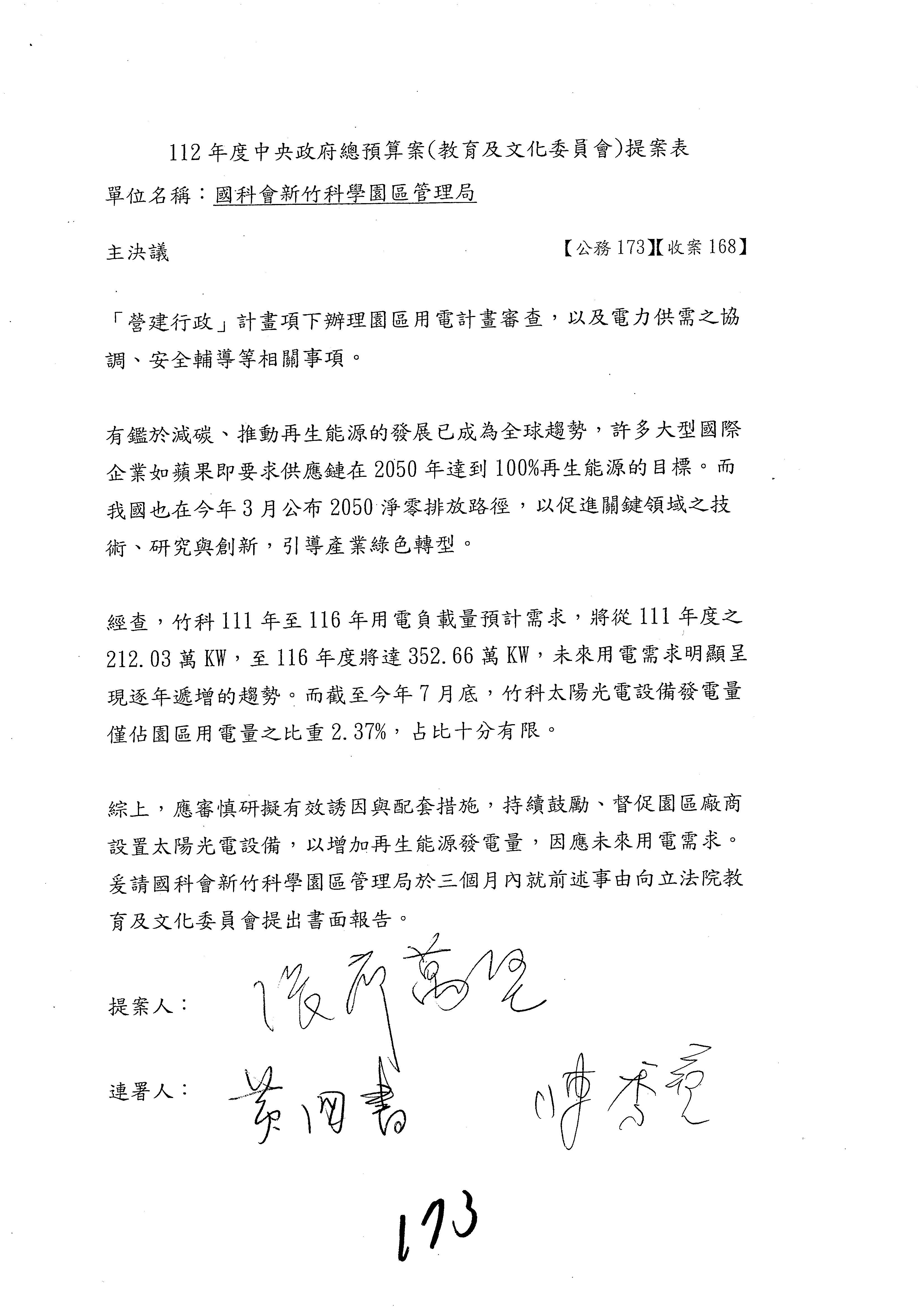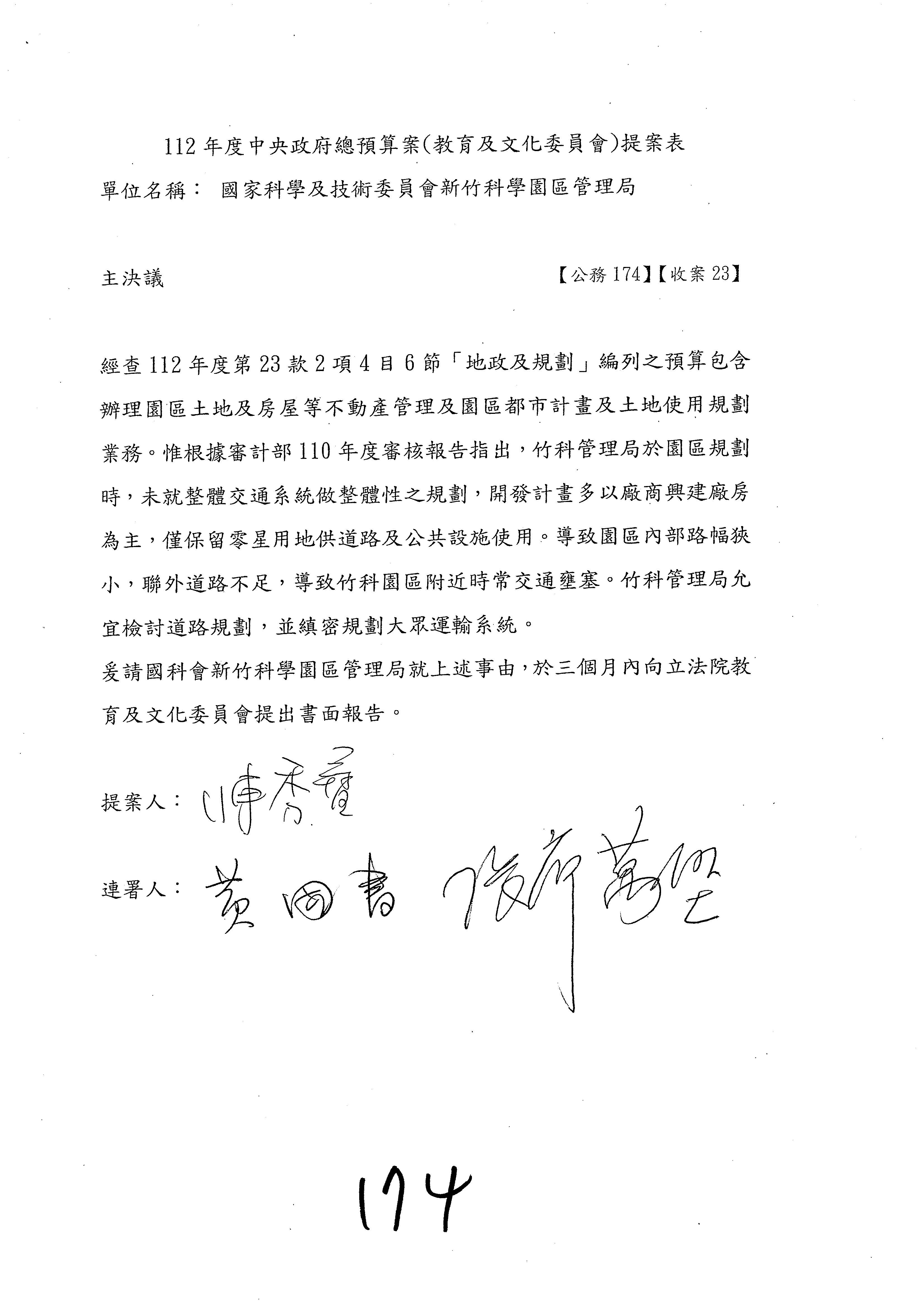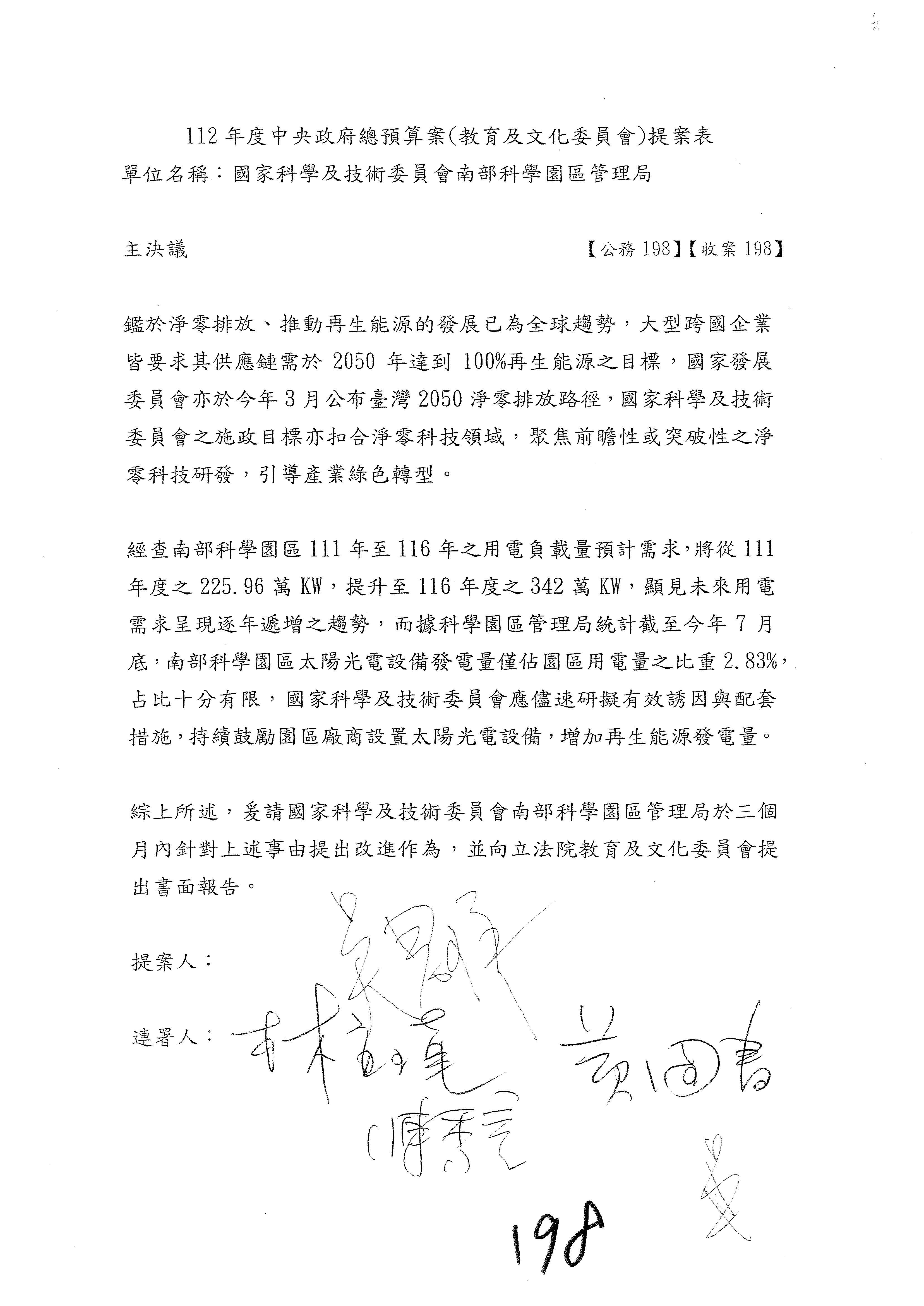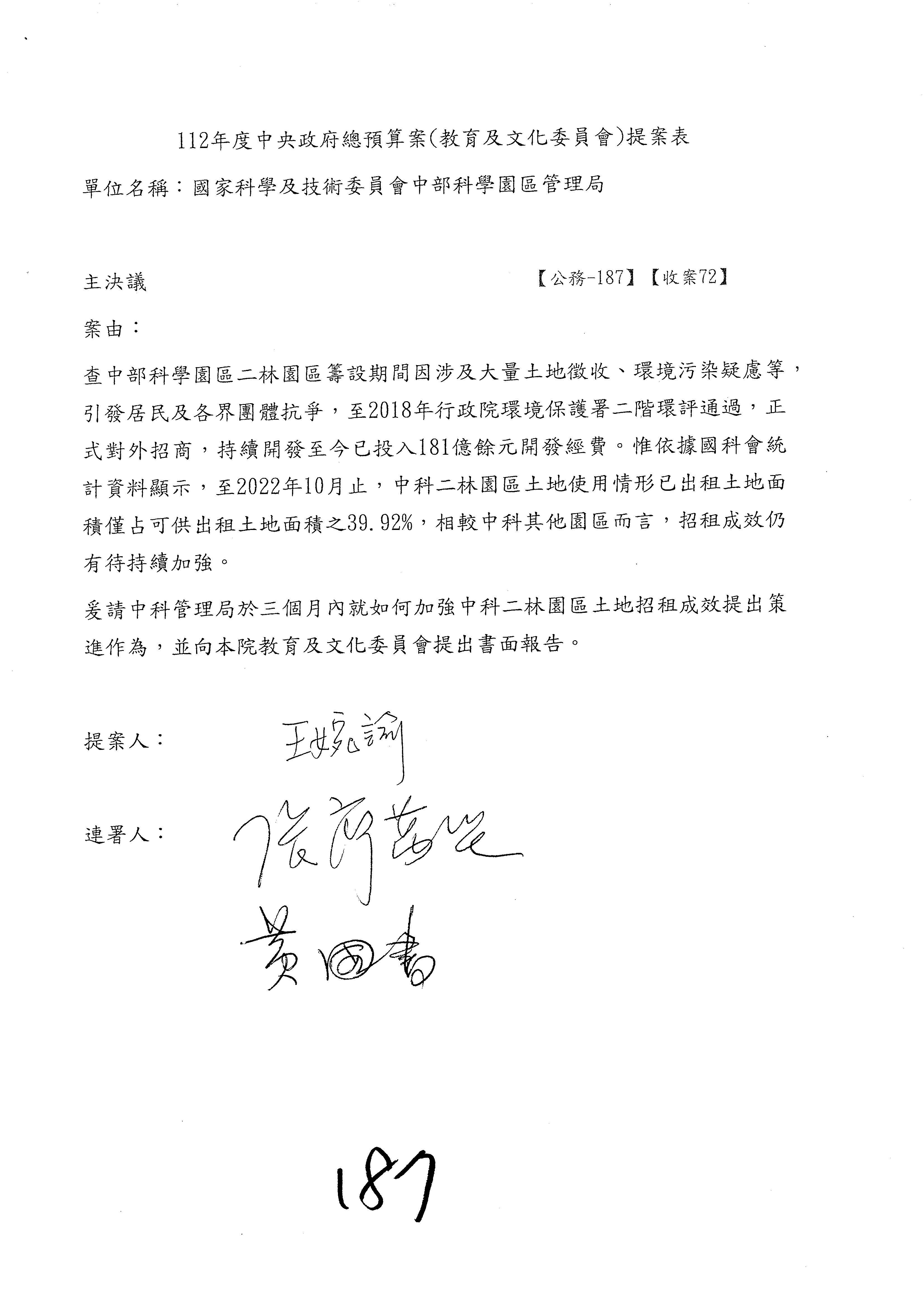 林宜瑾委員第199案改主決議。