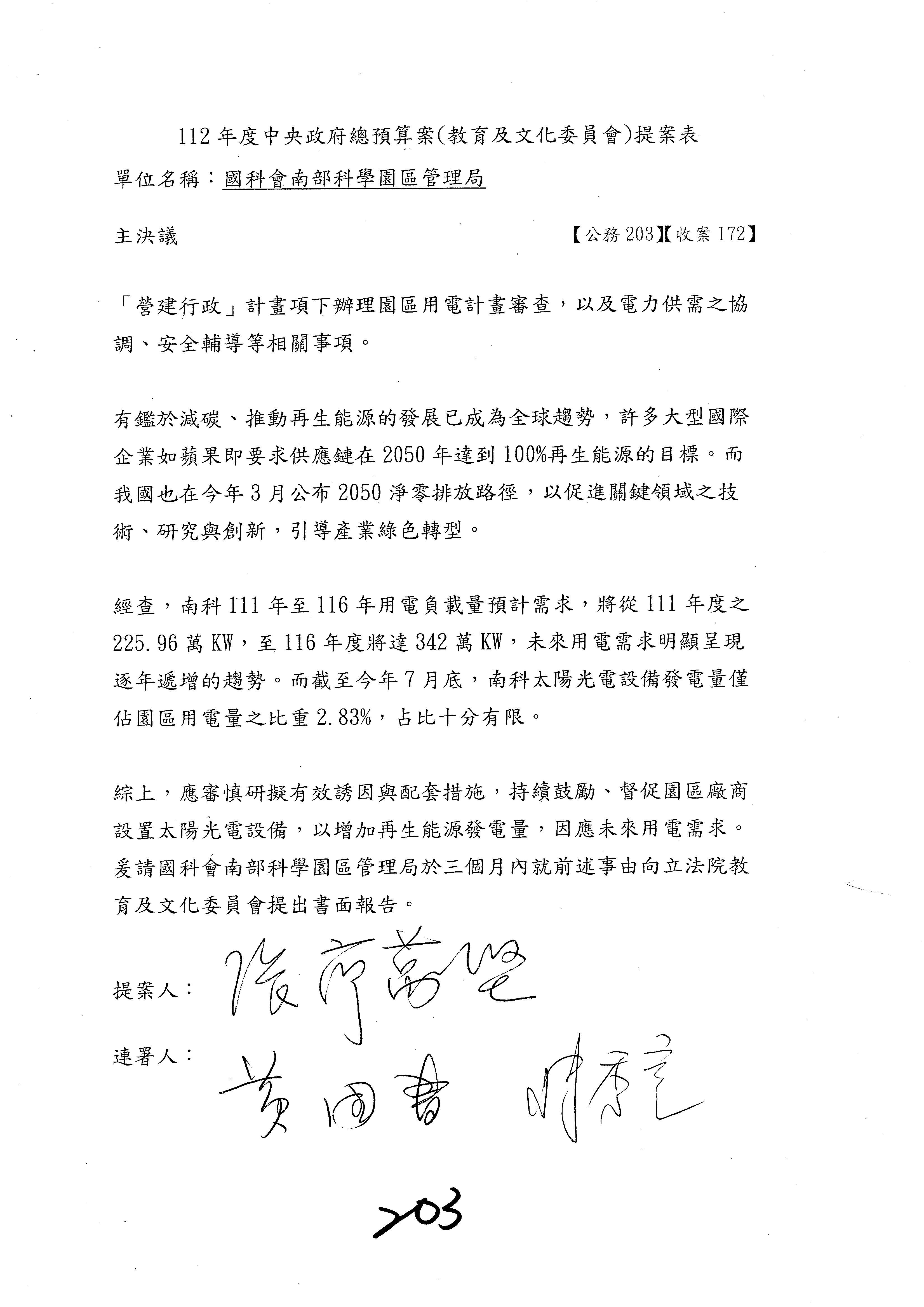 第203案改主決議。