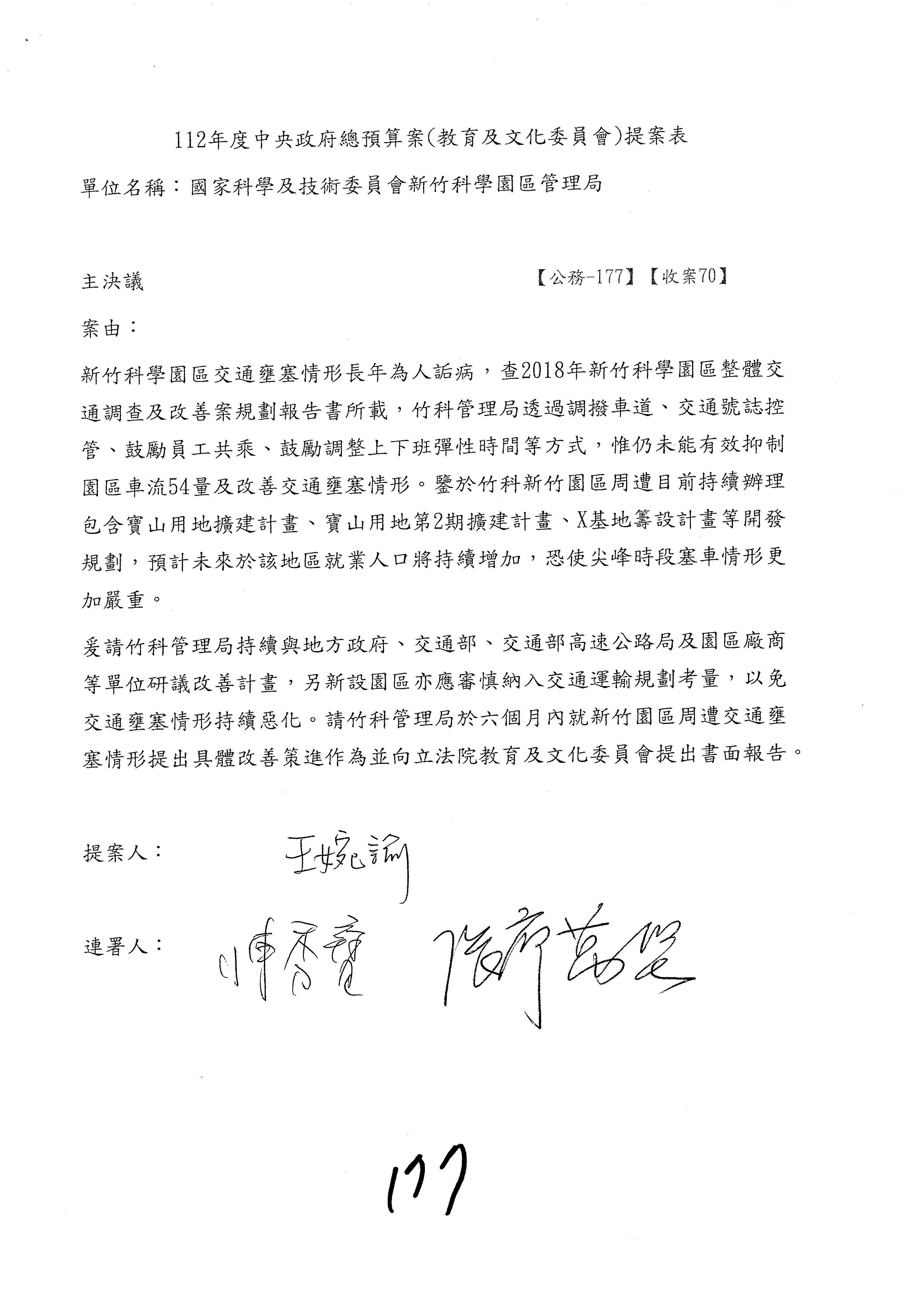 關於今日會議作如下決議:112年度中央政府總預算案有關國家科學及技術委員會與所屬單位預算案、行政院主管行政院國家科學技術發展基金附屬單位預算案、國家科學及技術委員會主管科學園區管理局作業基金附屬單位預算案全部審查完竣。