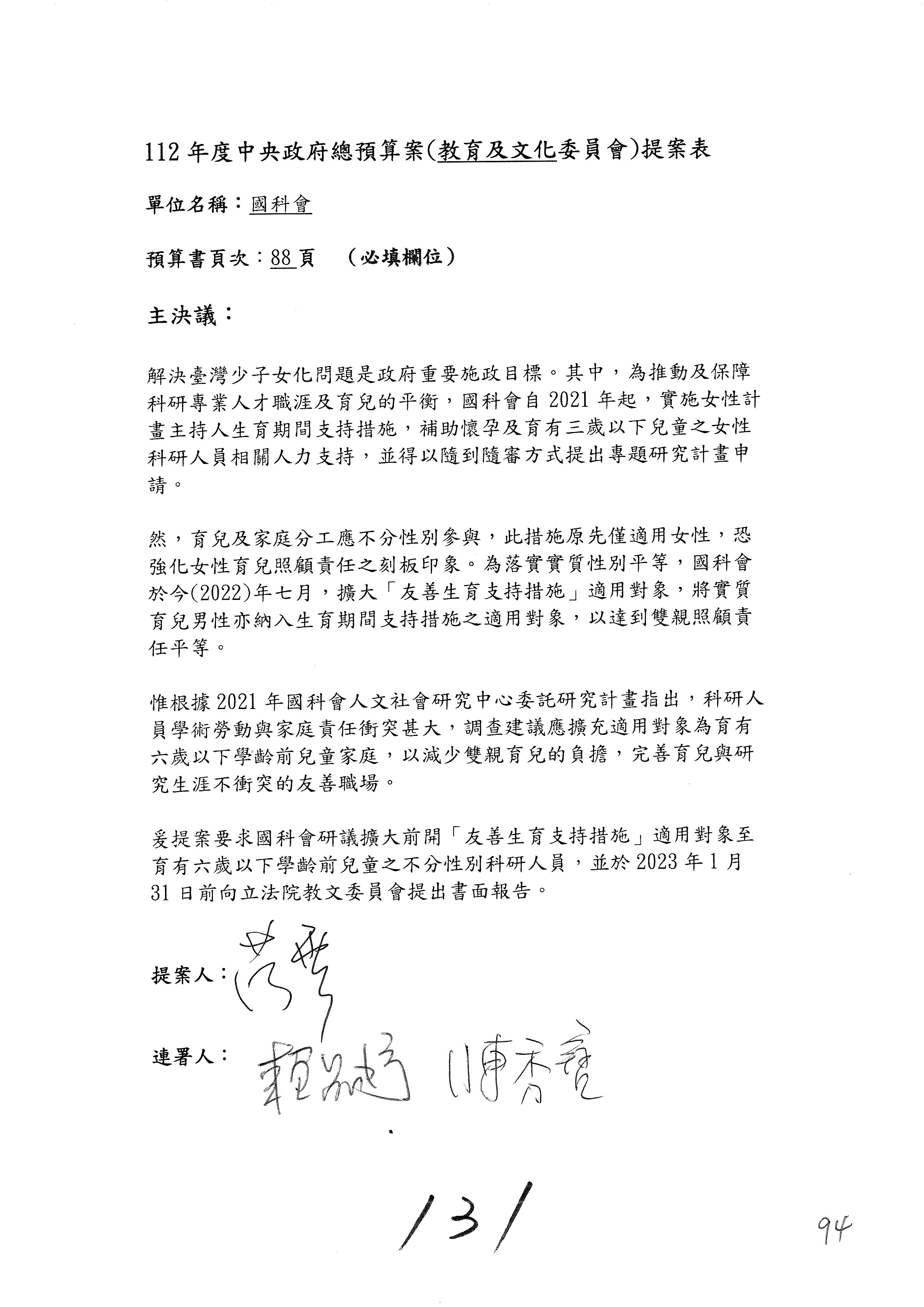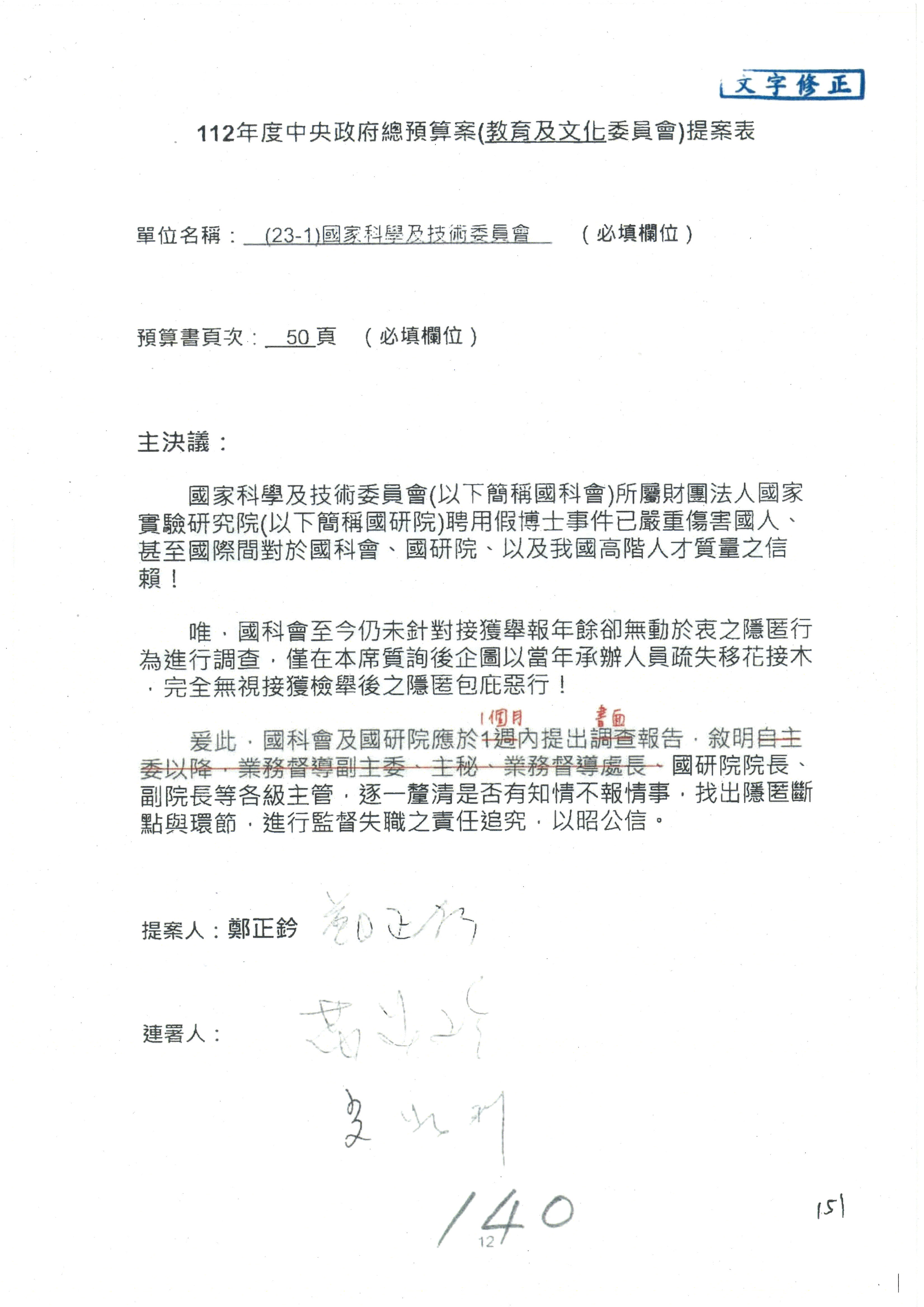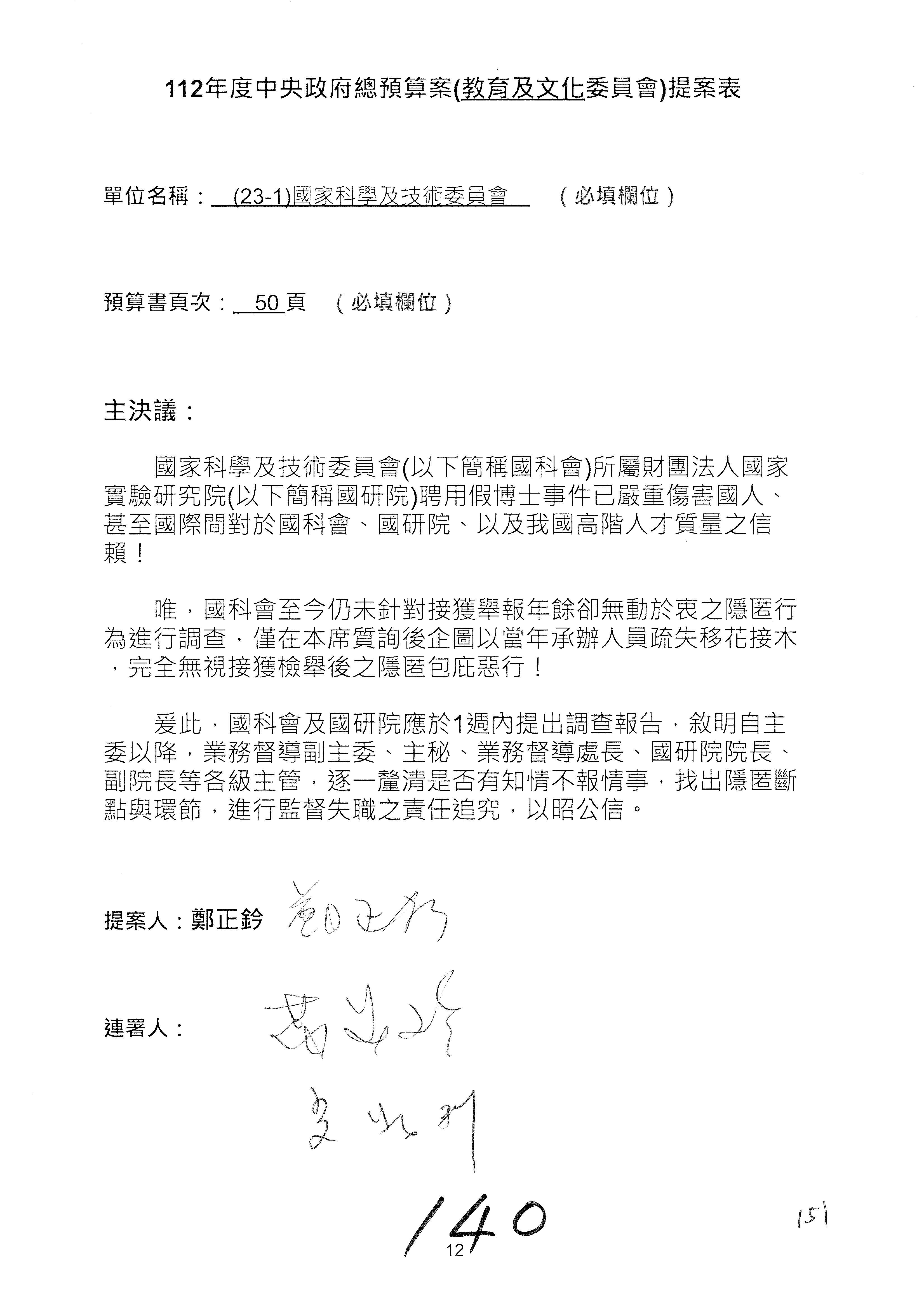 主席:委員如有臨時提案,請於預算處理結束前提出,並於預算處理後即進行處理。處理提案時,如提案委員及連署委員均不在場,援例不予處理。